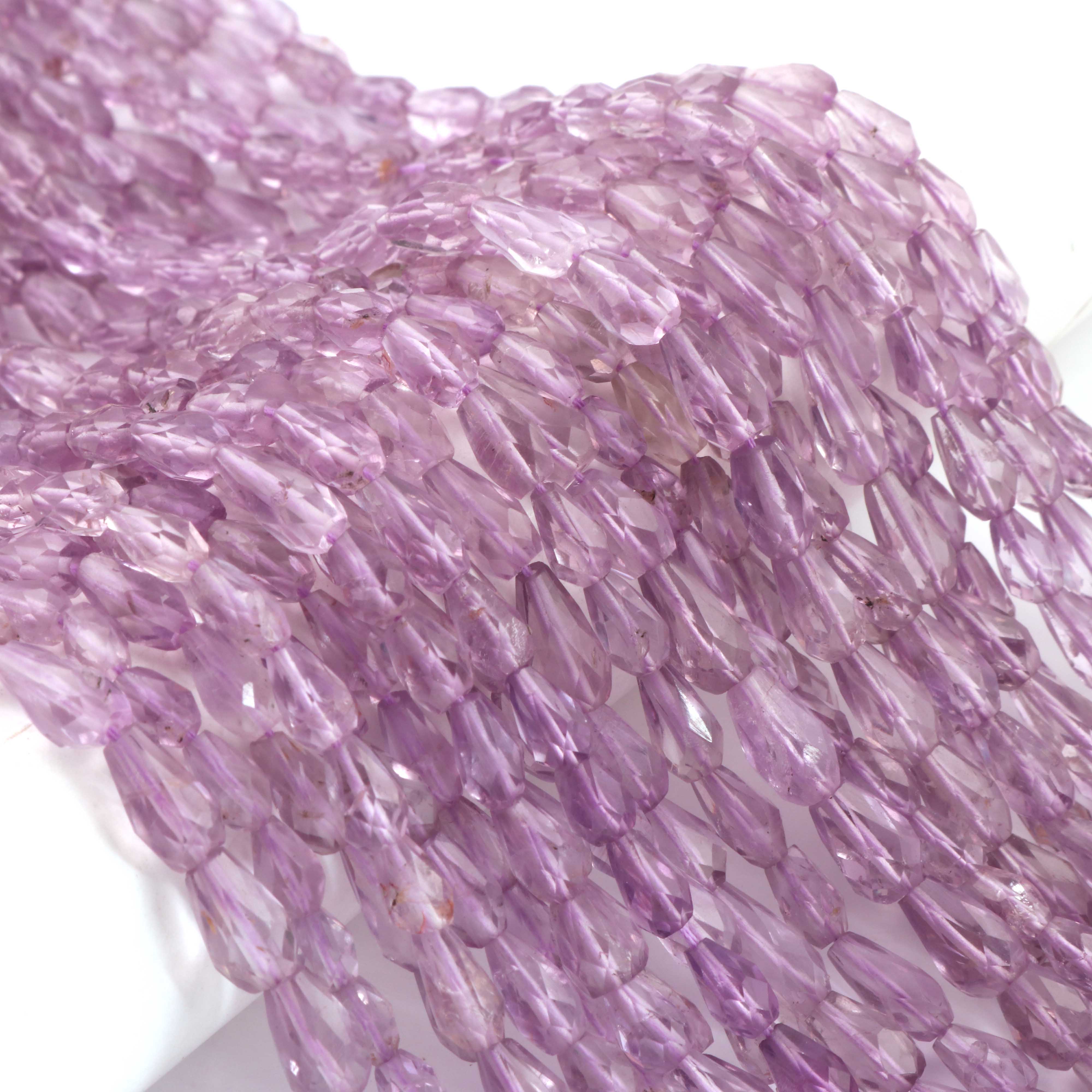 1 Strand Pink Amethyst Faceted Dholki Shape Briolettes -Semi Precious Briolettes Beads 7mm-10mm -12 Inches BR03879