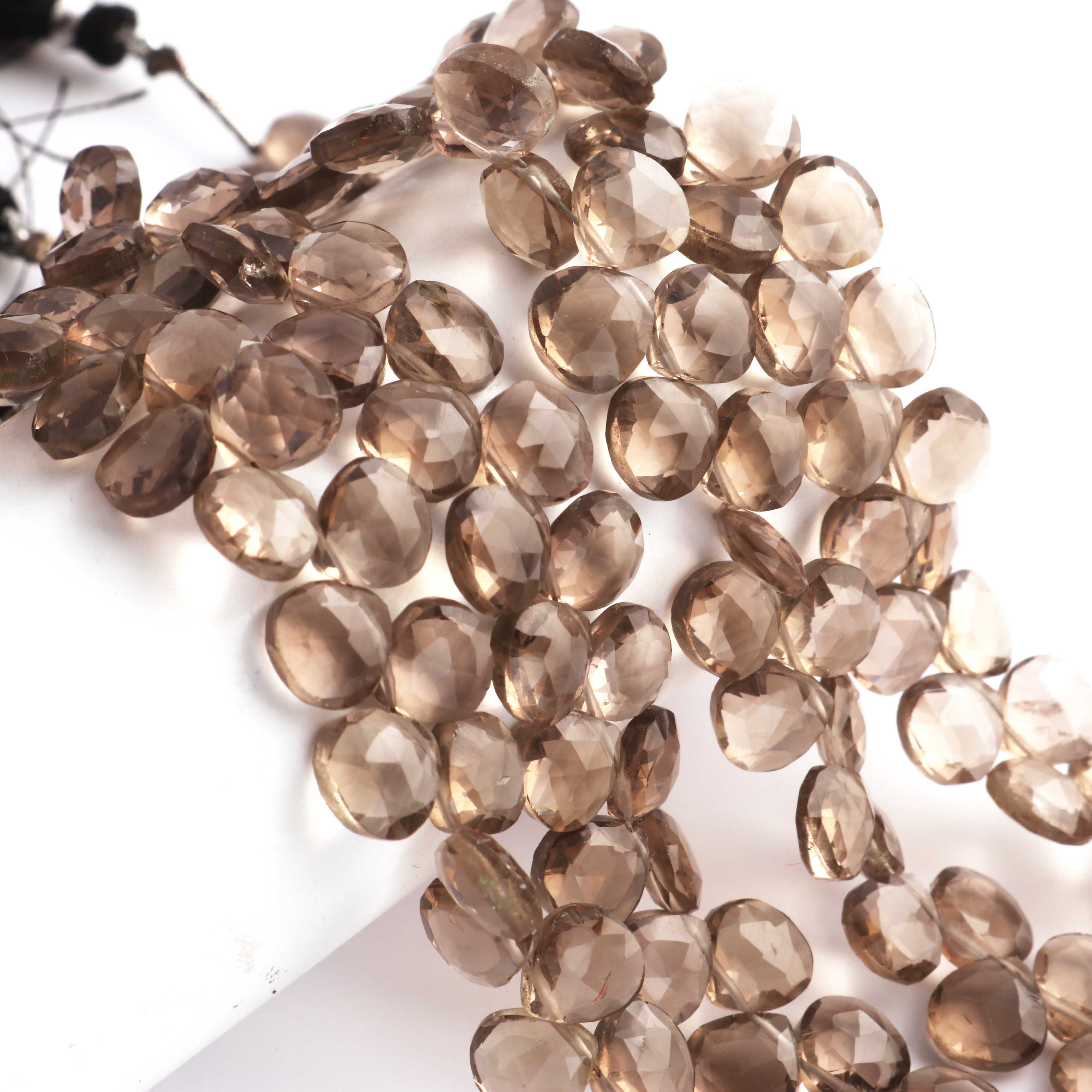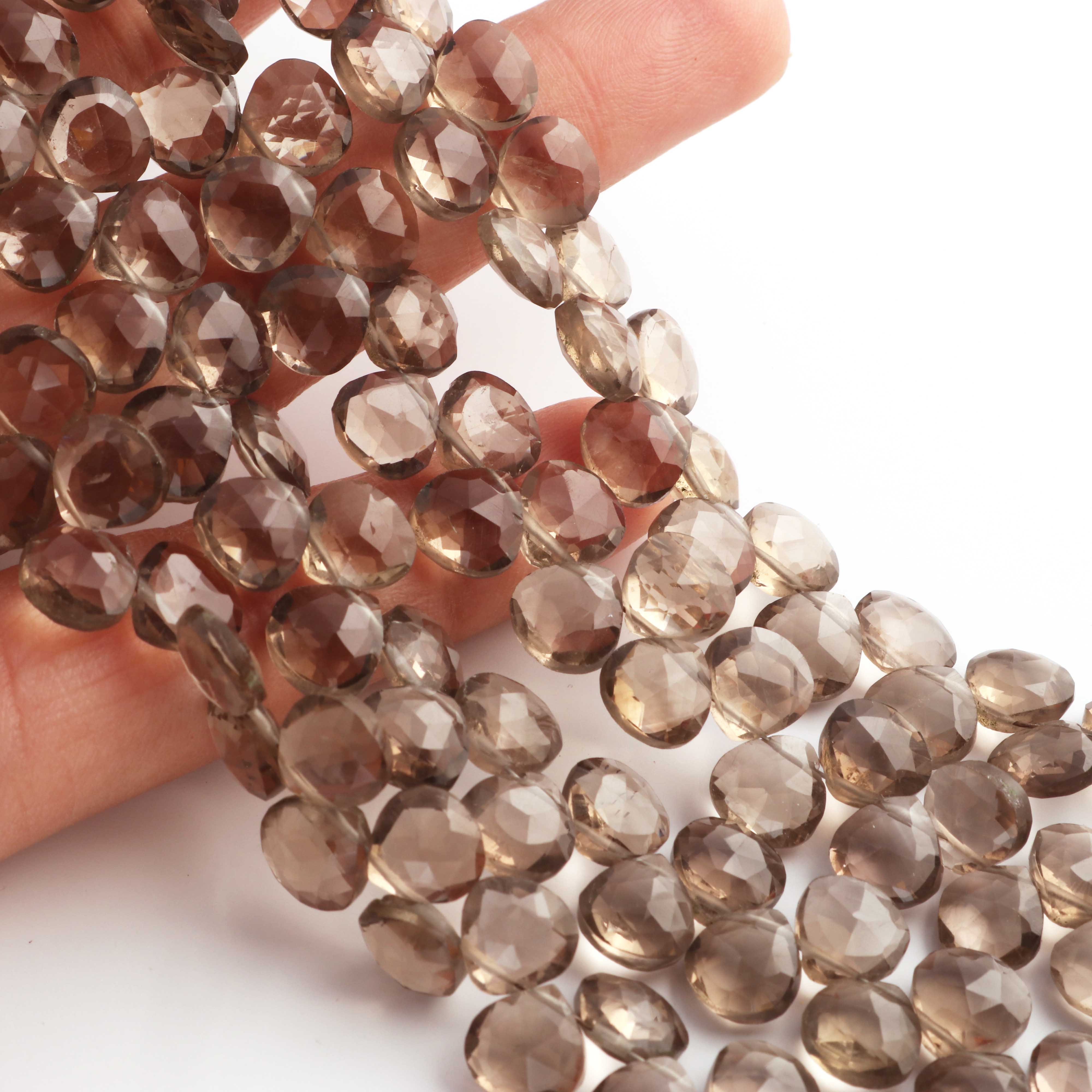 1 Strand Smoky Faceted Briolettes -Heart Shape Briolettes -8mm- 8.5 Inches BR02425