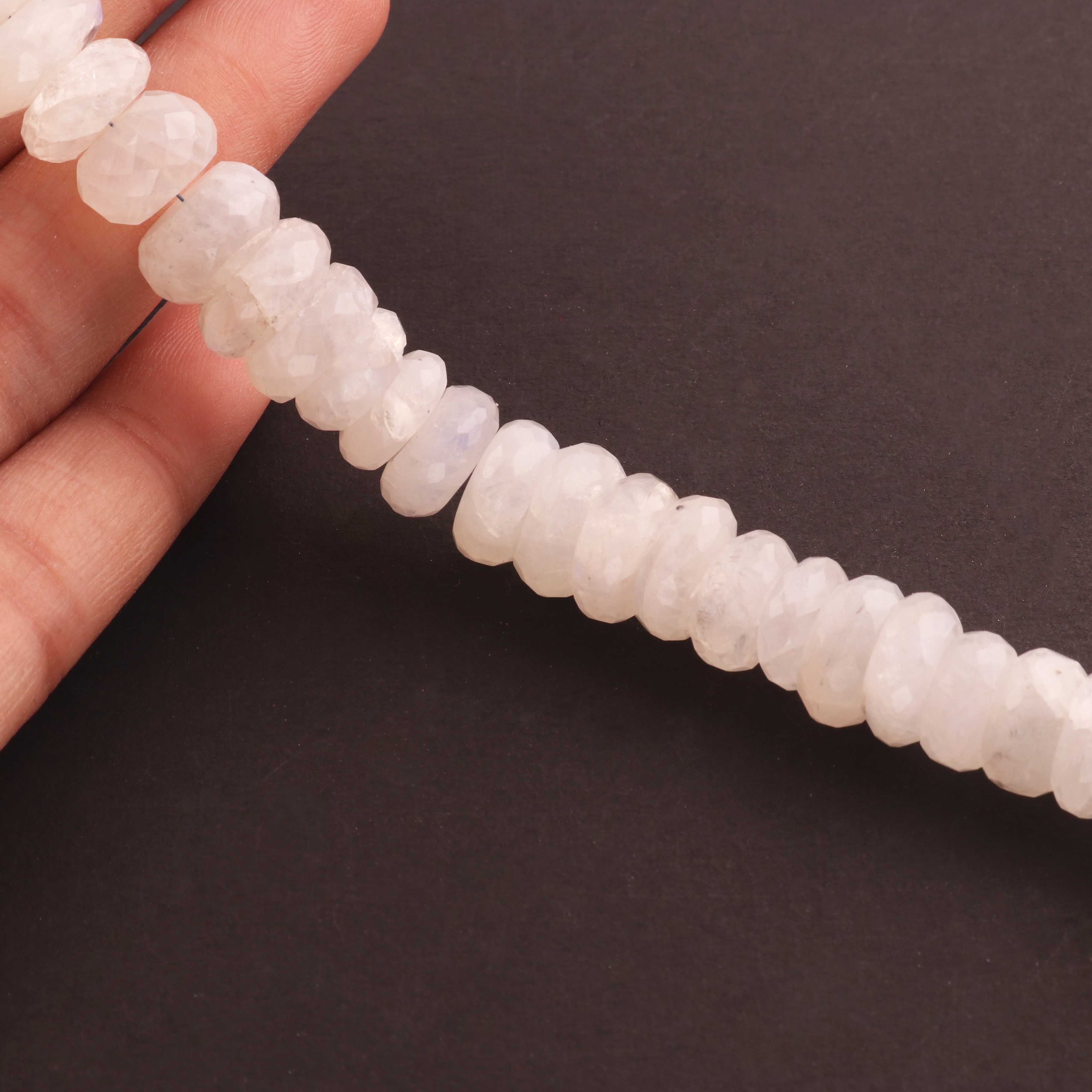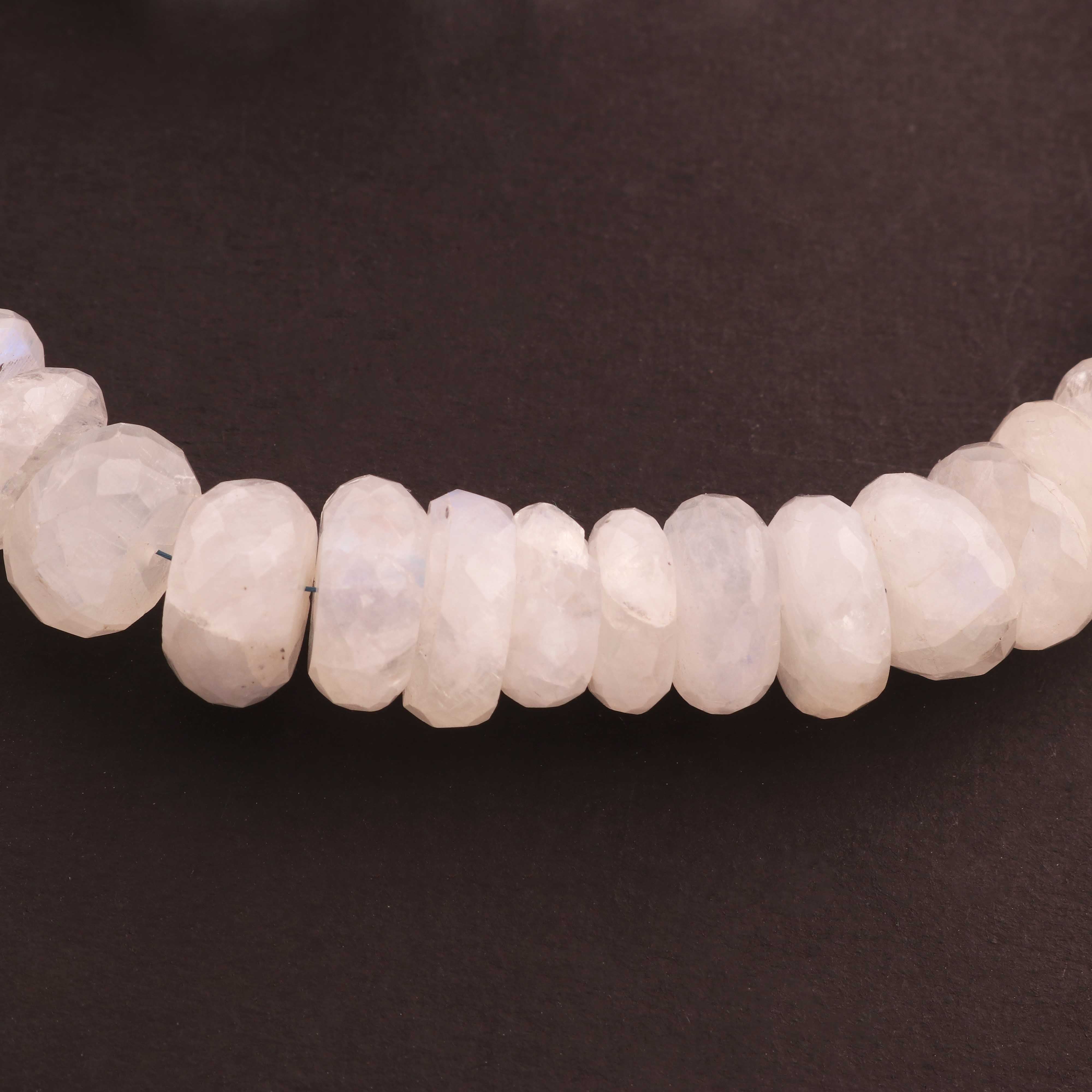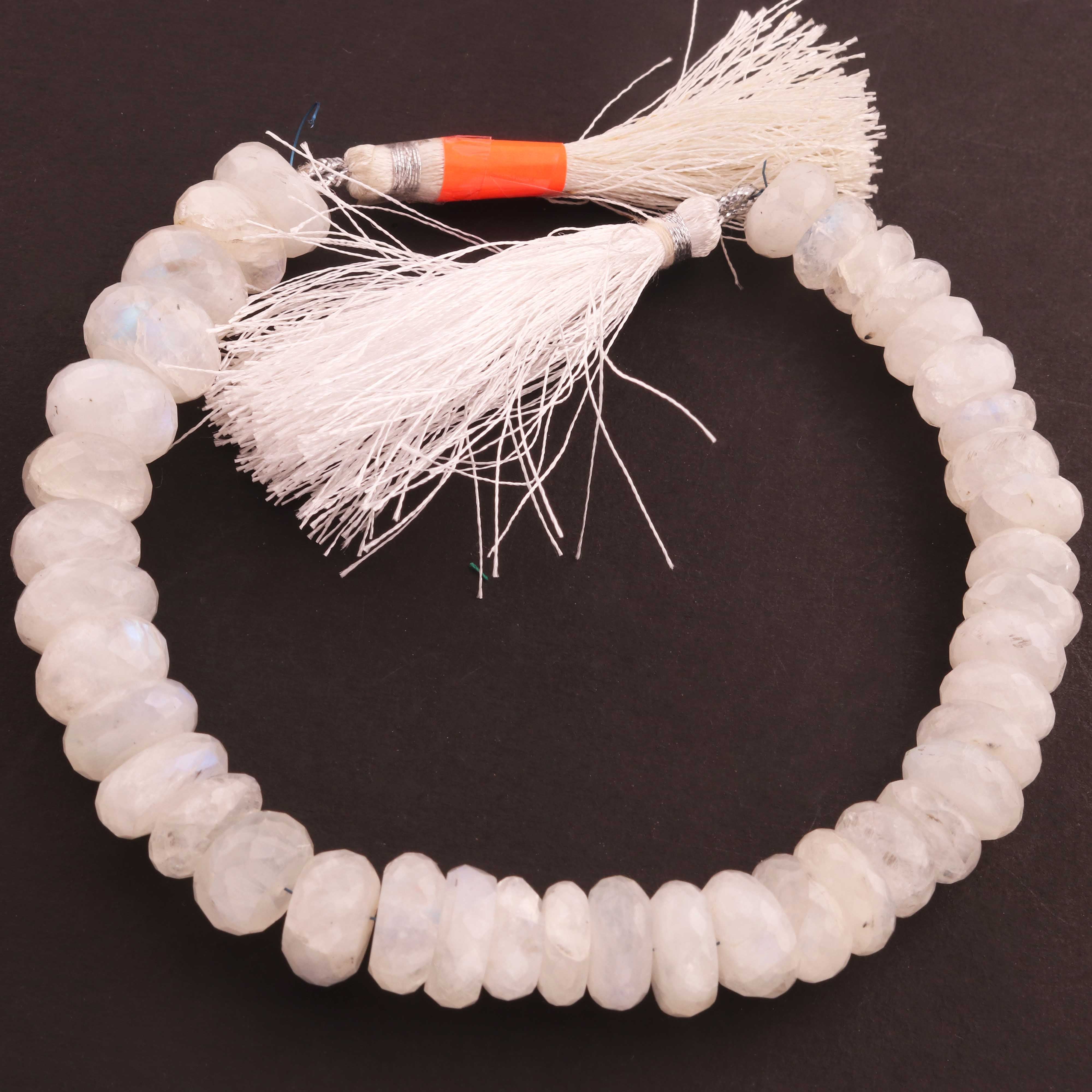 1 Strand White Rainbow Moonstone Faceted Rondelles - Gemstone Roundels- 11mm-14mm- 7Inches BR02513