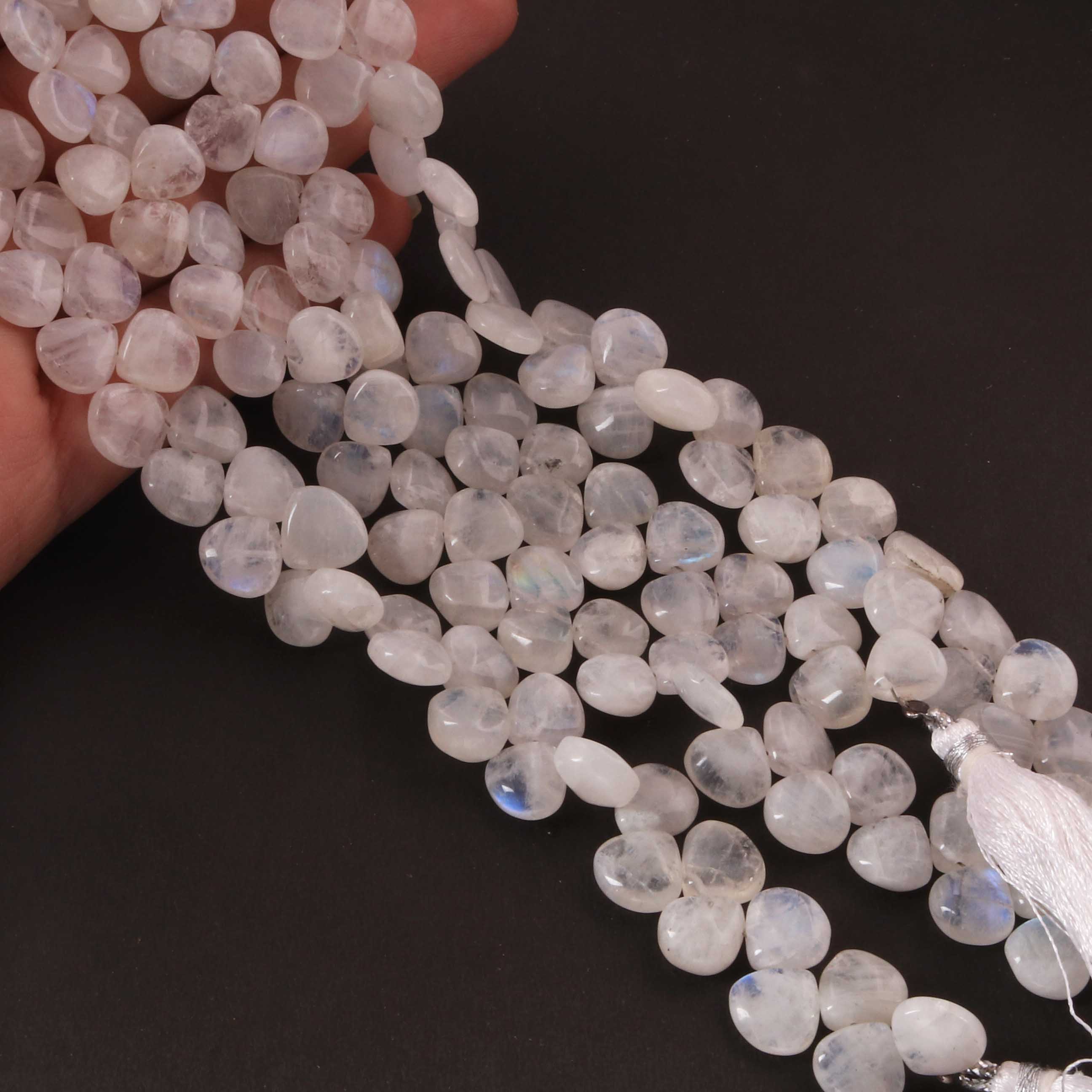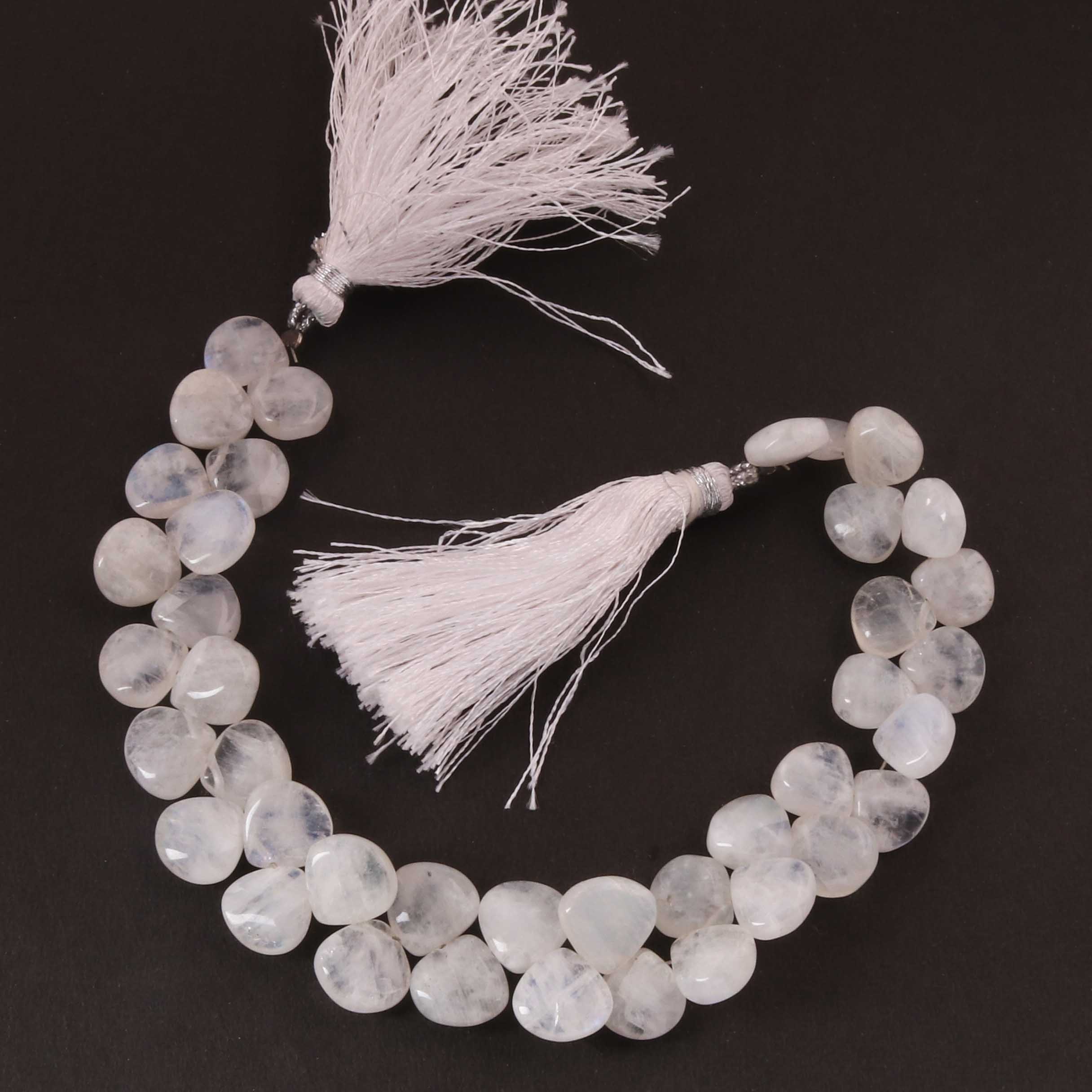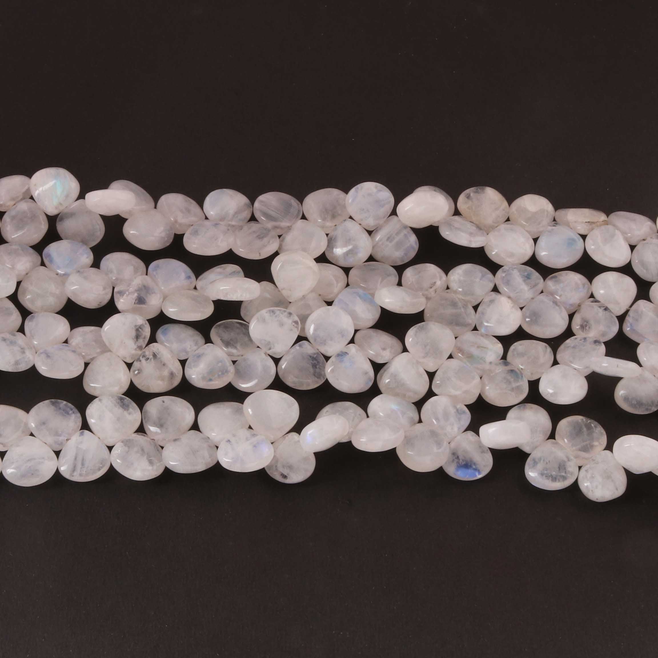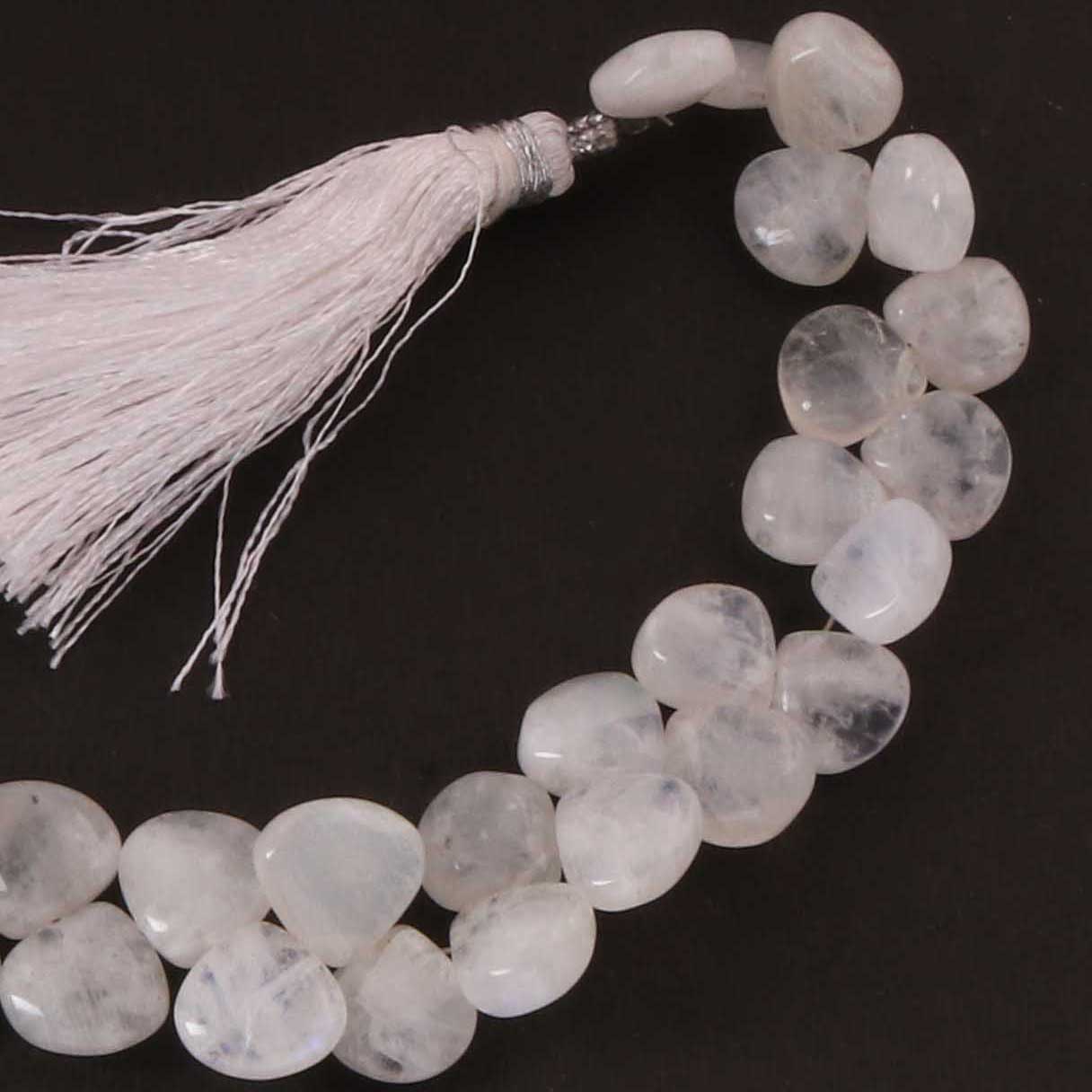 1 Strand White Rainbow Moonstone Smooth Heart Briolettes - 8mmx8mm-10mmx10mm 8 inches BR02103