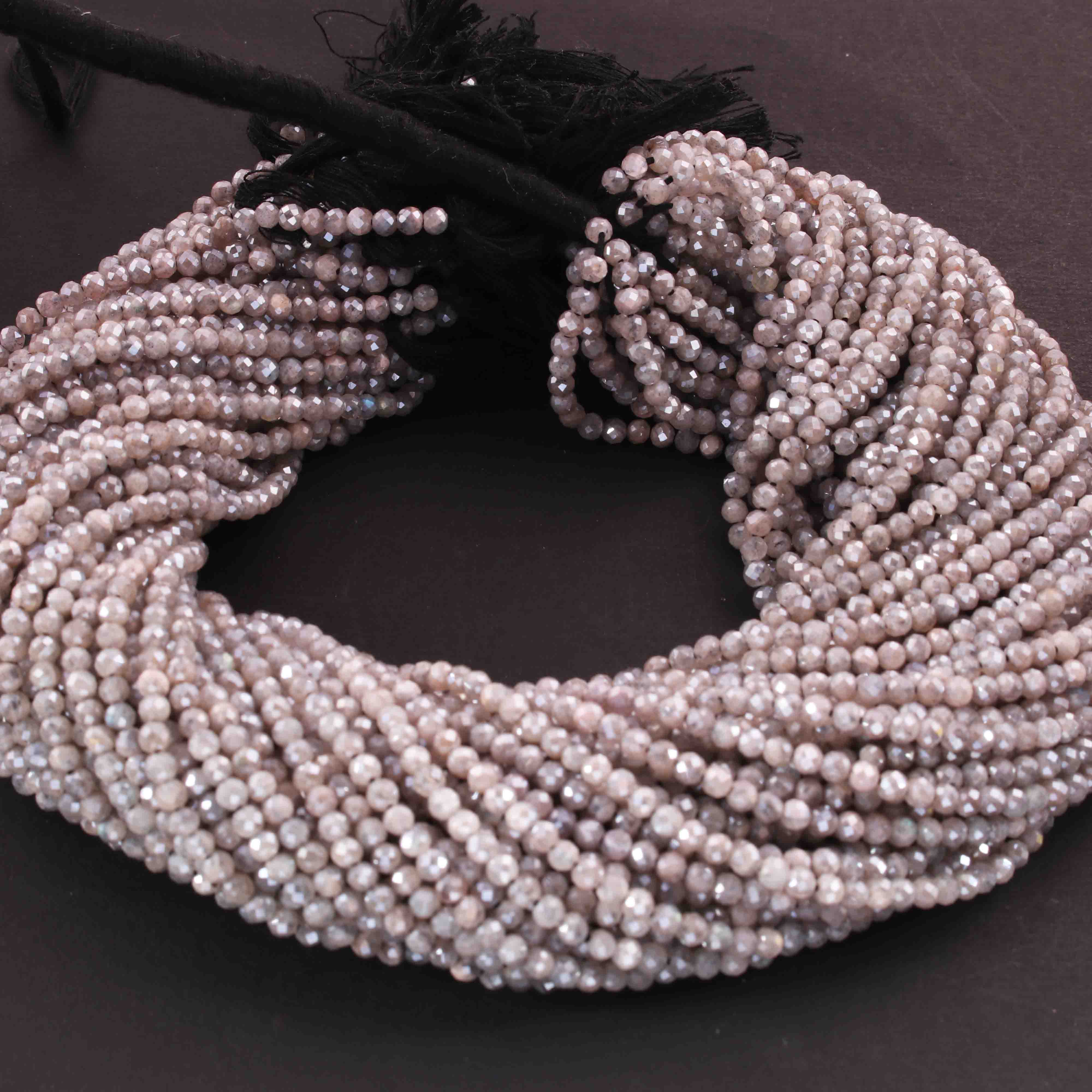 AAA Gray Silverite Micro Faceted 3mm Beads -RB476