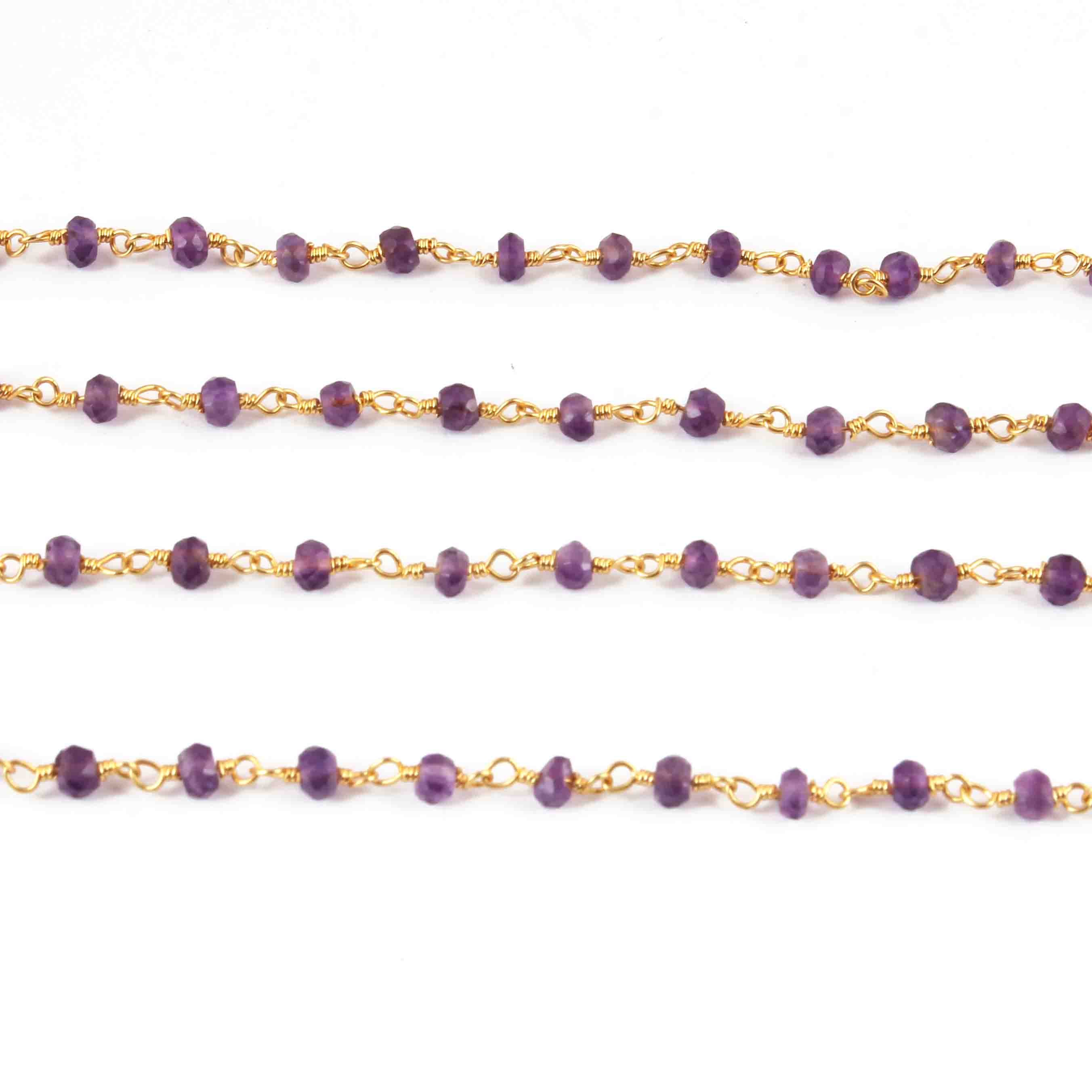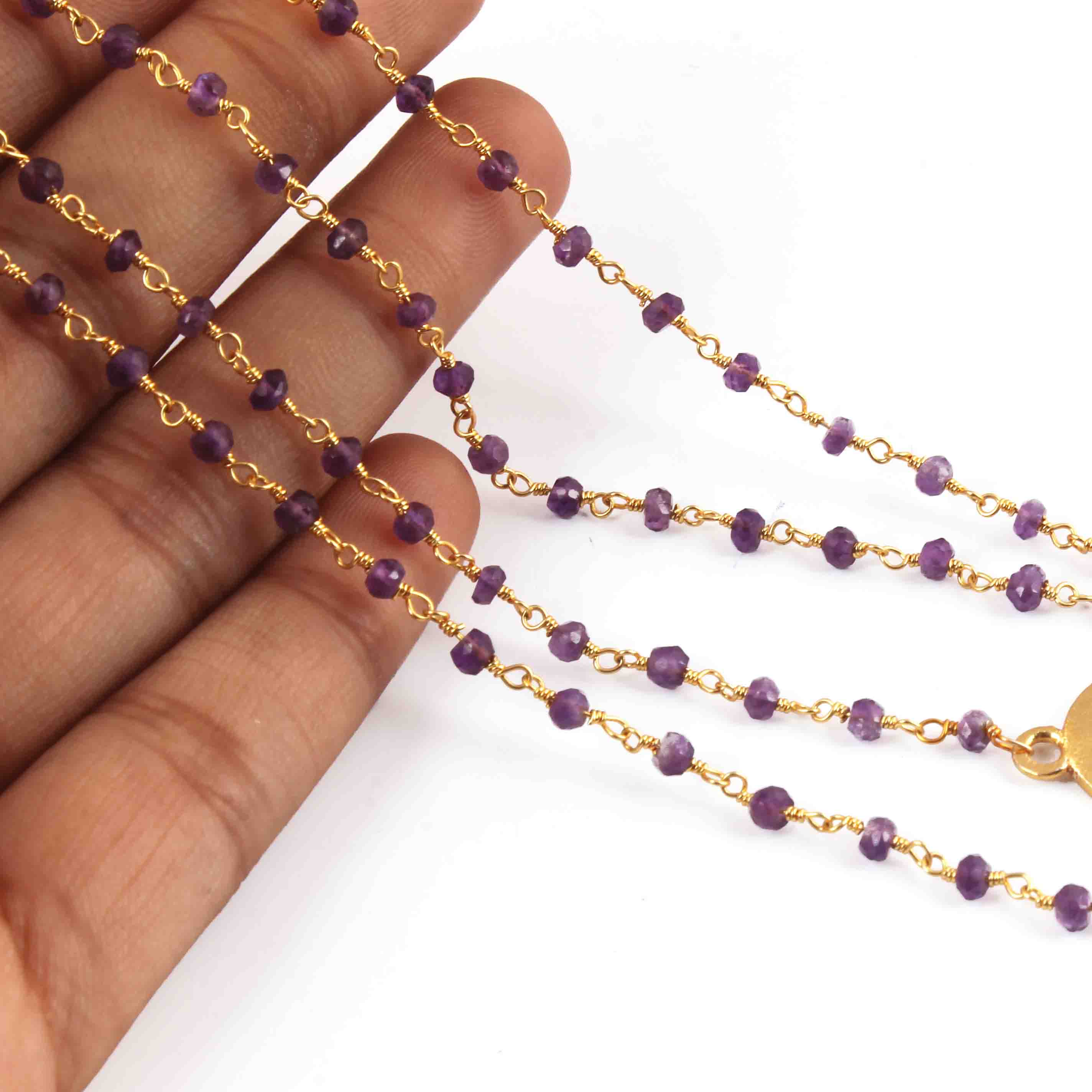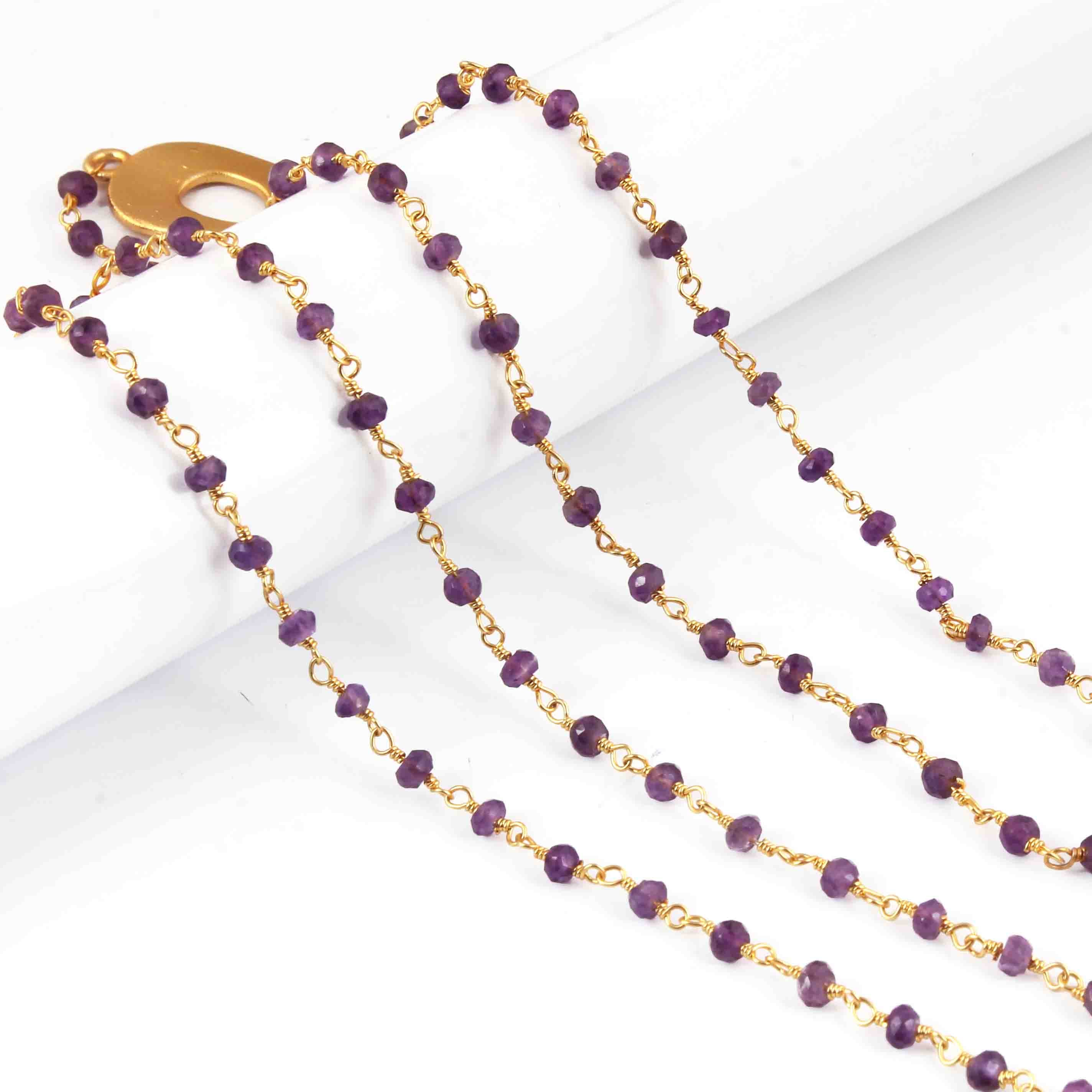 1 pcs Amethyst Chain Necklace - Faceted Sparkly Necklace ,Tiny Beaded 2mm, Necklace -32"Long GPC1344
