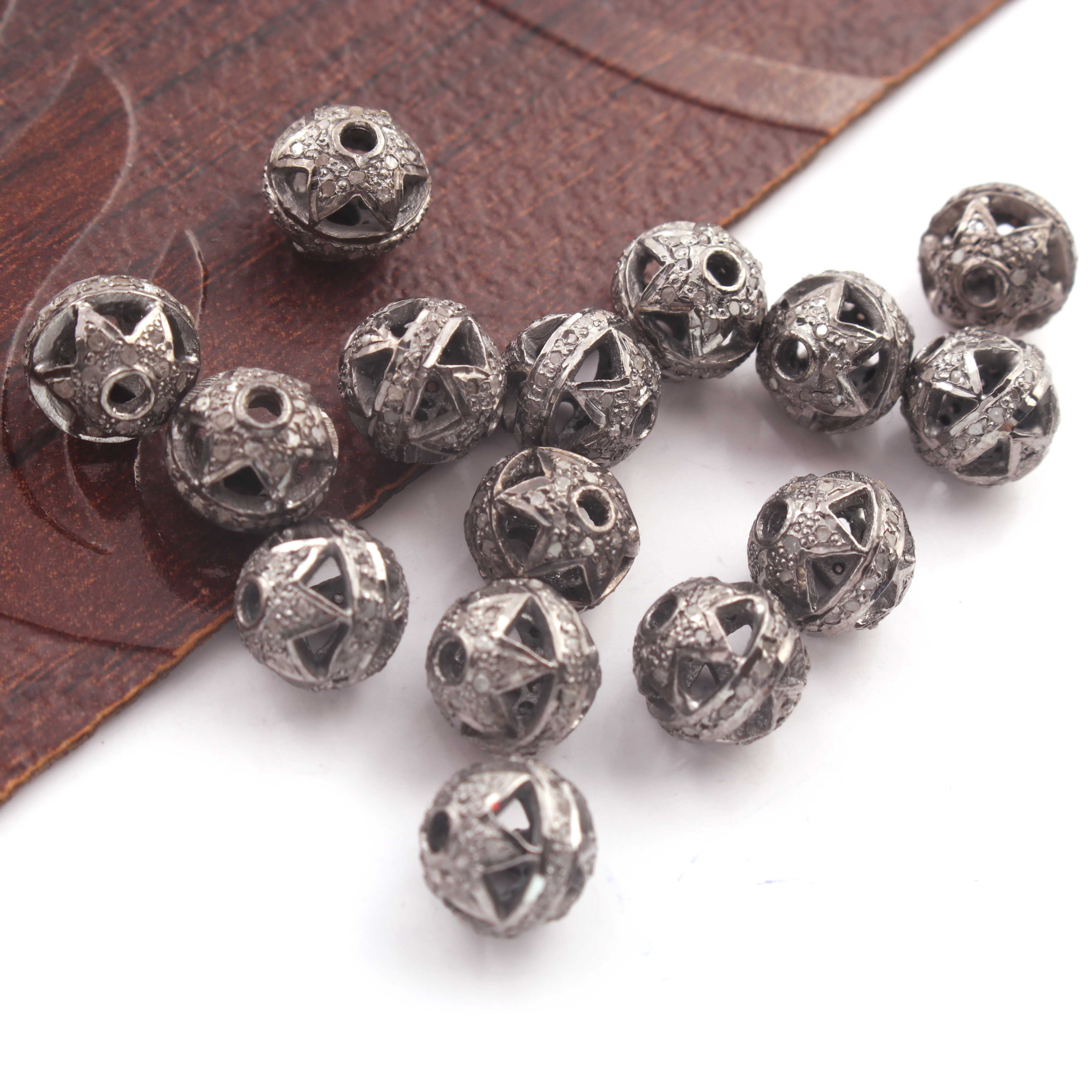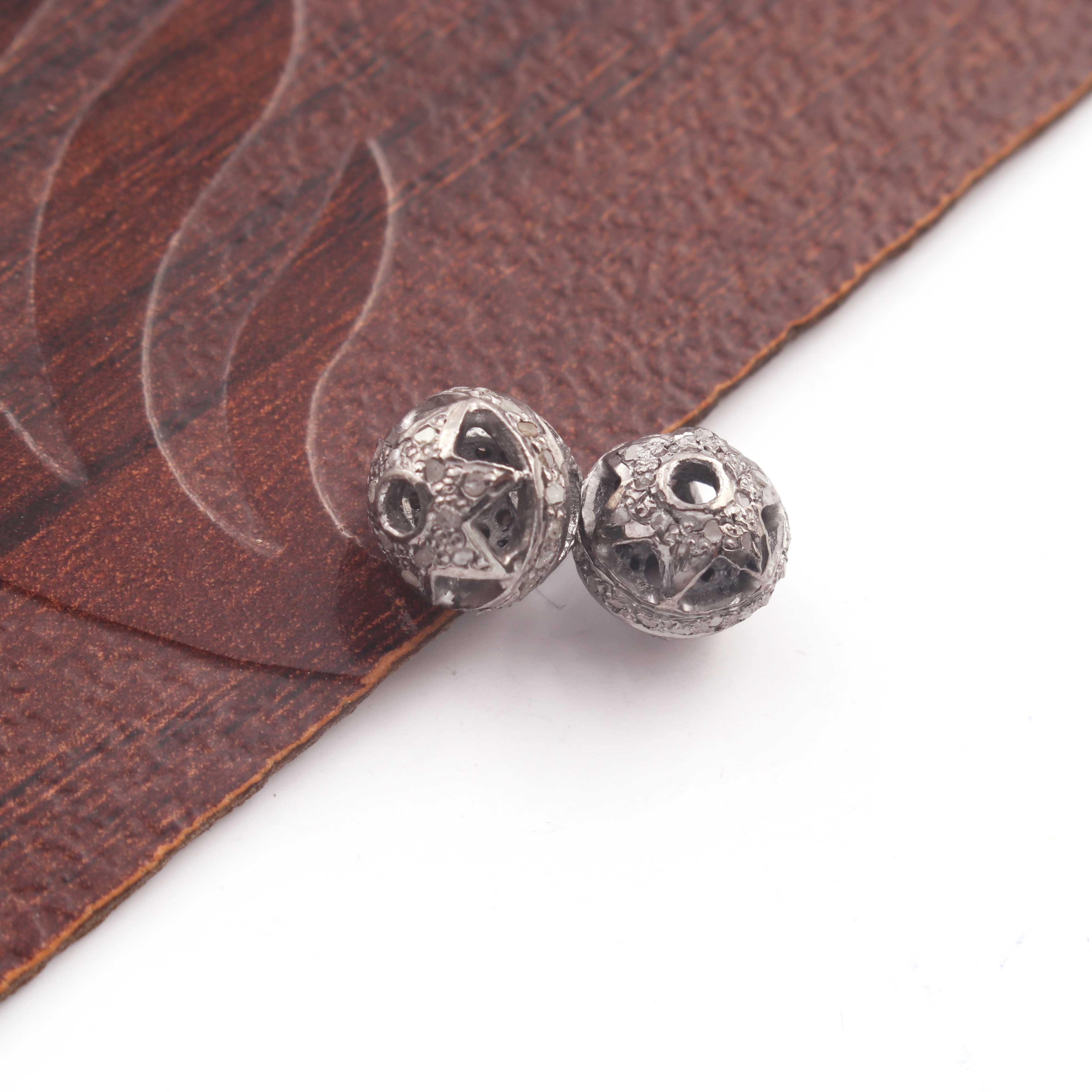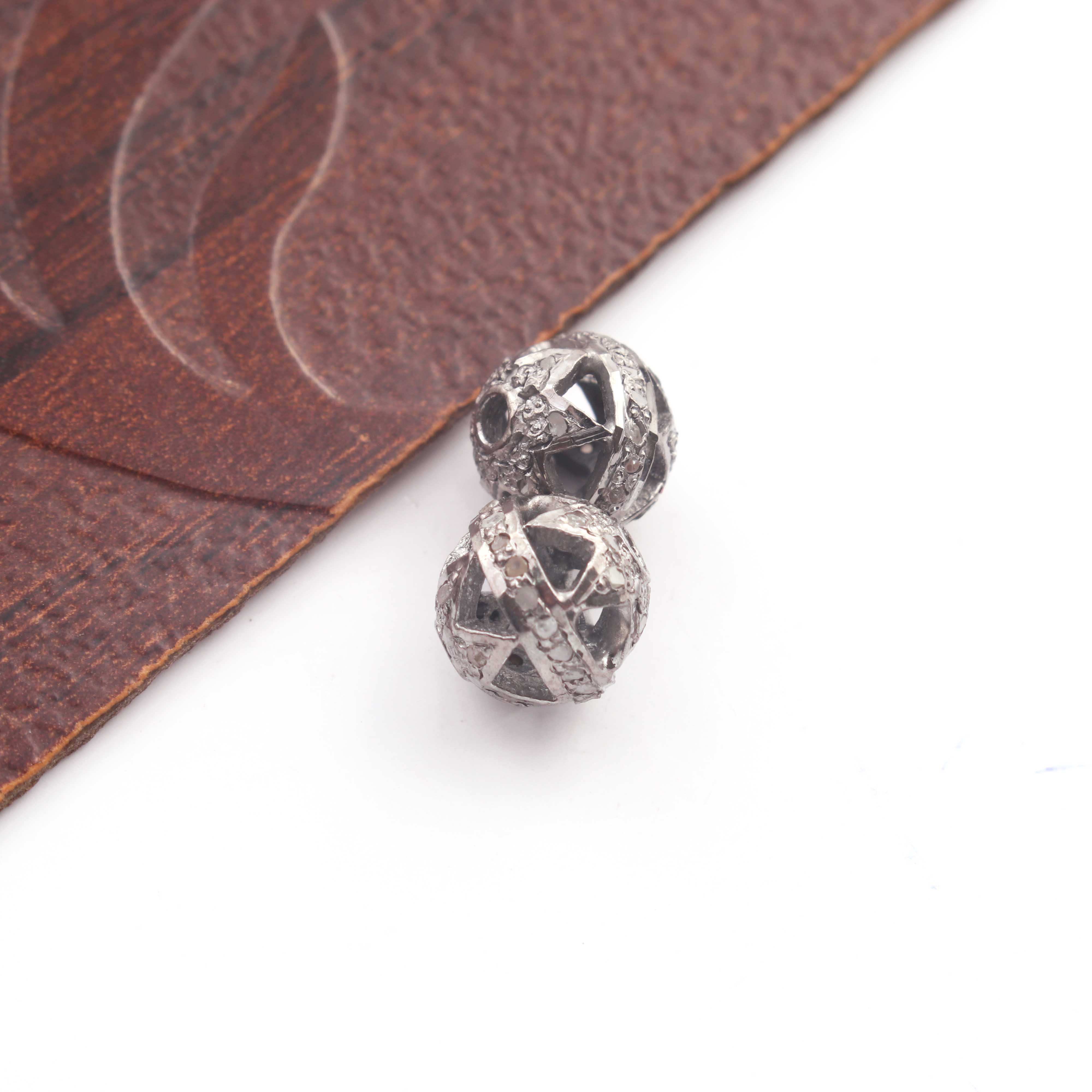 Listing Is For (1) Pc Pave Diamond Antique Finish Designer Ball Bead 925 Sterling Silver Bead - 8mm PDC1397