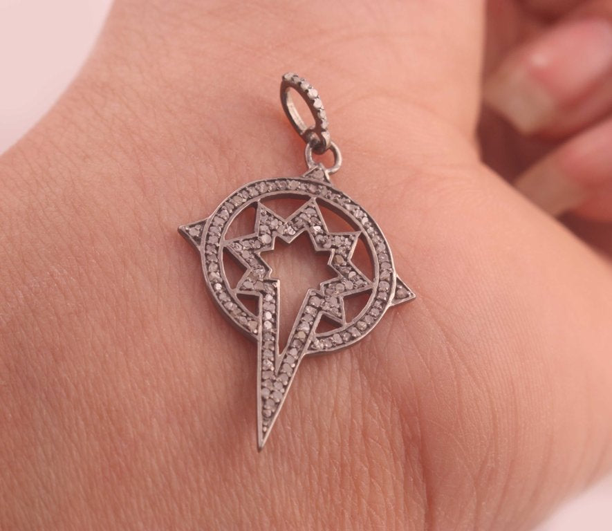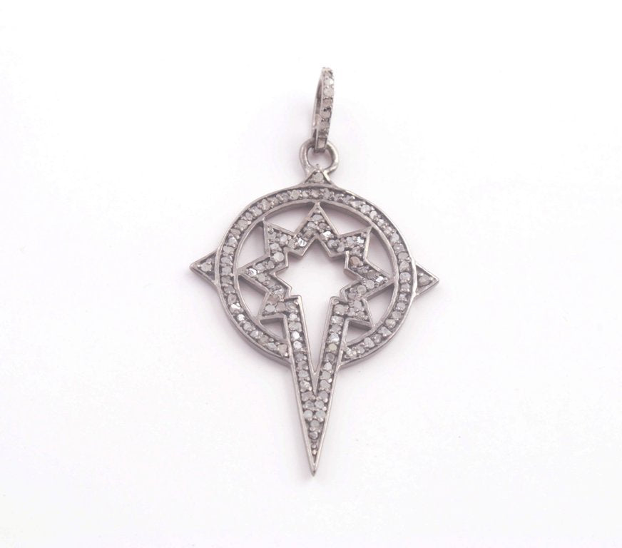 Listing Is For One (1) Pc Antique Finish Pave Diamond Designer Pendant - 925 Sterling Silver - Diamond Pendant 31mmx21mm RRPD008