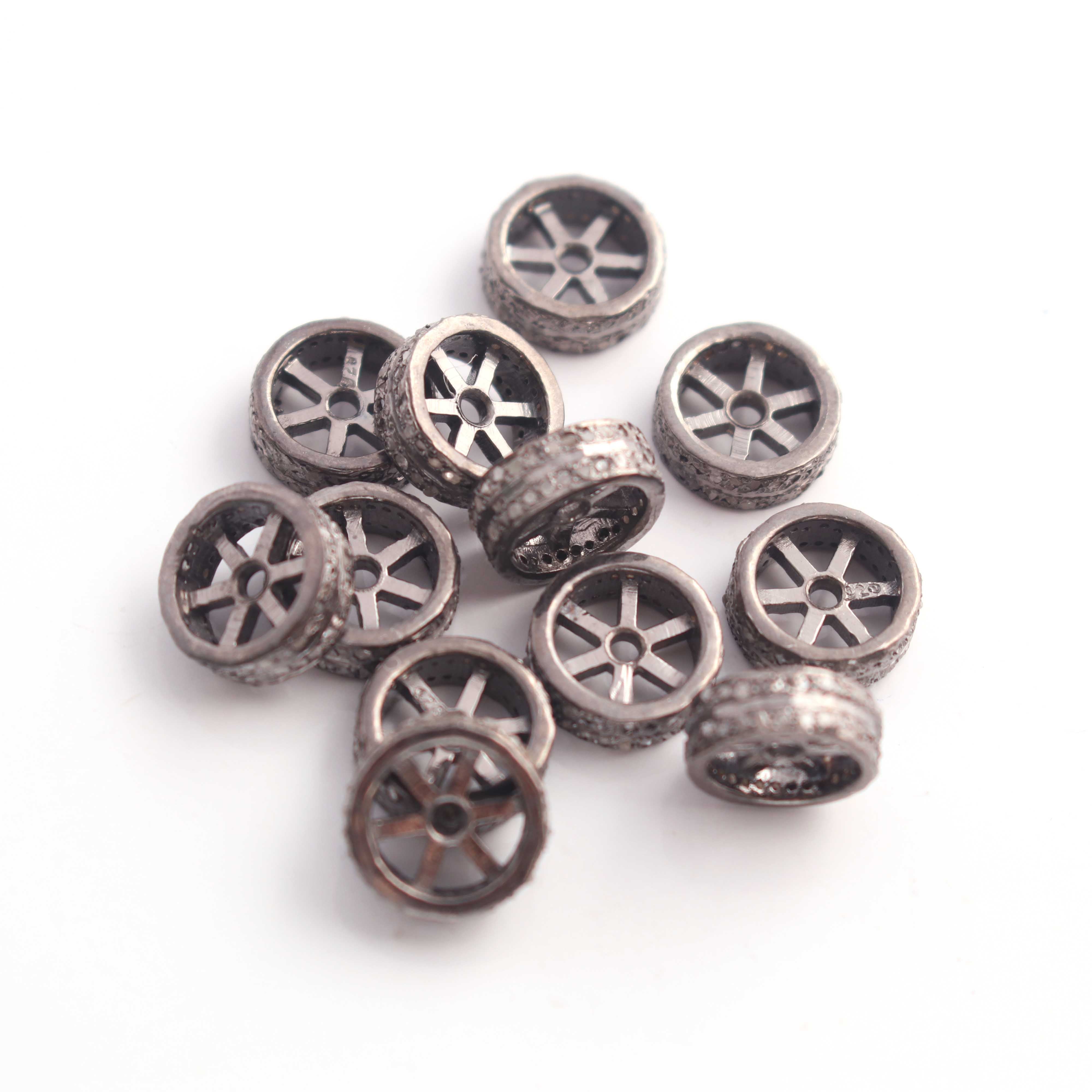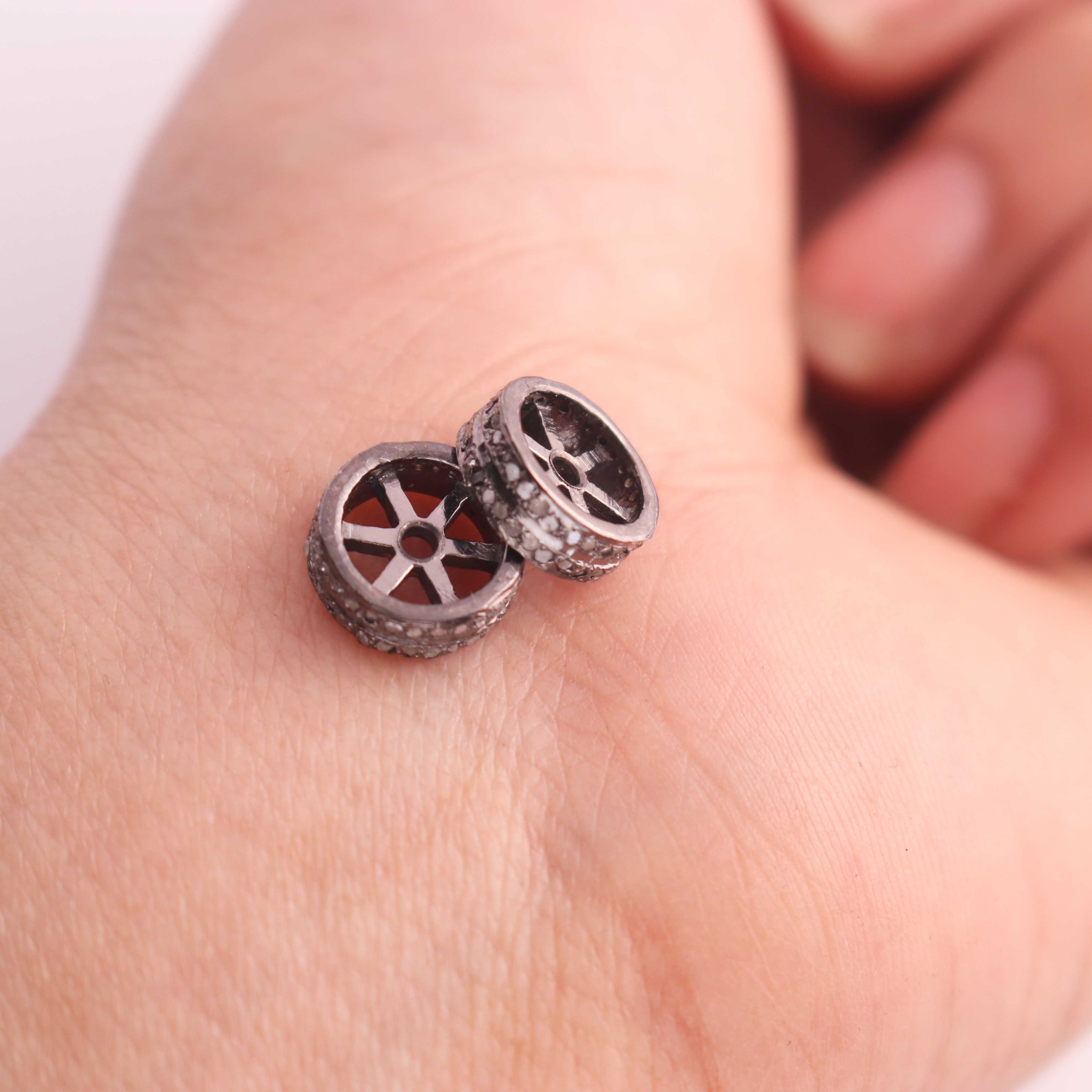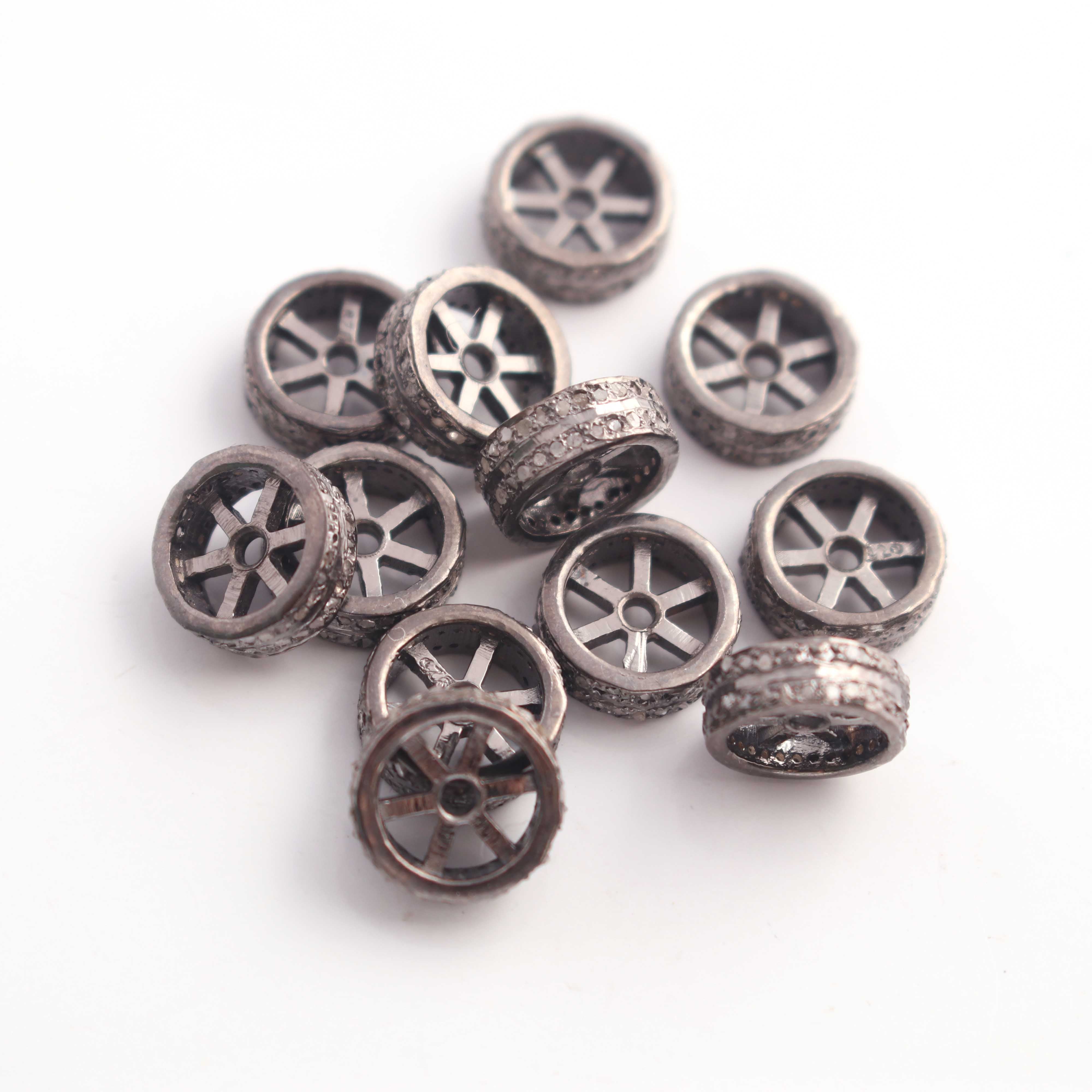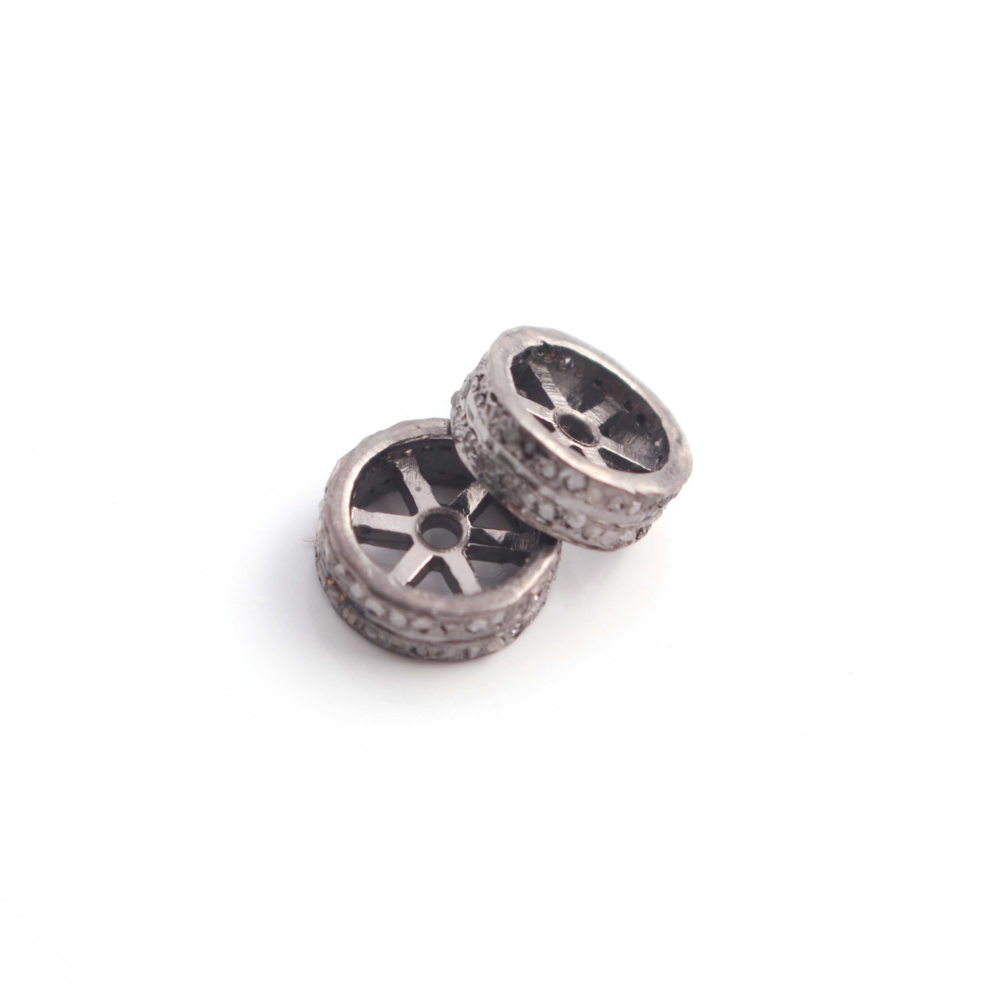A Beautiful 925 Sterling Silver Pave Diamond Wheel Pave Jewelry Beads.
