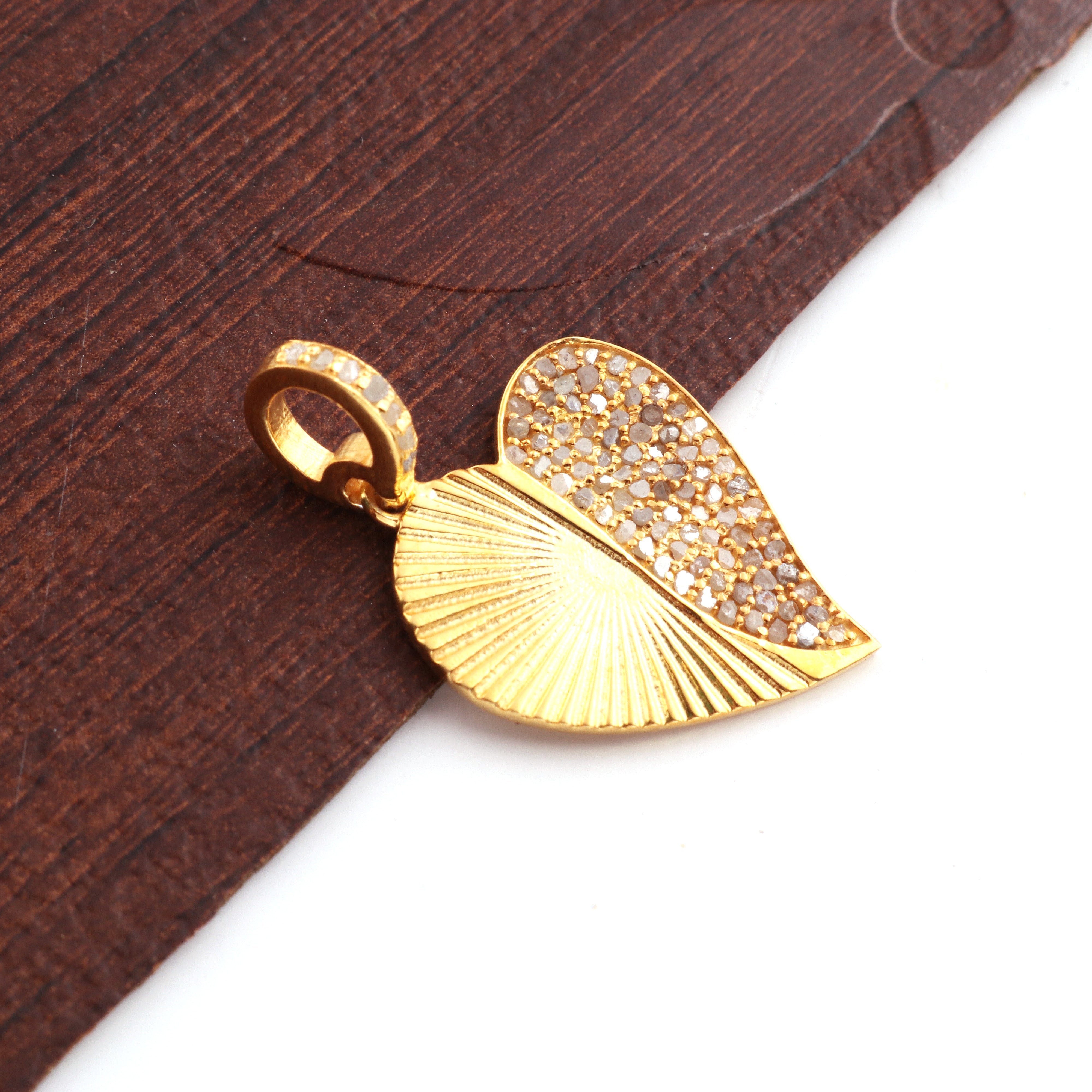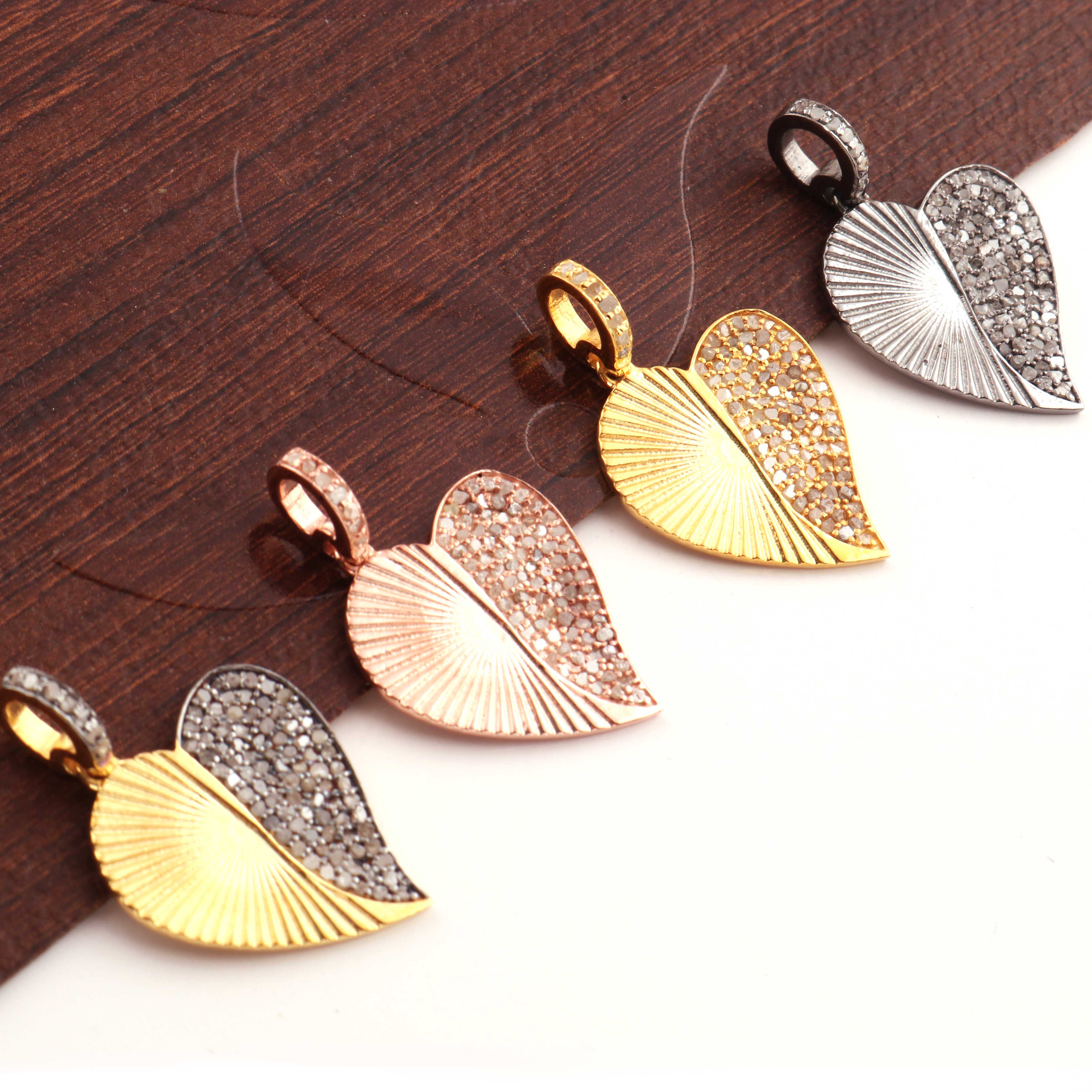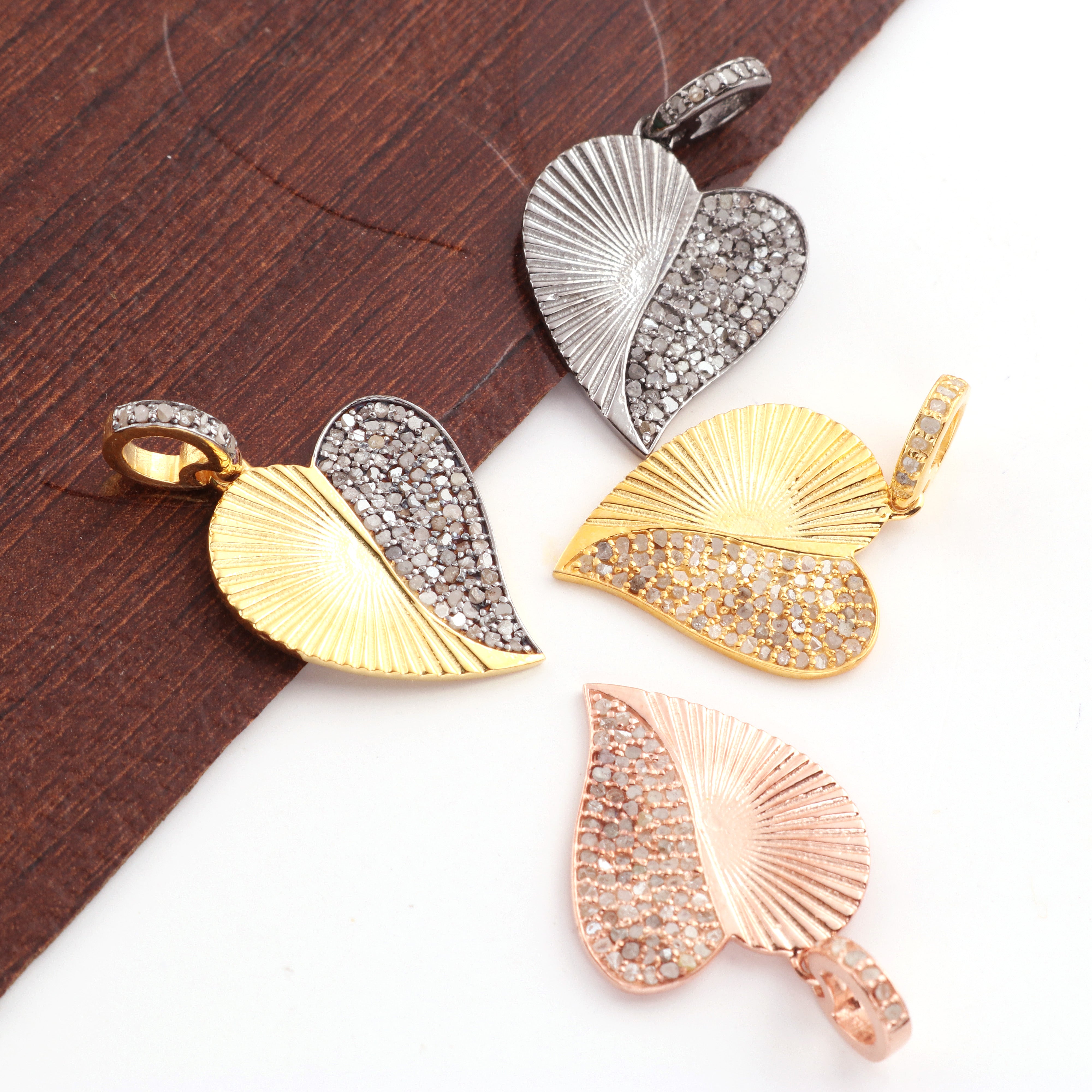 1 PC Antique Finish Pave Diamond Designer Heart Pendant - 925 Sterling Silver, Vermeil ,Yellow & Rose Gold Vermeil- Diamond Pendant 30mmx18mm PDC00379