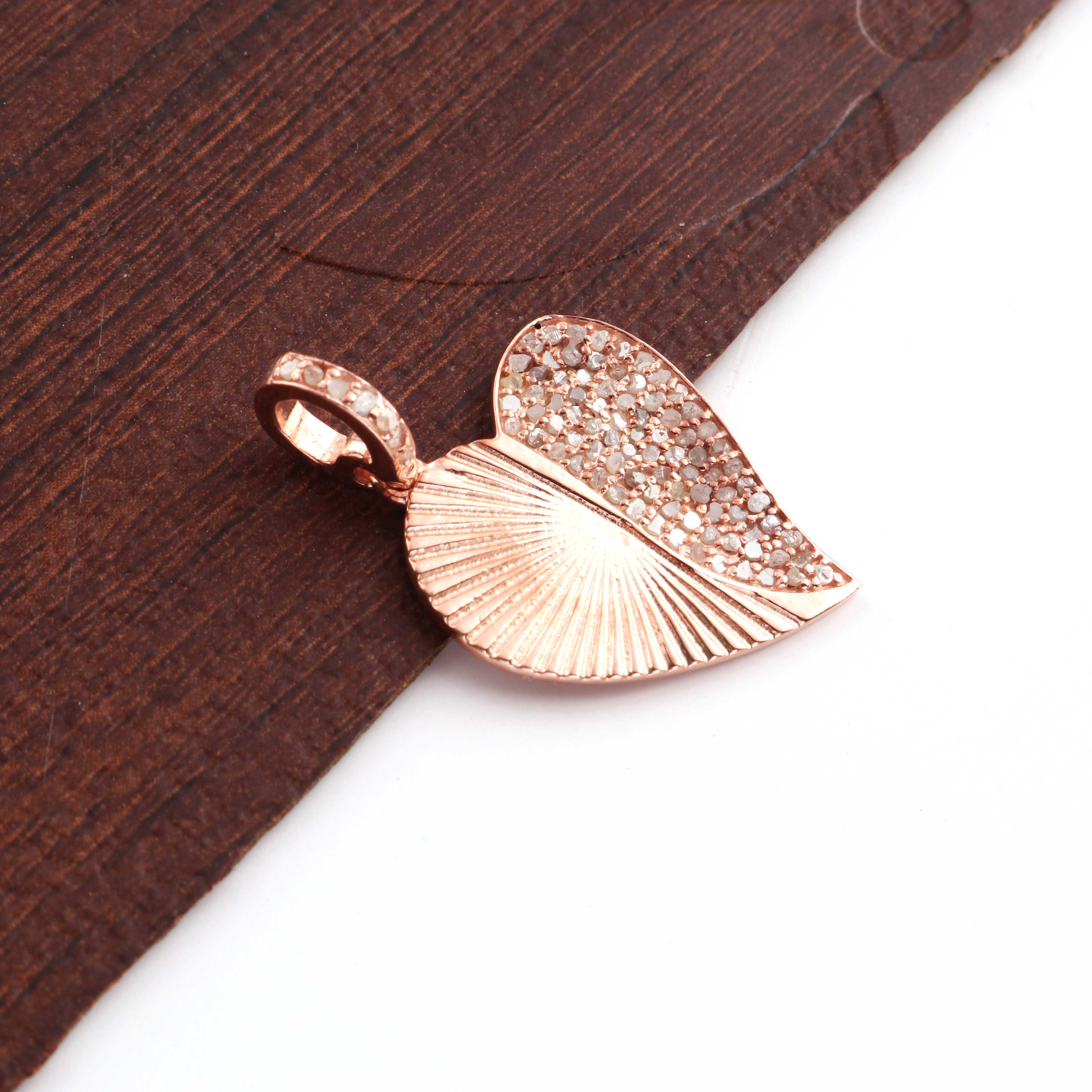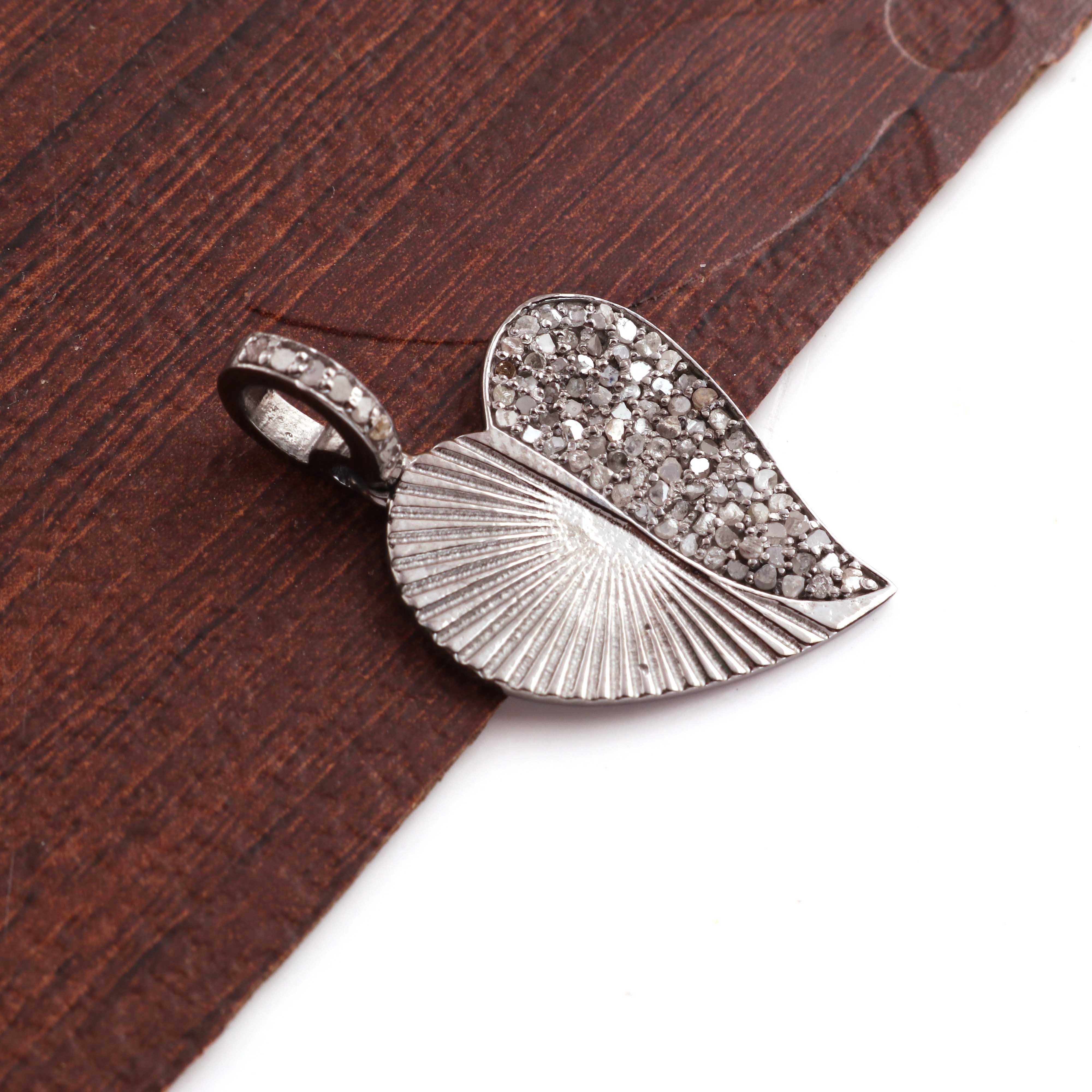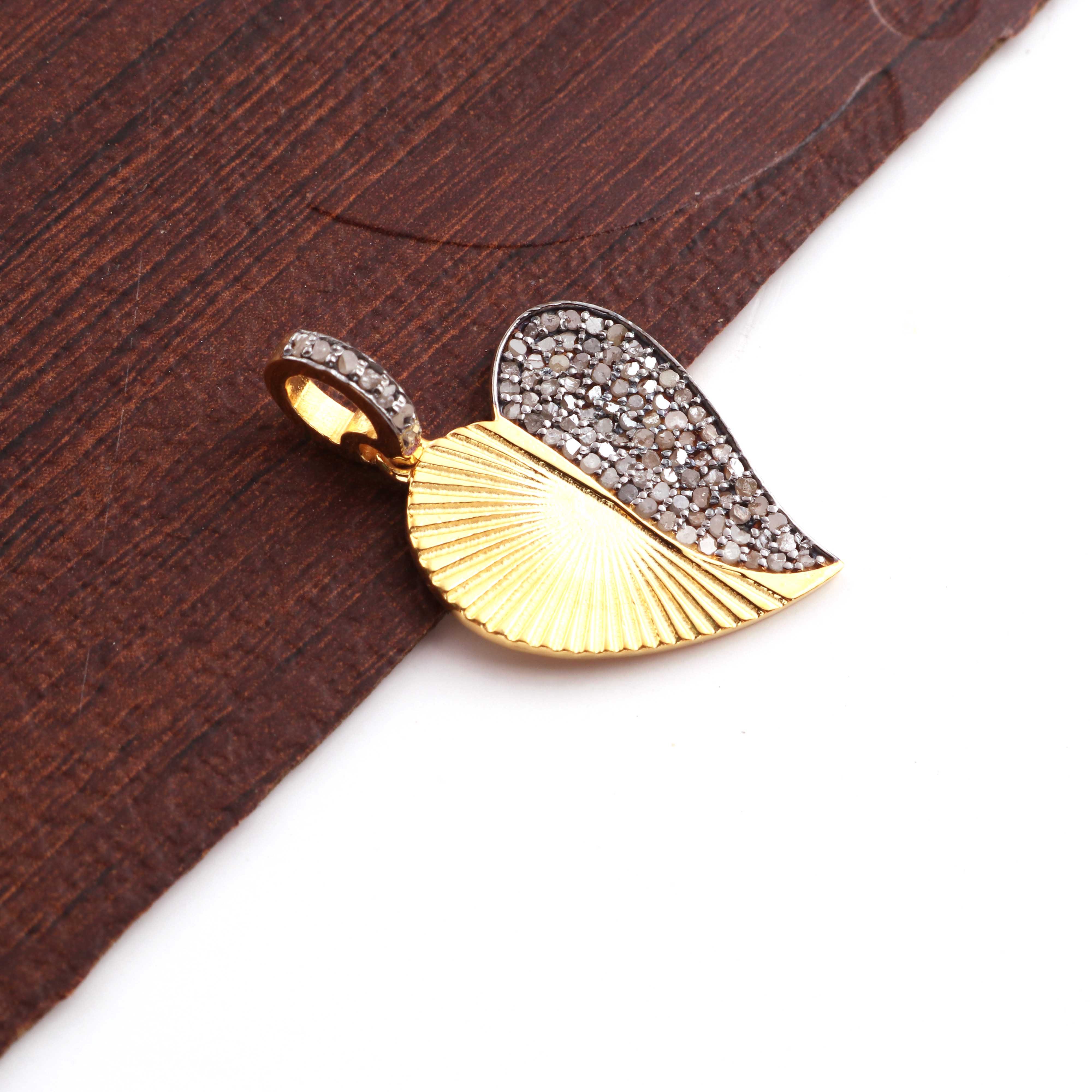 1 PC Antique Finish Pave Diamond Designer Heart Pendant - 925 Sterling Silver, Vermeil ,Yellow & Rose Gold Vermeil- Diamond Pendant 30mmx18mm PDC00379