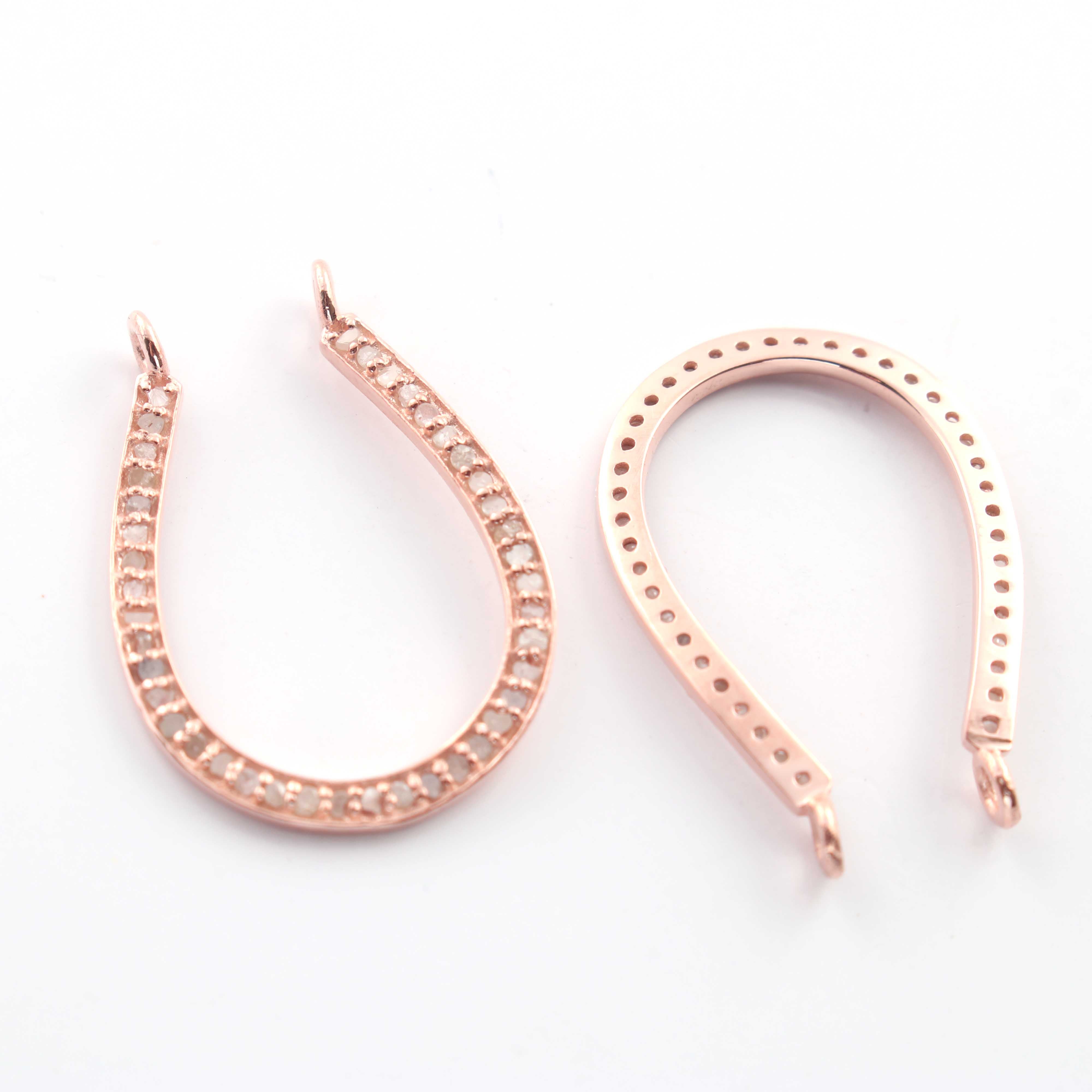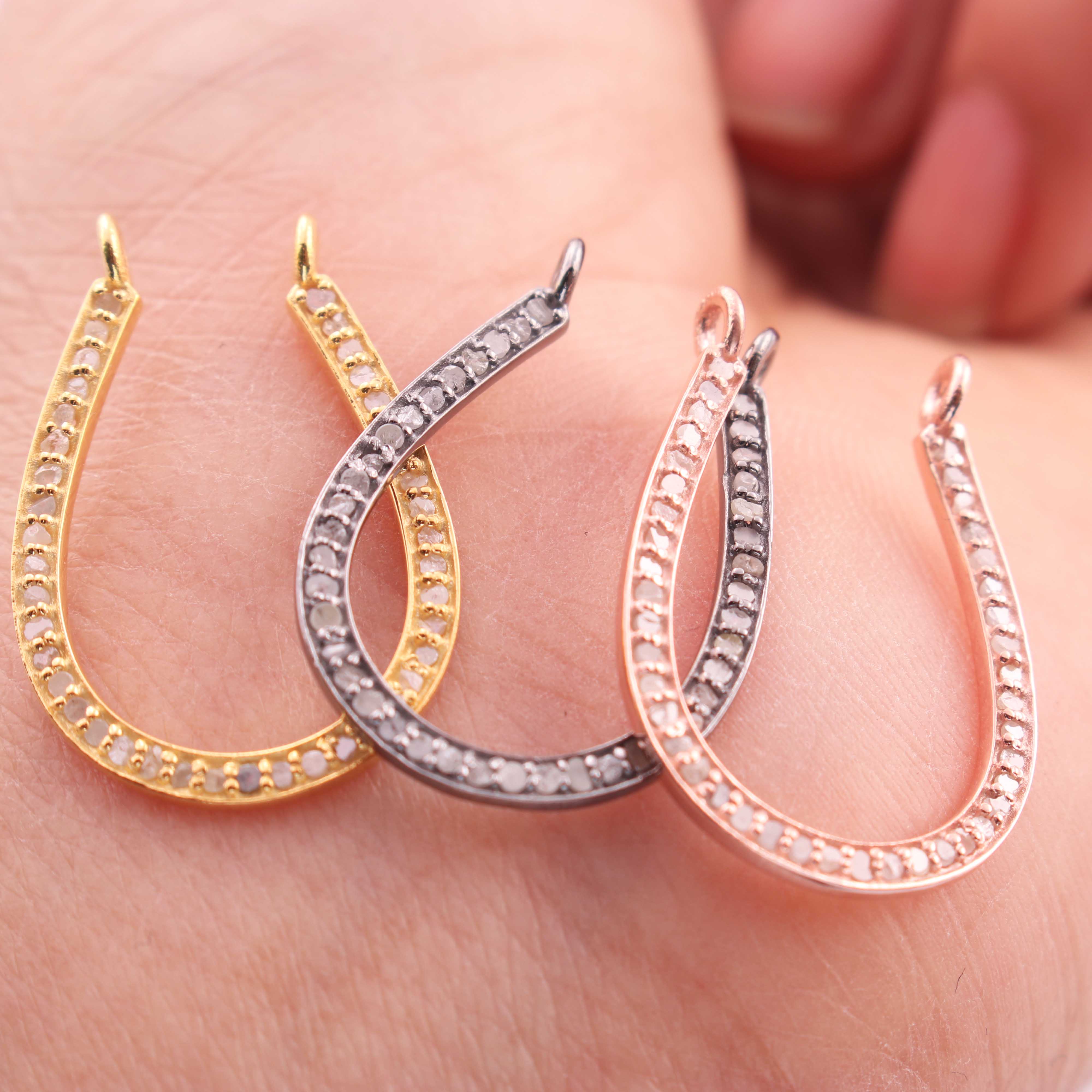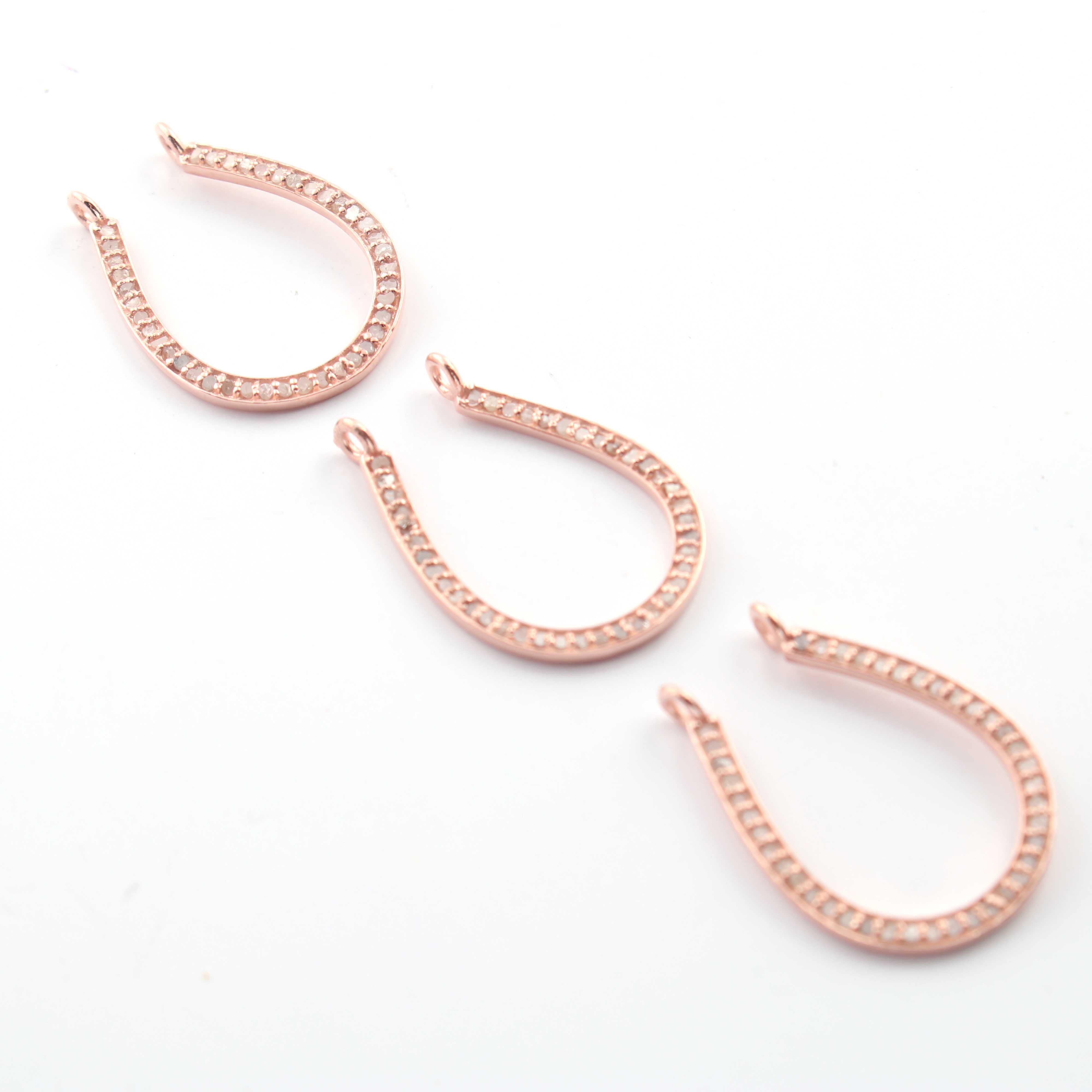 1 PC Pave Diamond Horse Shoe Sterling SIlver, Rose & Yellow Gold Vermeil Pendant Diamond - 27mmx20mm PDC00187