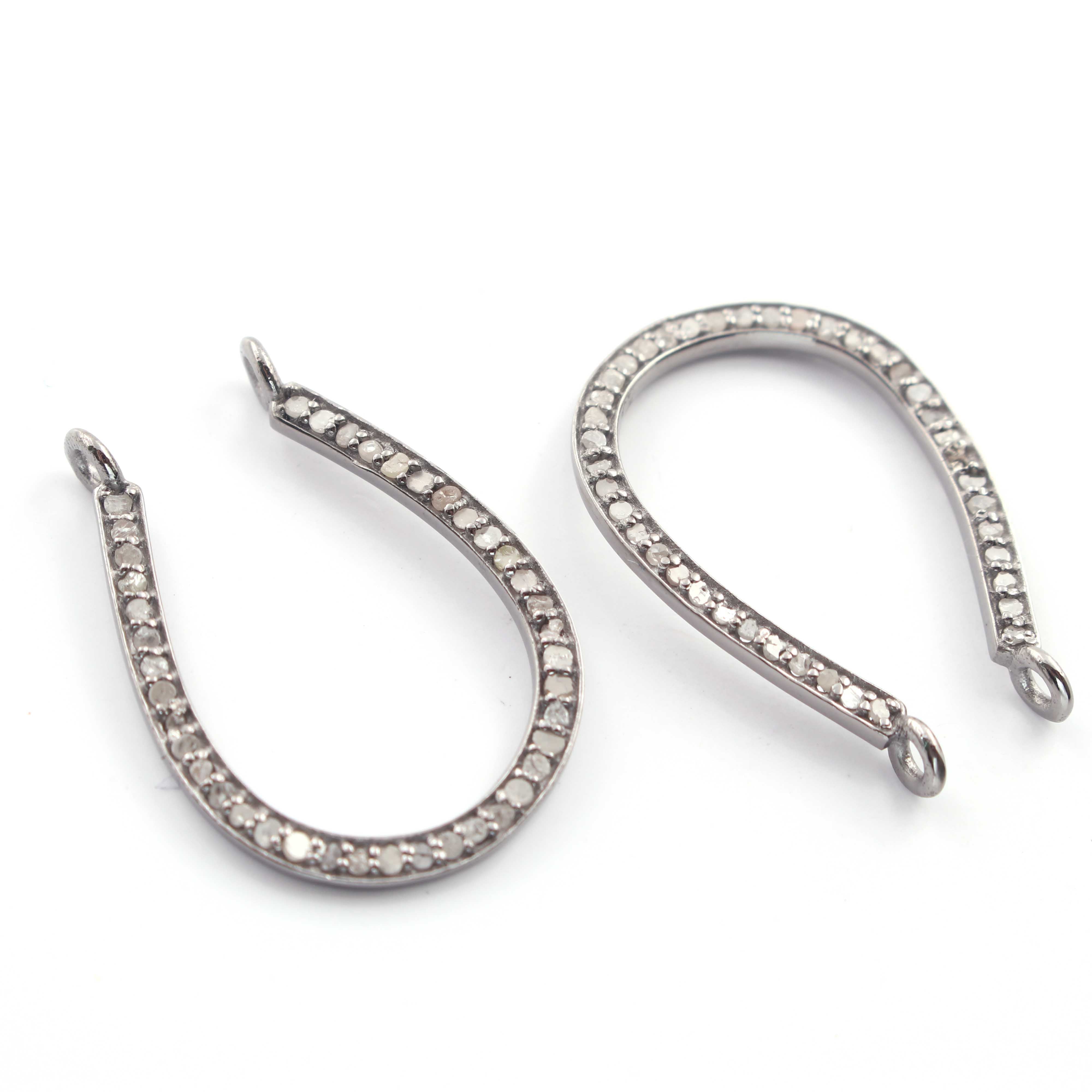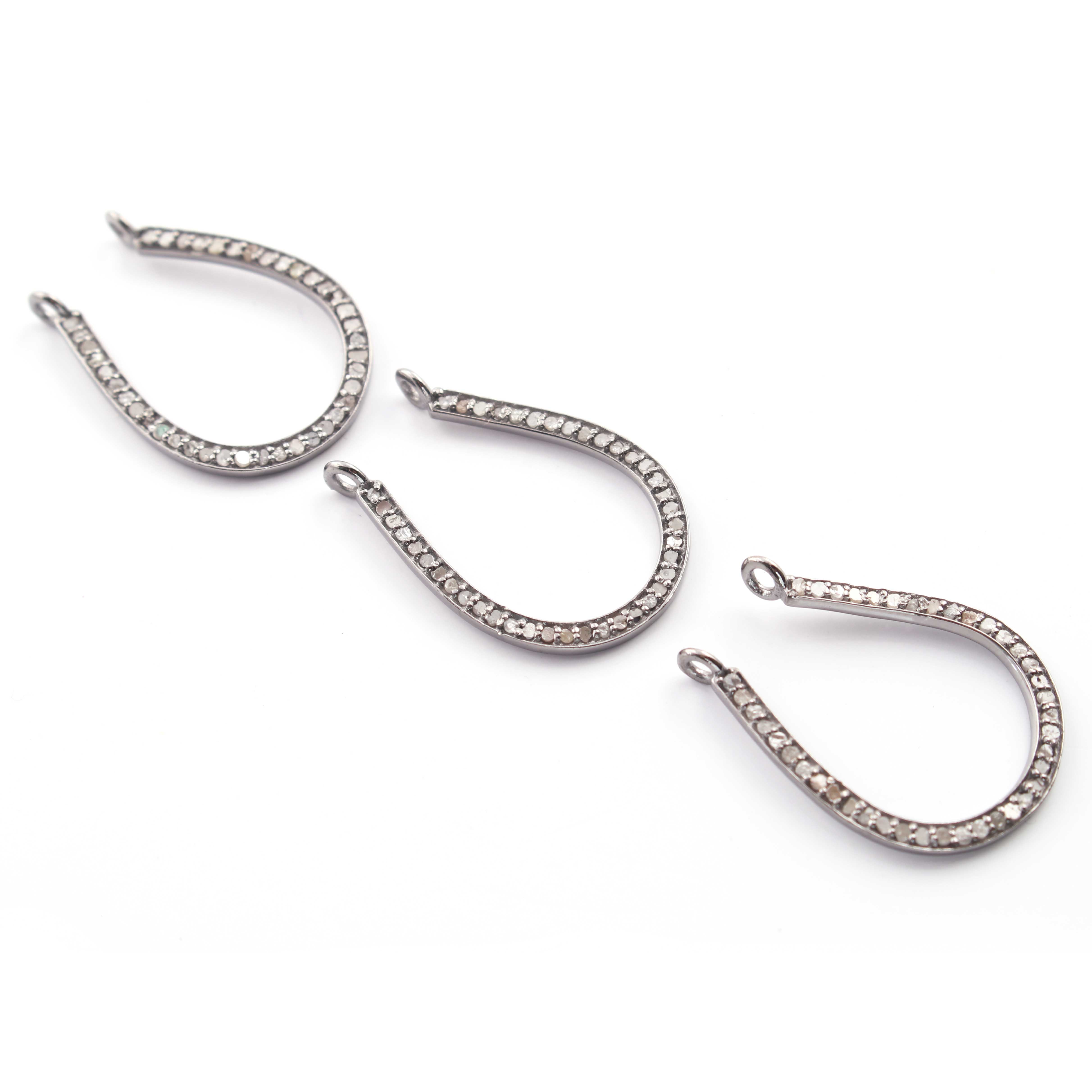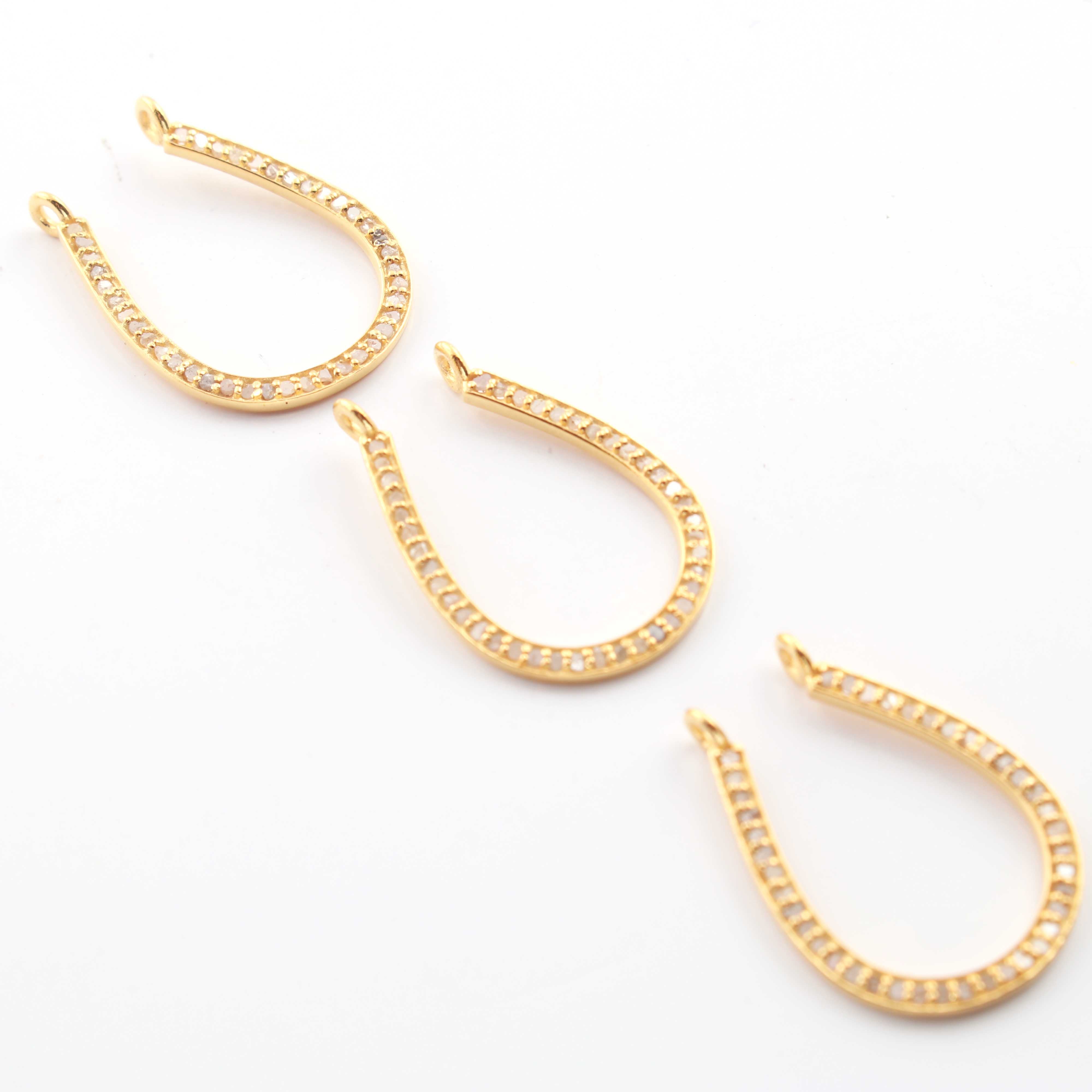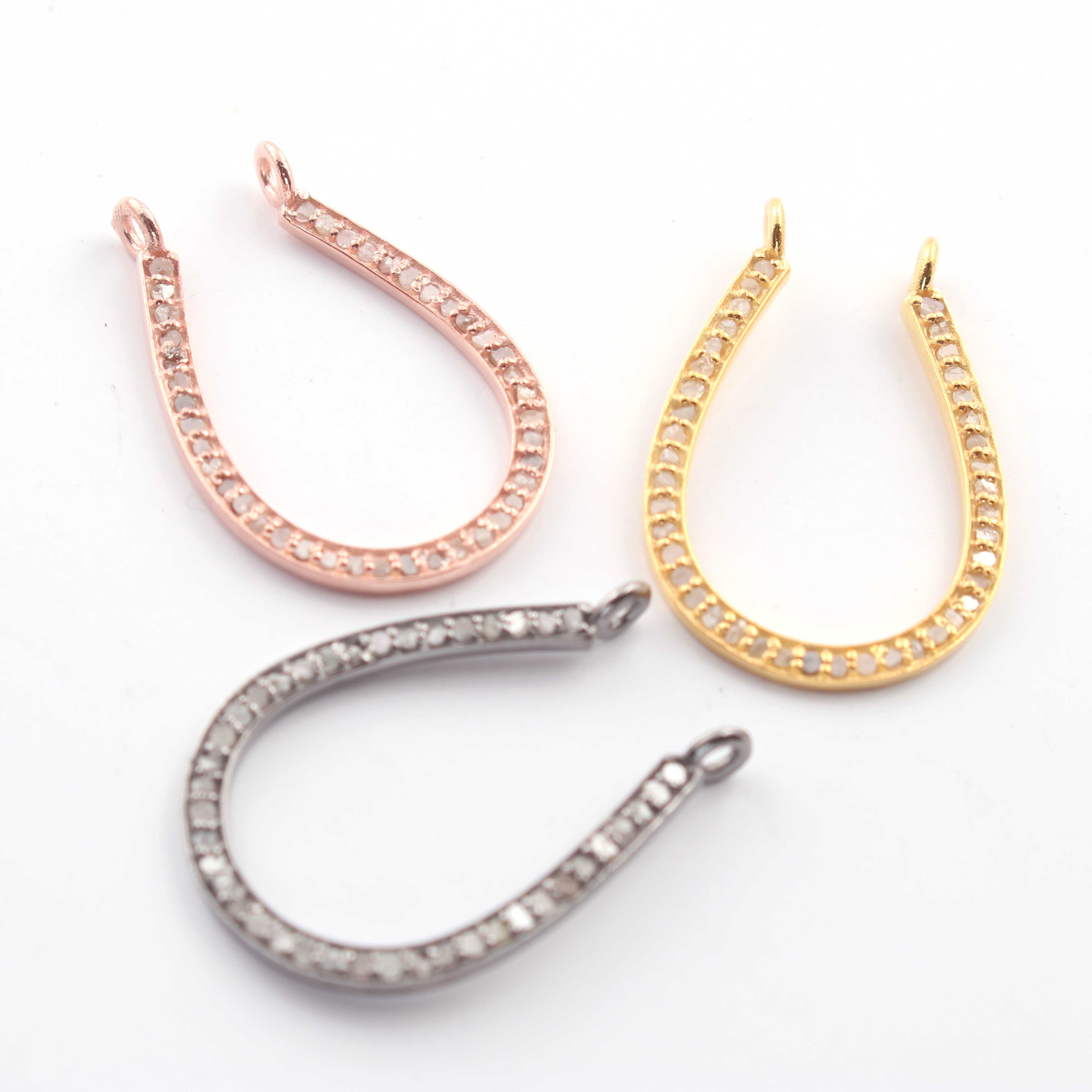 1 PC Pave Diamond Horse Shoe Sterling SIlver, Rose & Yellow Gold Vermeil Pendant Diamond - 27mmx20mm PDC00187