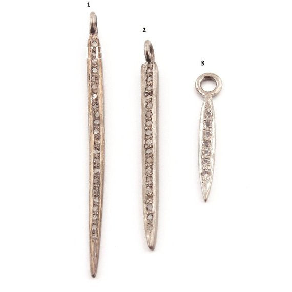 A Beautiful Pave Diamond Spike Charm Pendant 925 Sterling Silver