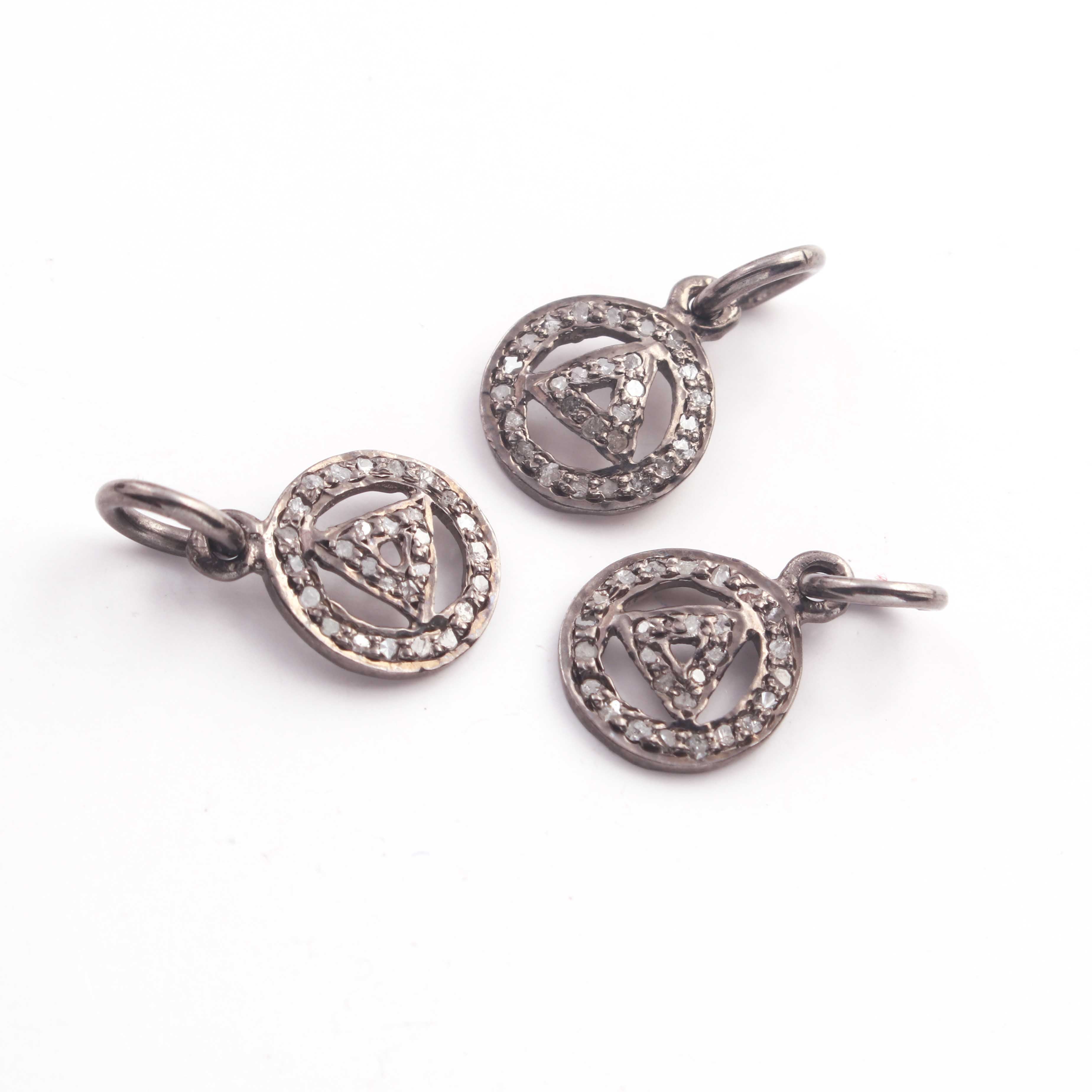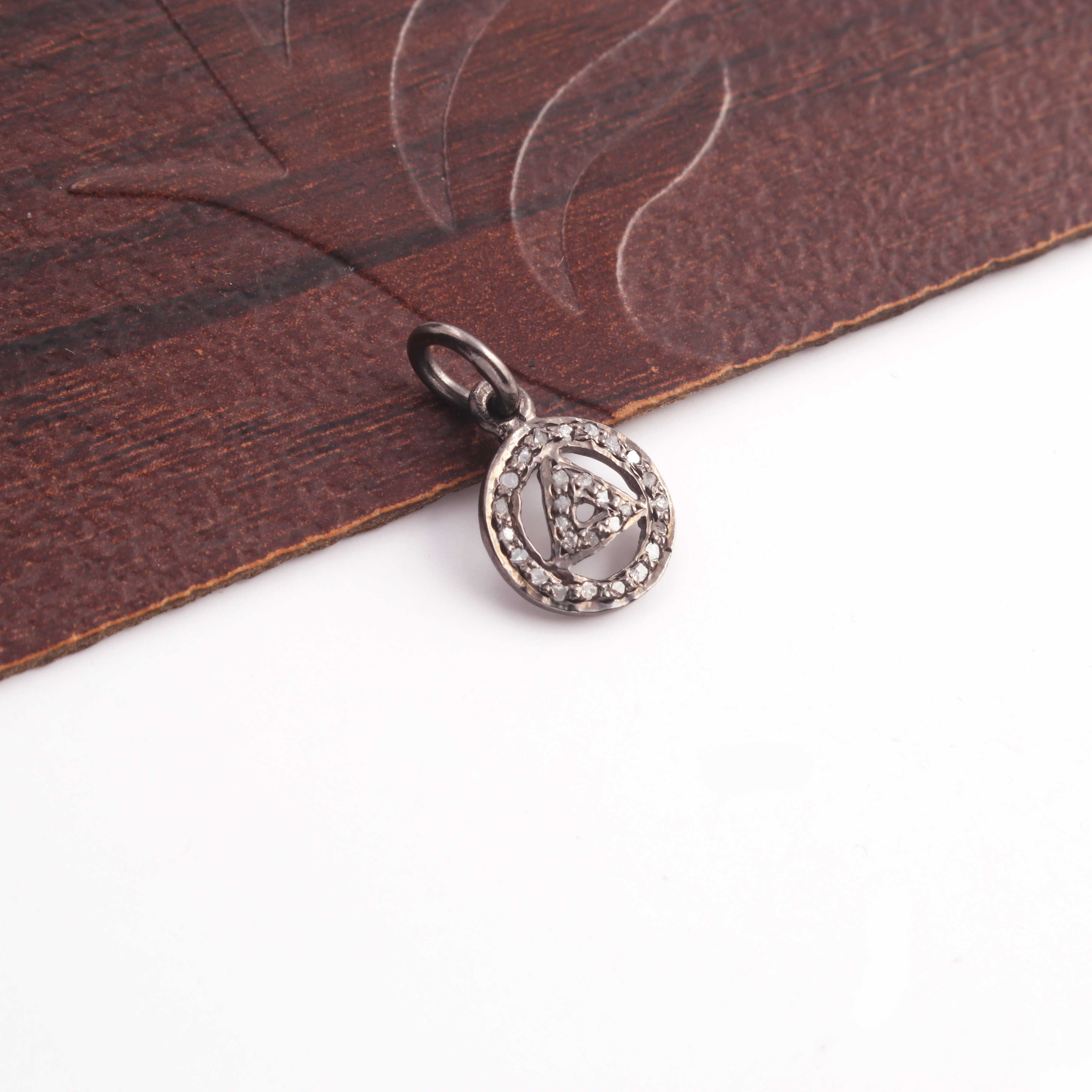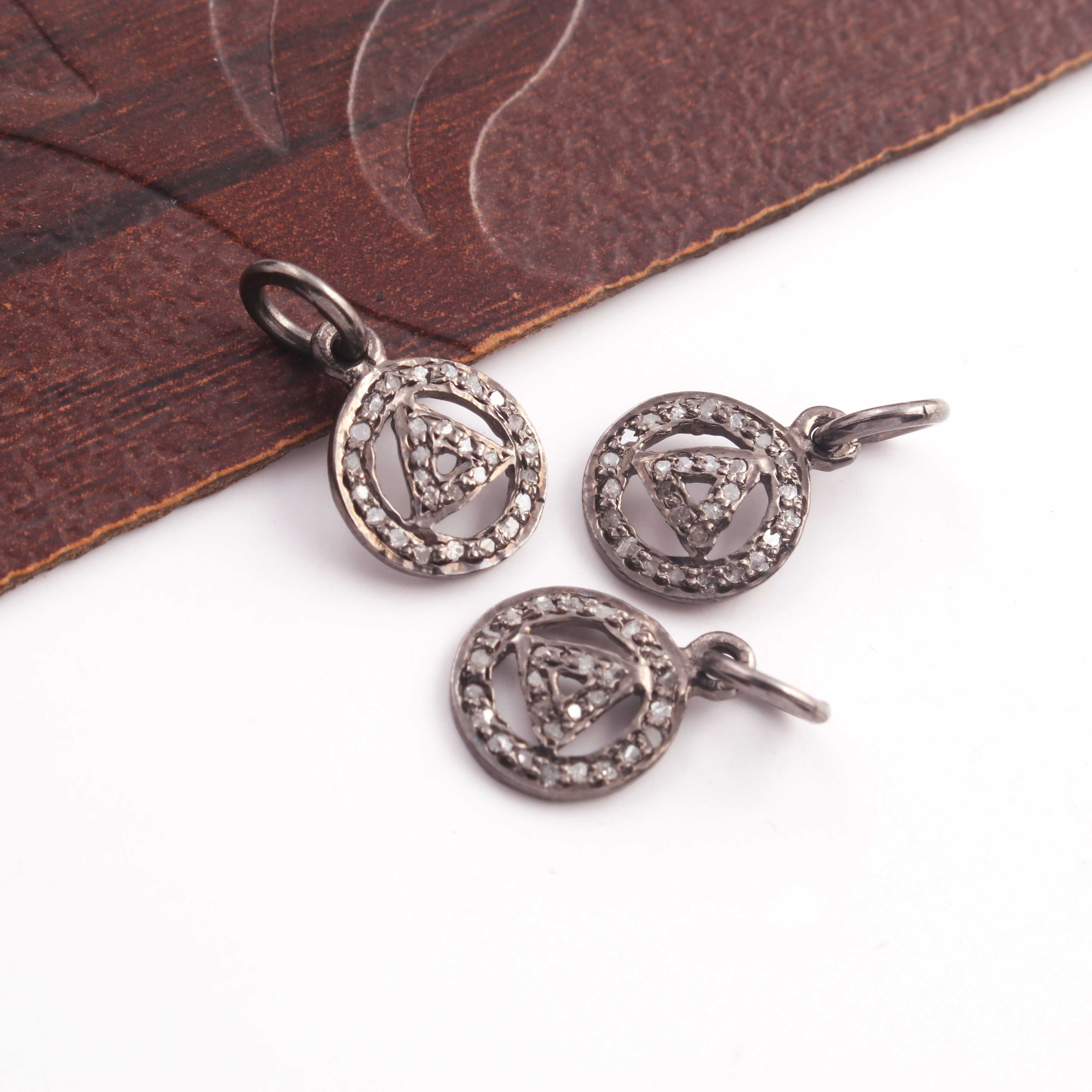 1 Pcs Pave Diamond Round With Triangle 925 Sterling Silver Pendant - PDC285