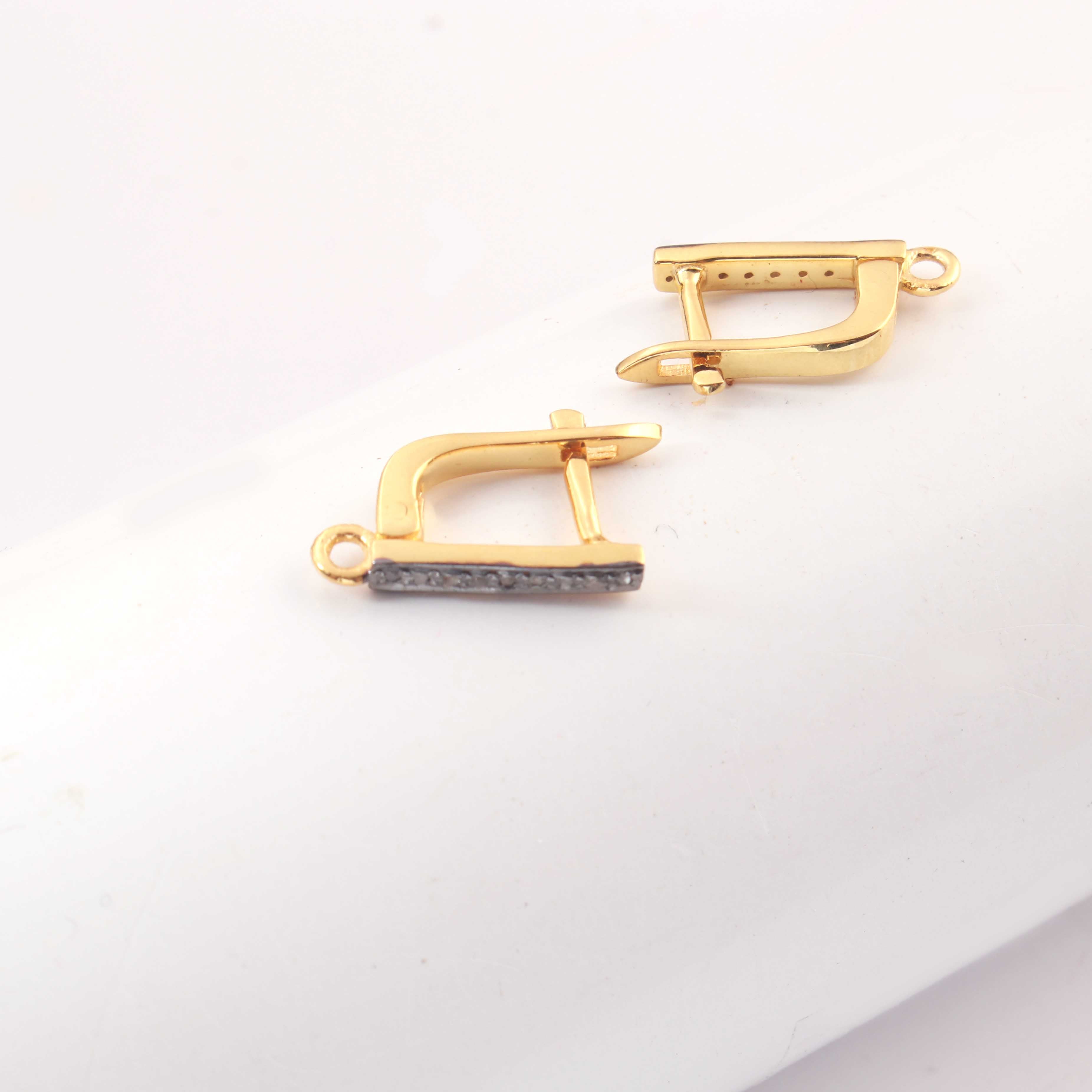 Listing Is For One (1) Pair Pave Diamond Hoop Earring - 925 Sterling Vermeil Fish Hoop Earring. PDC275