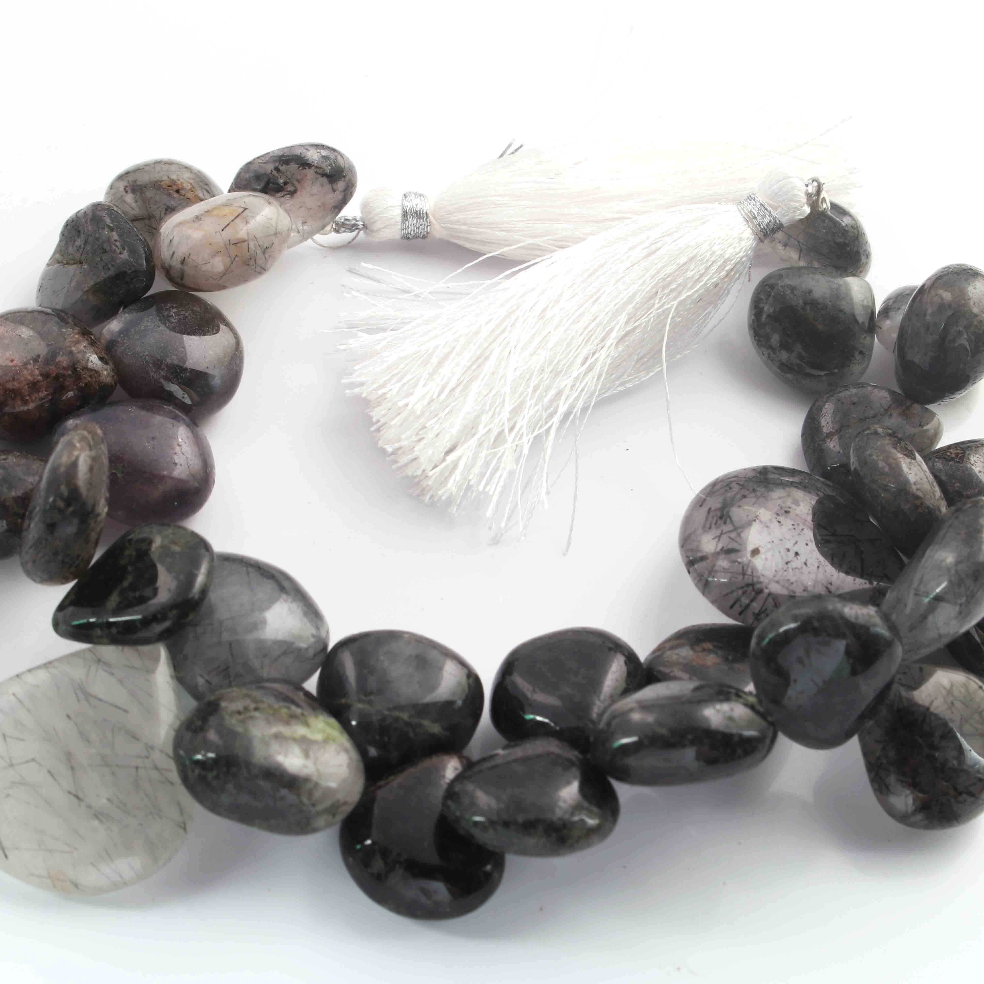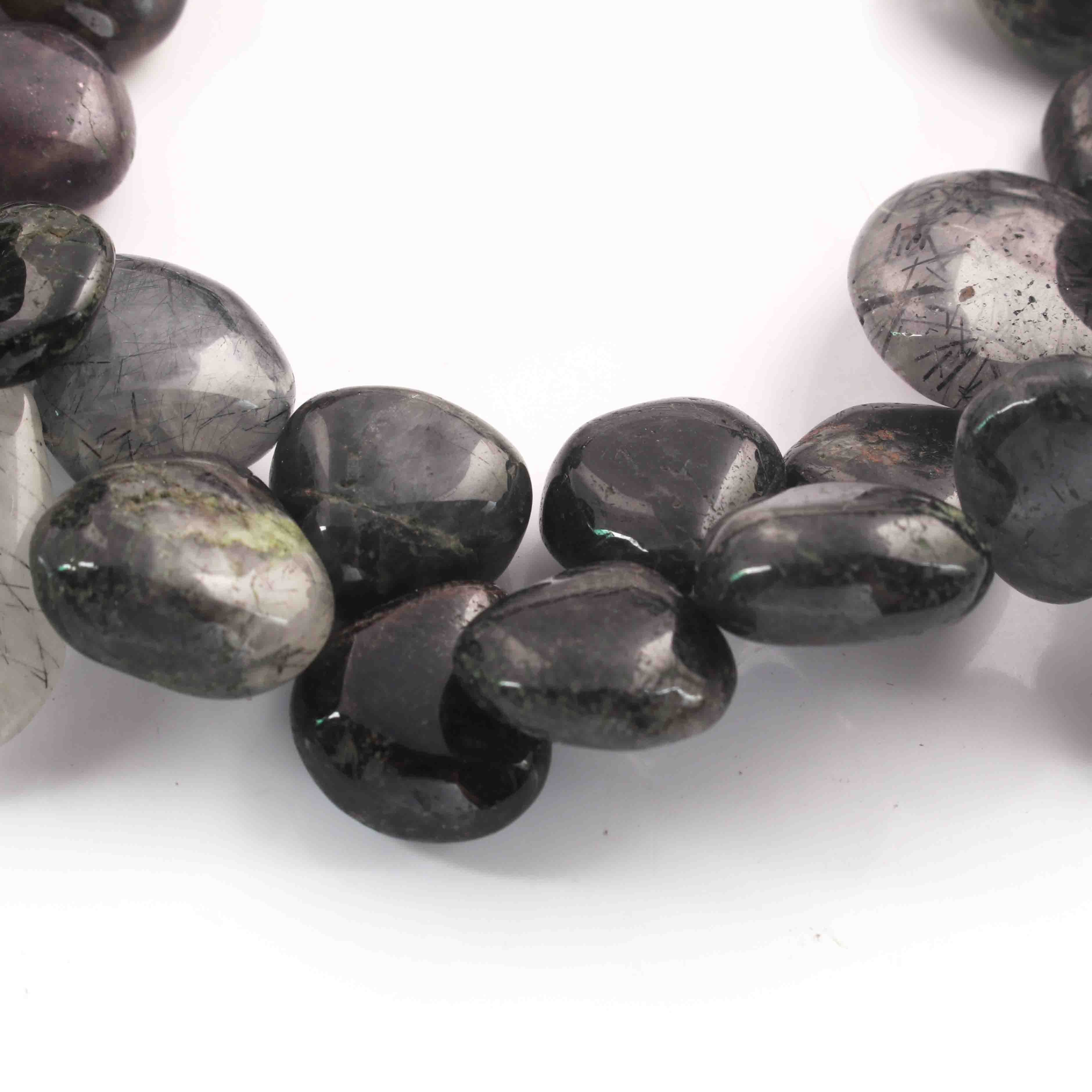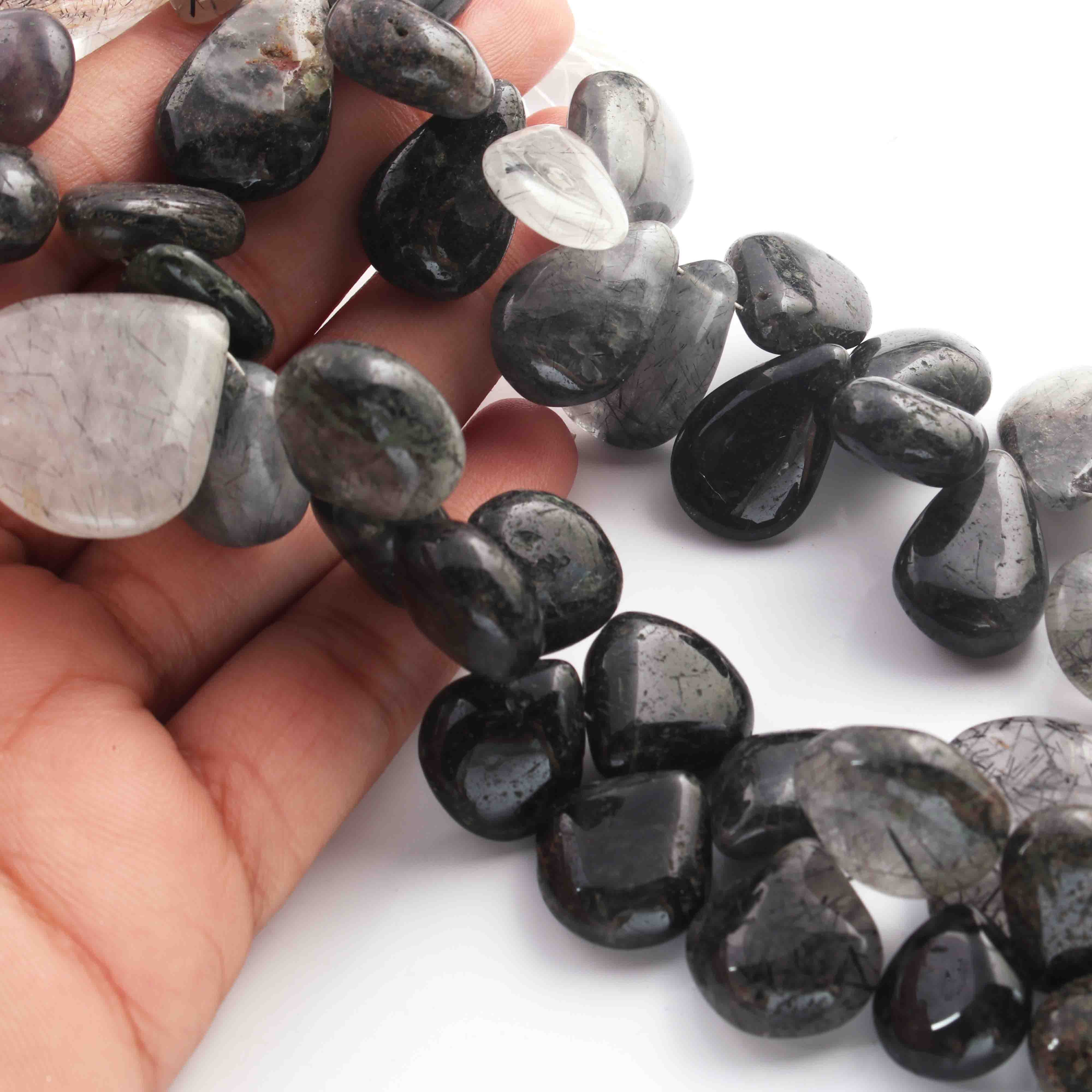 1 Long Strand Black Rutile Smooth Pear Briolettes -Pear Shape Briolettes -15mmx13mm-26mmx15mm -7 Inches BR01621