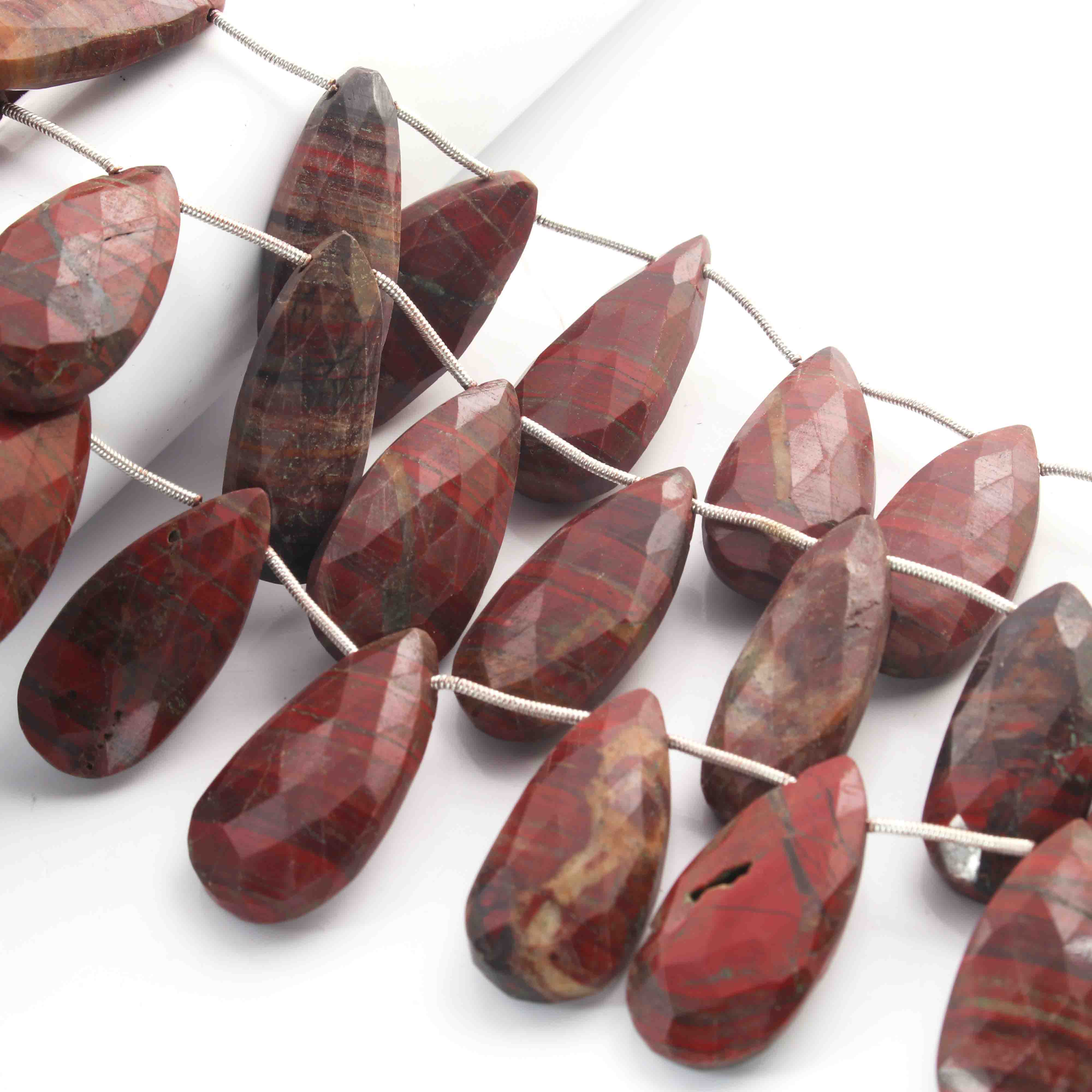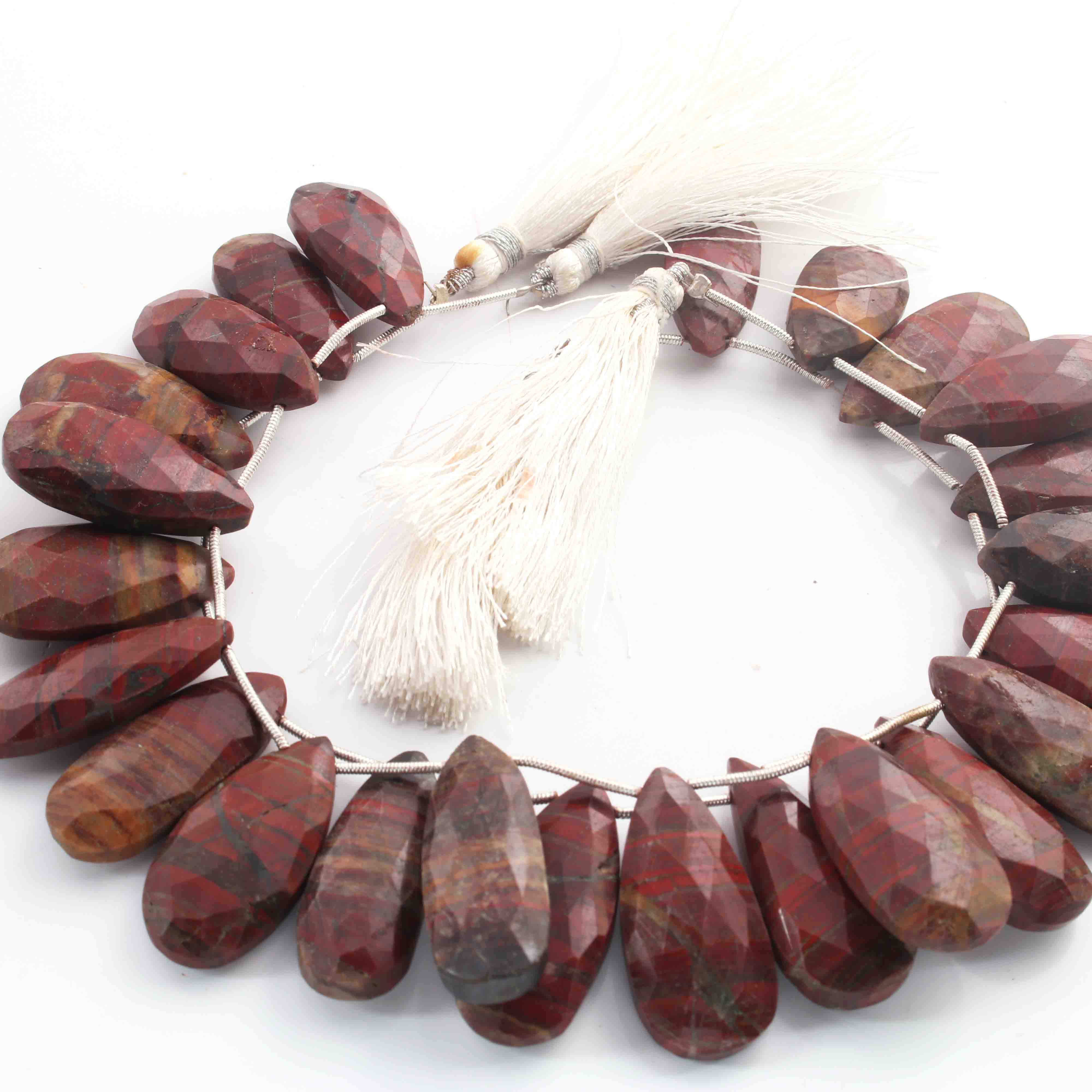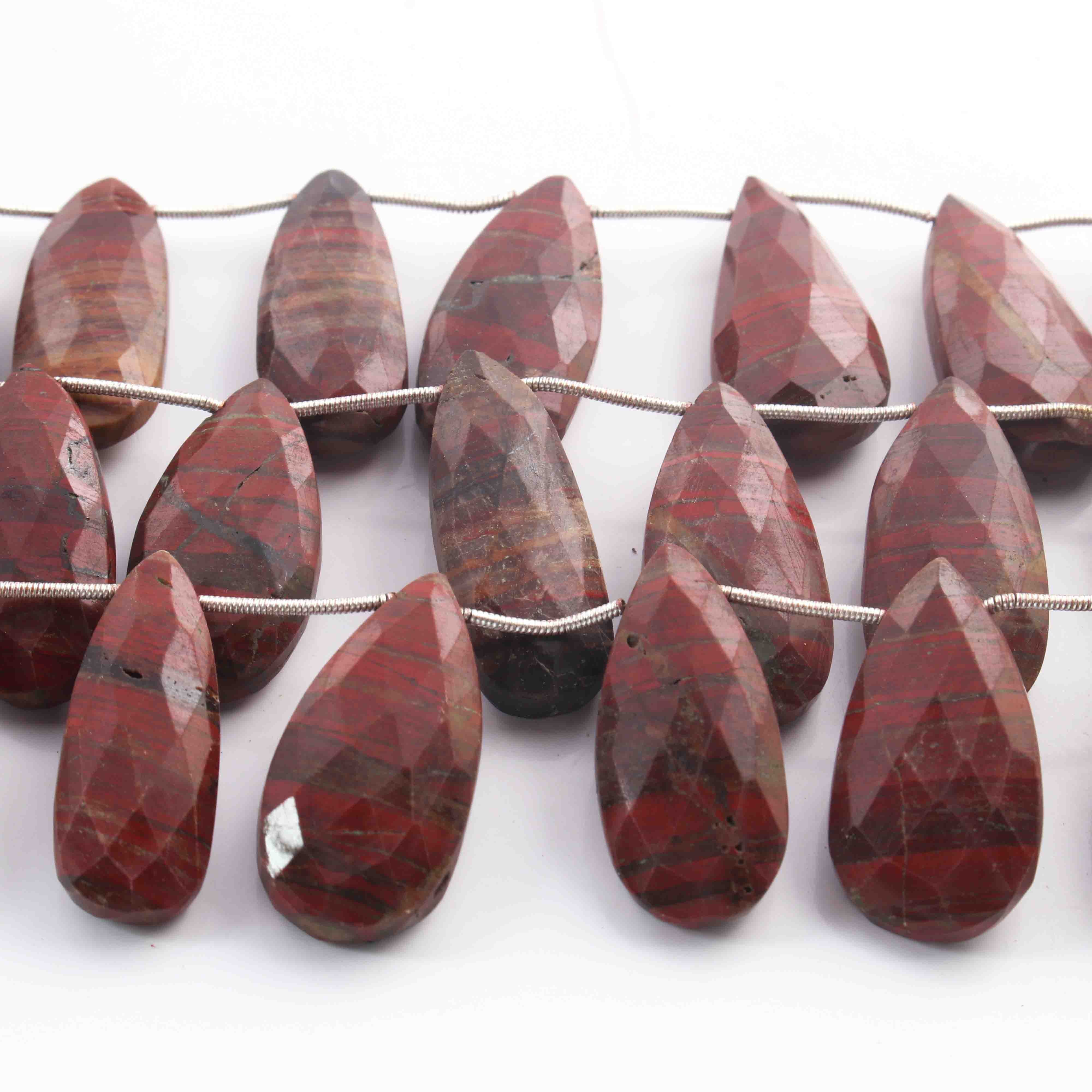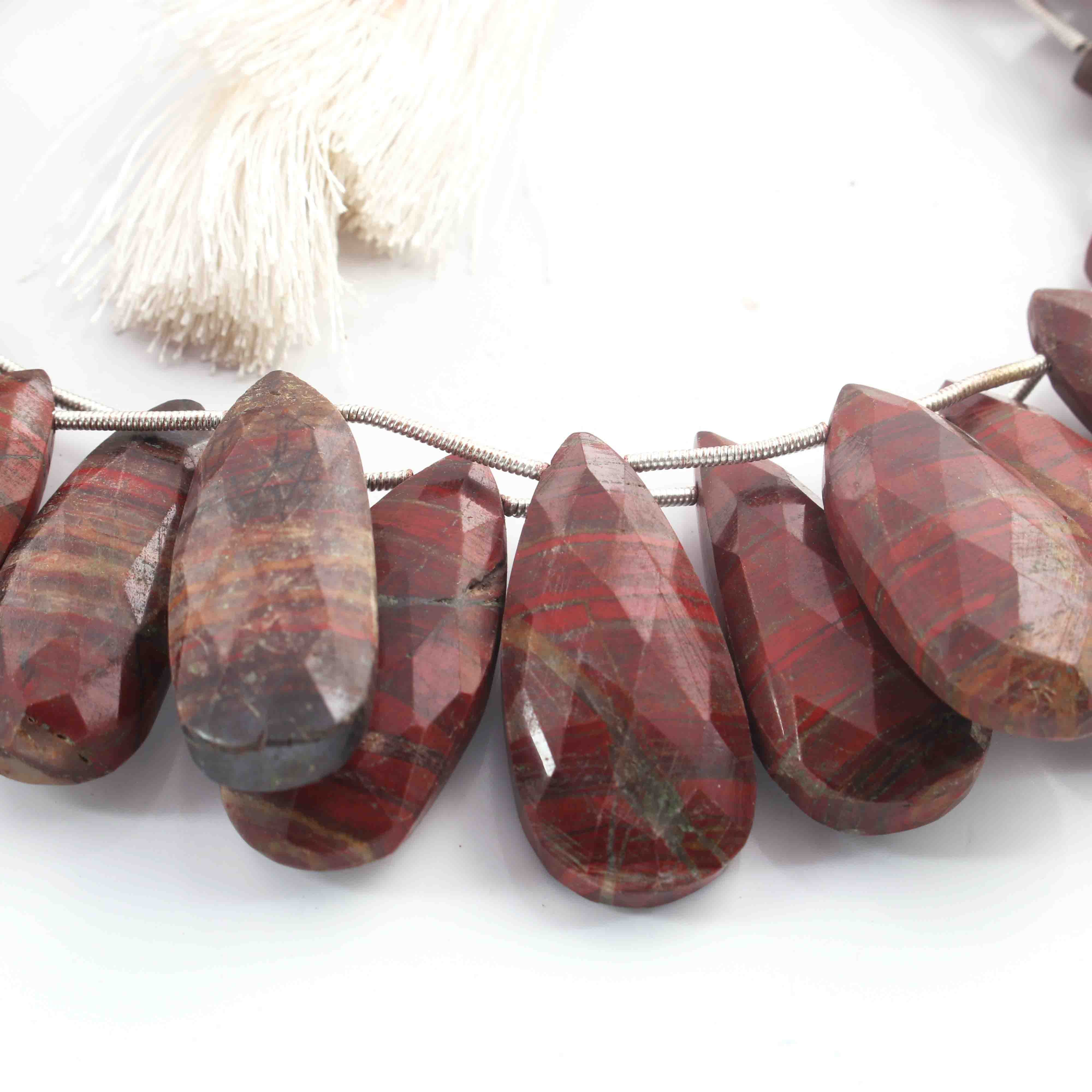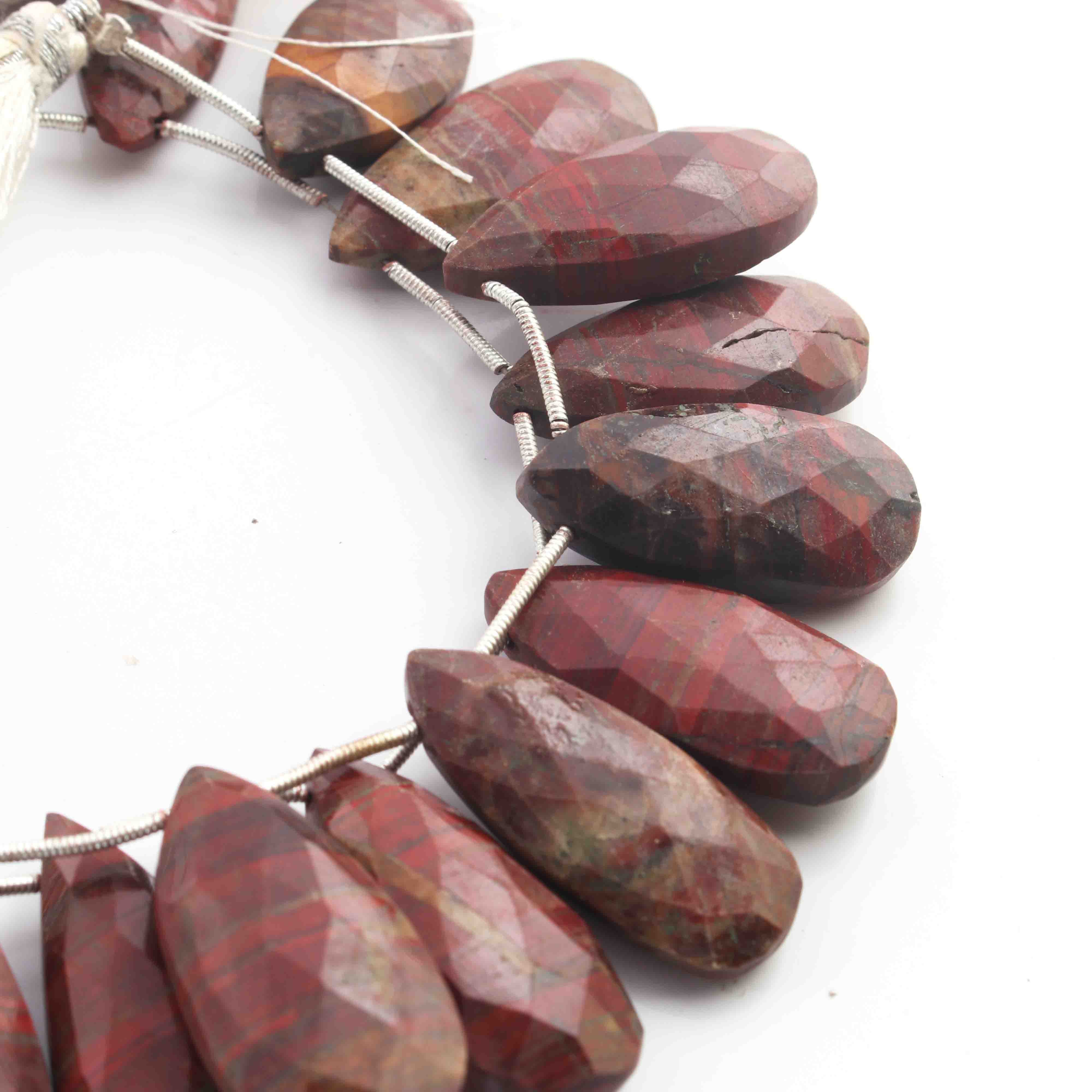 1 Long Strand Red Jasper Faceted Briolettes - Pear Shape Briolettes -22mmx12mm-29mmx15mm - 7.5Inches BR01533