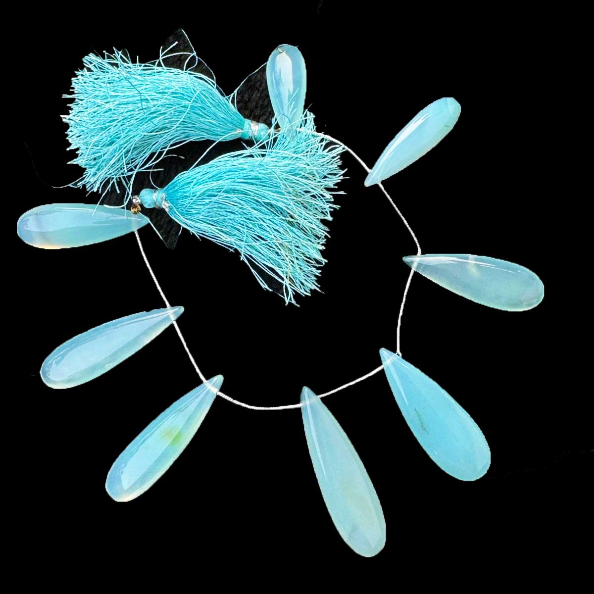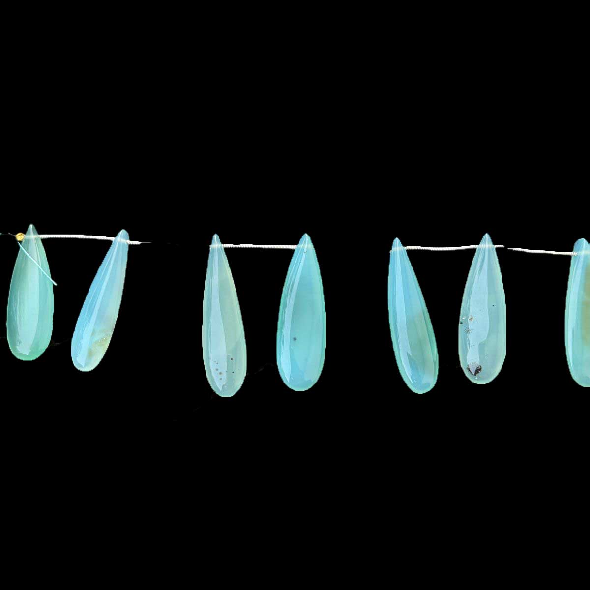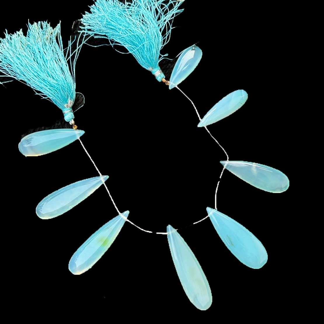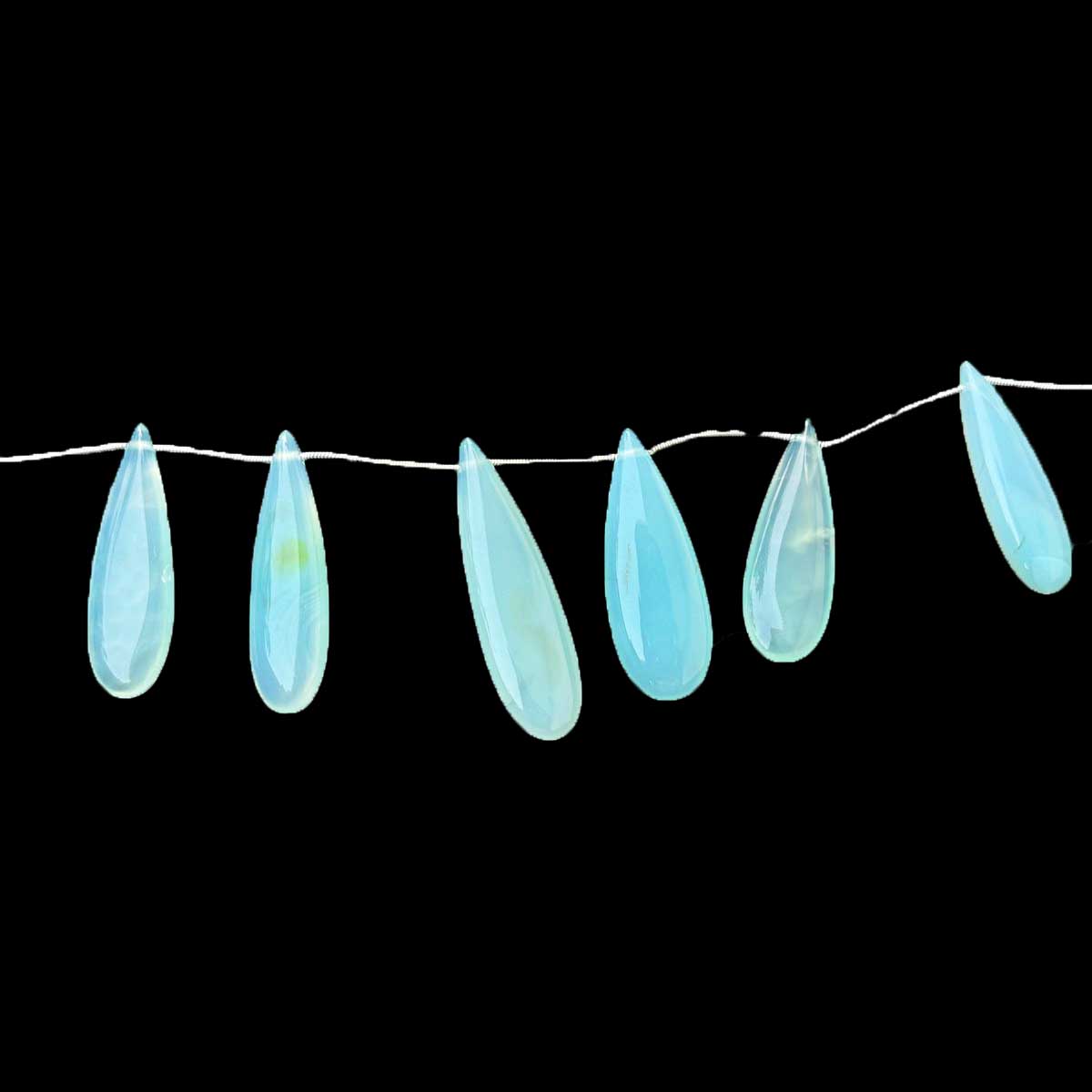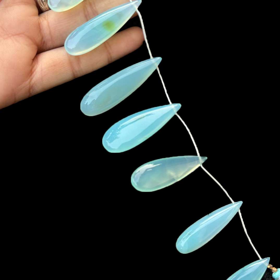 1 Strand Bio Aqua Chalcedony Smooth Briolettes -Long Pear Drop Briolettes - 31mmx11mm-47mmx14mm -7.5 Inches BR1056