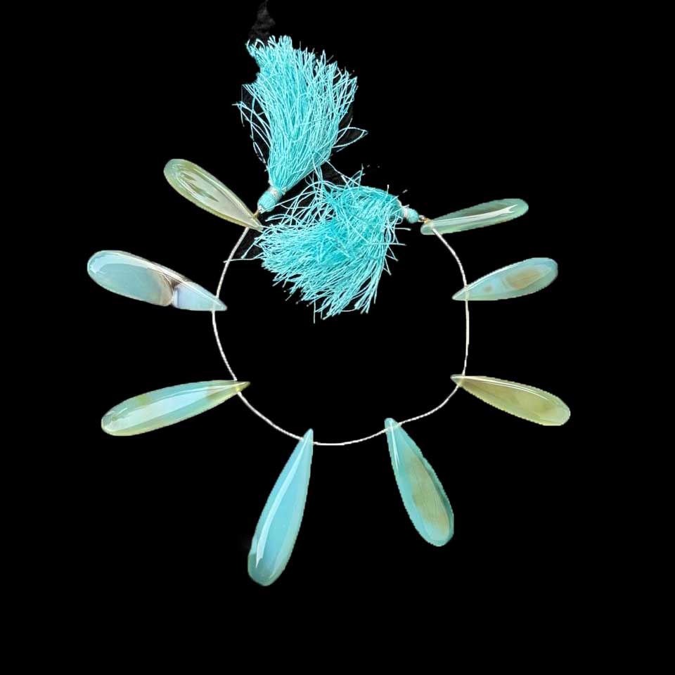 1 Strand Bio Aqua Chalcedony Smooth Briolettes -Long Pear Drop Briolettes - 37mmx11mm-46mmx13mm -8 Inches BR1033