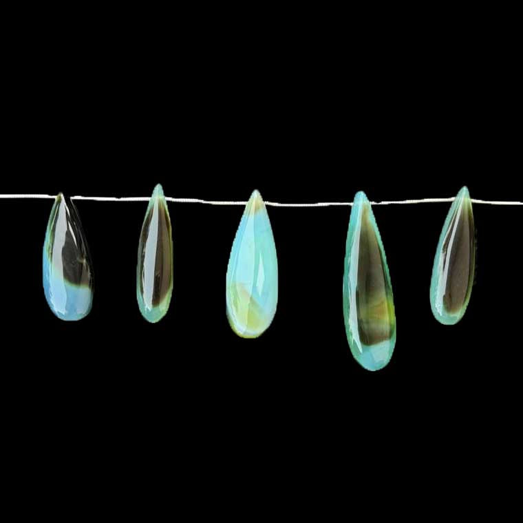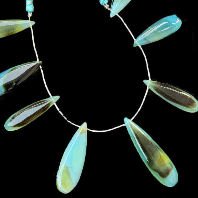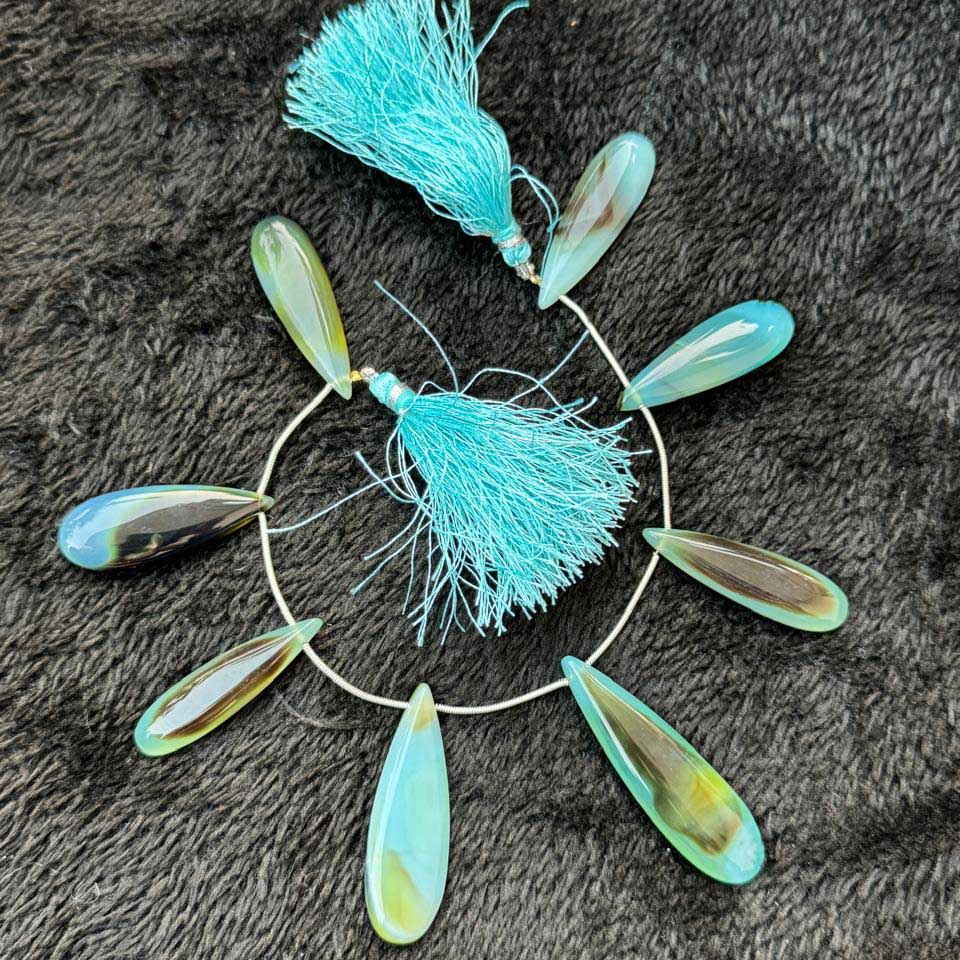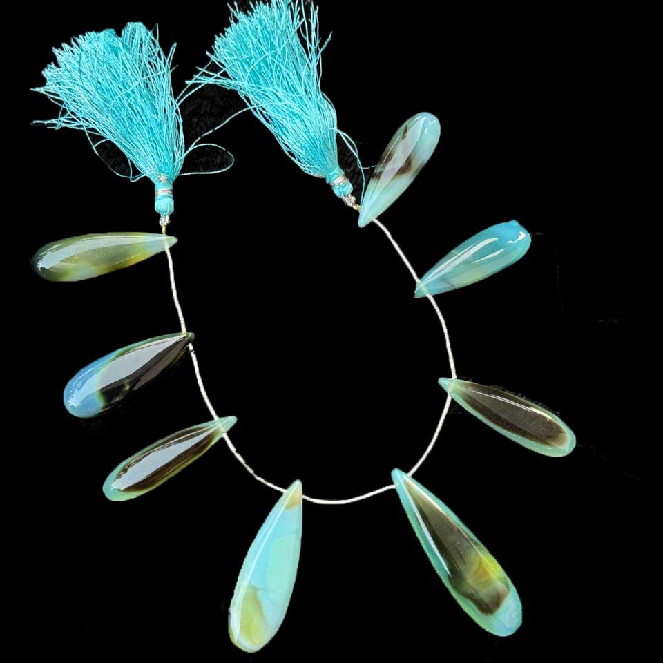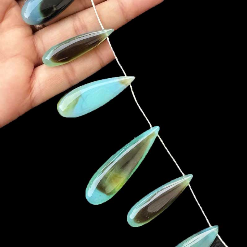 1 Strand Bio Aqua Chalcedony Smooth Briolettes -Long Pear Drop Briolettes - 38mmx12mm-50mmx14mm 8 Inches BR1015