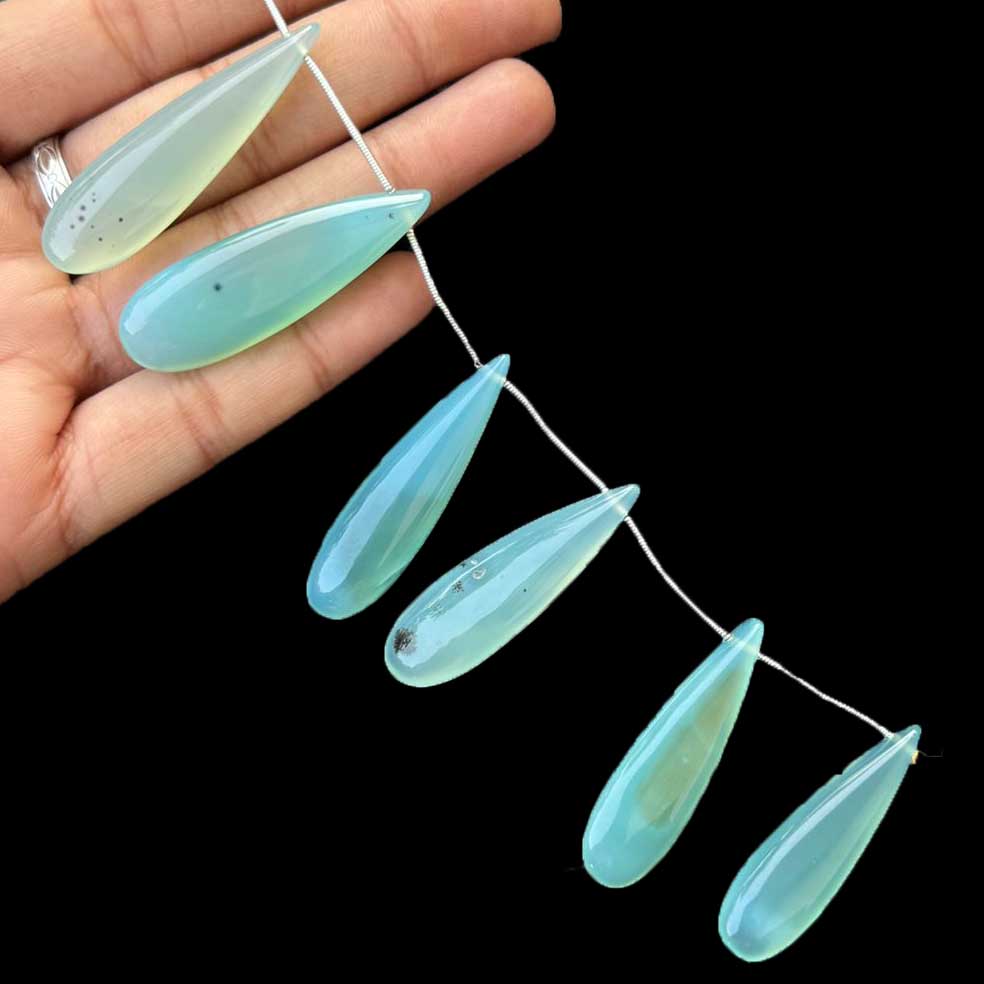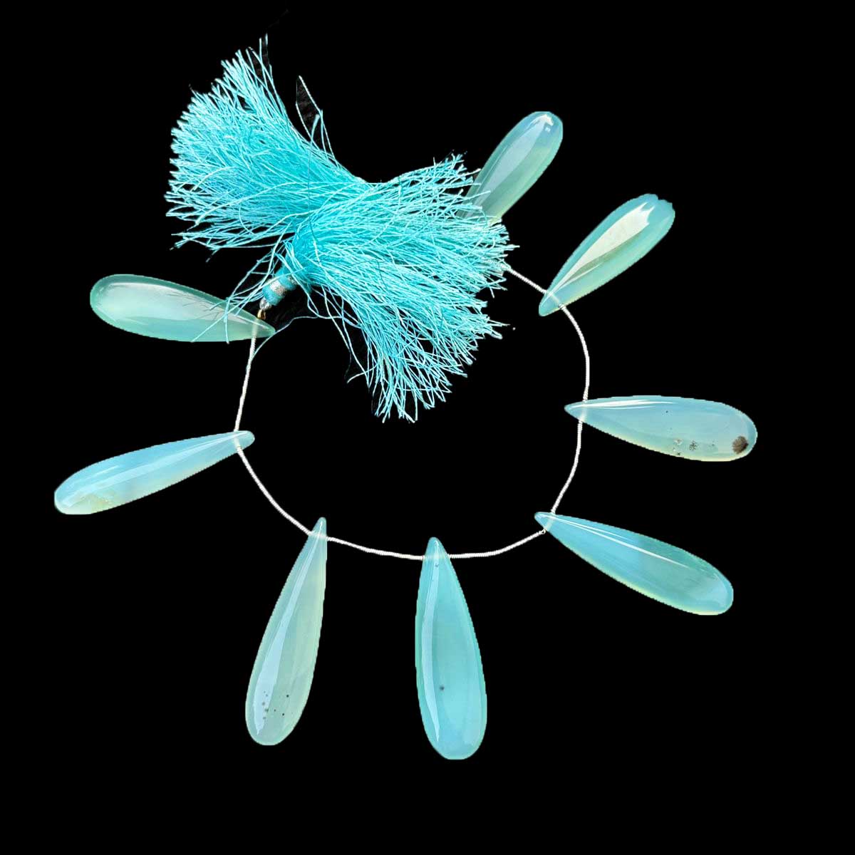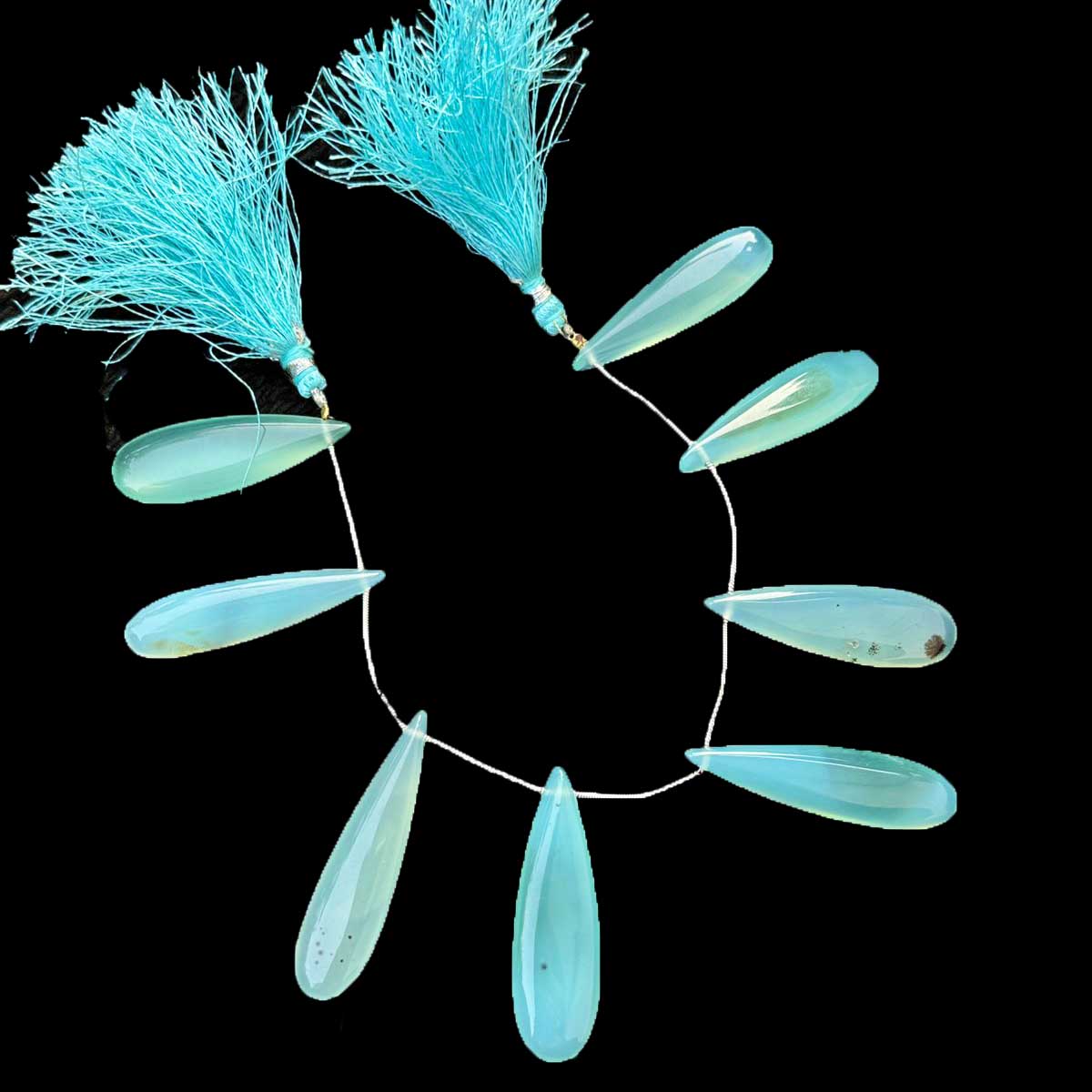1 Strand Bio Aqua Chalcedony Smooth Briolettes -Long Pear Drop Briolettes - 41mmx12mm-48mmx12mm -7.5 Inches BR1019