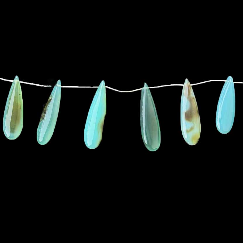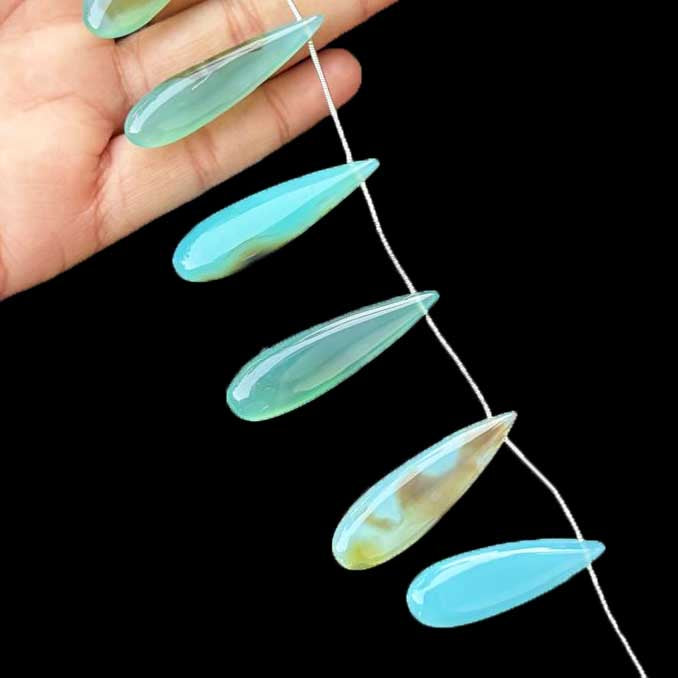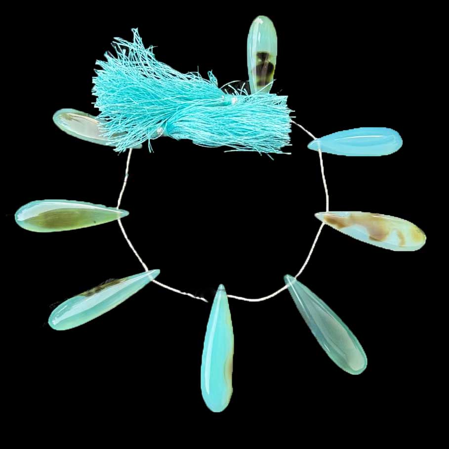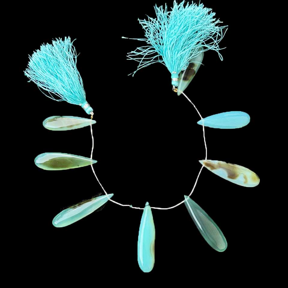 1 Strand Bio Aqua Chalcedony Smooth Briolettes -Long Pear Drop Brittolees - 29mmx11mm-47mmx13mm 7.5 Inches BR1049