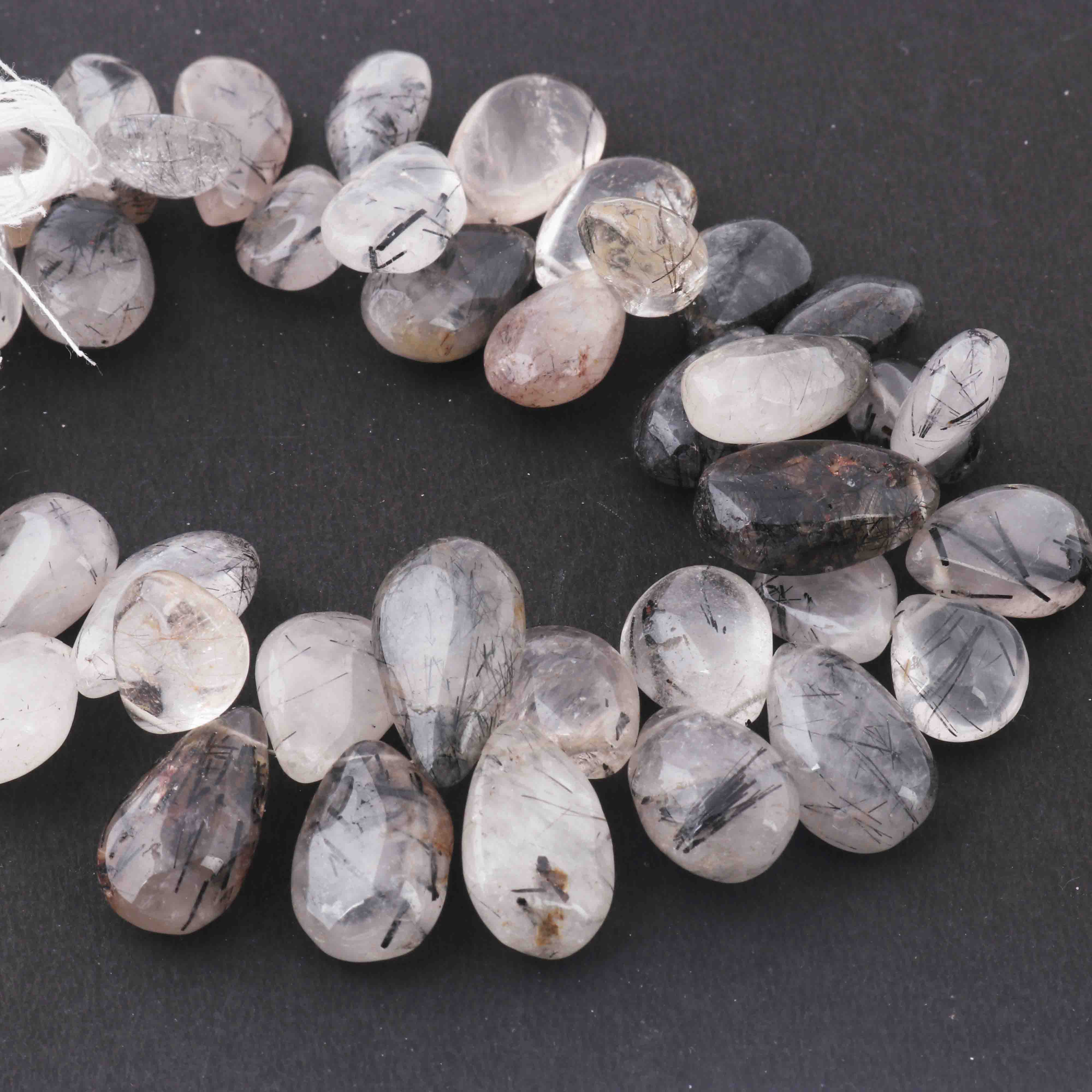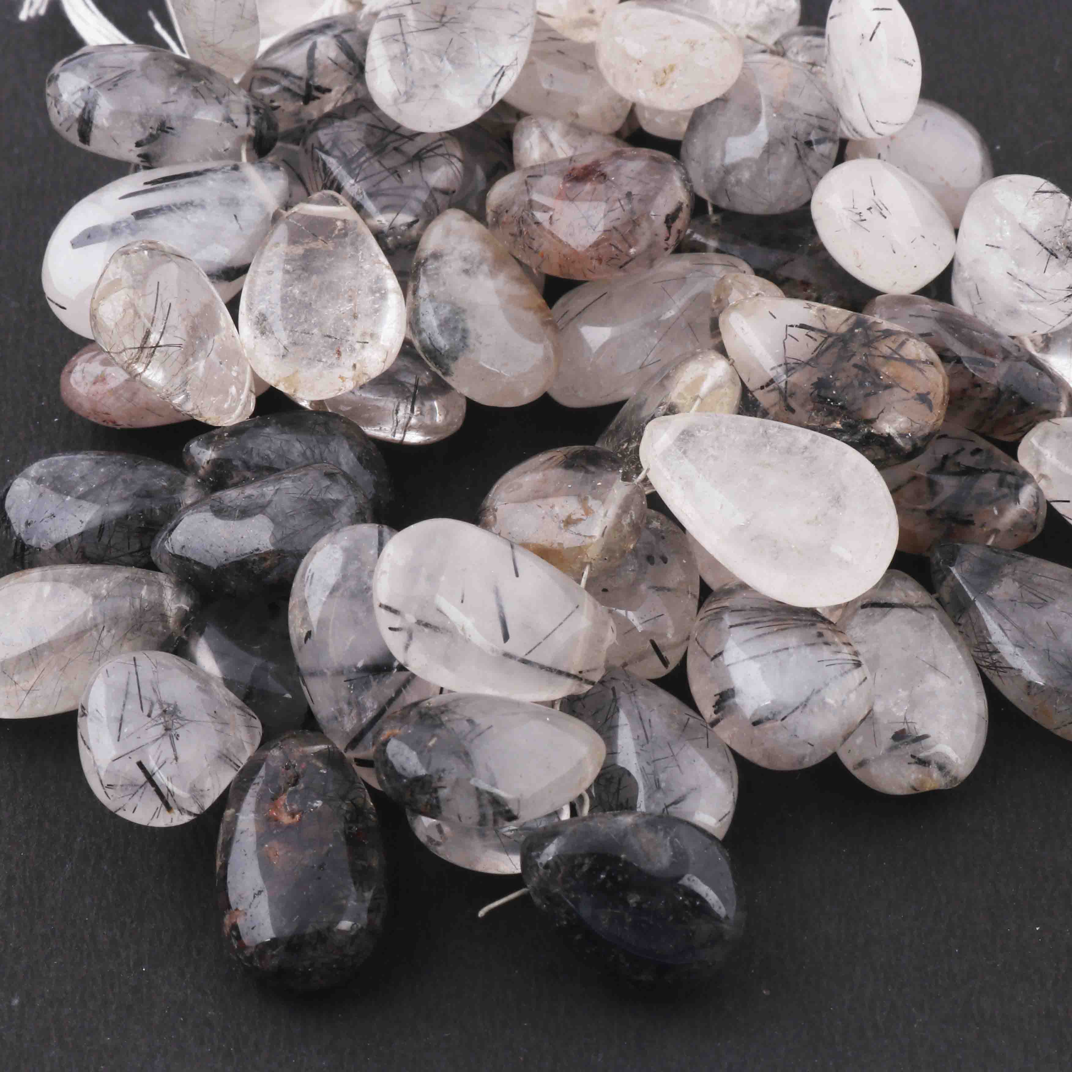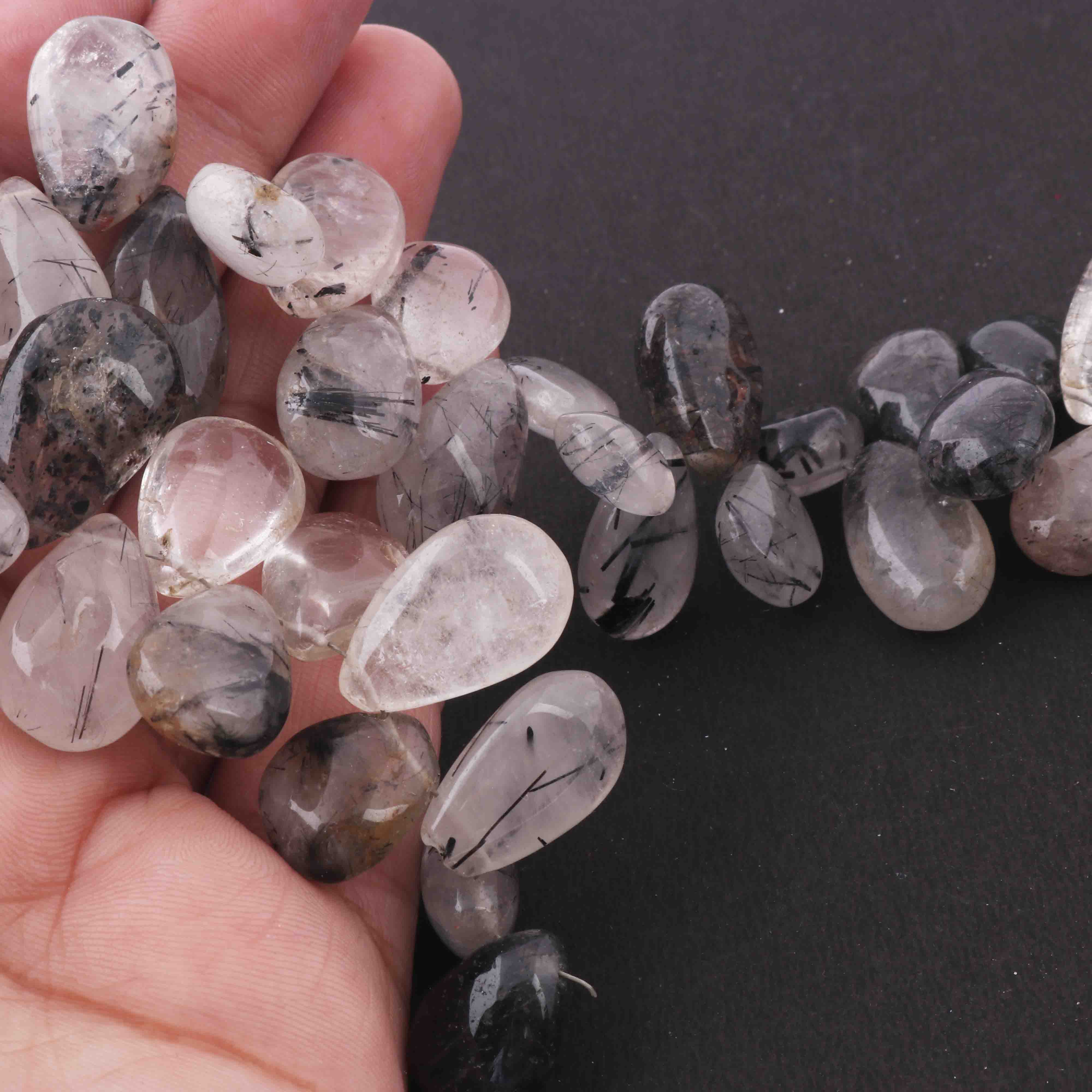 1 Strand Black Rutile Smooth Briolettes -Pear Briolettes 13mmx12mm-24mmx15mm 9.5 Inches BR3798