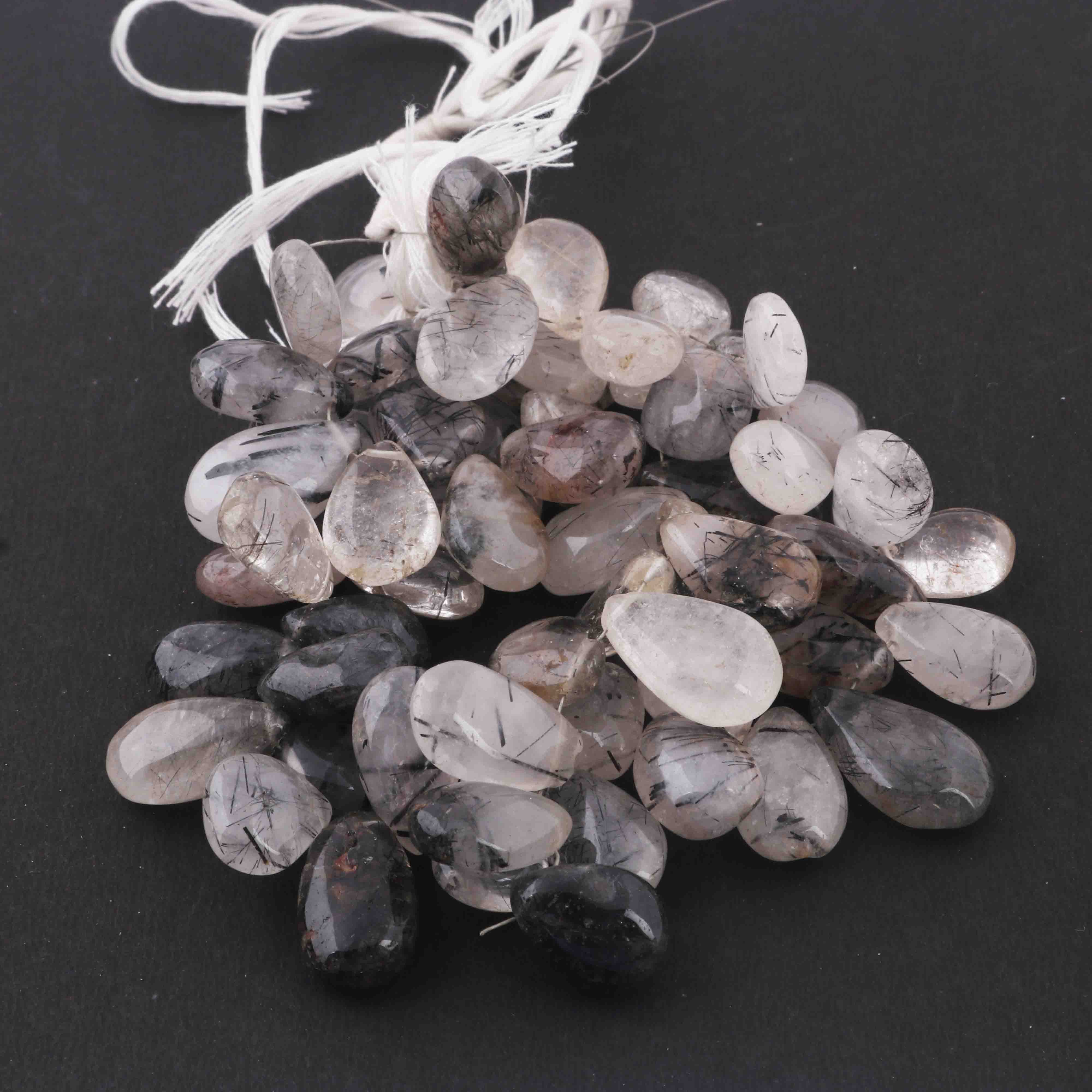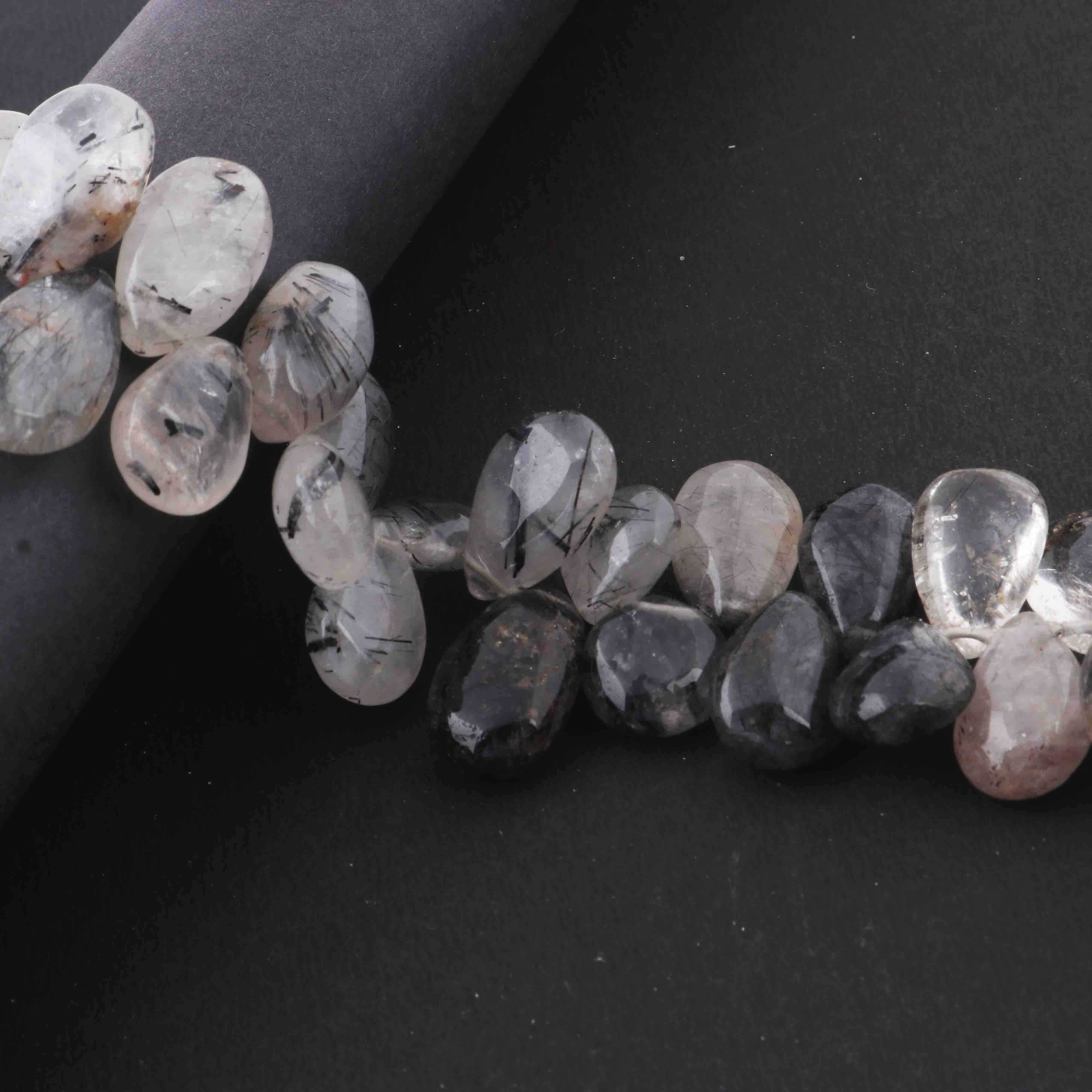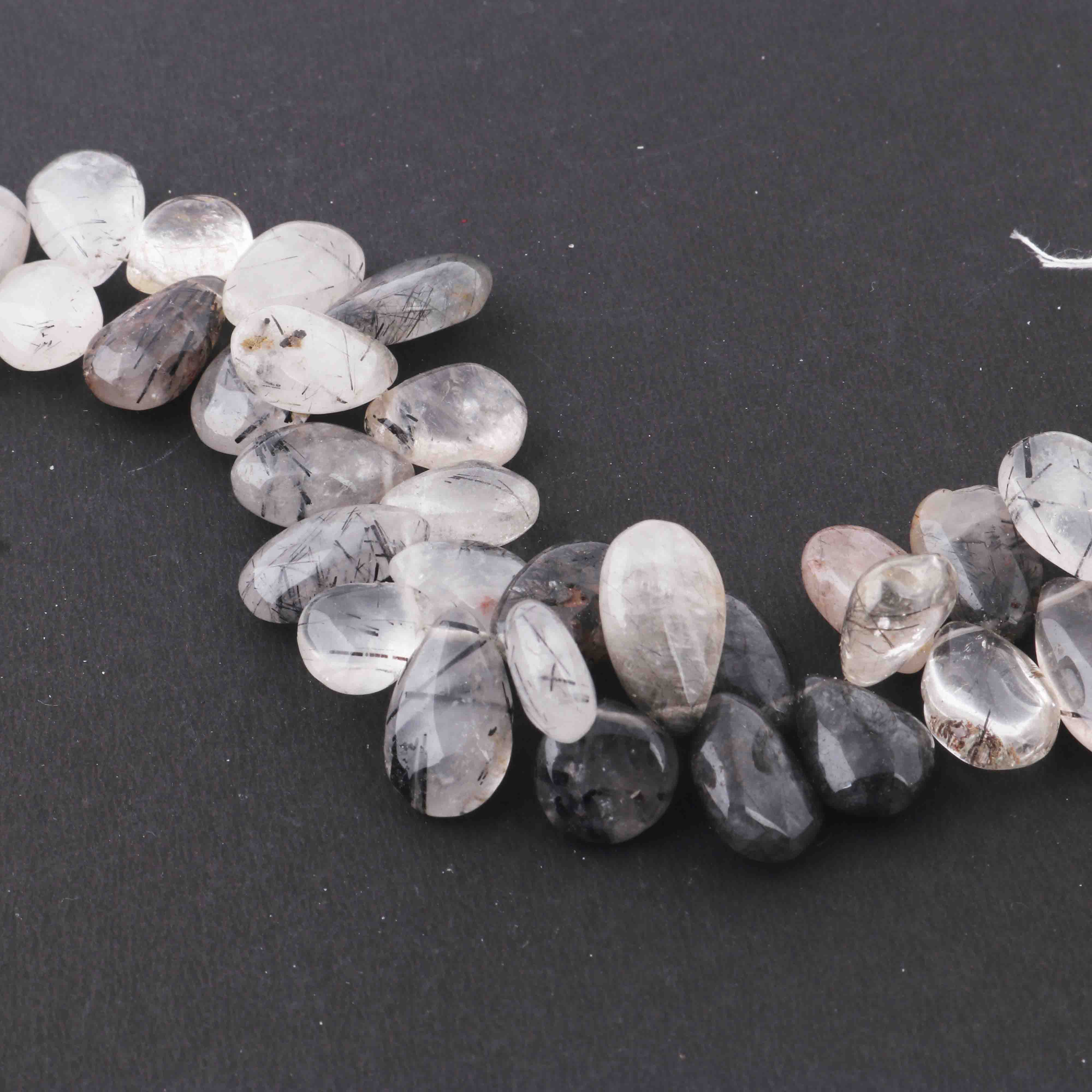 1 Strand Black Rutile Smooth Briolettes -Pear Briolettes 13mmx12mm-24mmx15mm 9.5 Inches BR3798