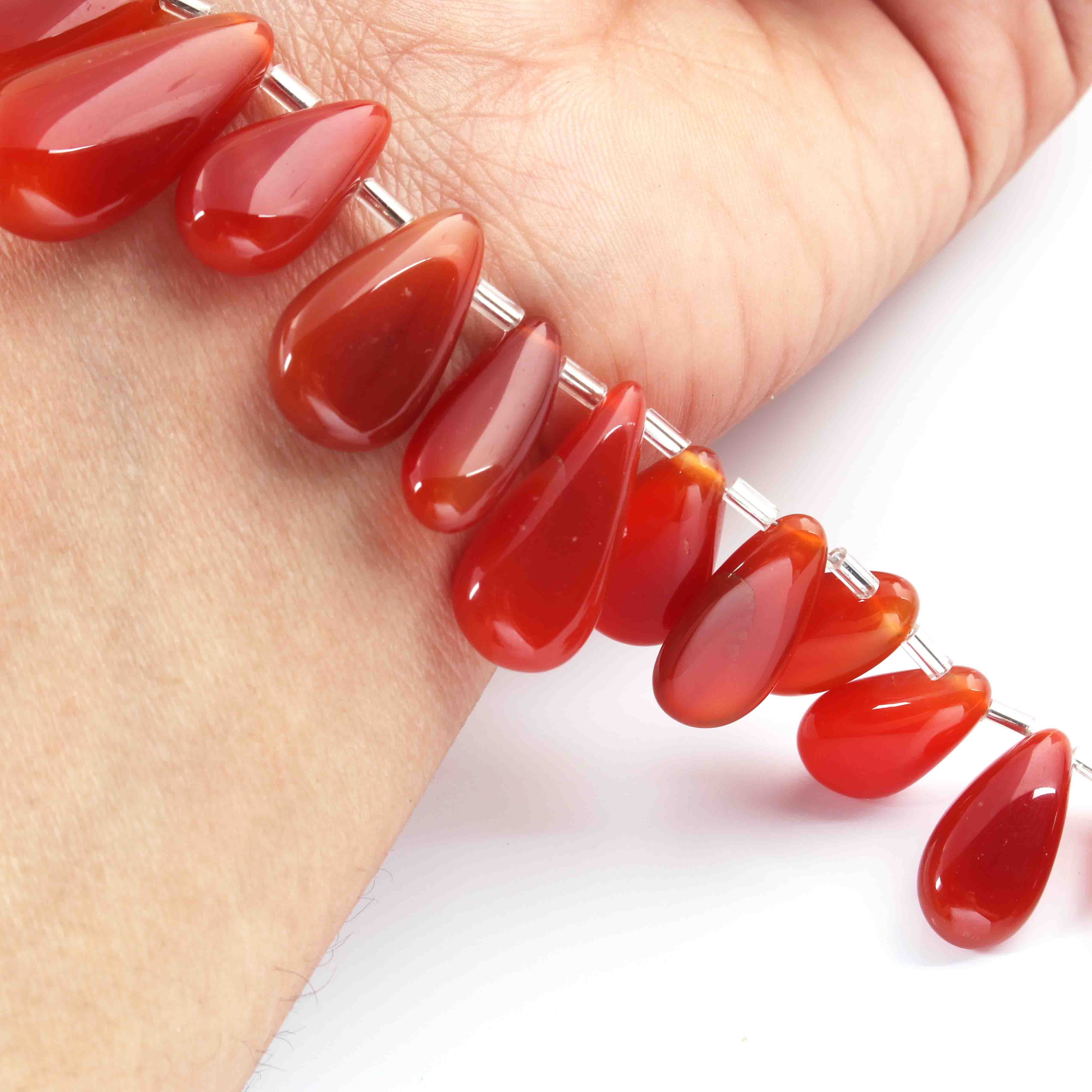 1 Strand Carnelian Smooth Briolettes -Pear Shape Briolettes - 15mmx8mm-24mmx11mm 8 Inches BR509
