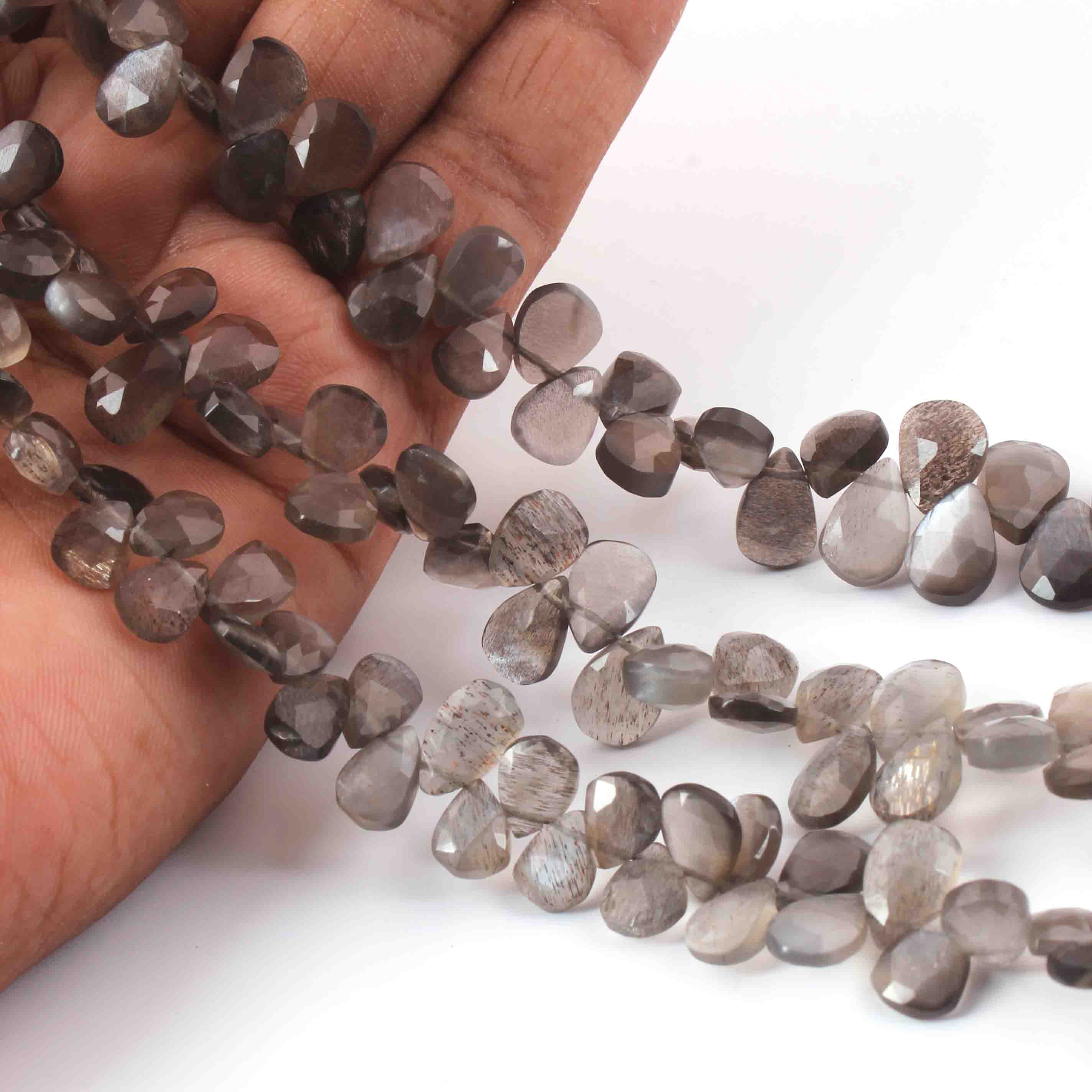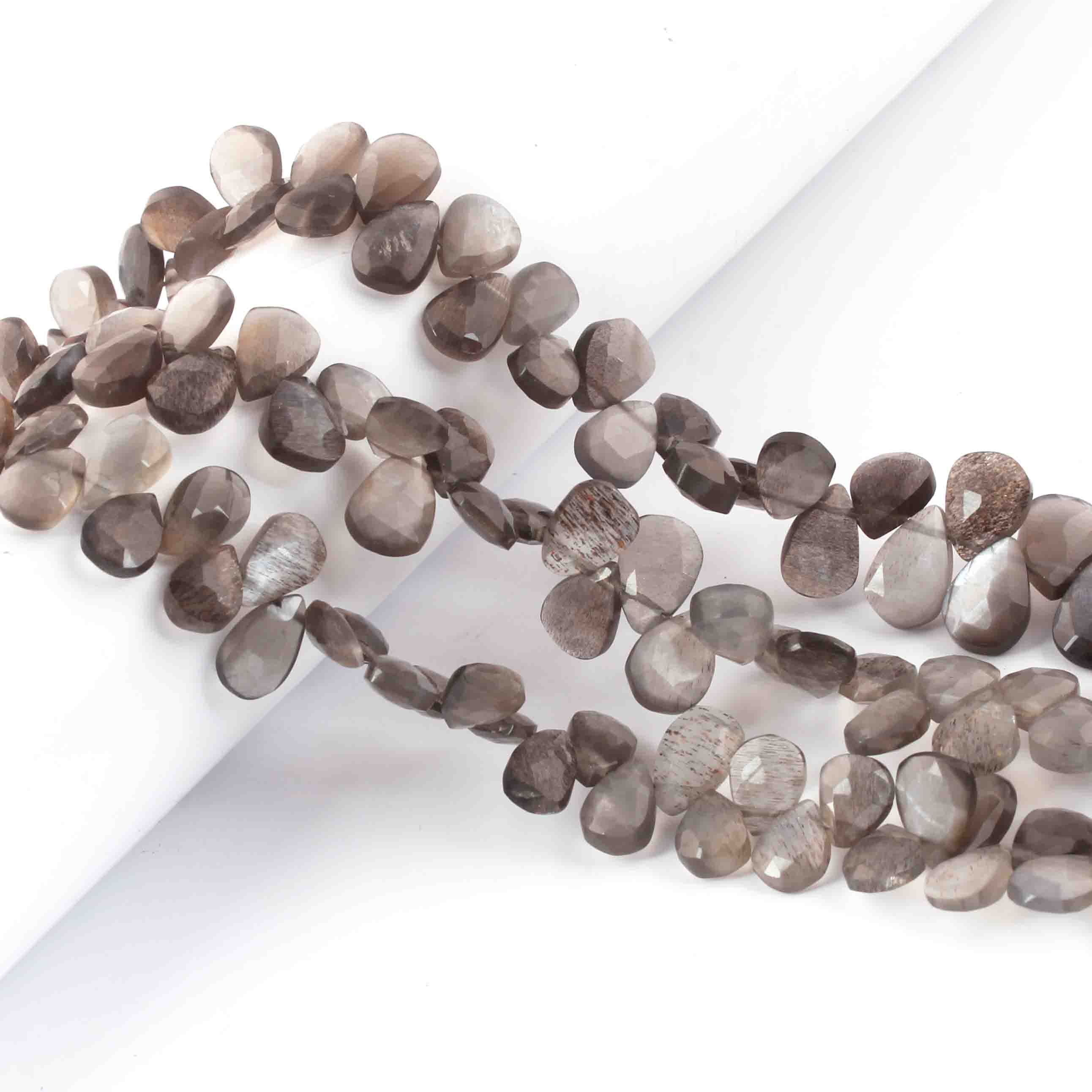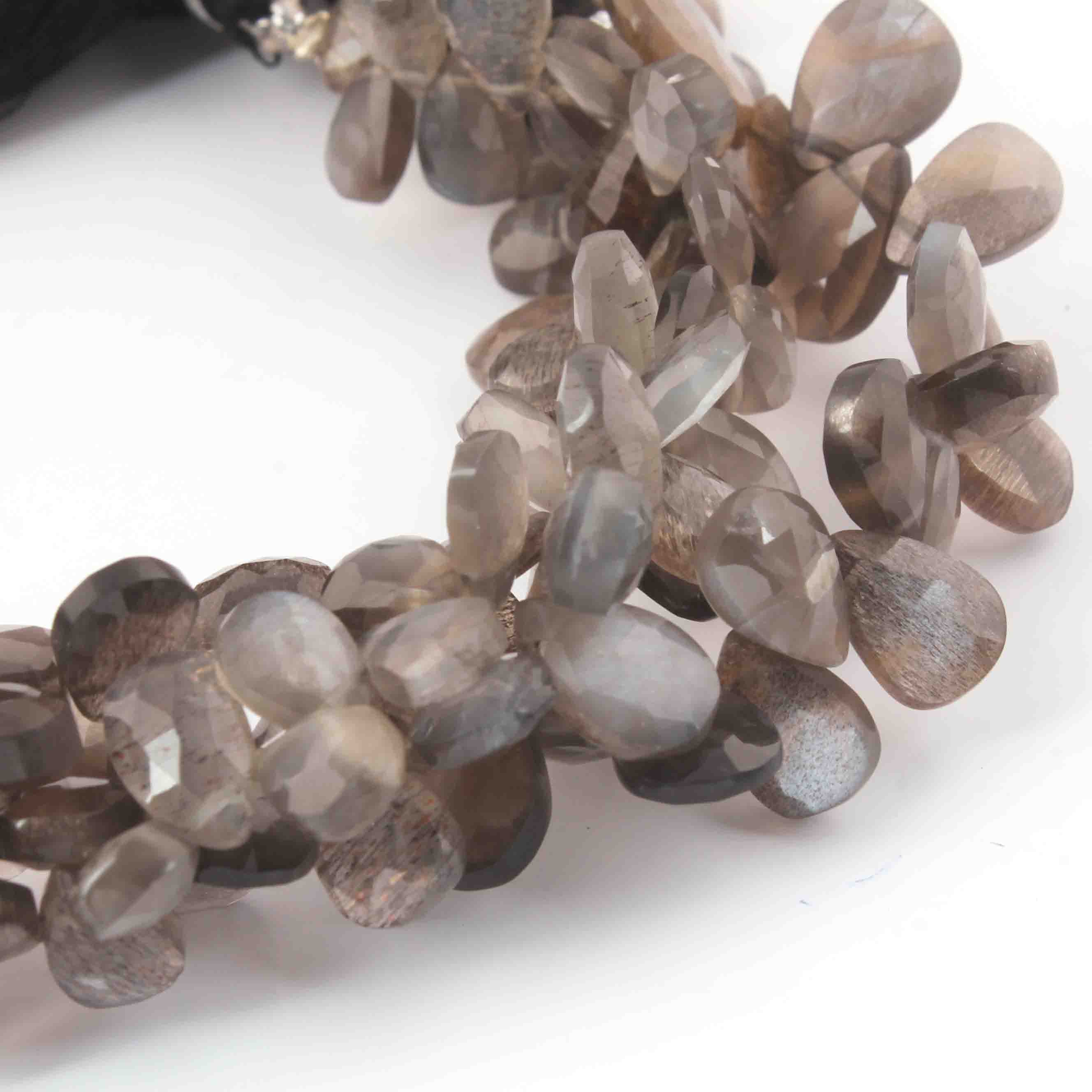 1 Strand Gray moonstone Faceted Pear Briolettes - -9mmx6mm-10mmx7mm- 8 Inches BR0616