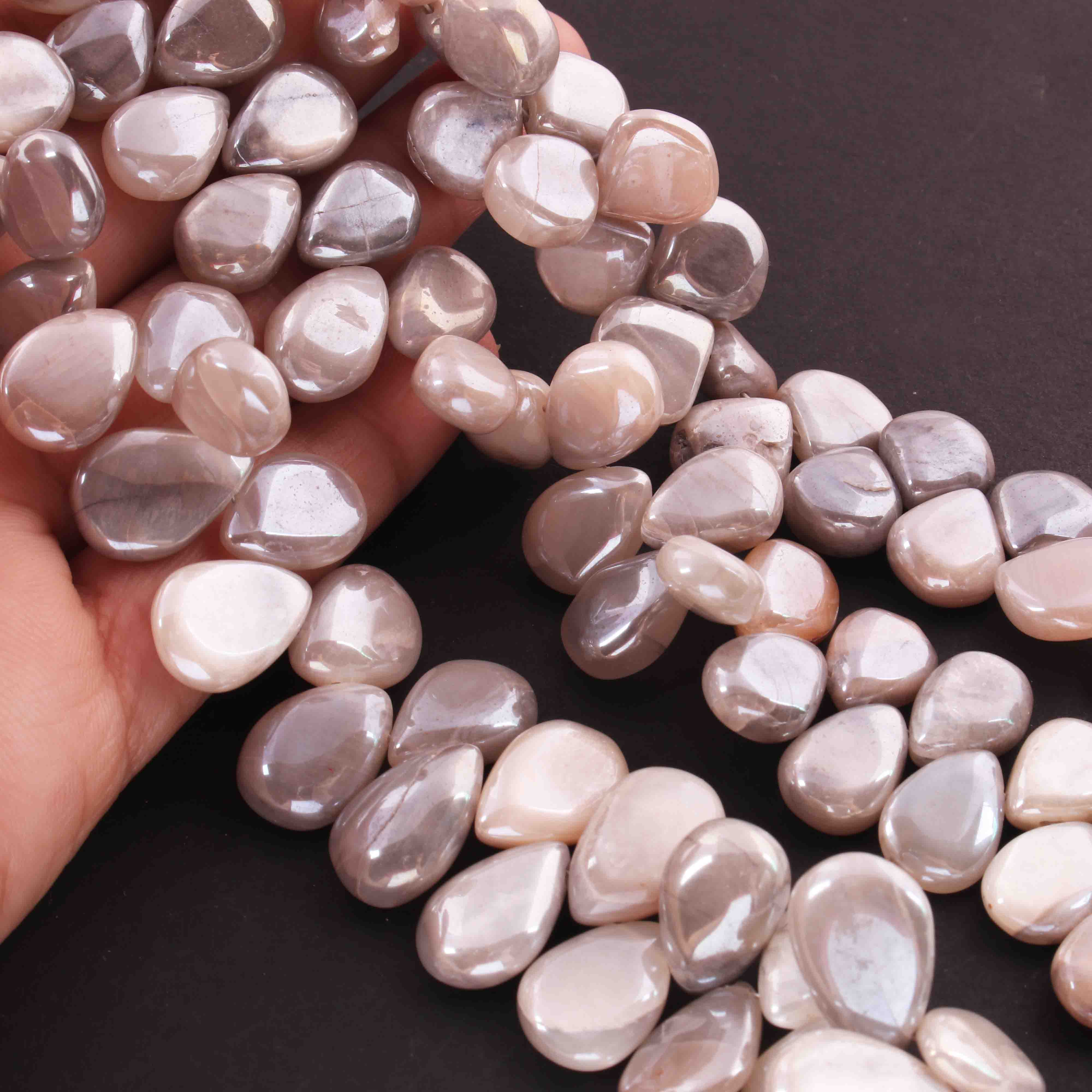 1 Strand Gray Silverite Smooth Briolettes - Pear Shape Briolettes - 11mmx8mm-16mmx10mm- 8.5 Inches BR03346