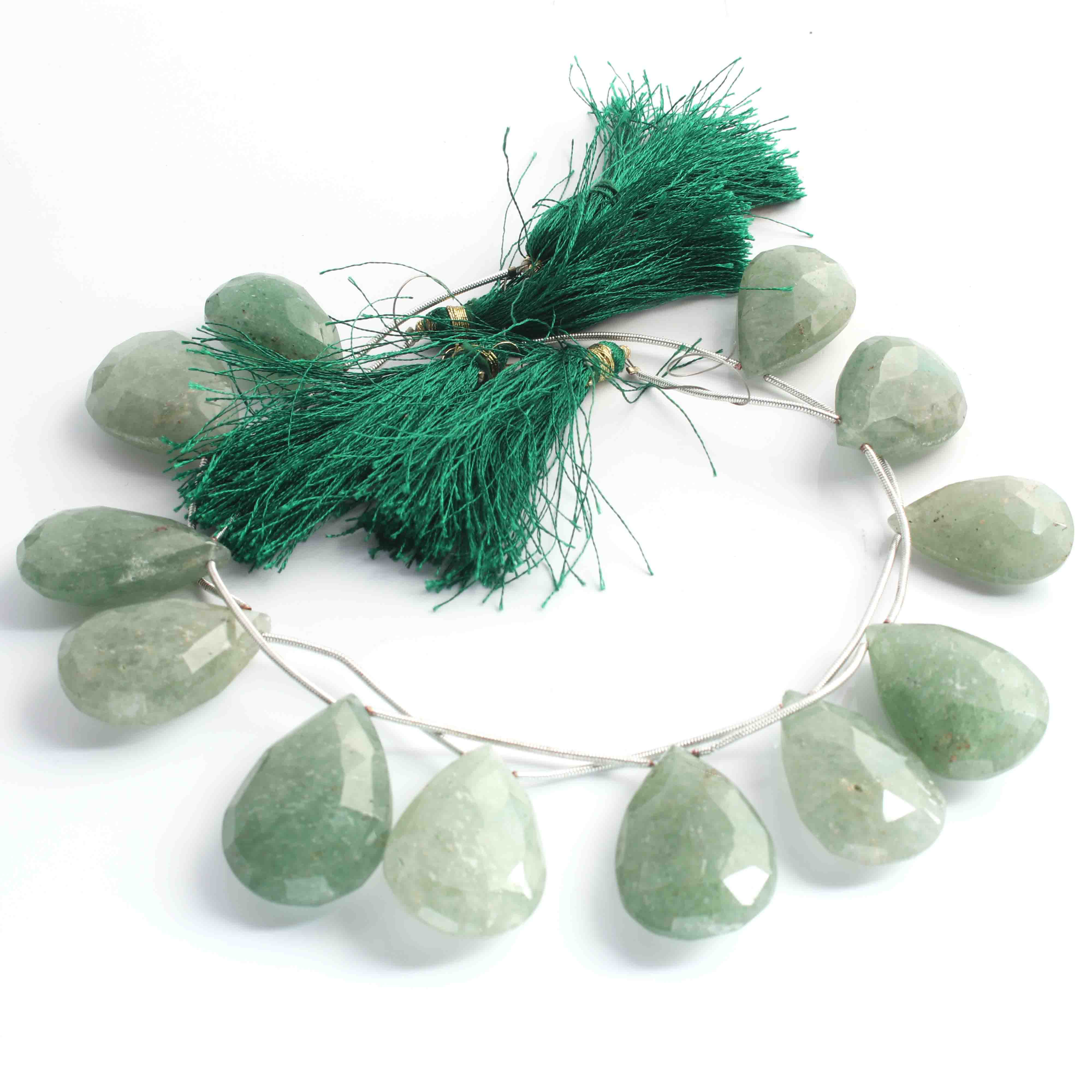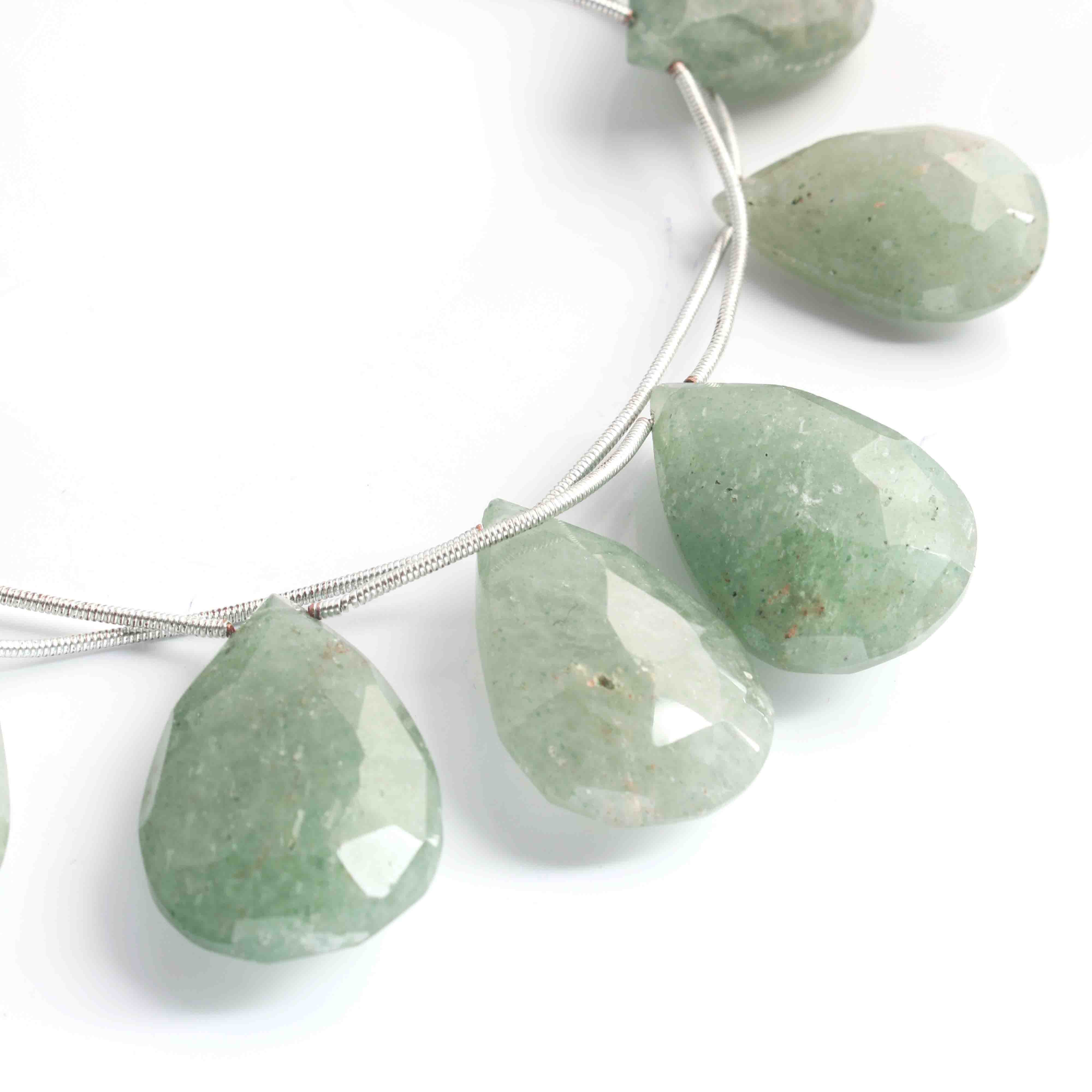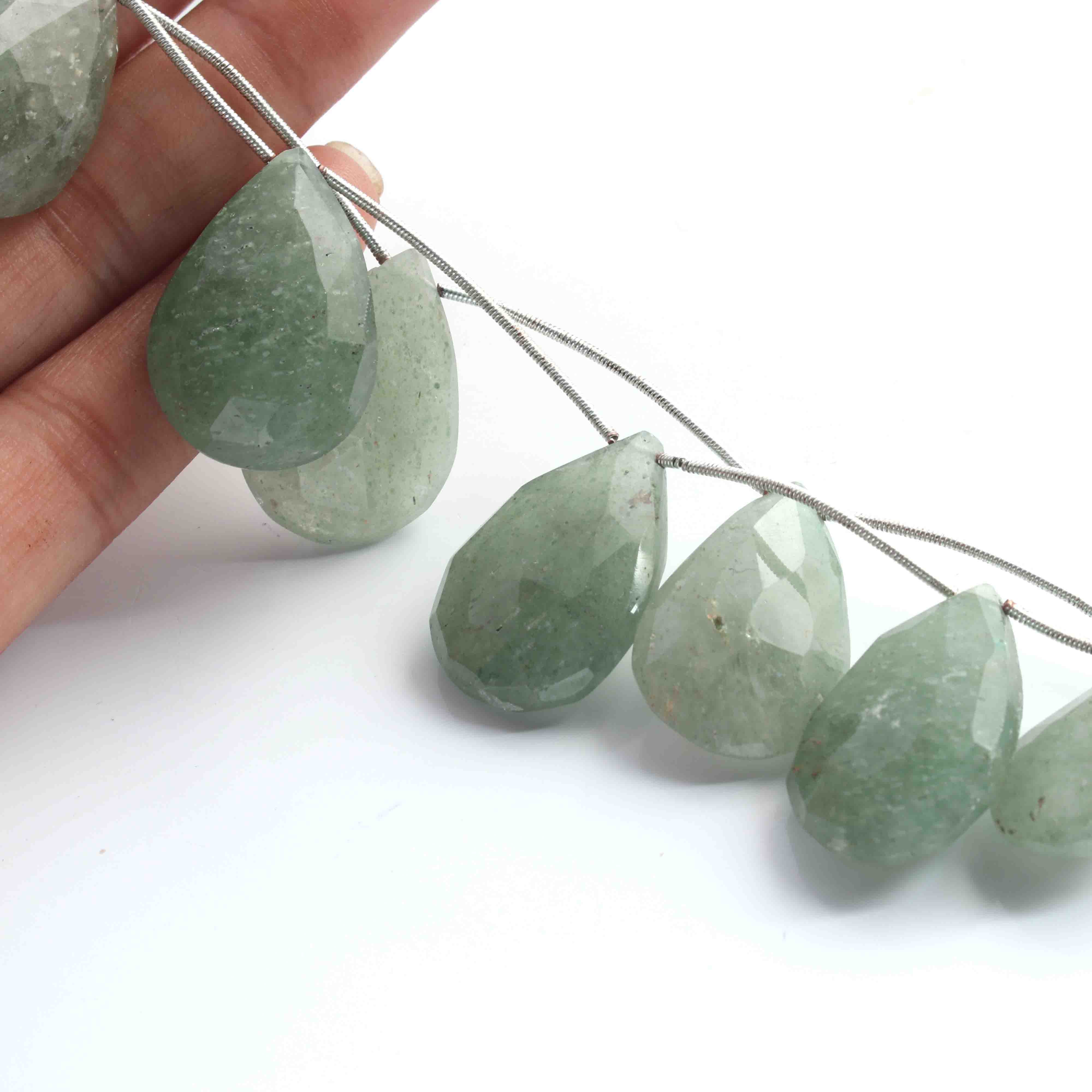 1 Strand Green Rutile Faceted Briolettes -Semi Precious Pear Shape Briolettes - 17mmx12mm-28mmx20mm-10 Inches BR02331