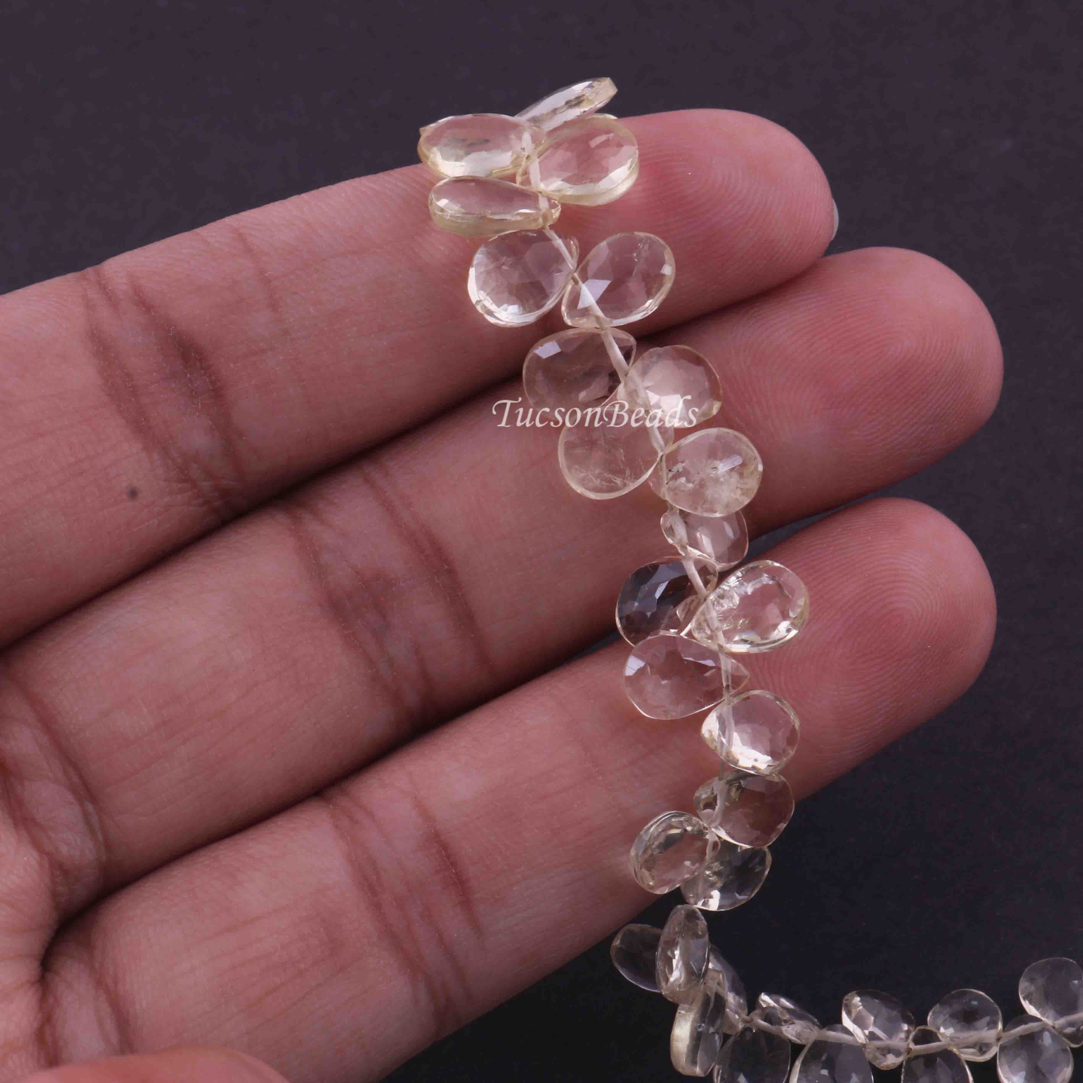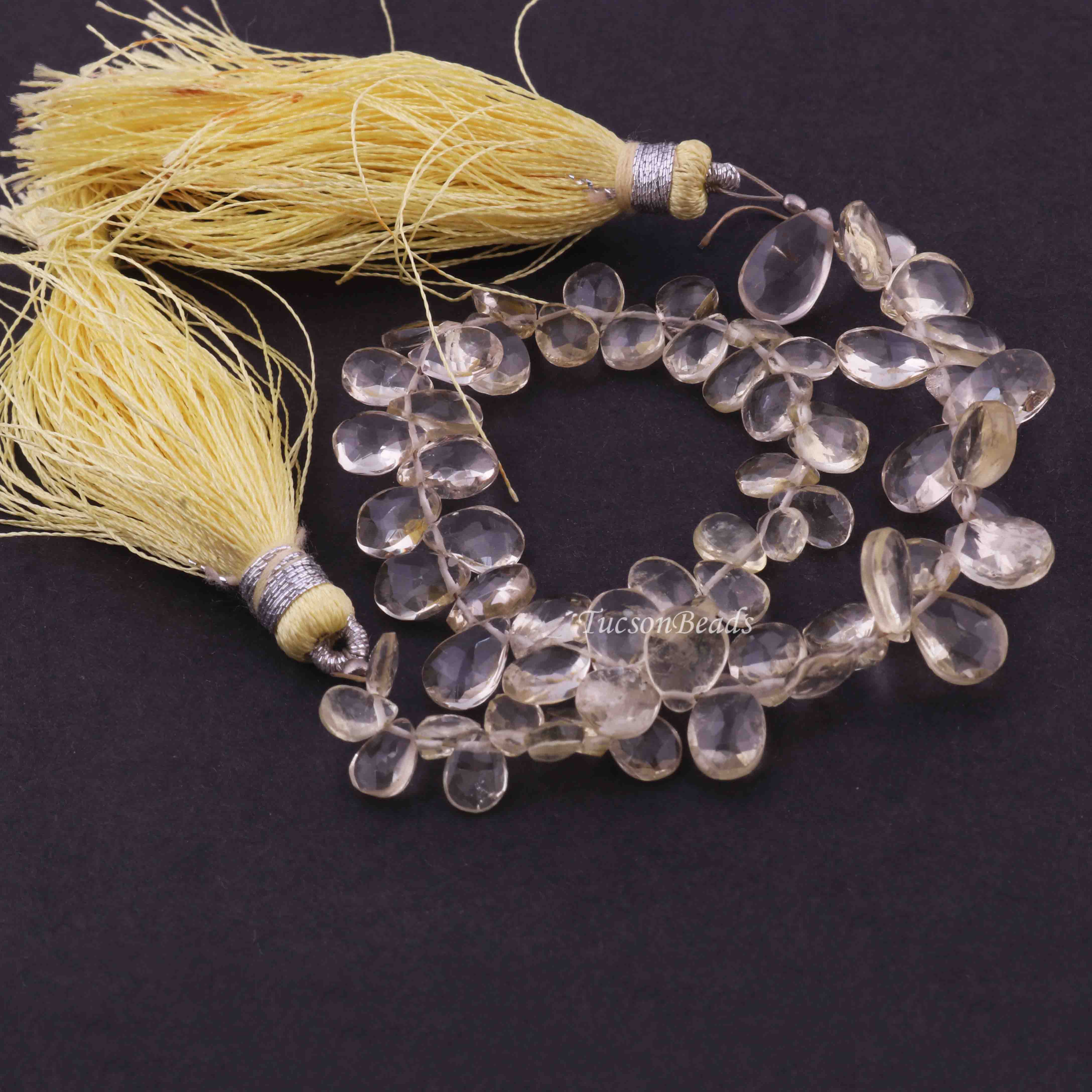 1 Strand Lemon Quartz Faceted Pear Shape Briolettes- 8mmx6mm 8 Inch BR4247