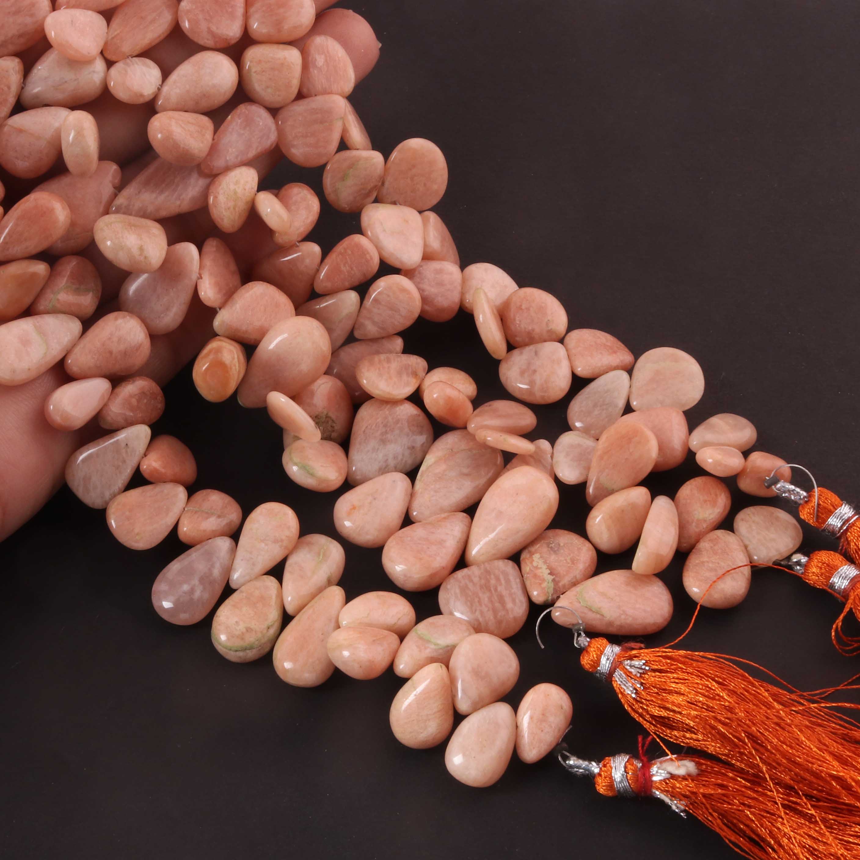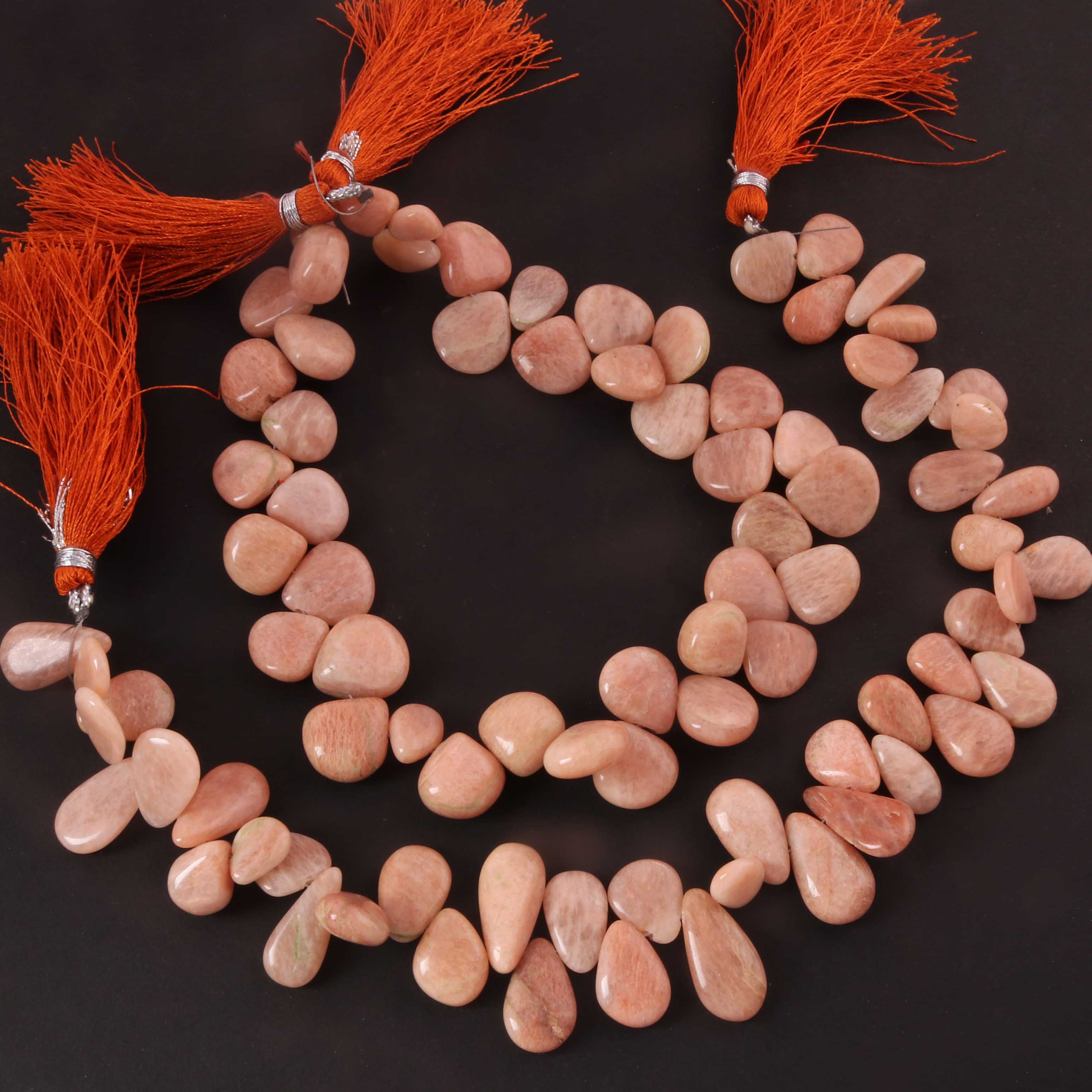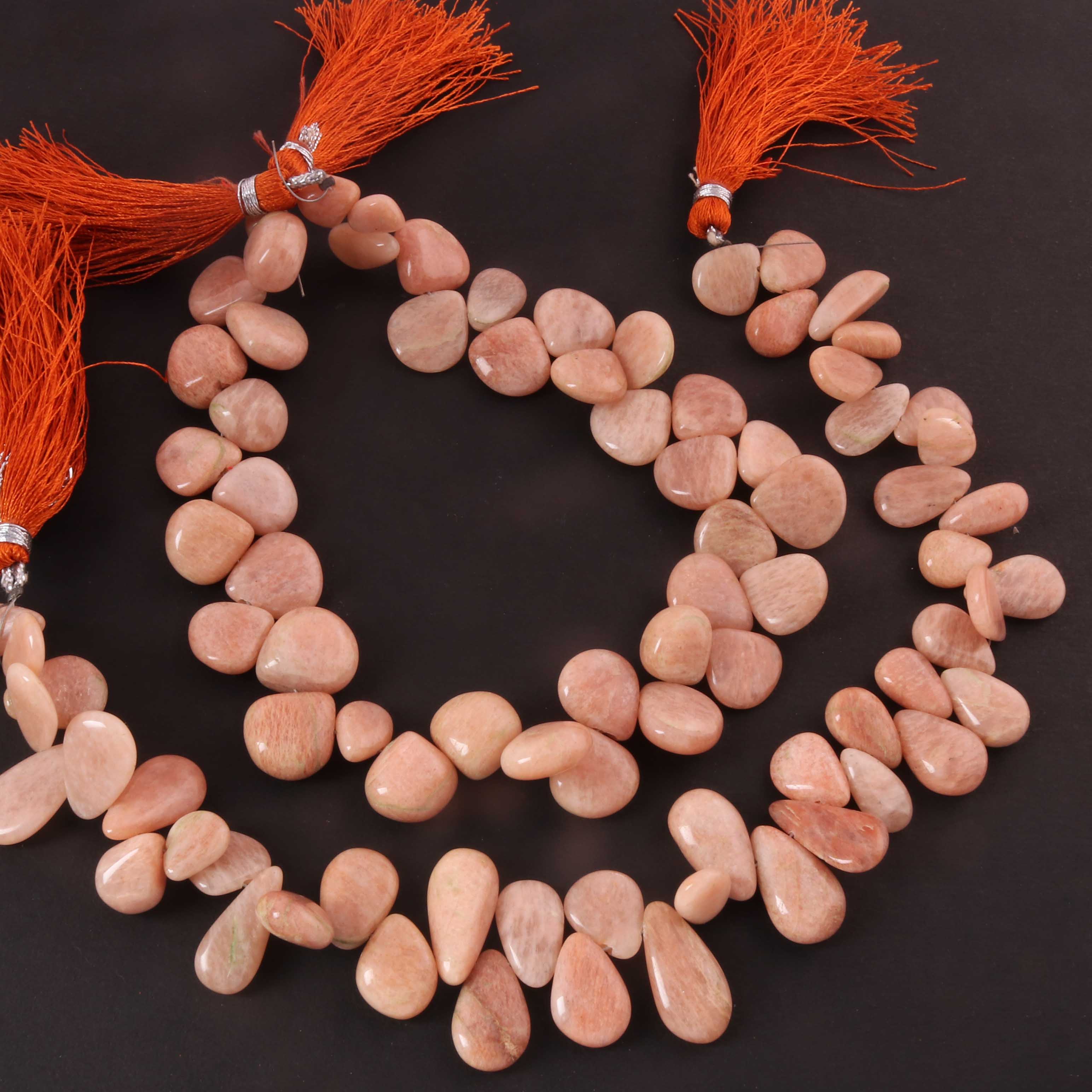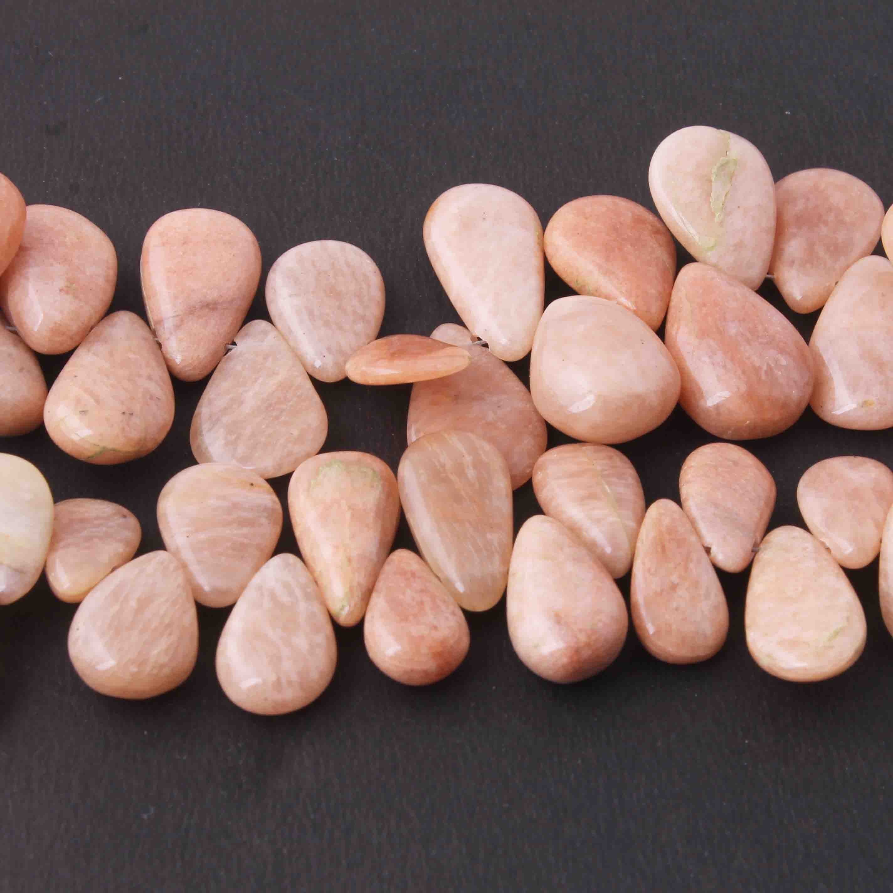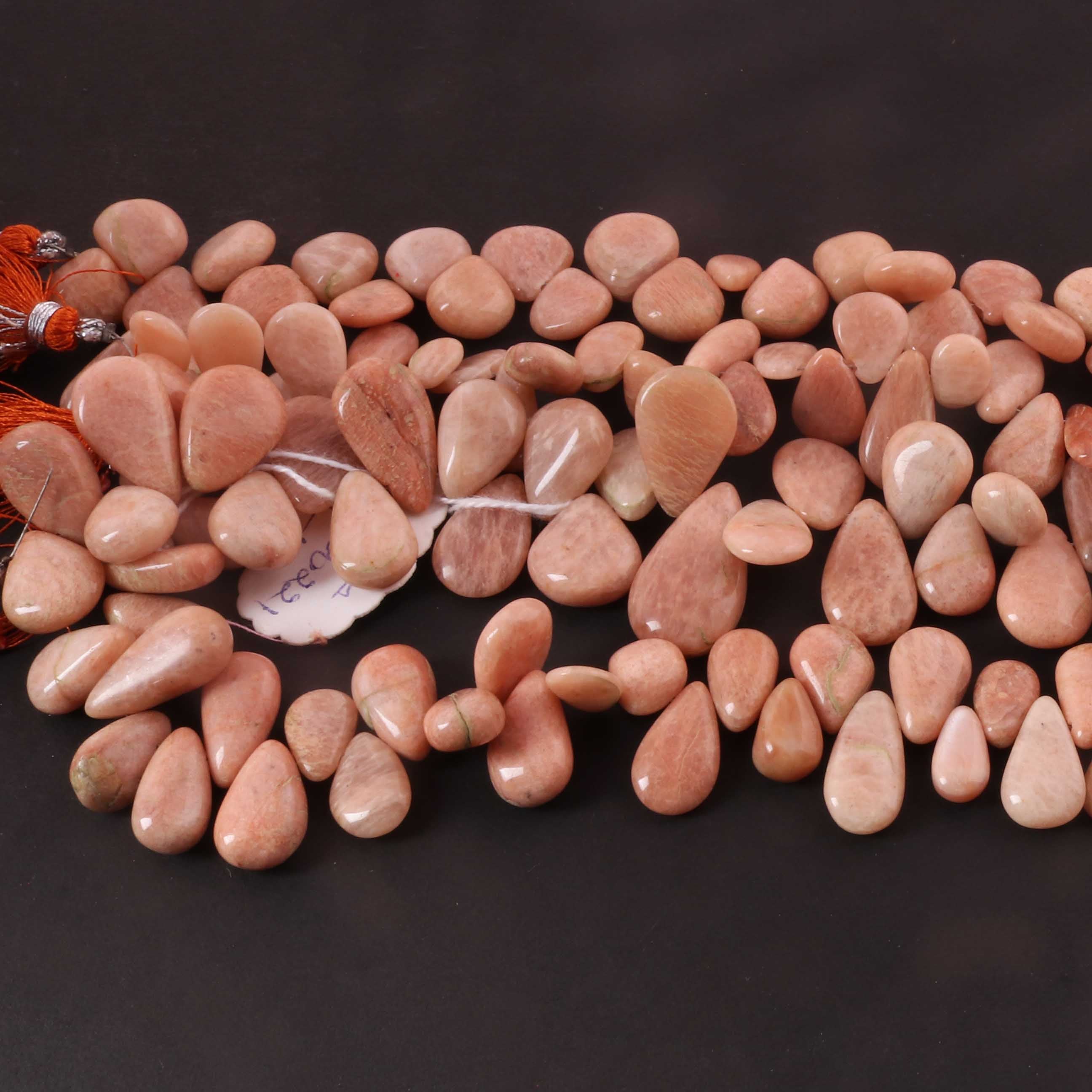 1 Strand Peach Moonstone Smooth Briolettes - Pear Shape Briolettes -24mmx14mm-10mmx7mm 10 Inches BR03360