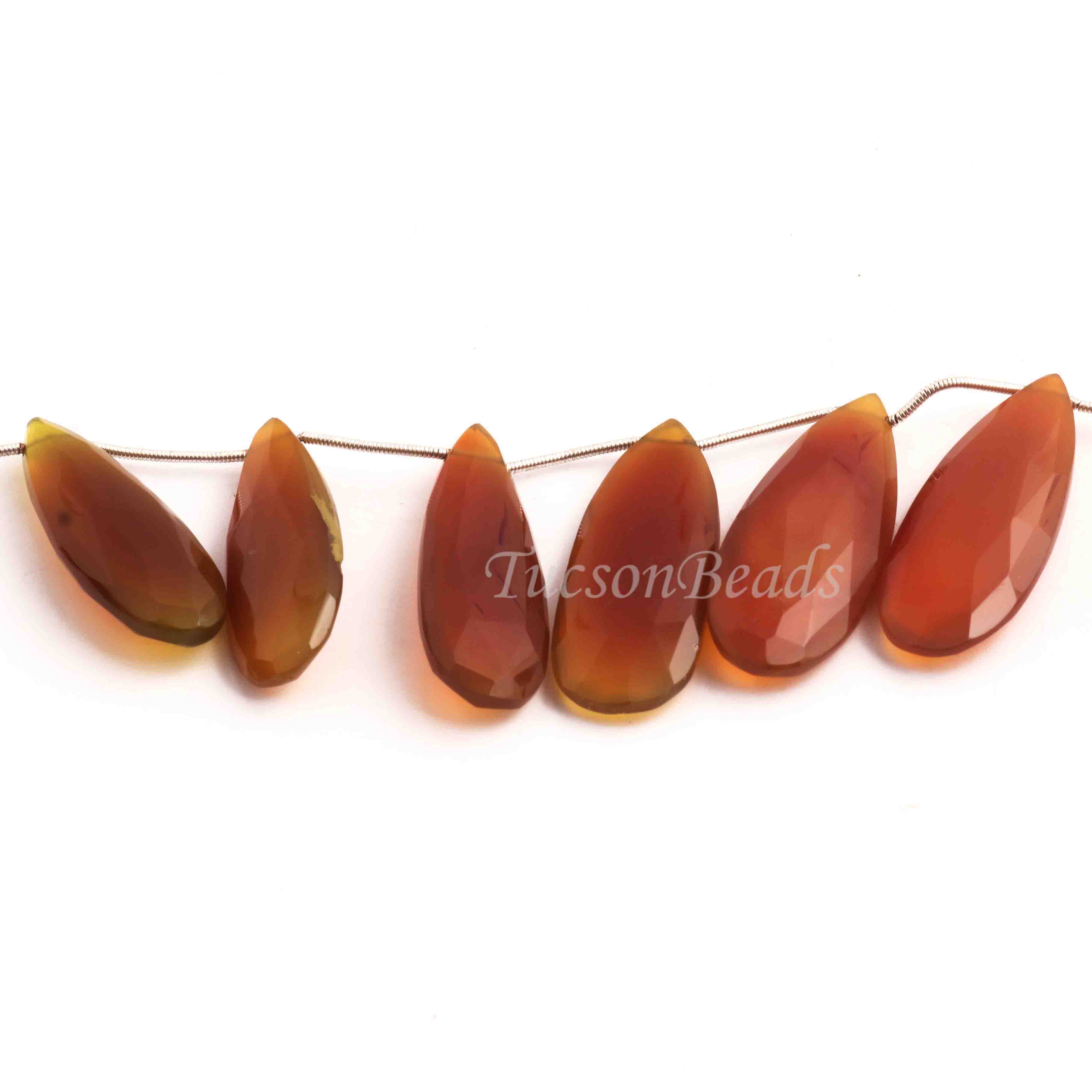 1 Strand Shaded Brown Chalcedony Pear Briolettes -Pear Beads - 39mmx24mm - 7 Inches BR1572