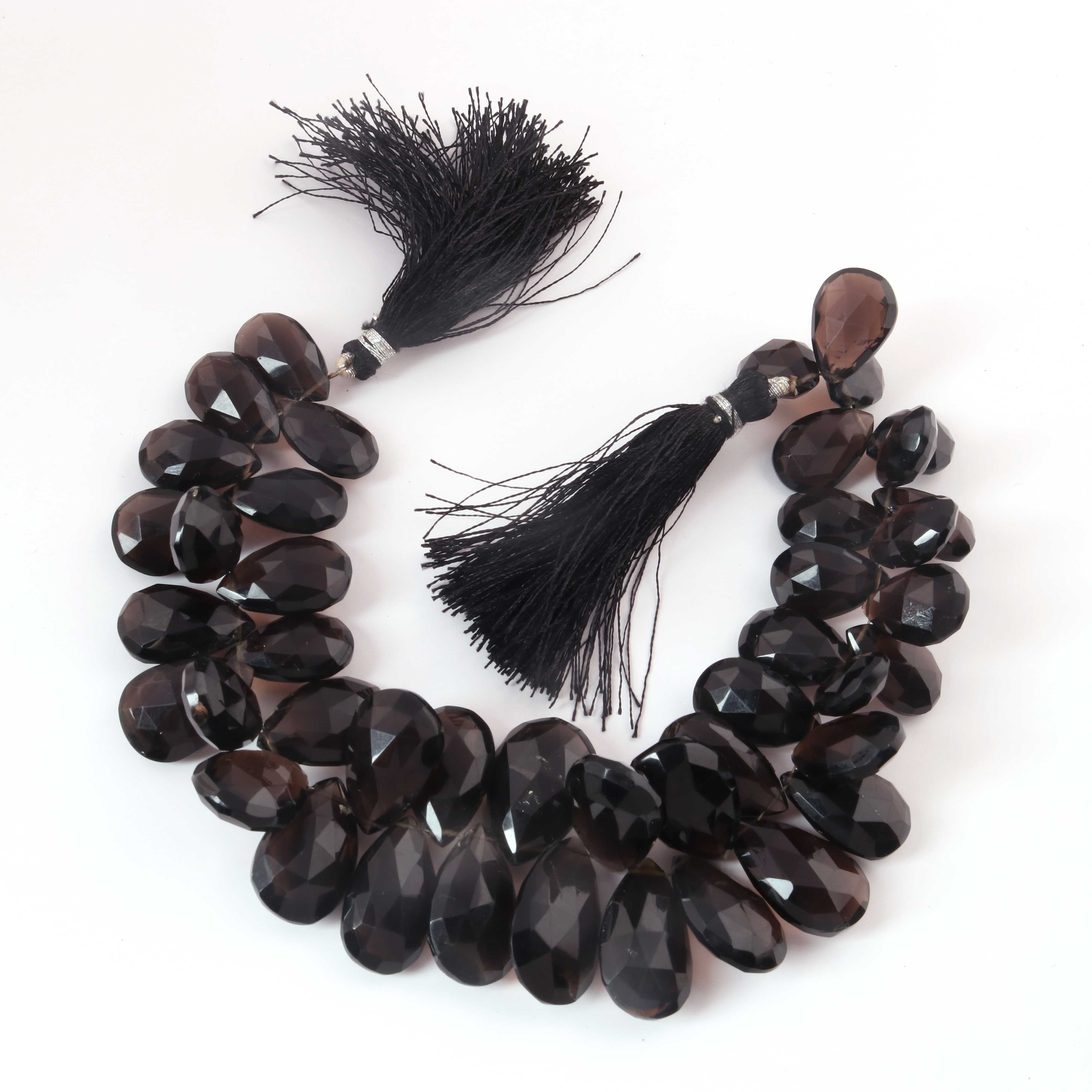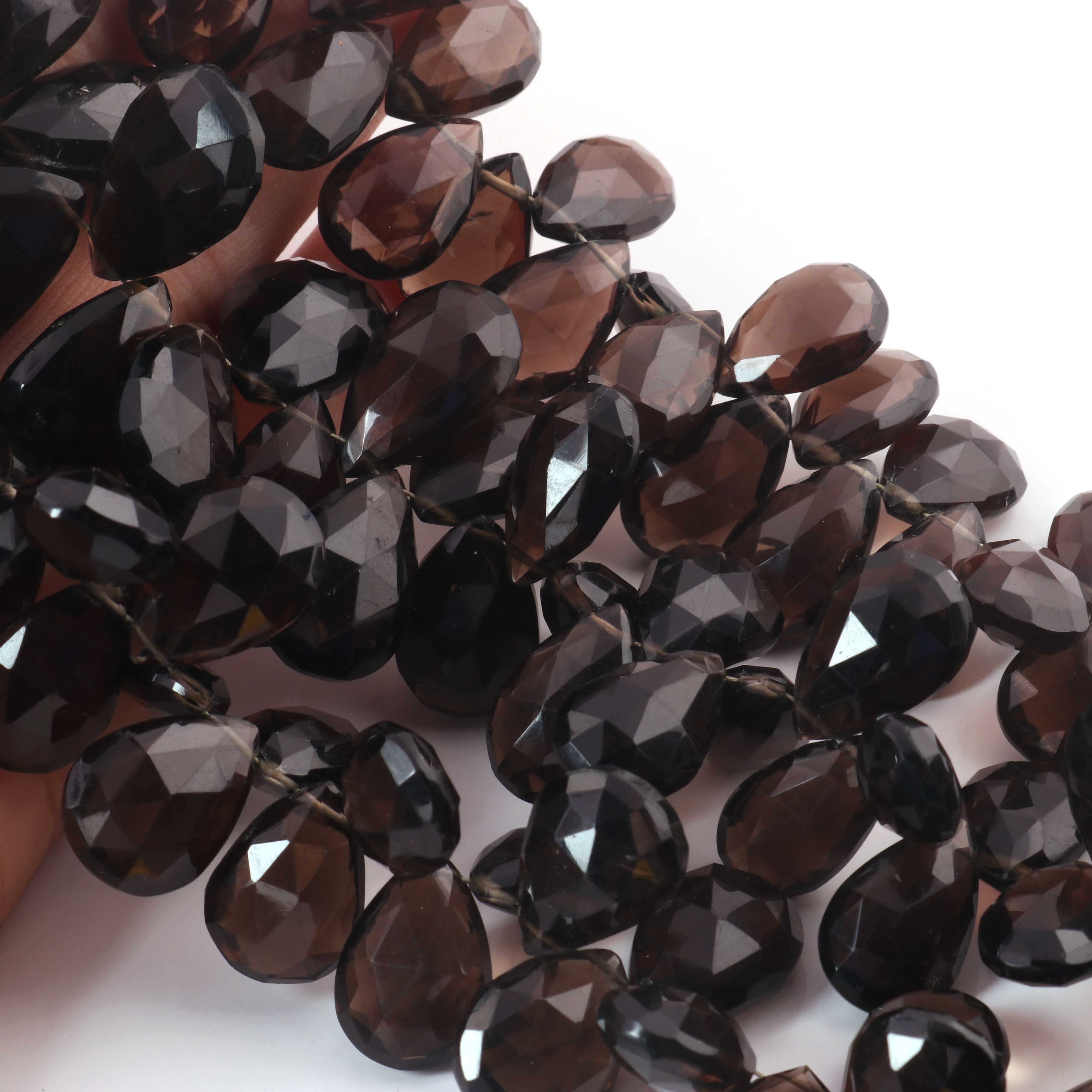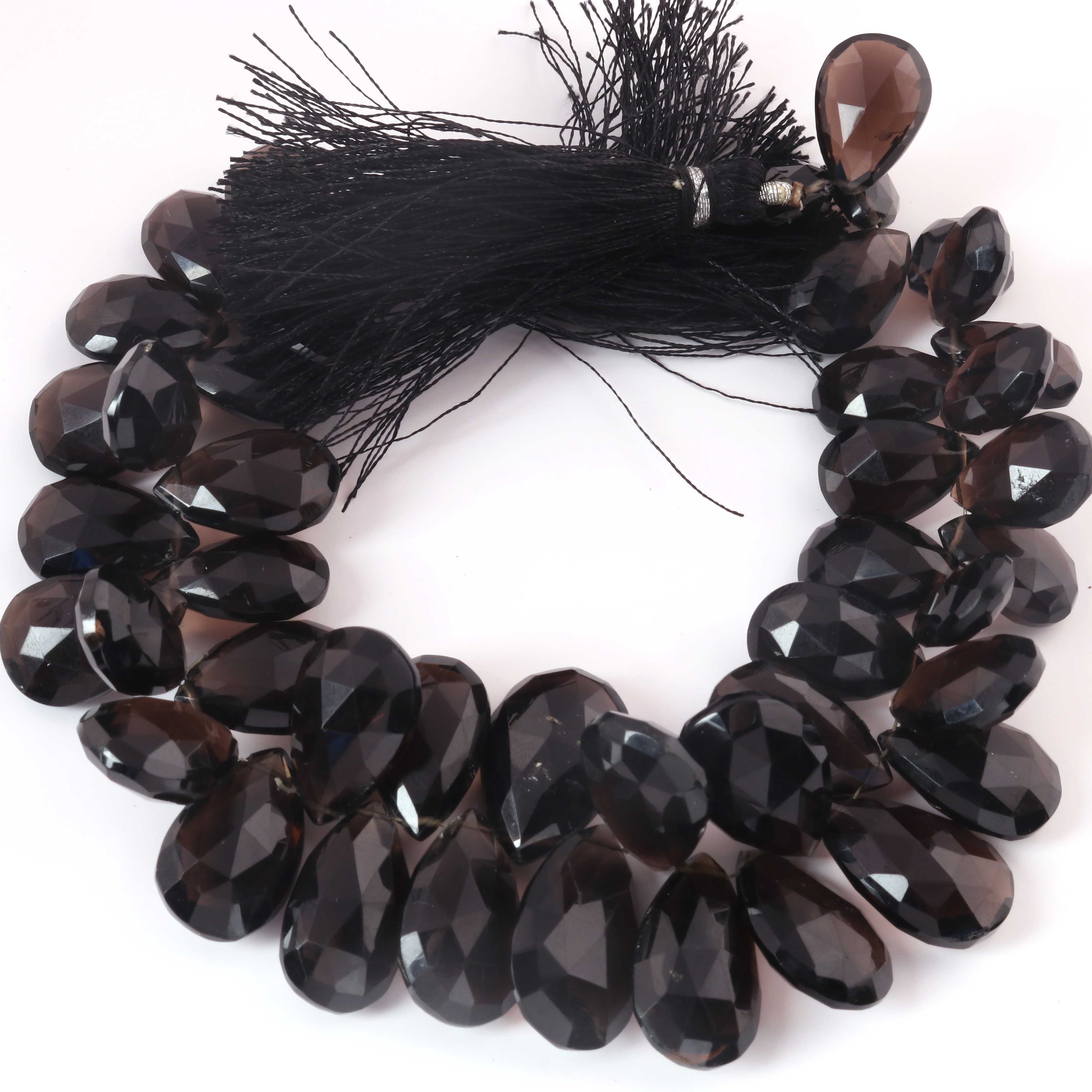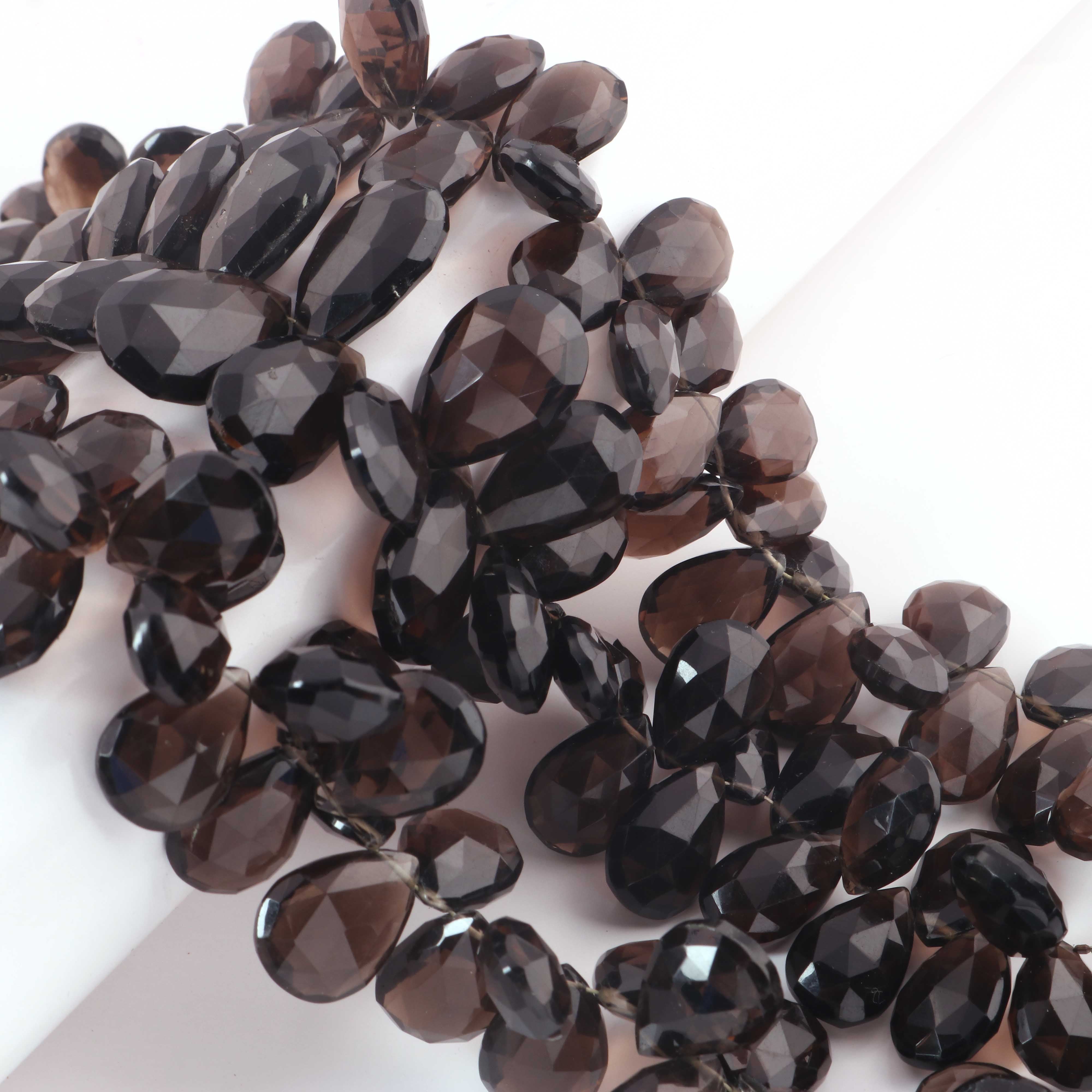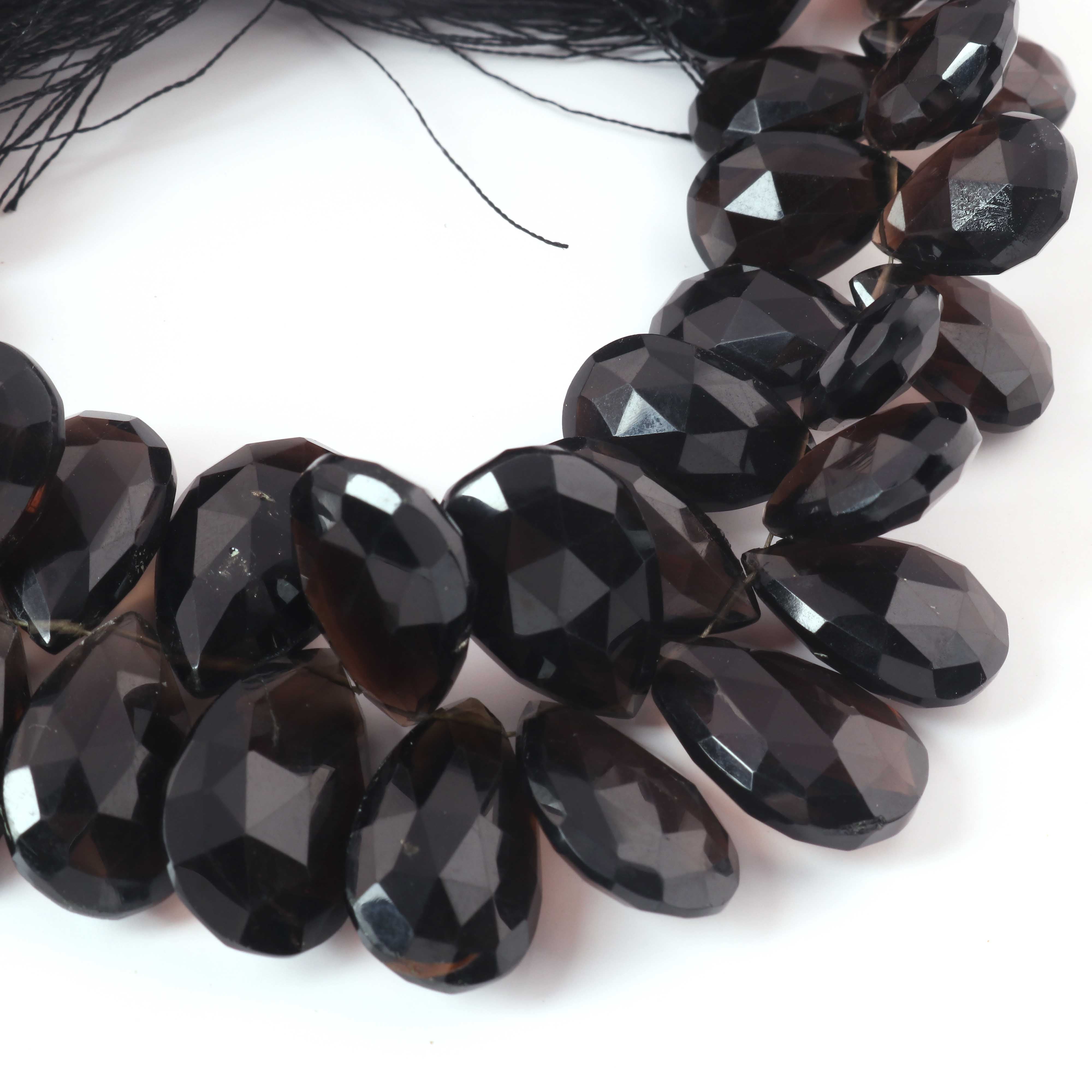 1  Strand Smoky Quartz Faceted Briolettes -Pear Shape  Briolettes  12mmx9mm-21mmx13mm -8 Inches BR03355
