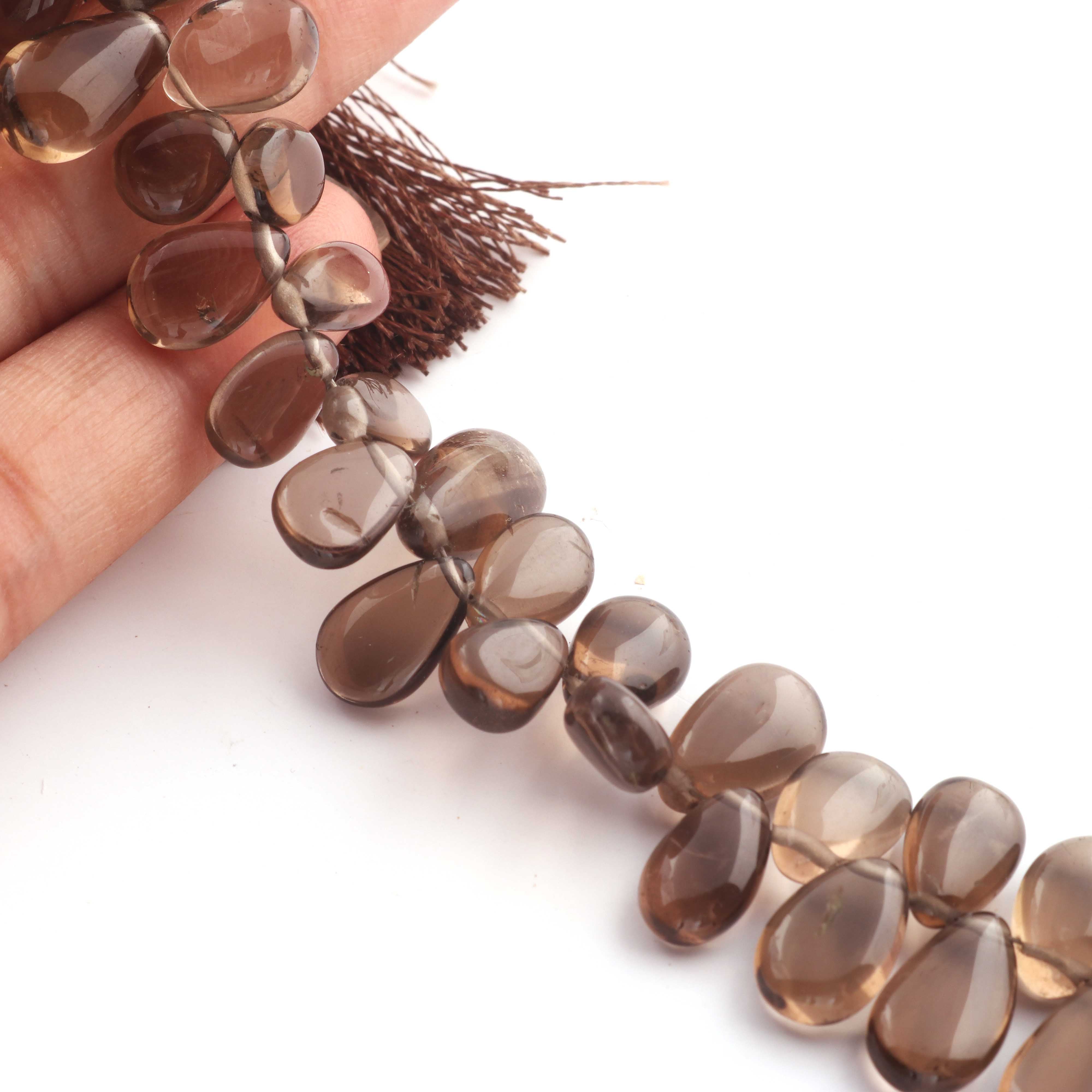 1 Strand Smoky Quartz Smooth Briolettes -Pear Shape Briolettes 8mmx7mm-17mmx9mm -9.5 Inches BR1394