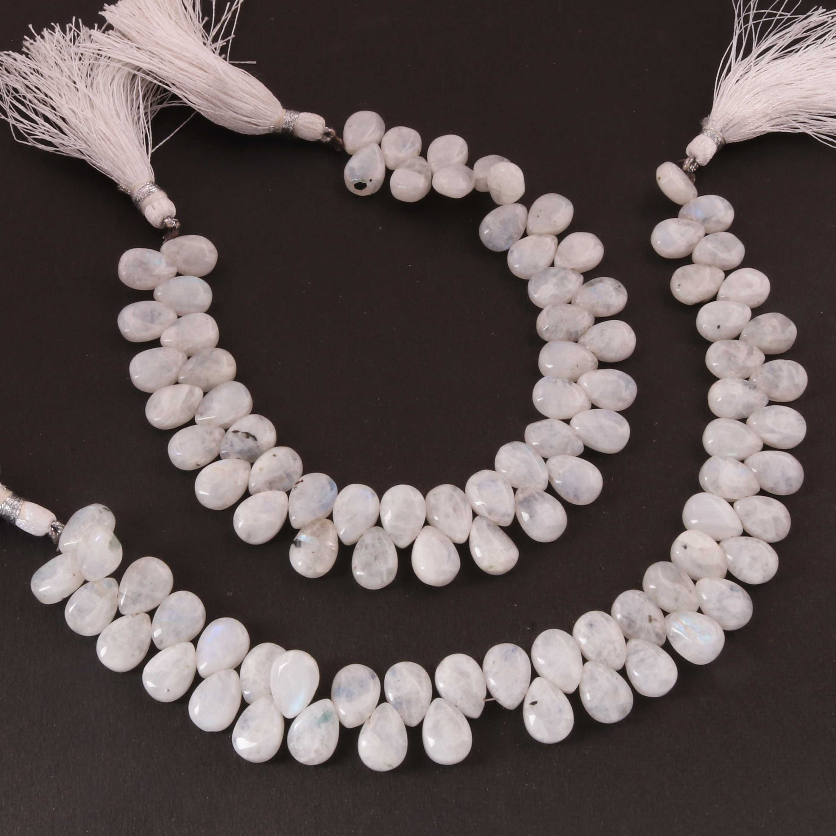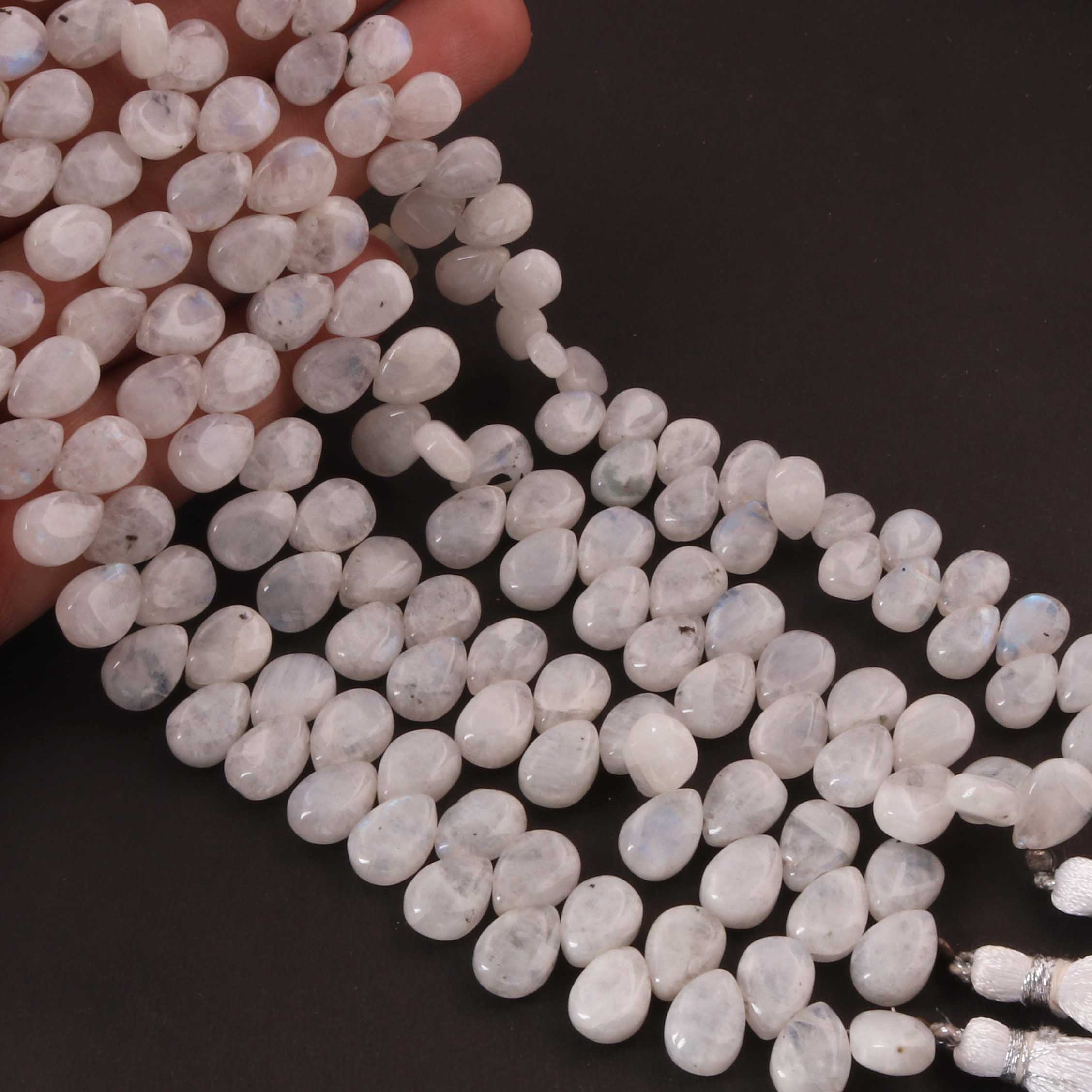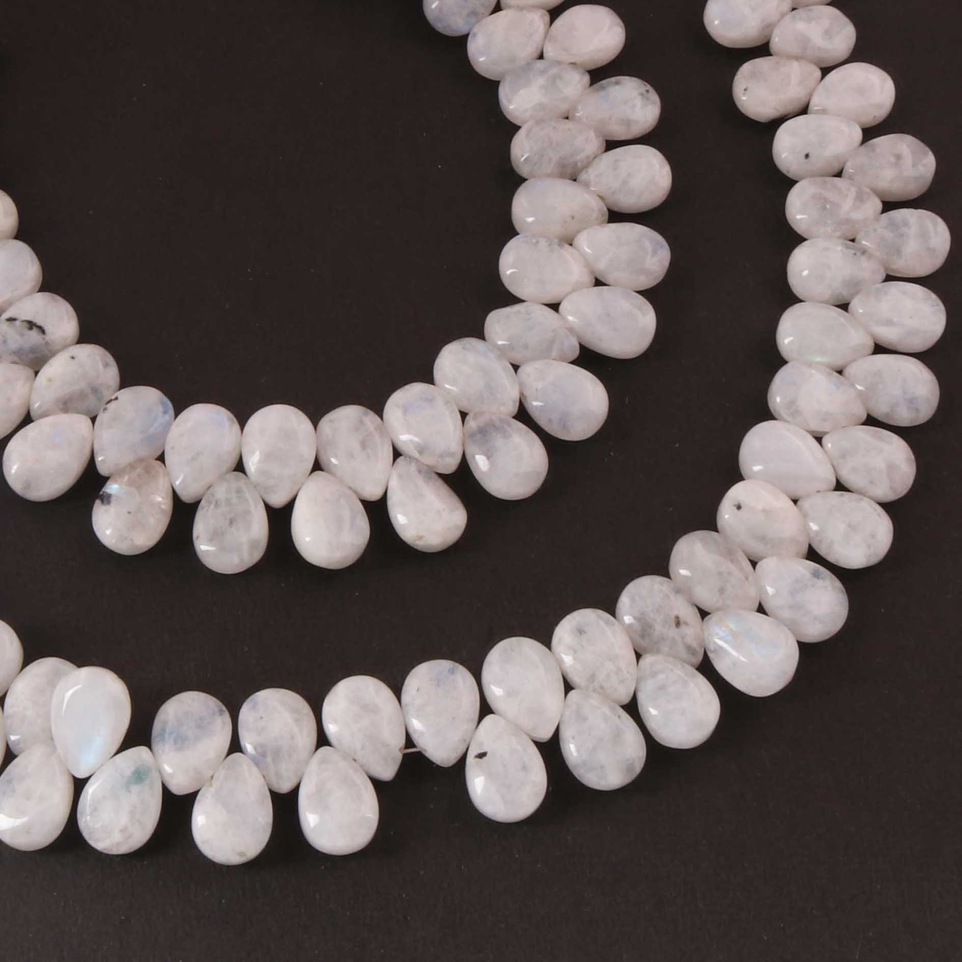 1 Strand White Rainbow Moonstone Smooth Briolettes - Pear Shape Briolettes - 8mmx5mm-10mmx7mm 8 Inches BR0478