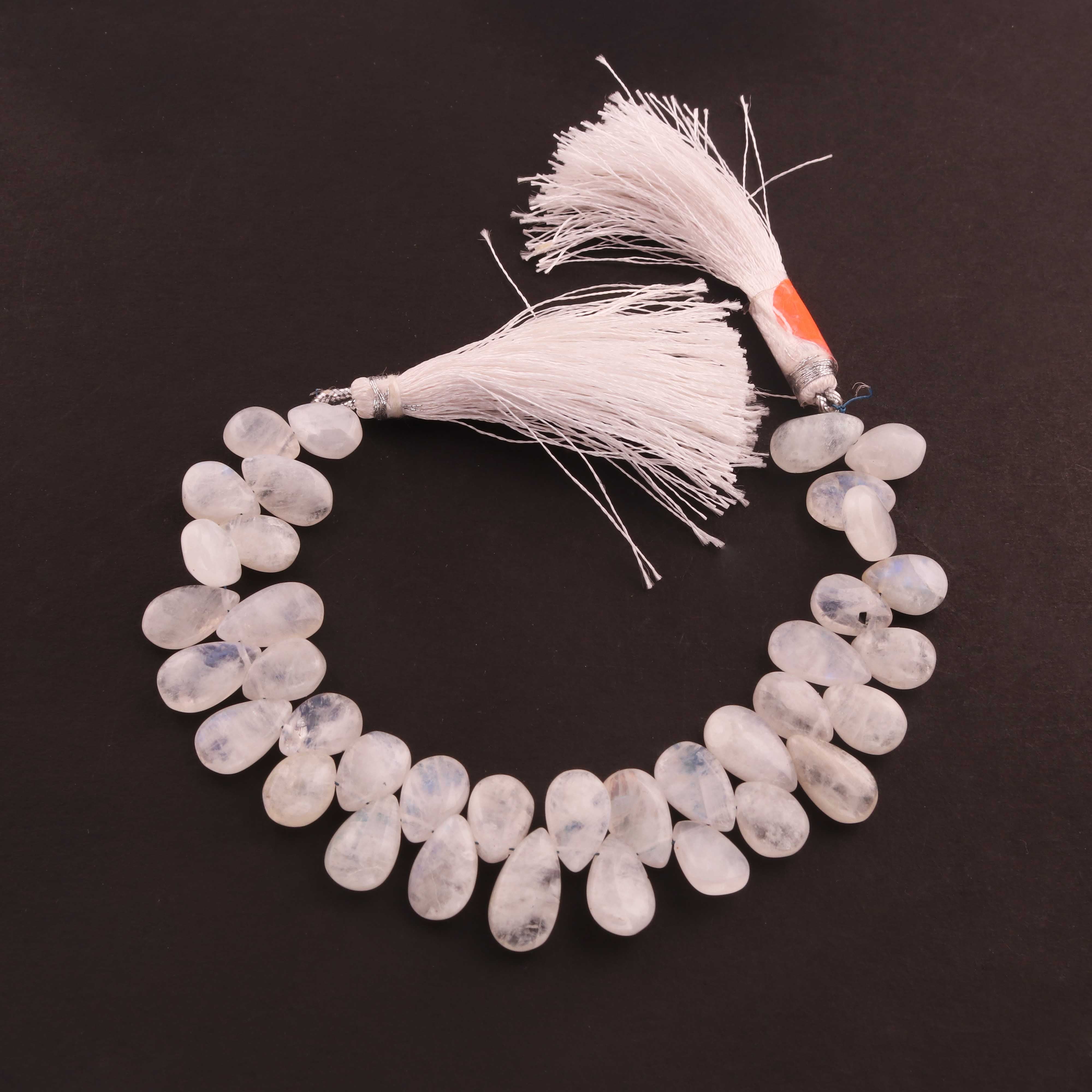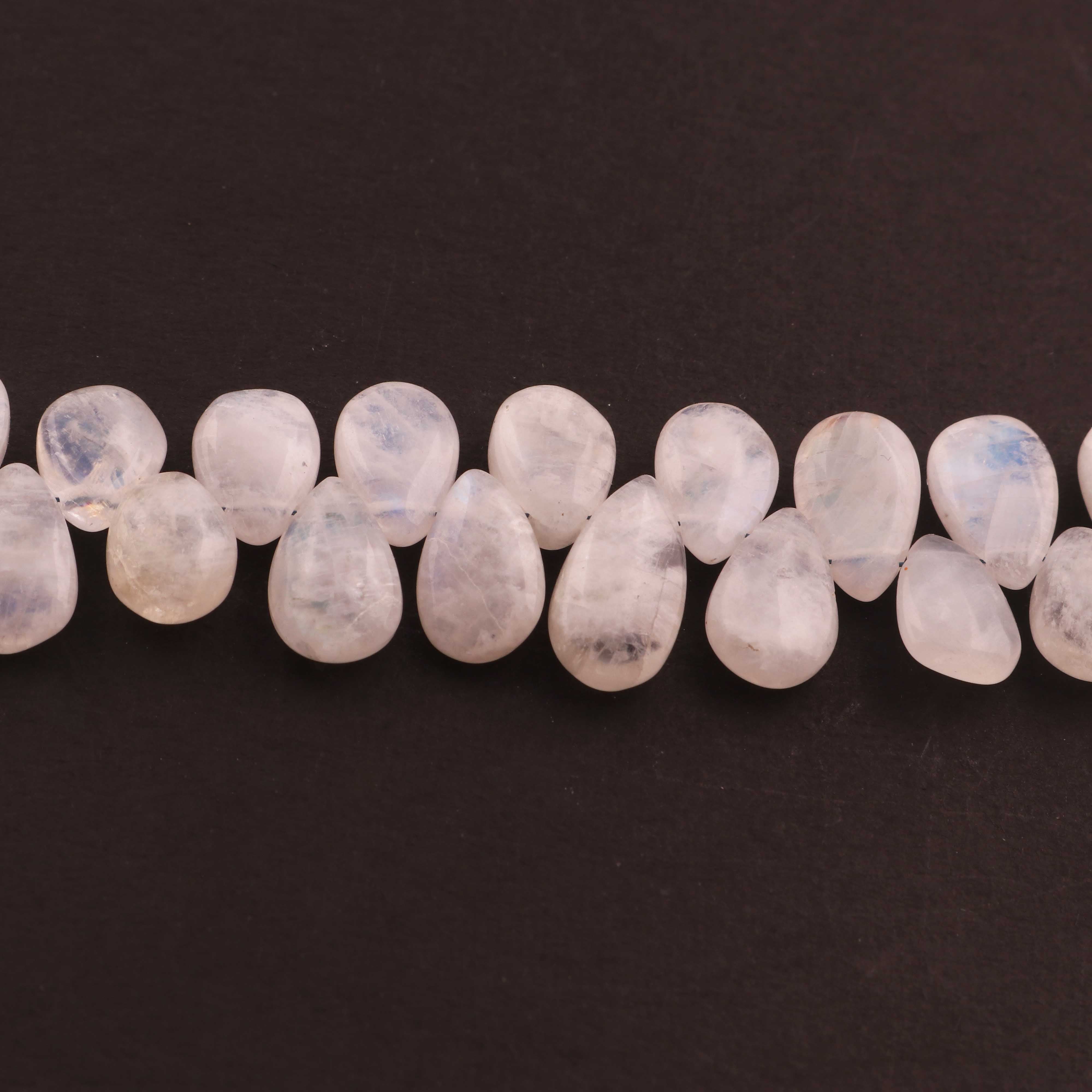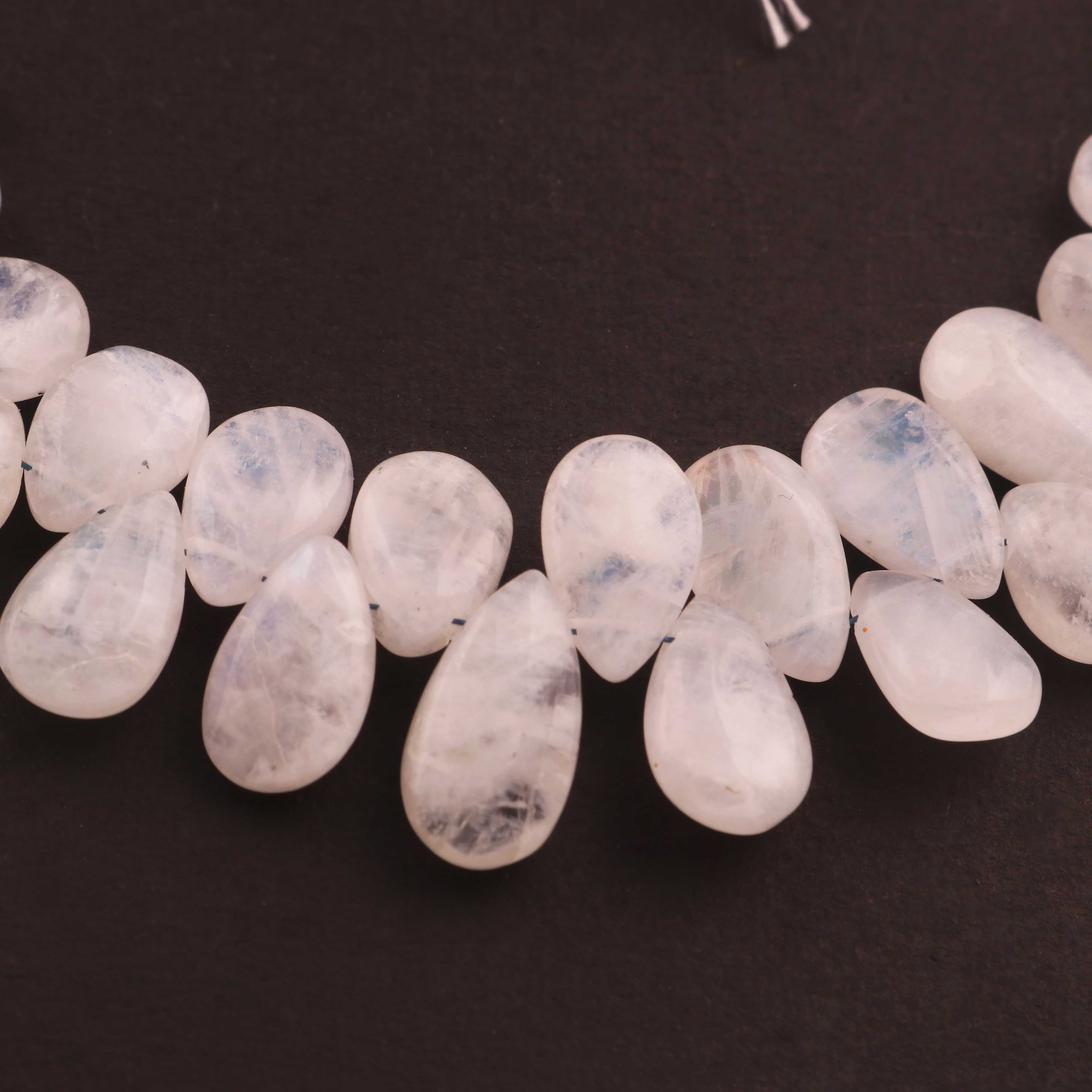 1 Strand White Rainbow Moonstone Smooth Pear Briolettes - 10mmx7mm-13mmx7mm 6.5 inches BR0155