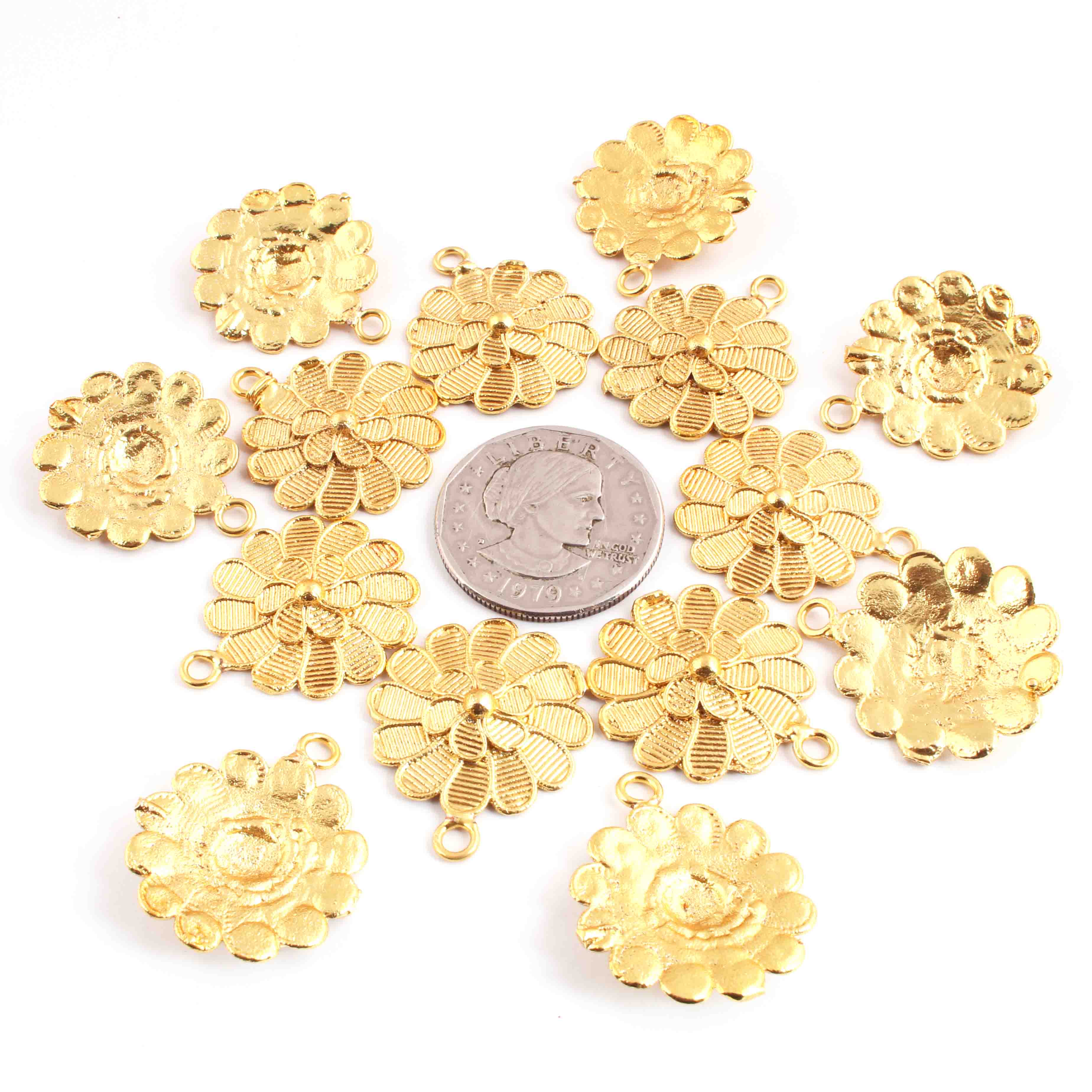 10 Pcs Beautiful Gold Flower  Charm Pendant- 24k Matte Gold Plated Pendant - 29mmx23mm GPC1382