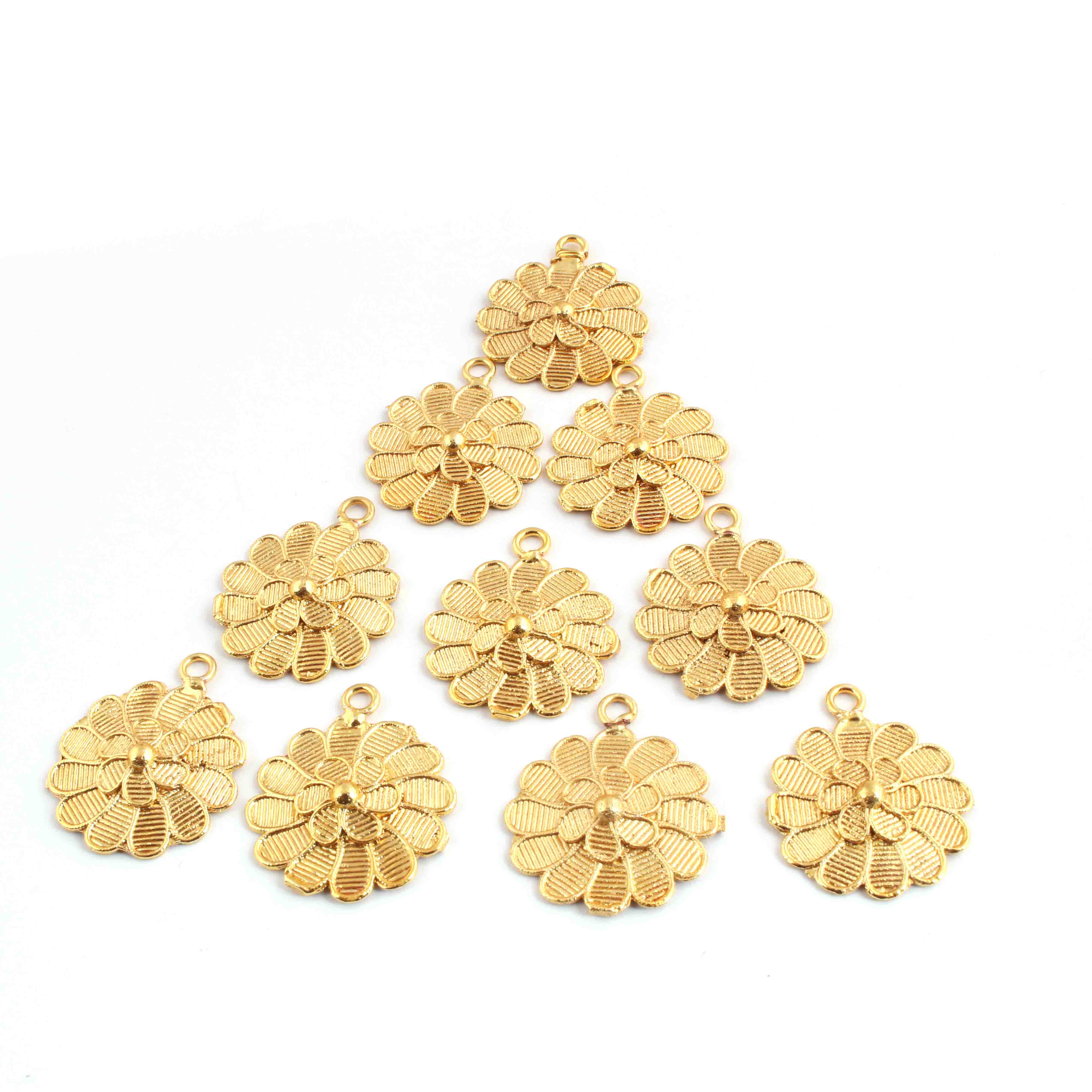 10 Pcs Beautiful Gold Flower Charm Pendant- 24k Matte Gold Plated Pendant - 29mmx23mm GPC1382