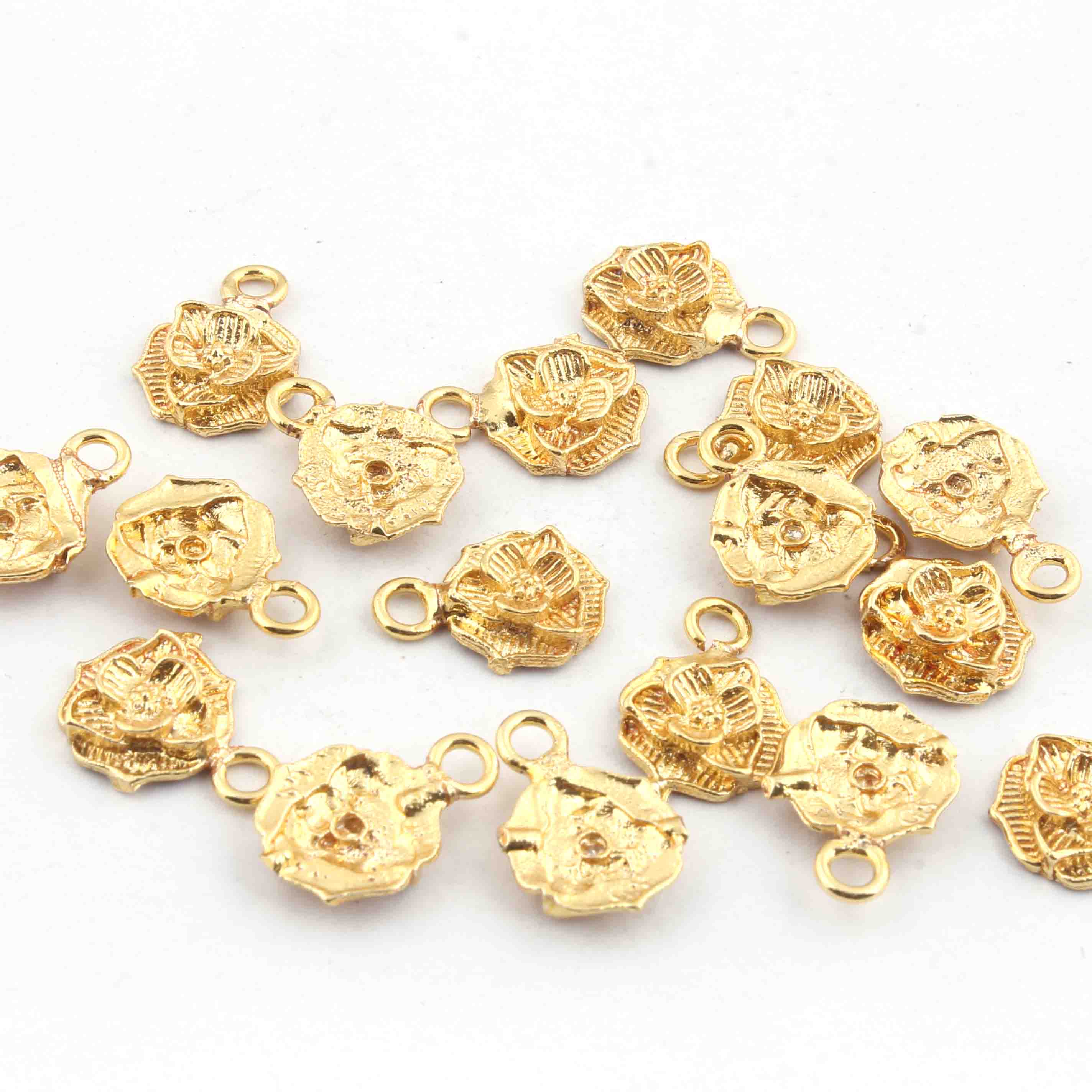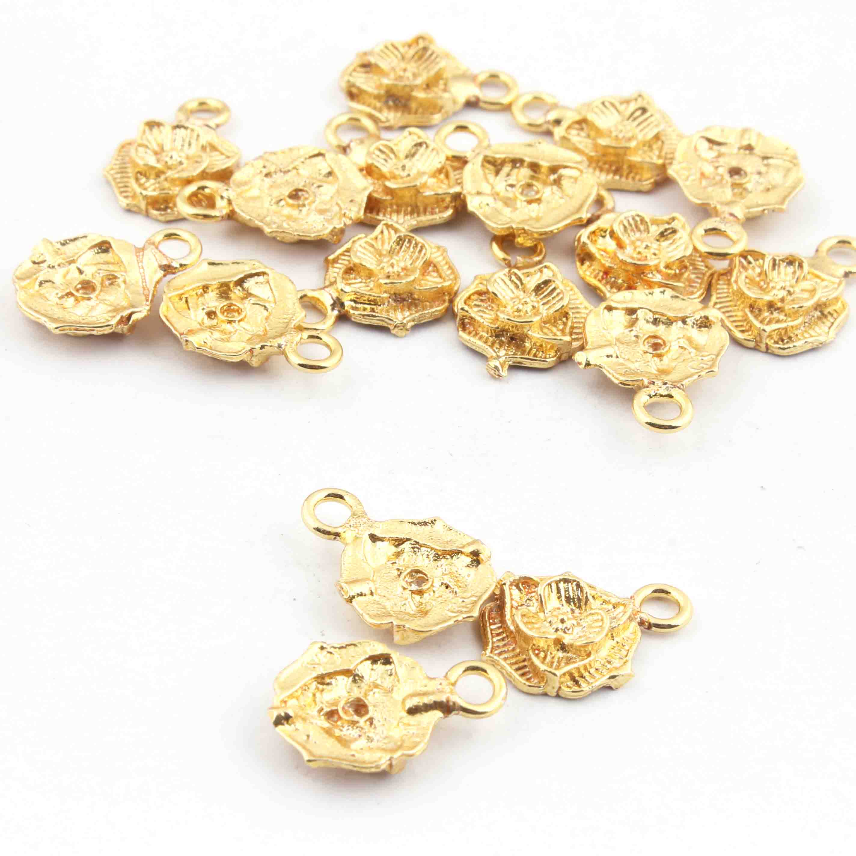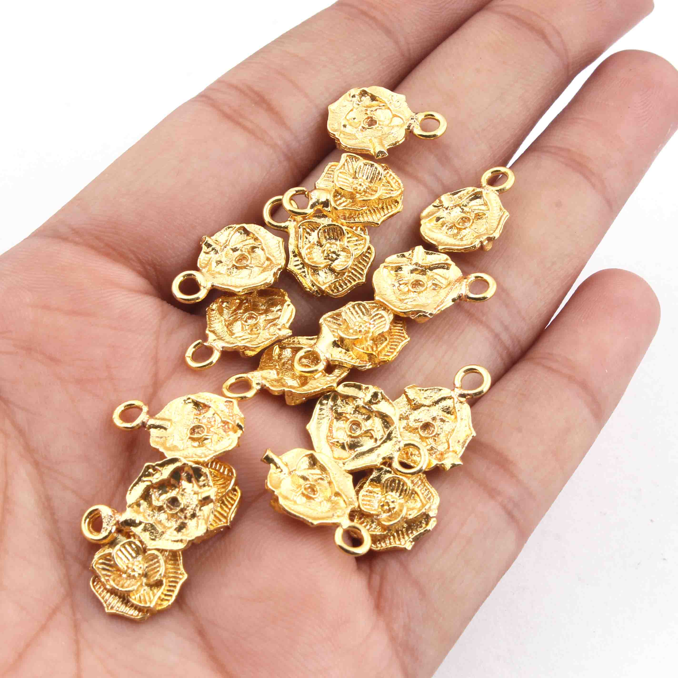 16 Pcs 24k Gold Plated Copper Round Pendant, Round Flower Pendant, Jewelry Making Tools, 15mmx11mm Gpc291