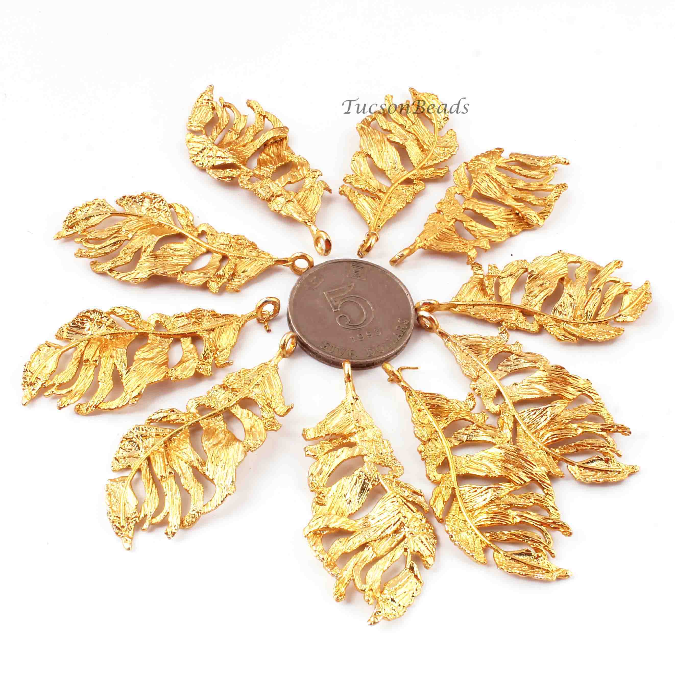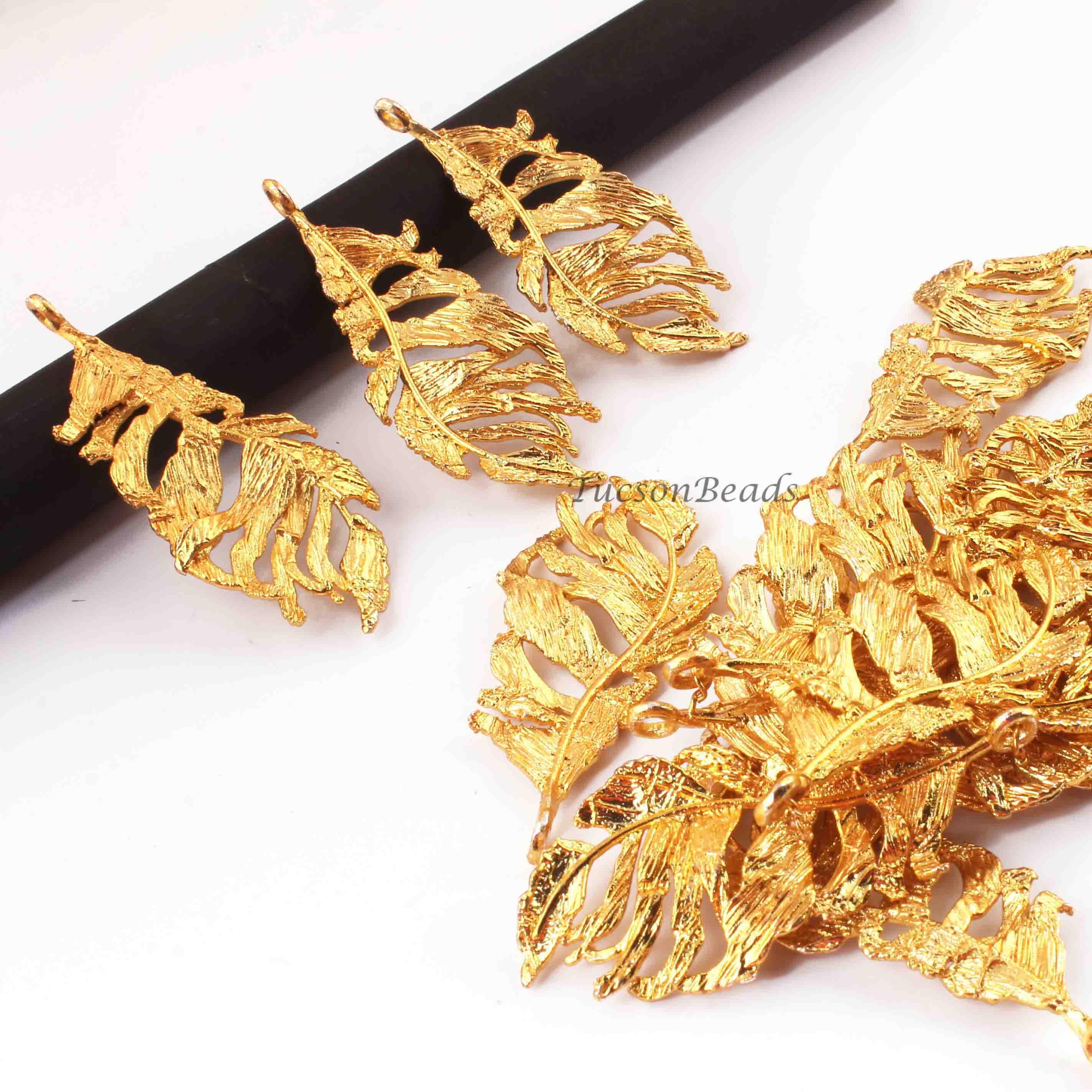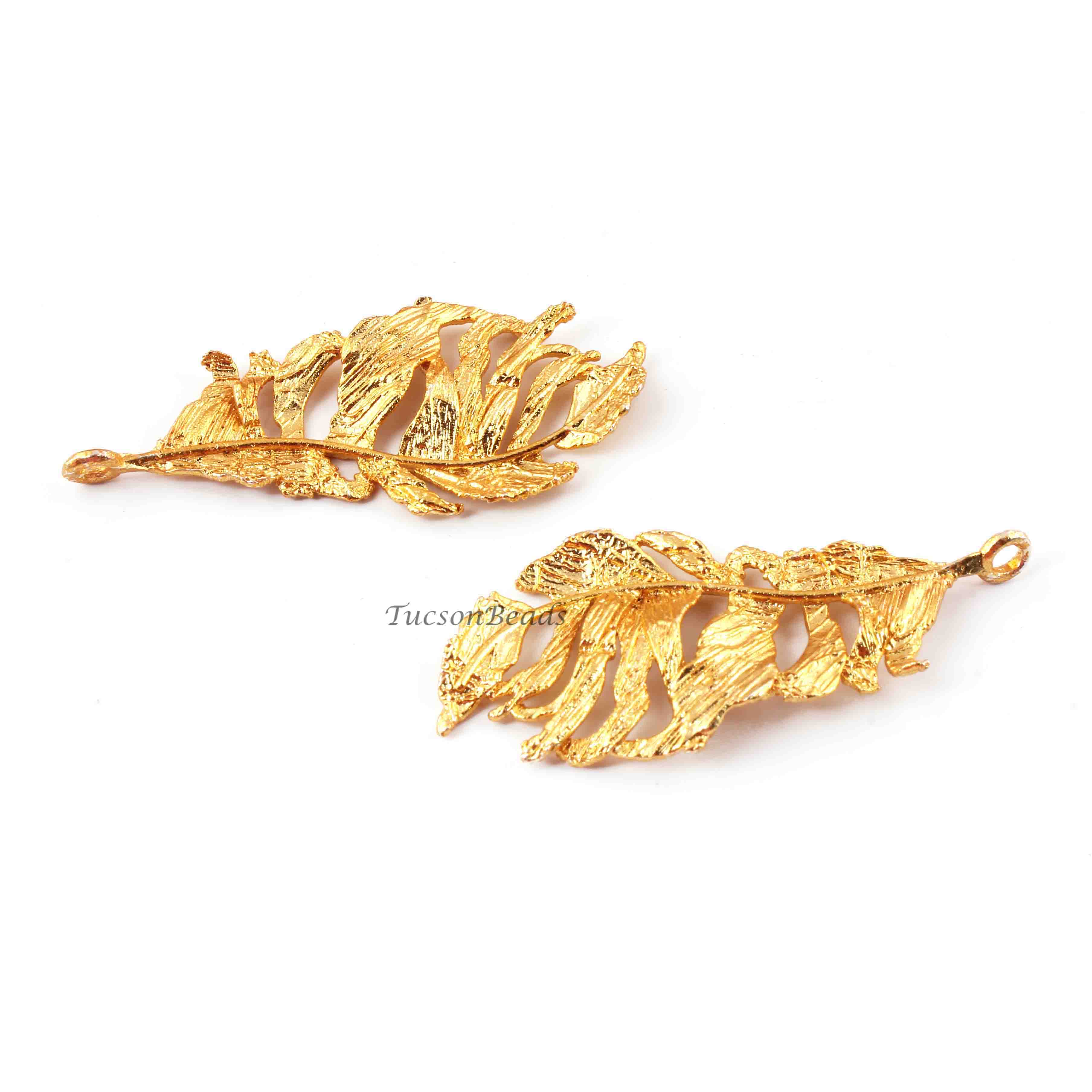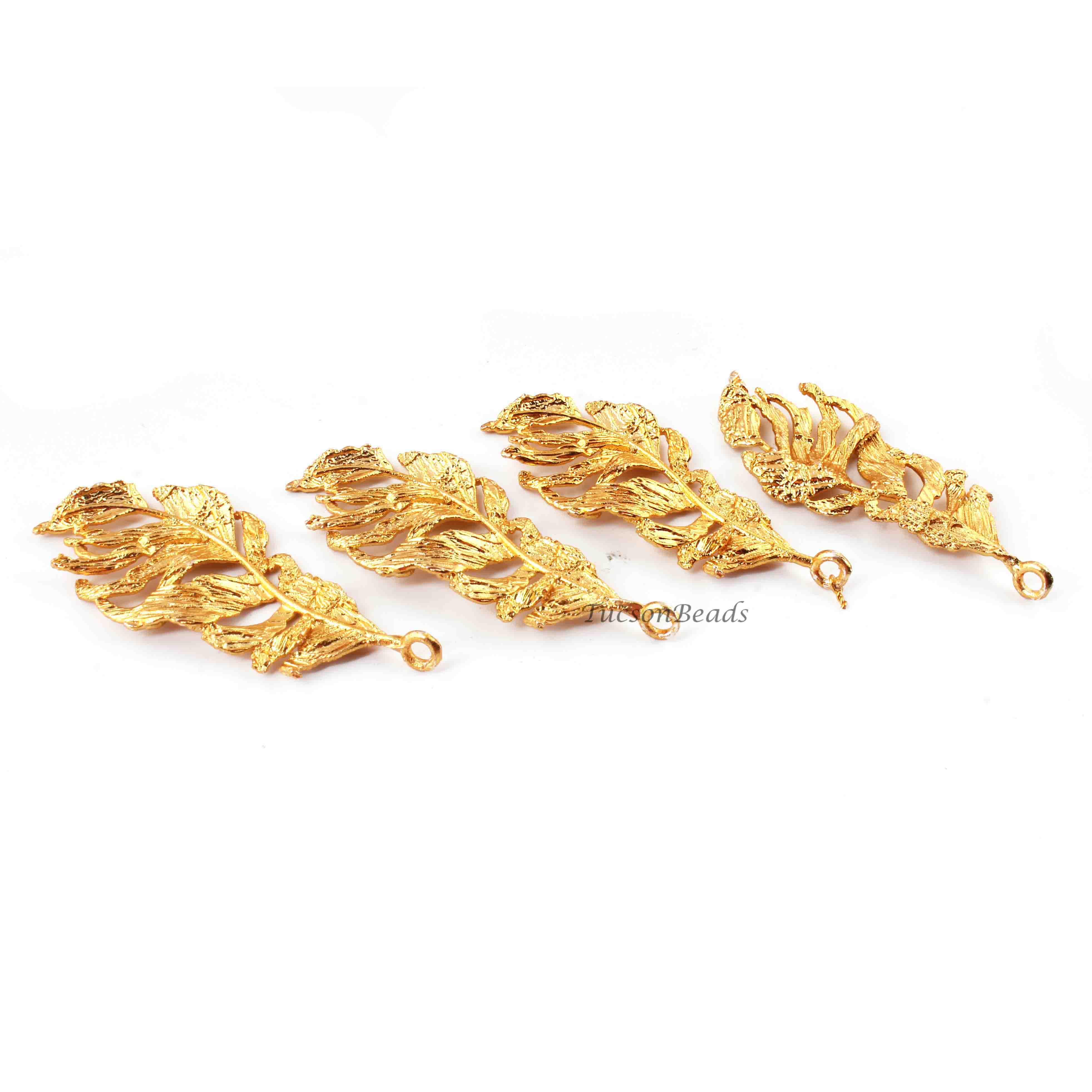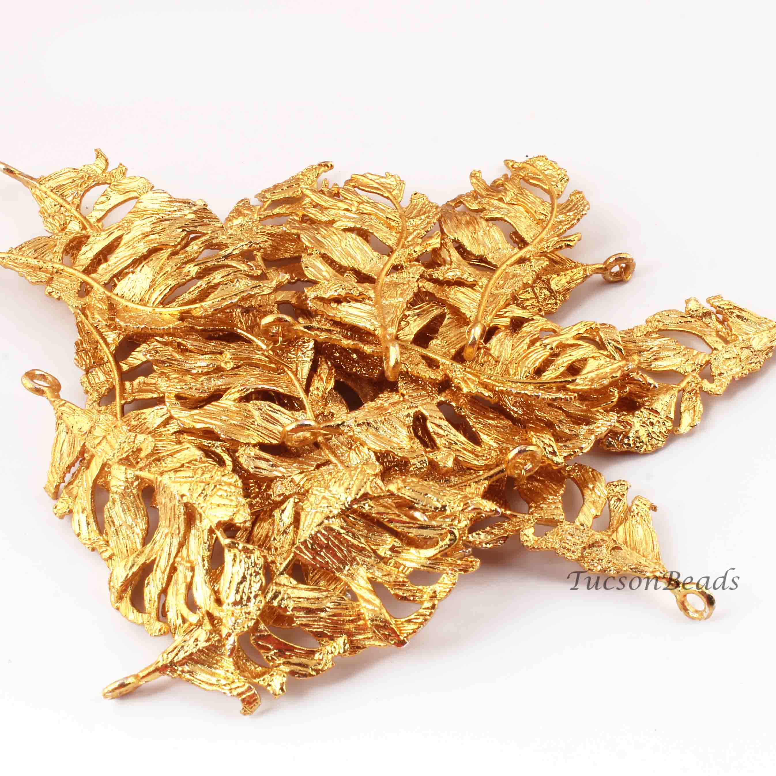 5 Pcs Beautiful Canadian Leaf Bead 24K Gold Plated on Copper - Leaf Pendant 24mmx55mm GPC0018