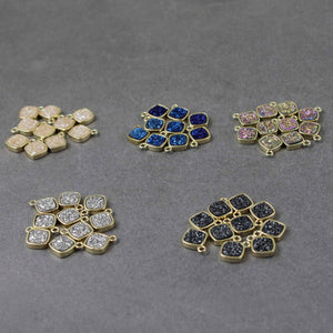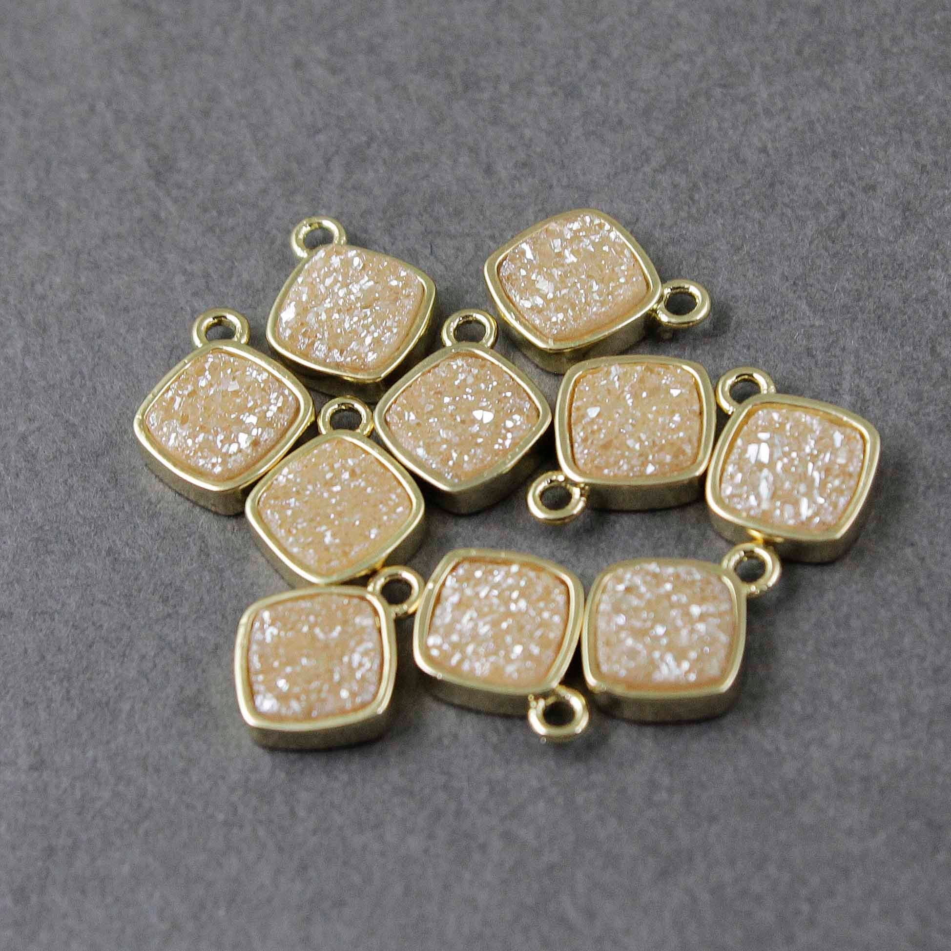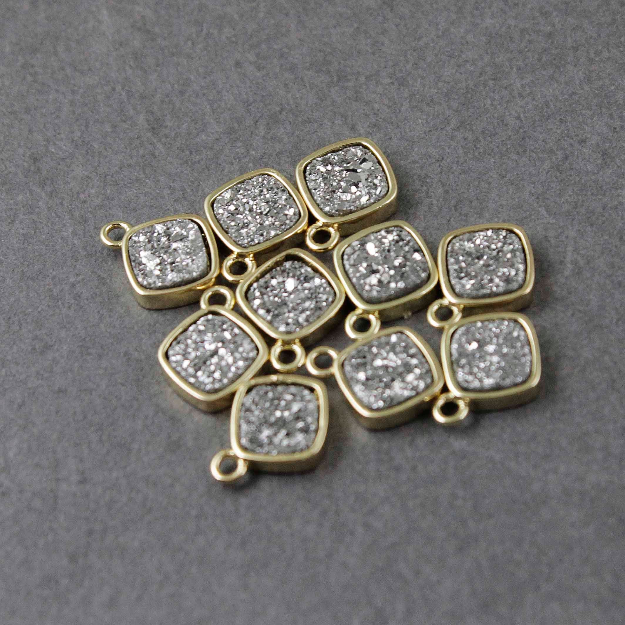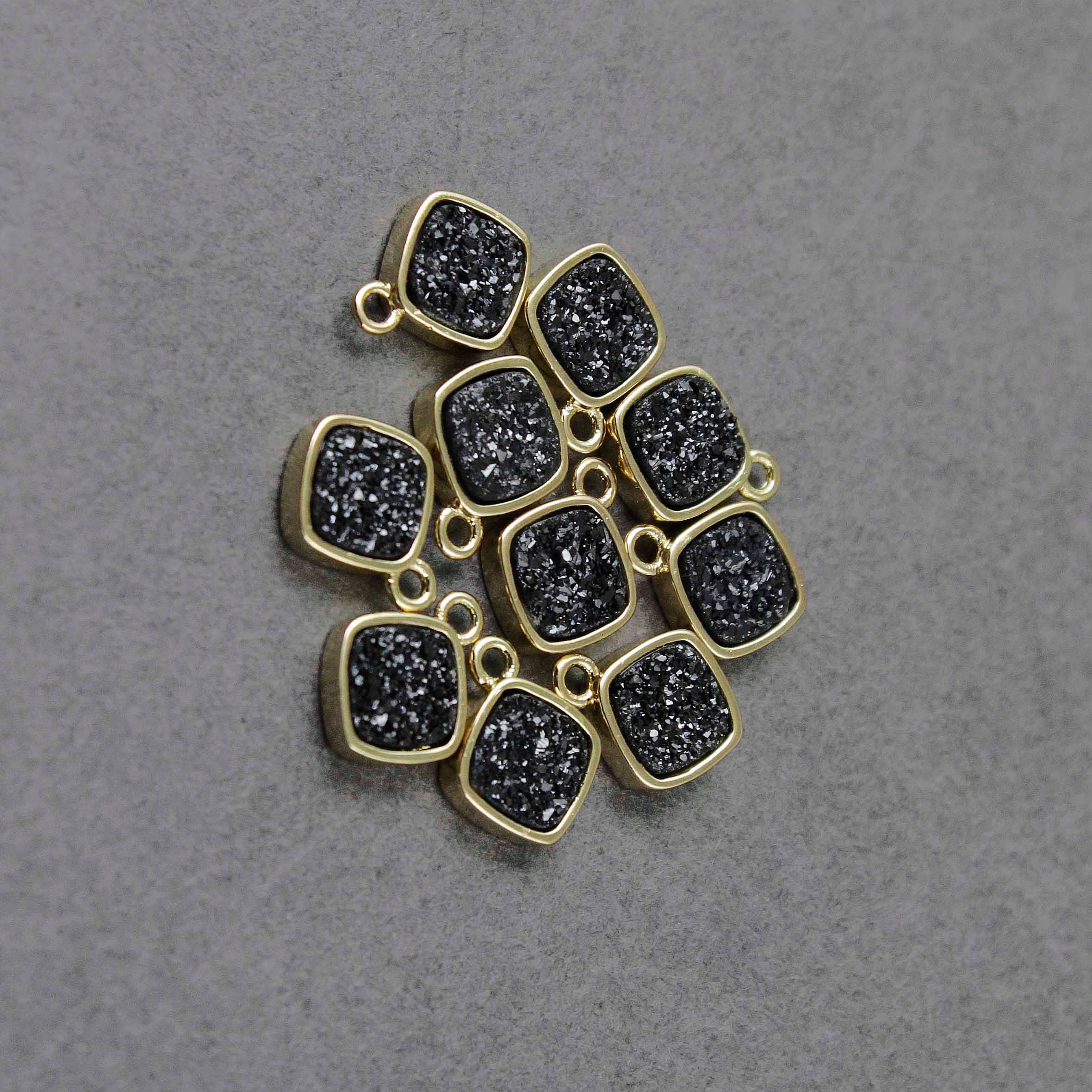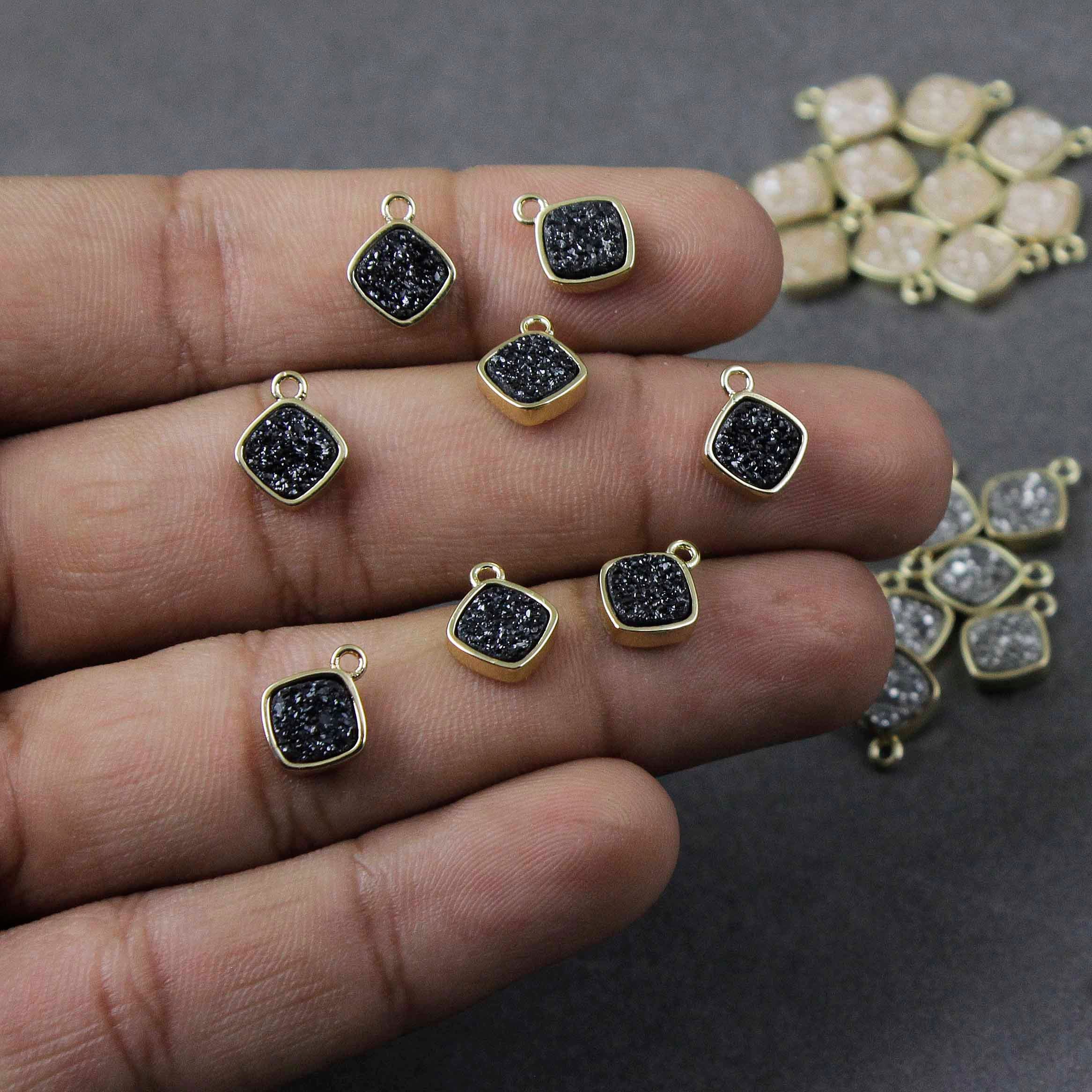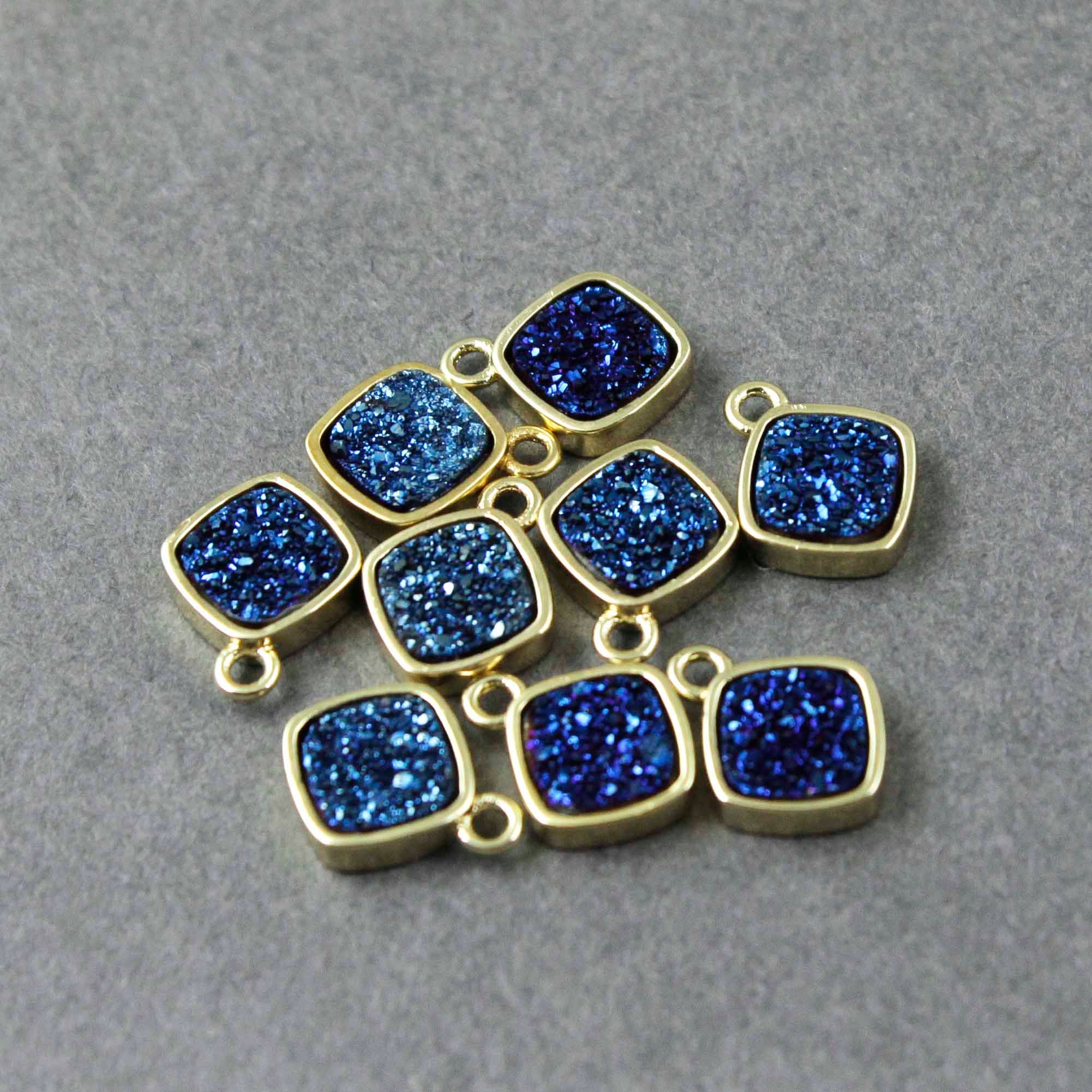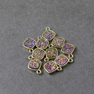 10 Pcs Mystic Druzy Pendant, Cushion Shape Pendant, 24k Gold Plated, Mystic Titanium Druzy, Bezel Pendant PC001
