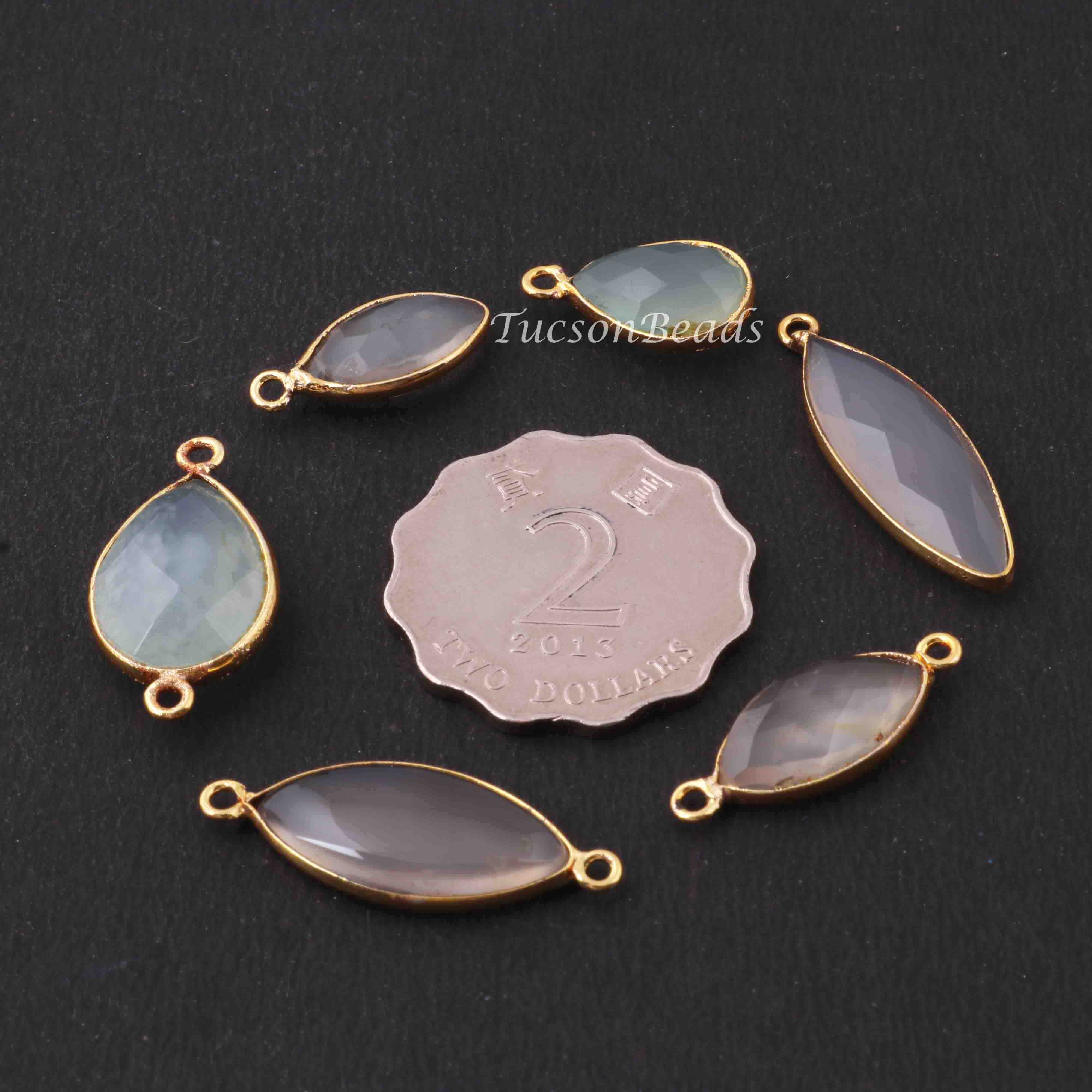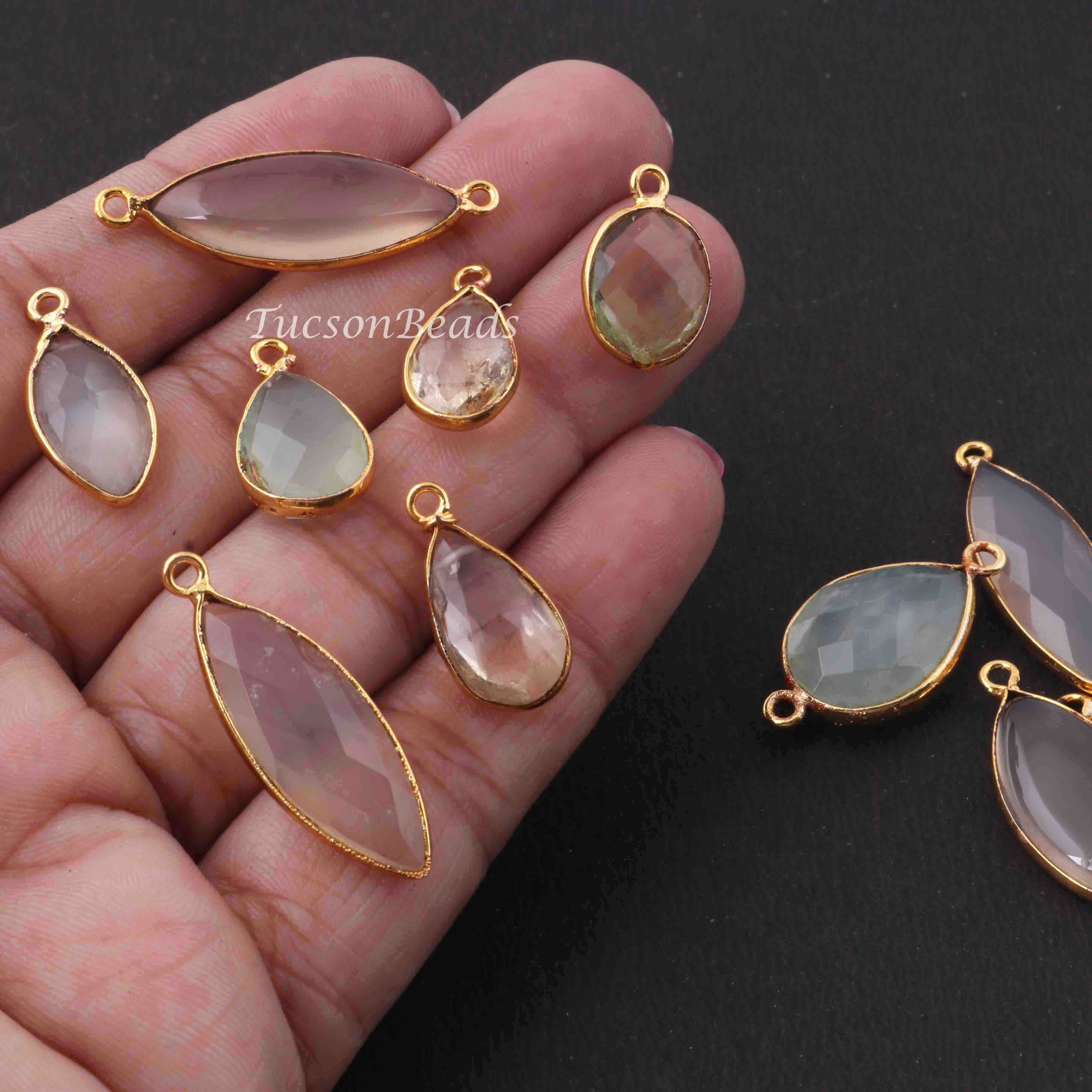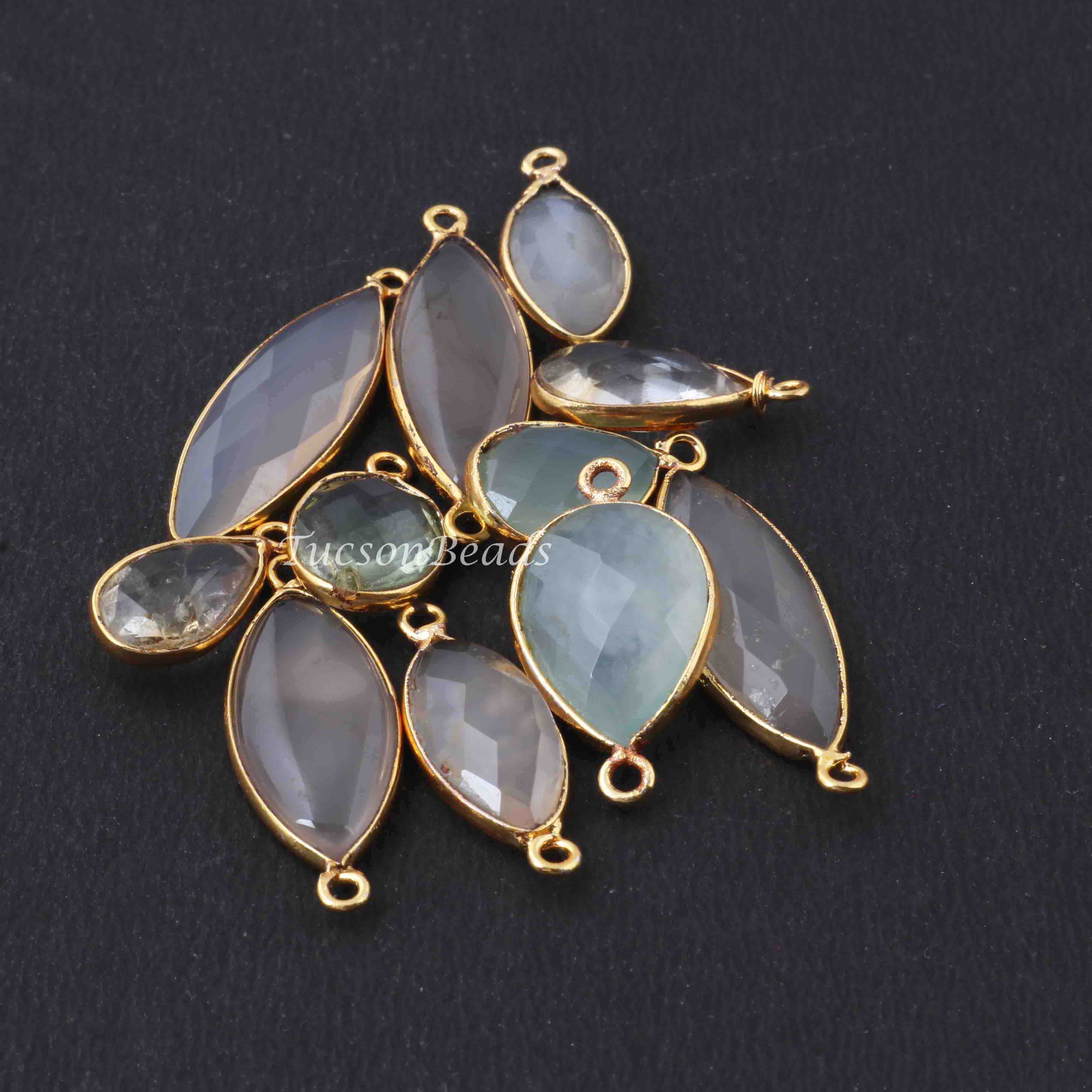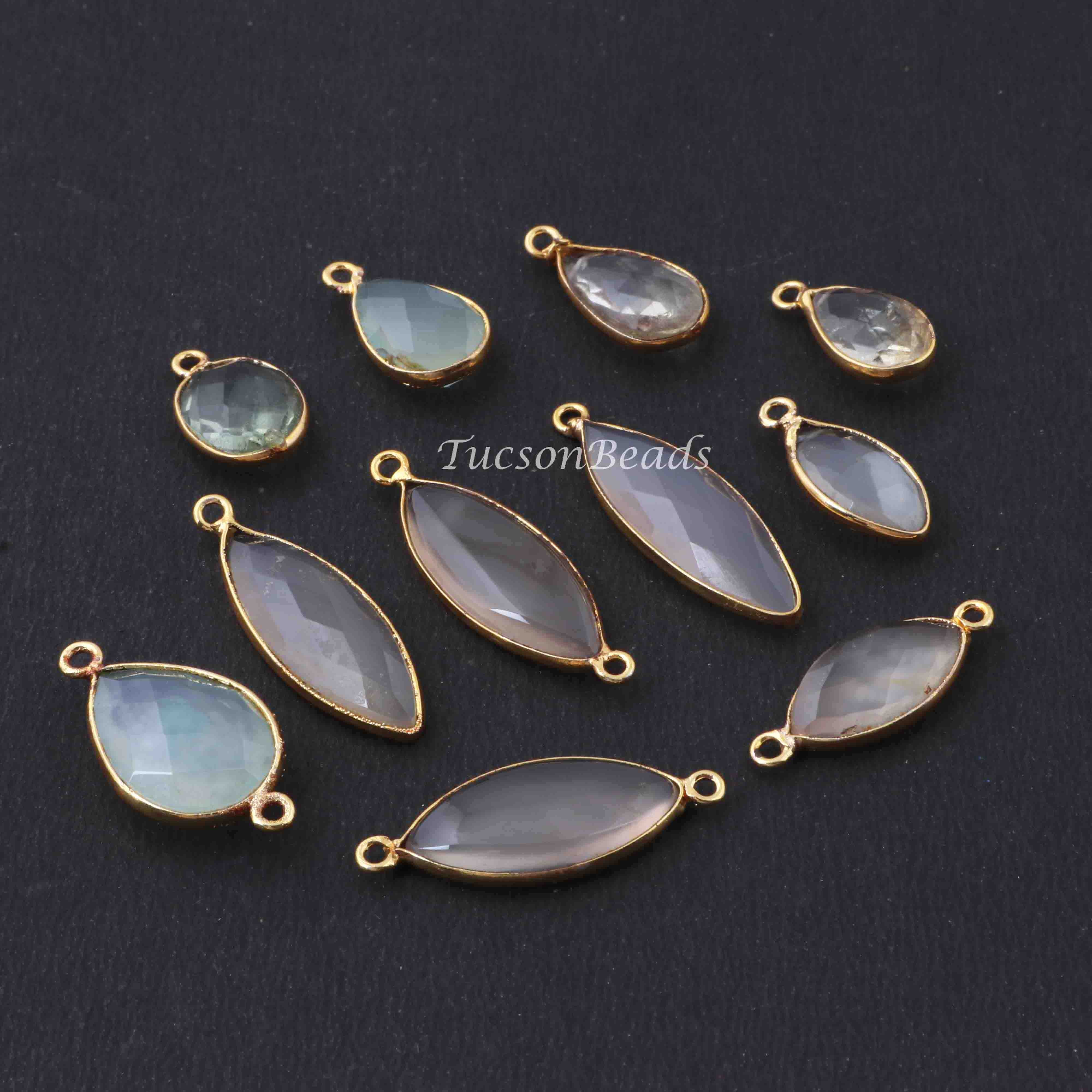 11 Pcs Mix Stone Faceted Assorted Shape 24k Gold Plated Pendant&Connector -32mmx10mm-17mmx9mm-PC685