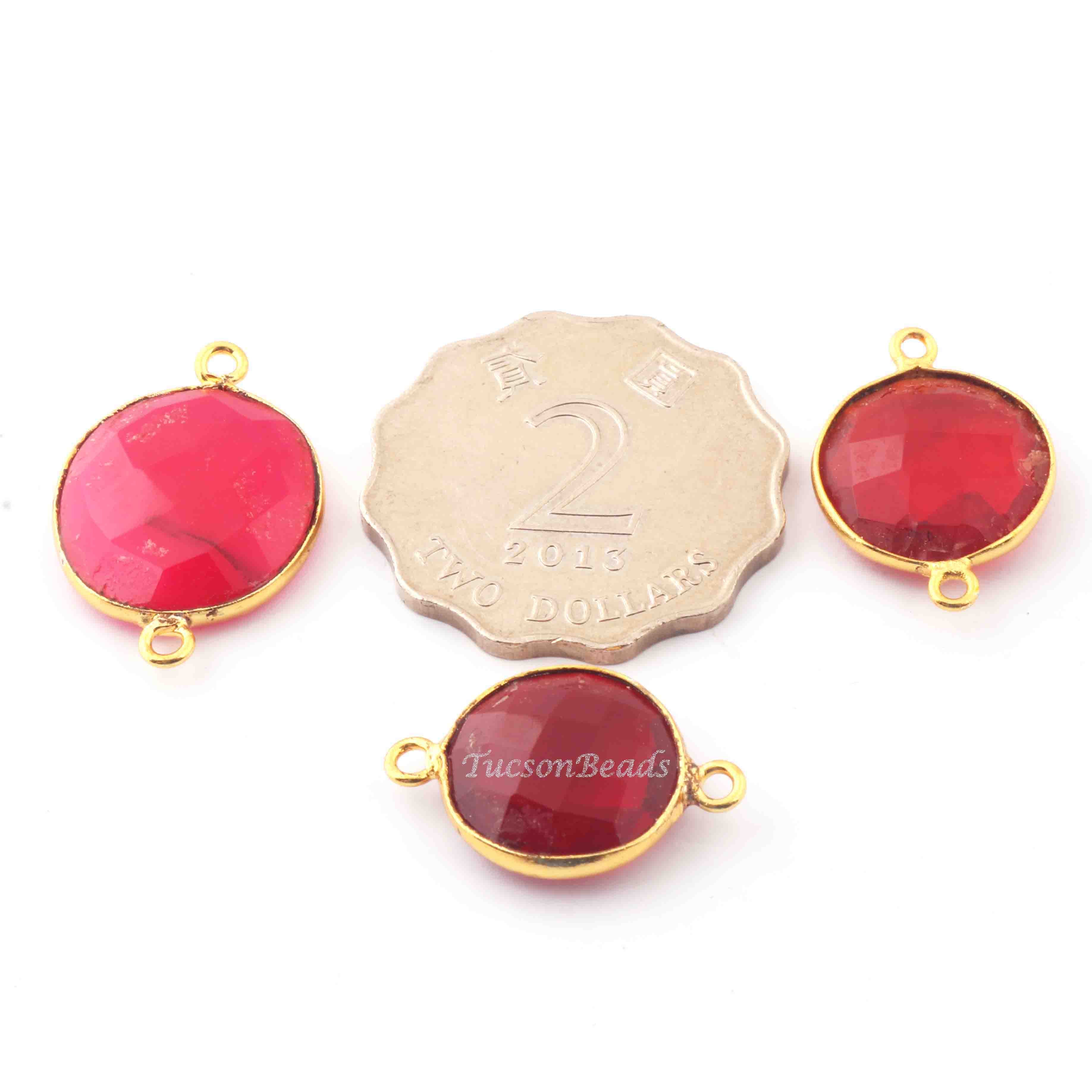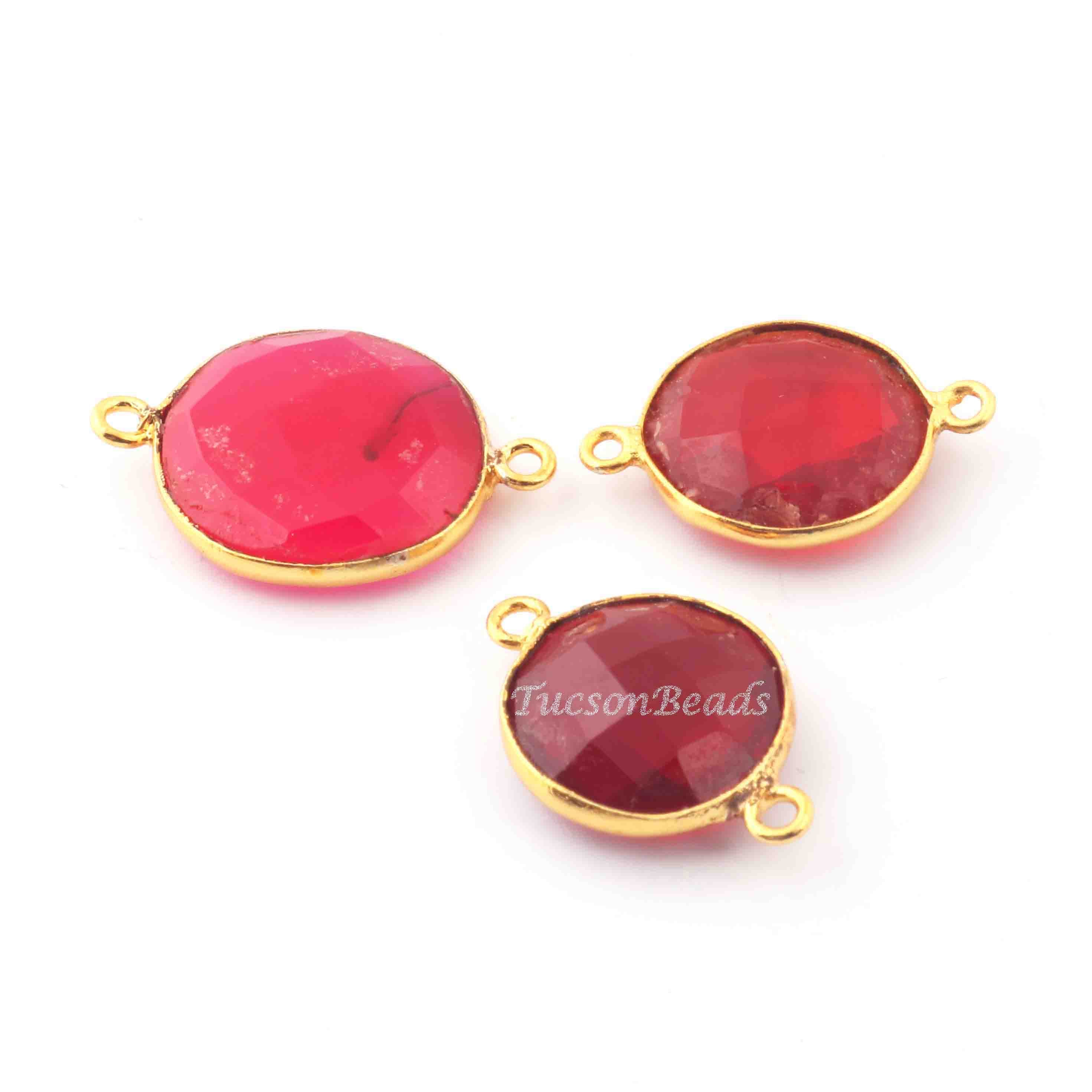 3  Pcs Mix Stone  24k Gold Plated Round Shape Connector - Mix Stone Connector -25mmx11mm-21mmx15mm- PC322