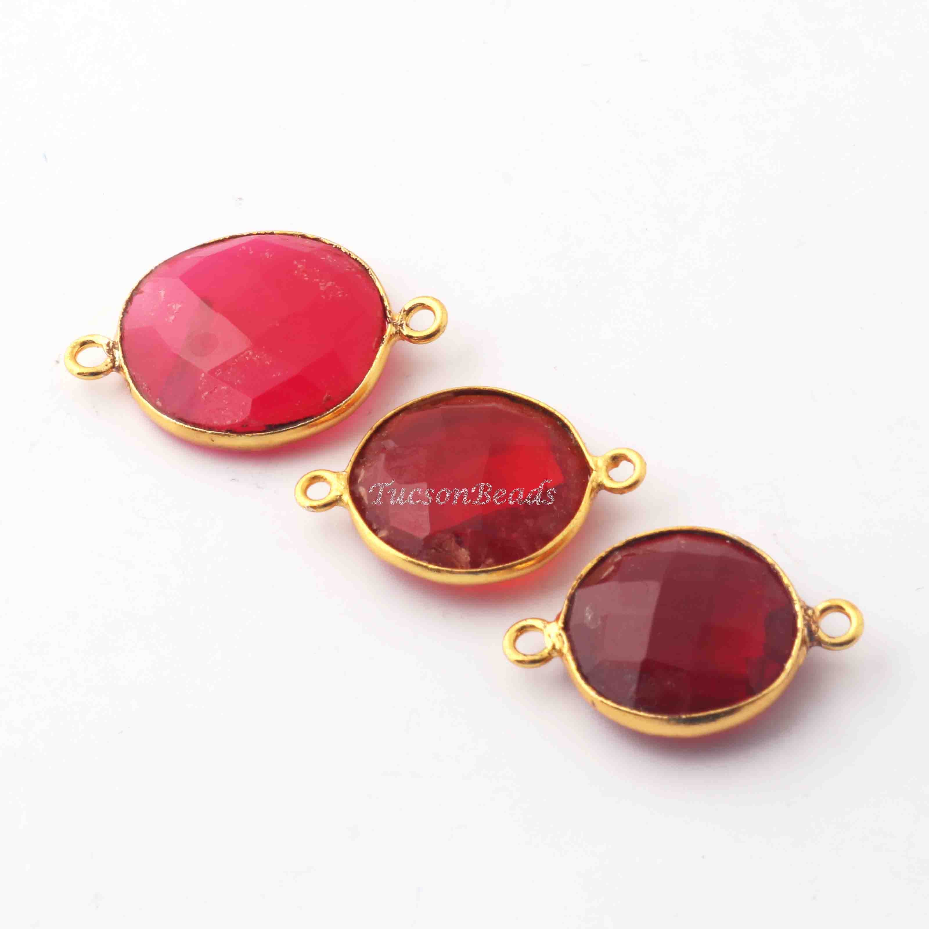 3 Pcs Mix Stone 24k Gold Plated Round Shape Connector - Mix Stone Connector -25mmx11mm-21mmx15mm- PC322