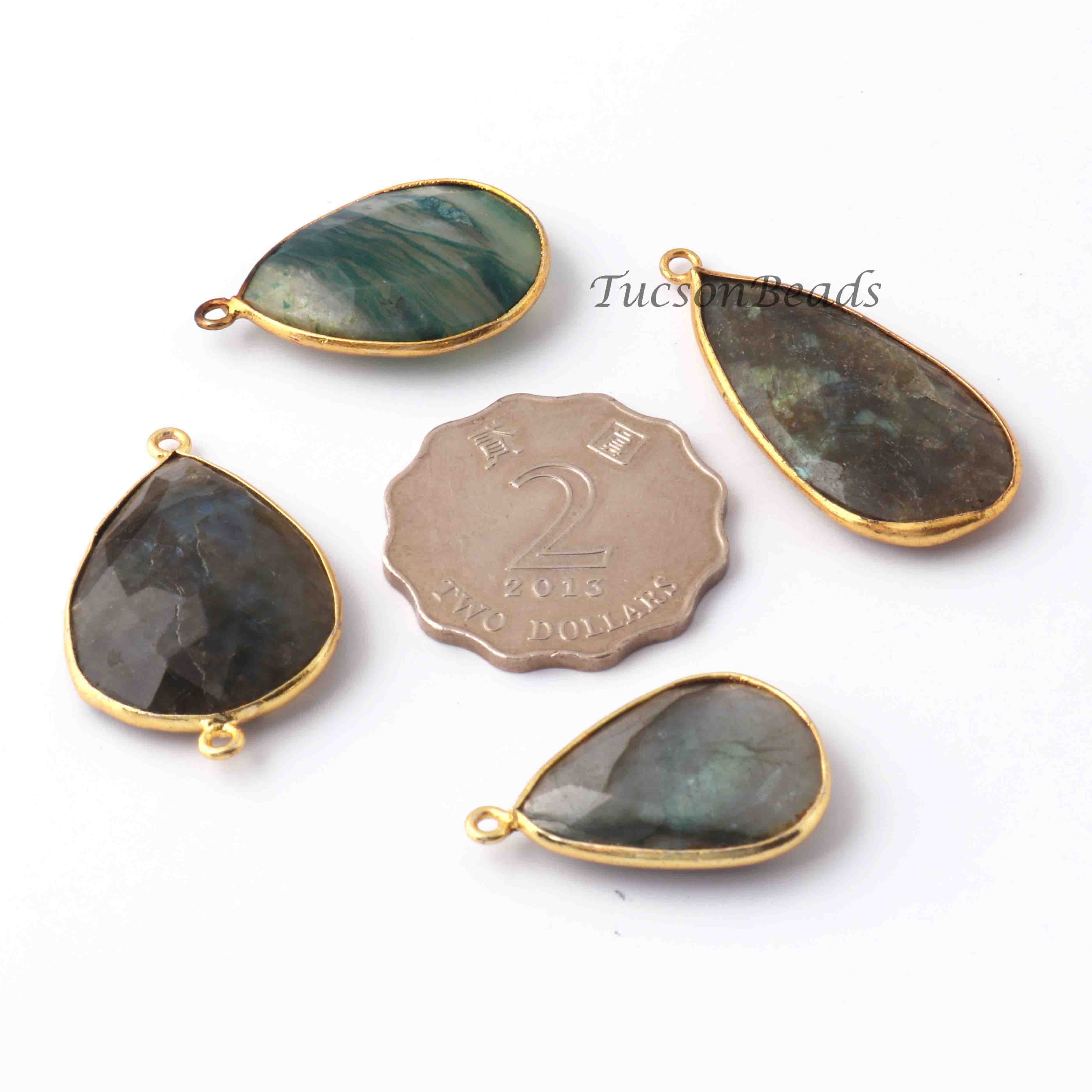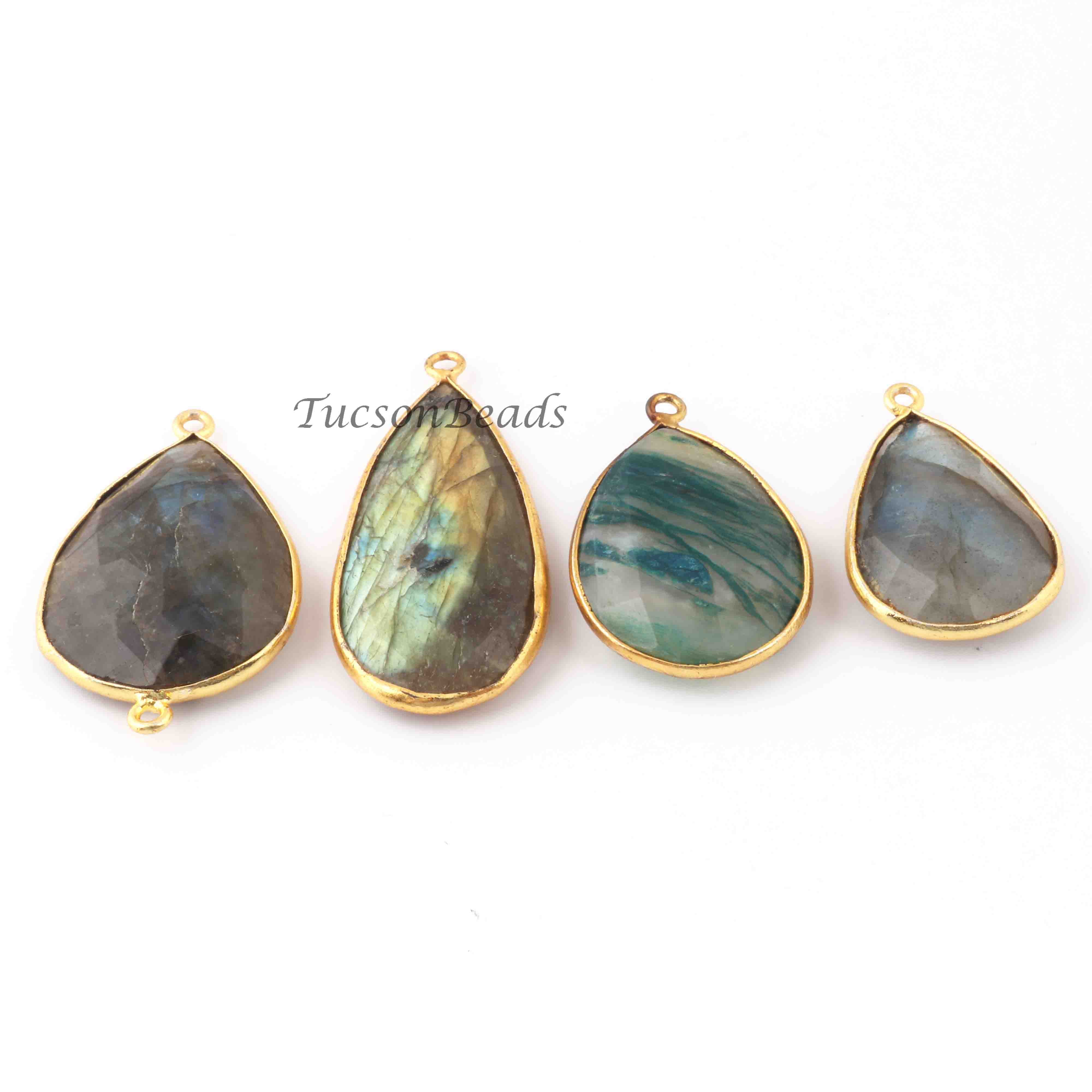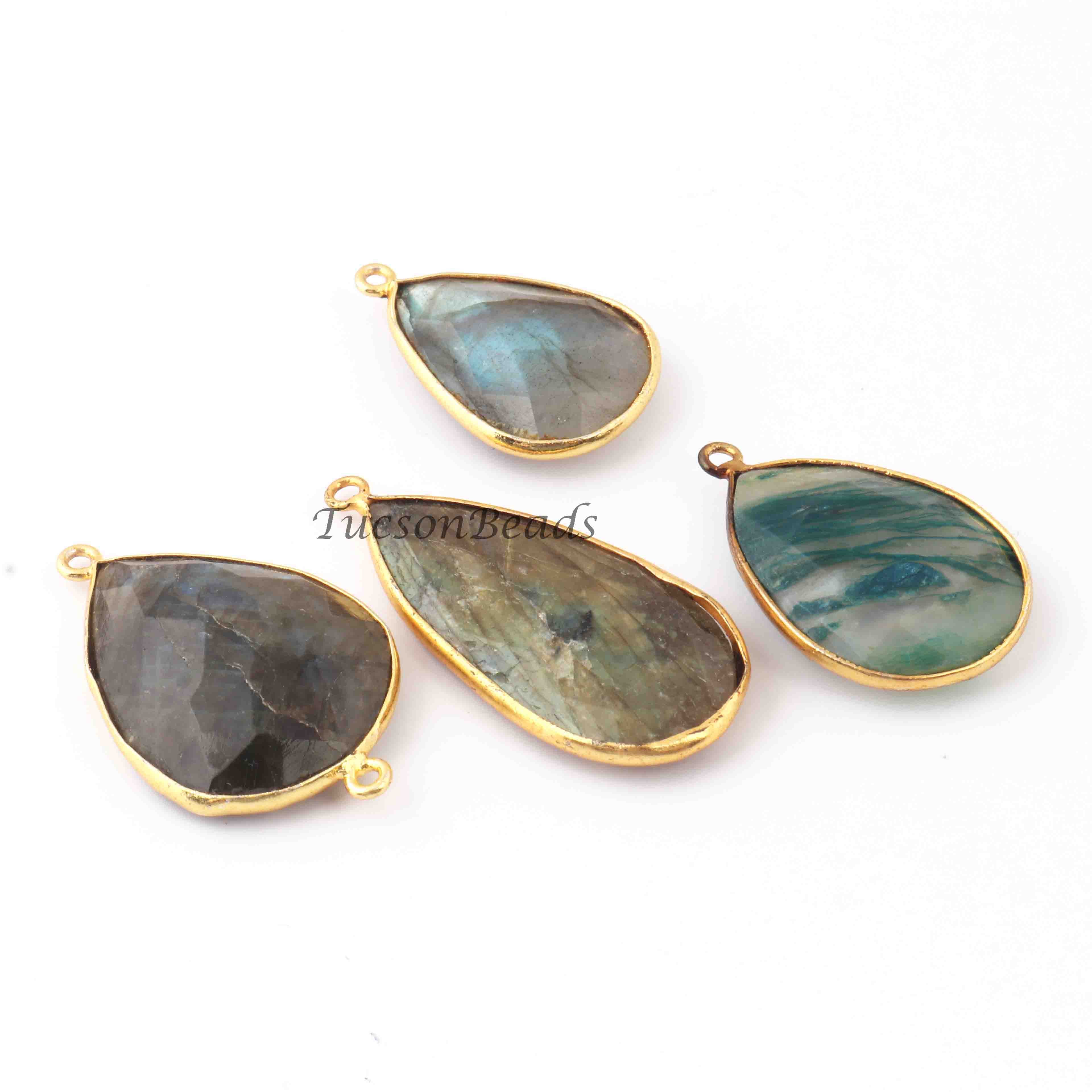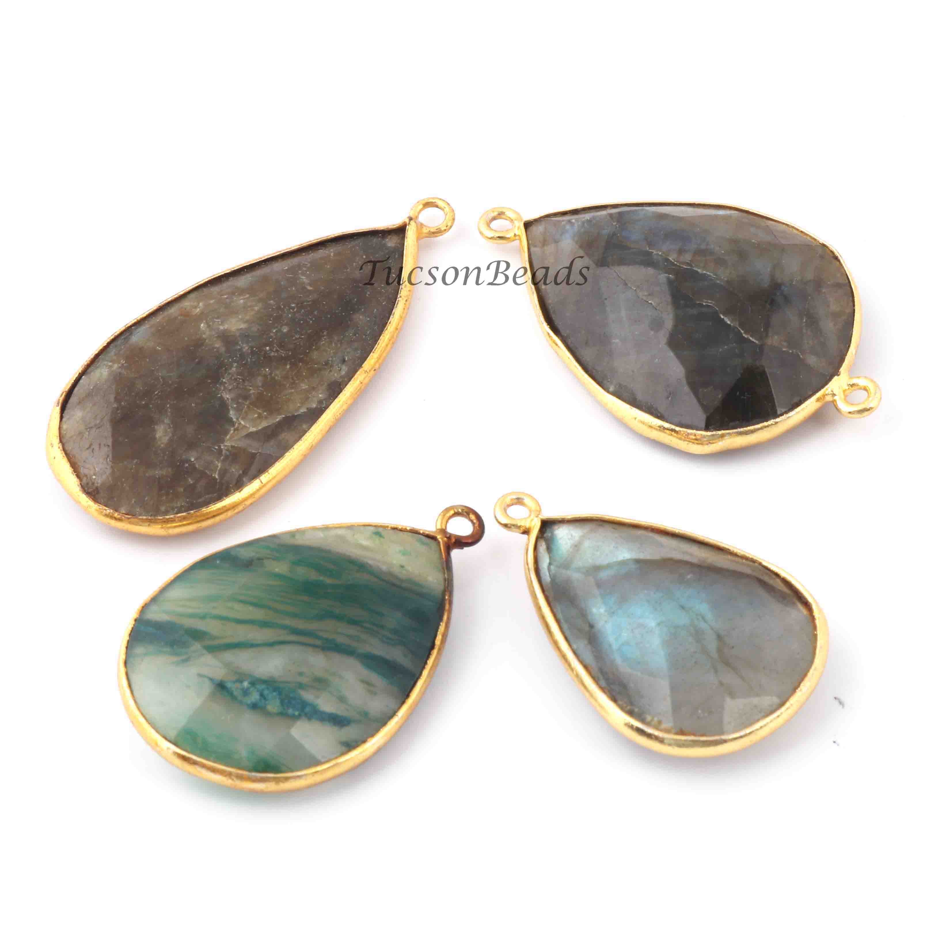 4 Pcs Mix Stone Faceted Pear Shape 24k Gold Plated Pendant&Connector - 39mmx8mm-27mmx18mm PC694