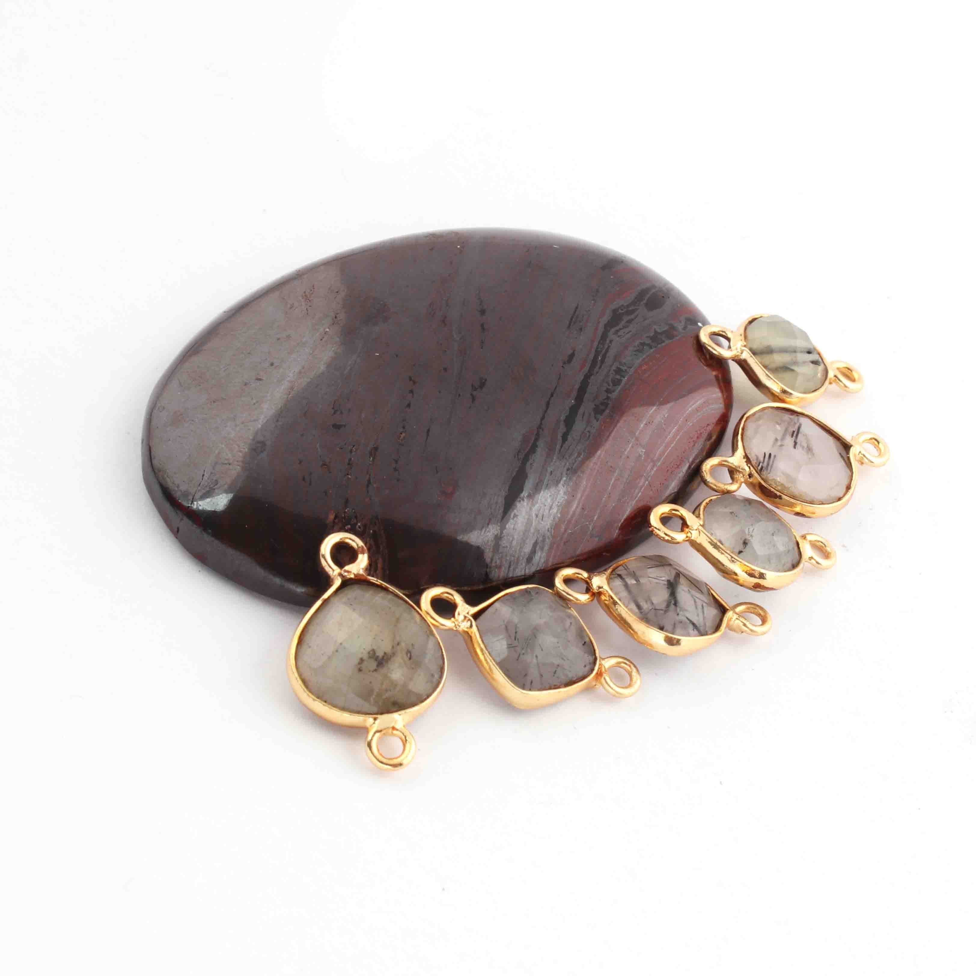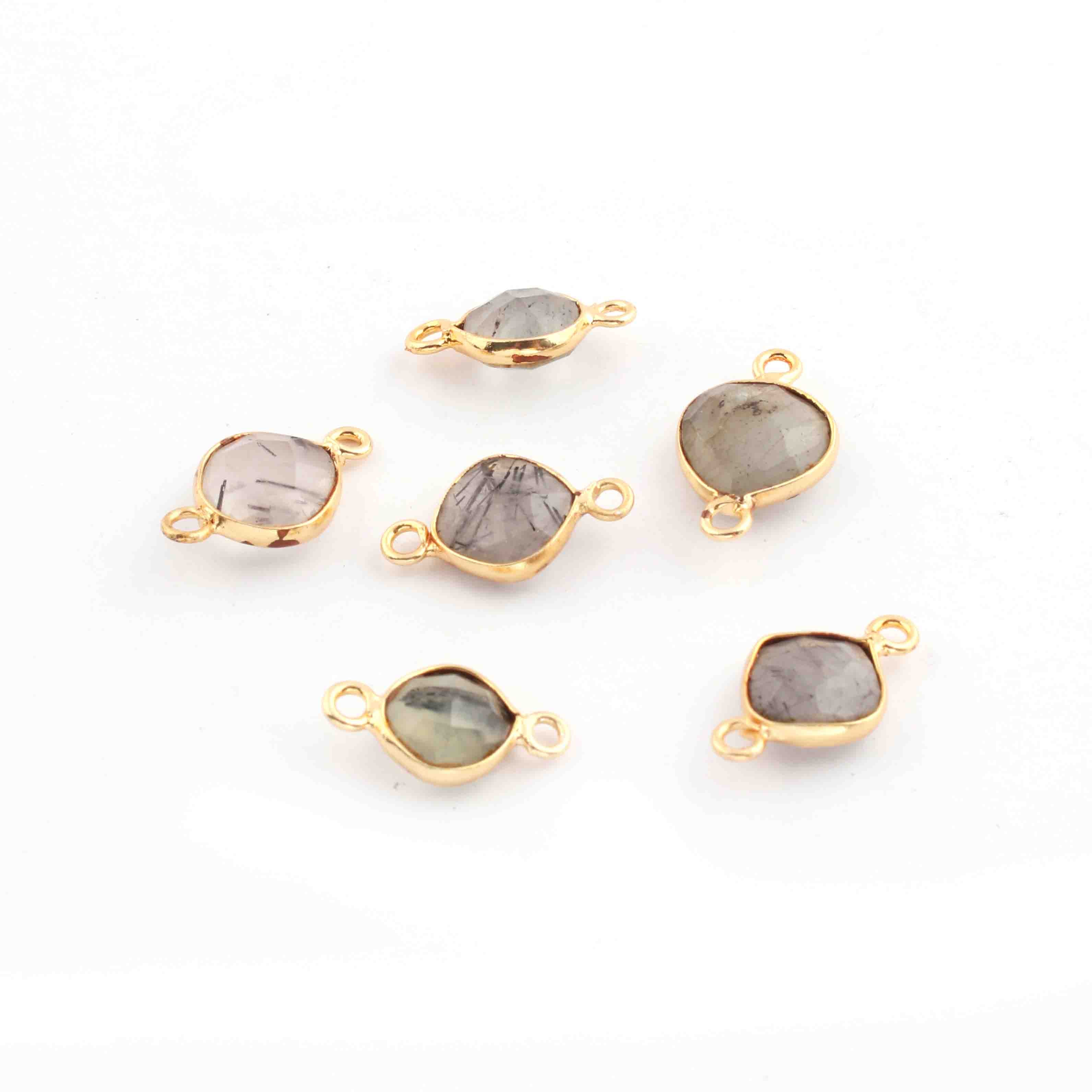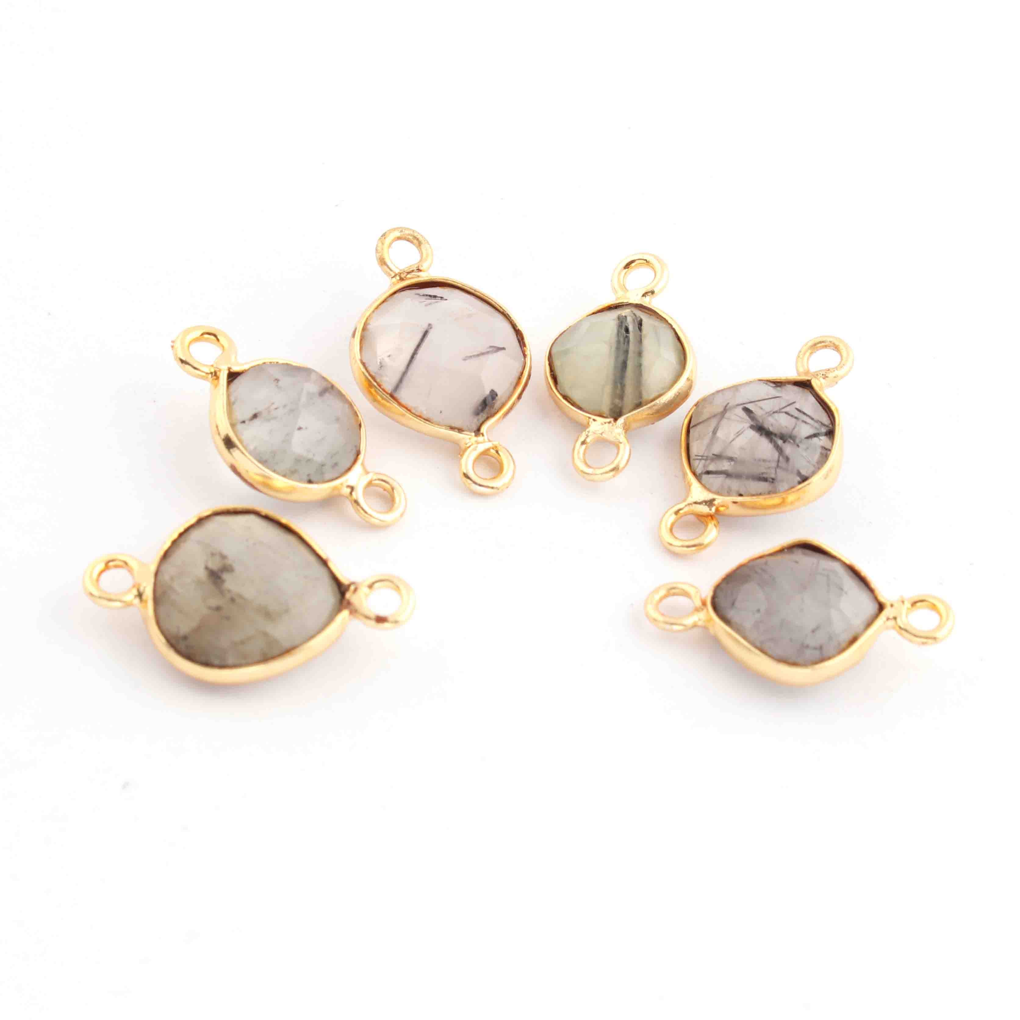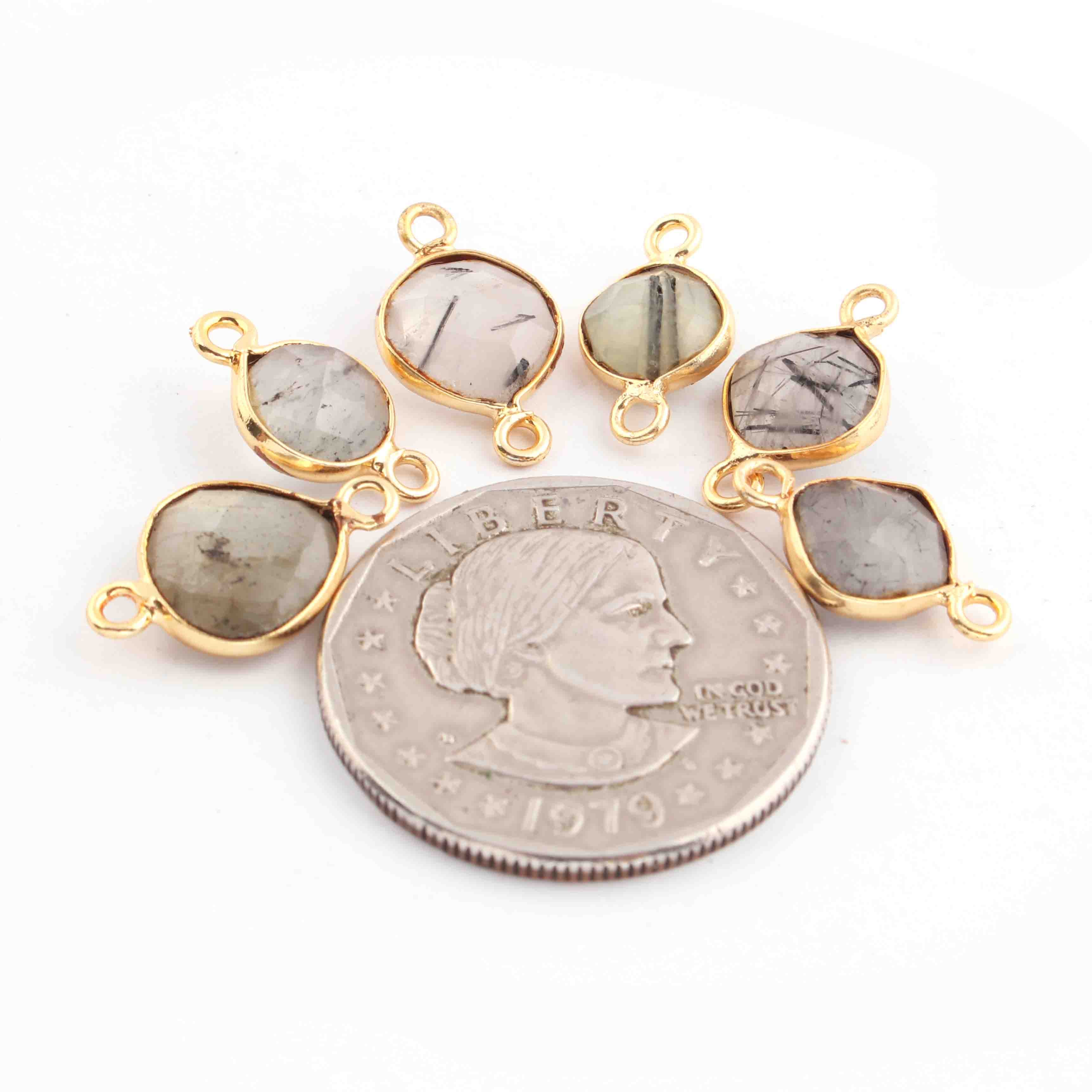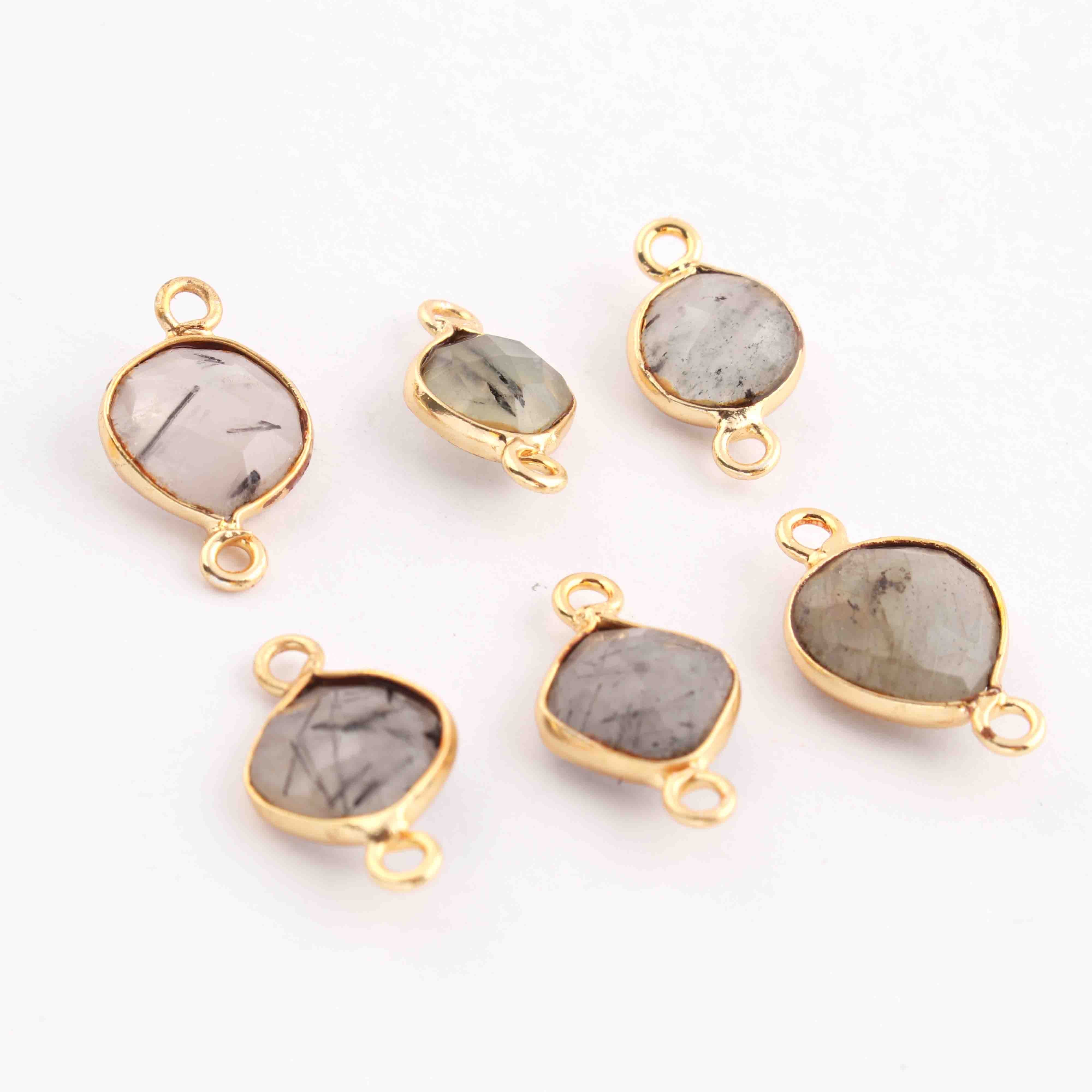 6 Pcs Black Rutile Faceted Assorted Shape 24k Gold Plated Connector - Black Rutile Assorted - 15mmx8mm-18mmx11mm PC1022