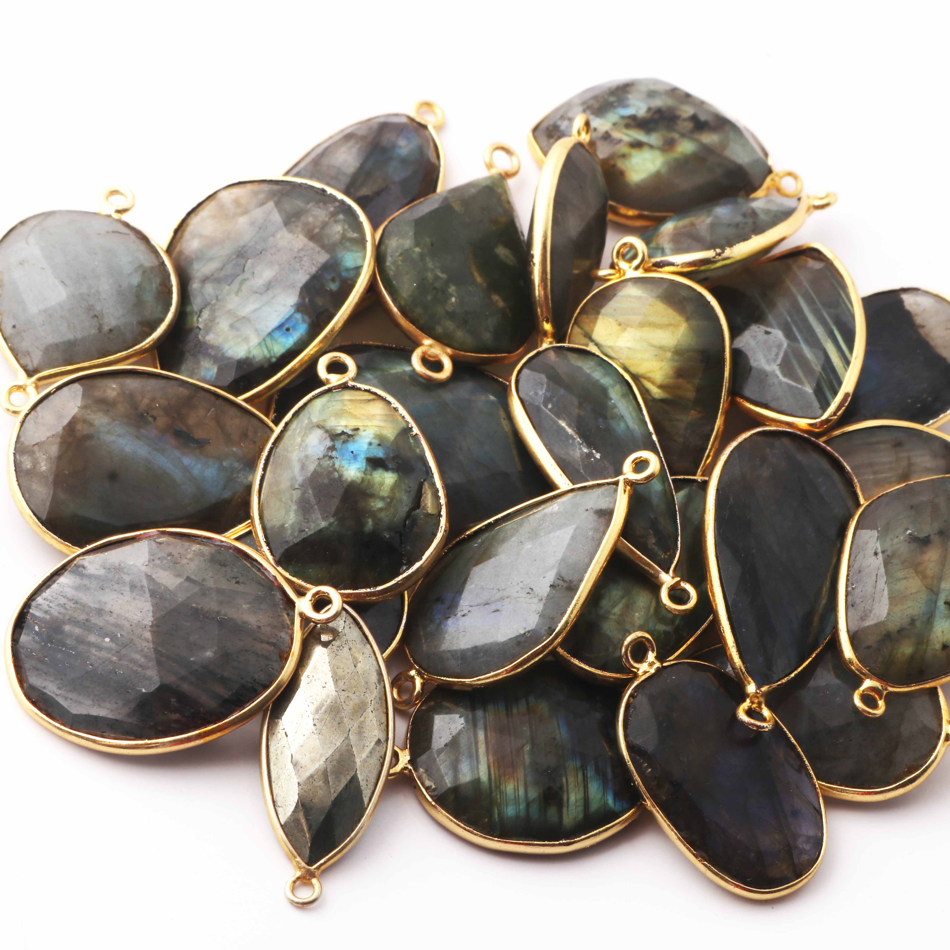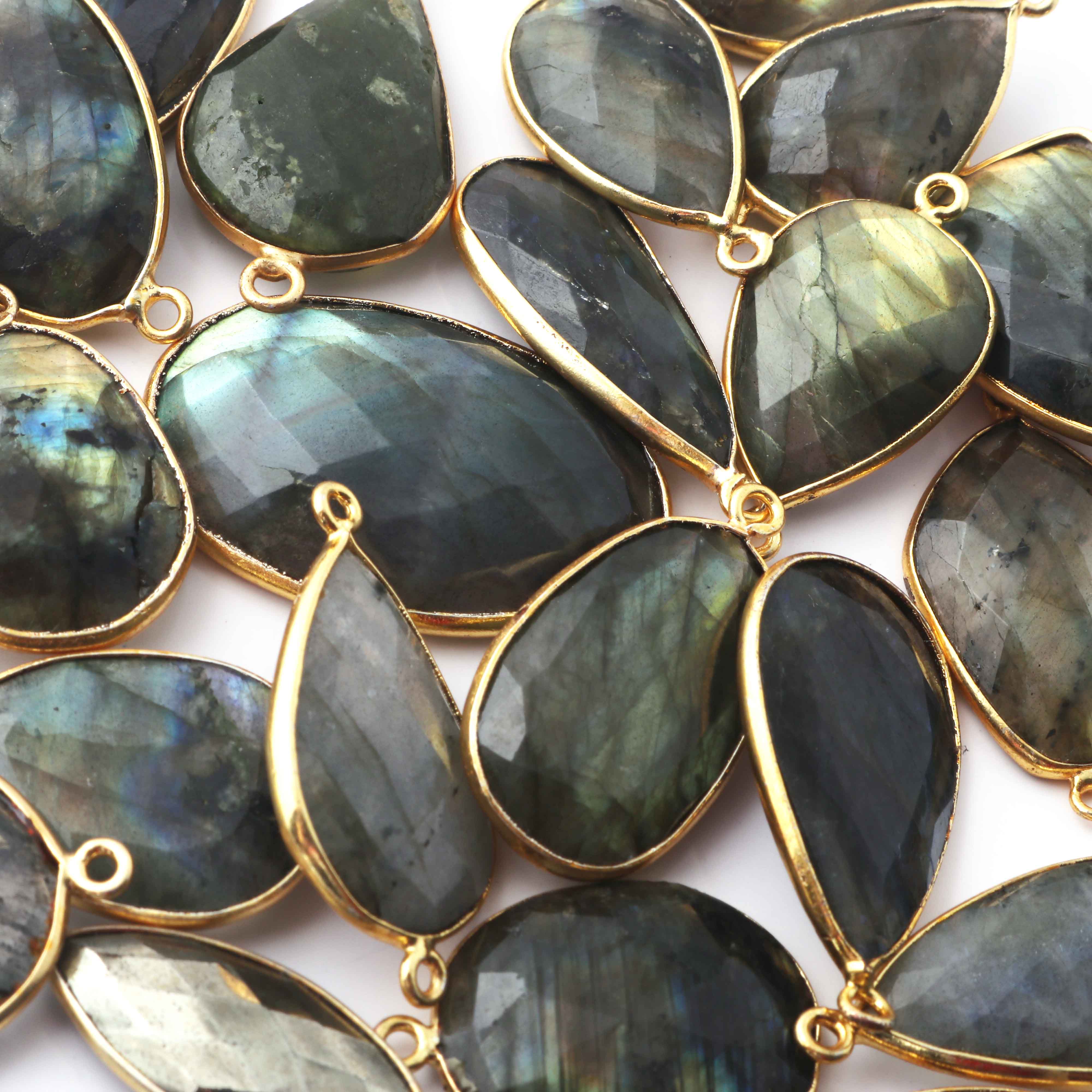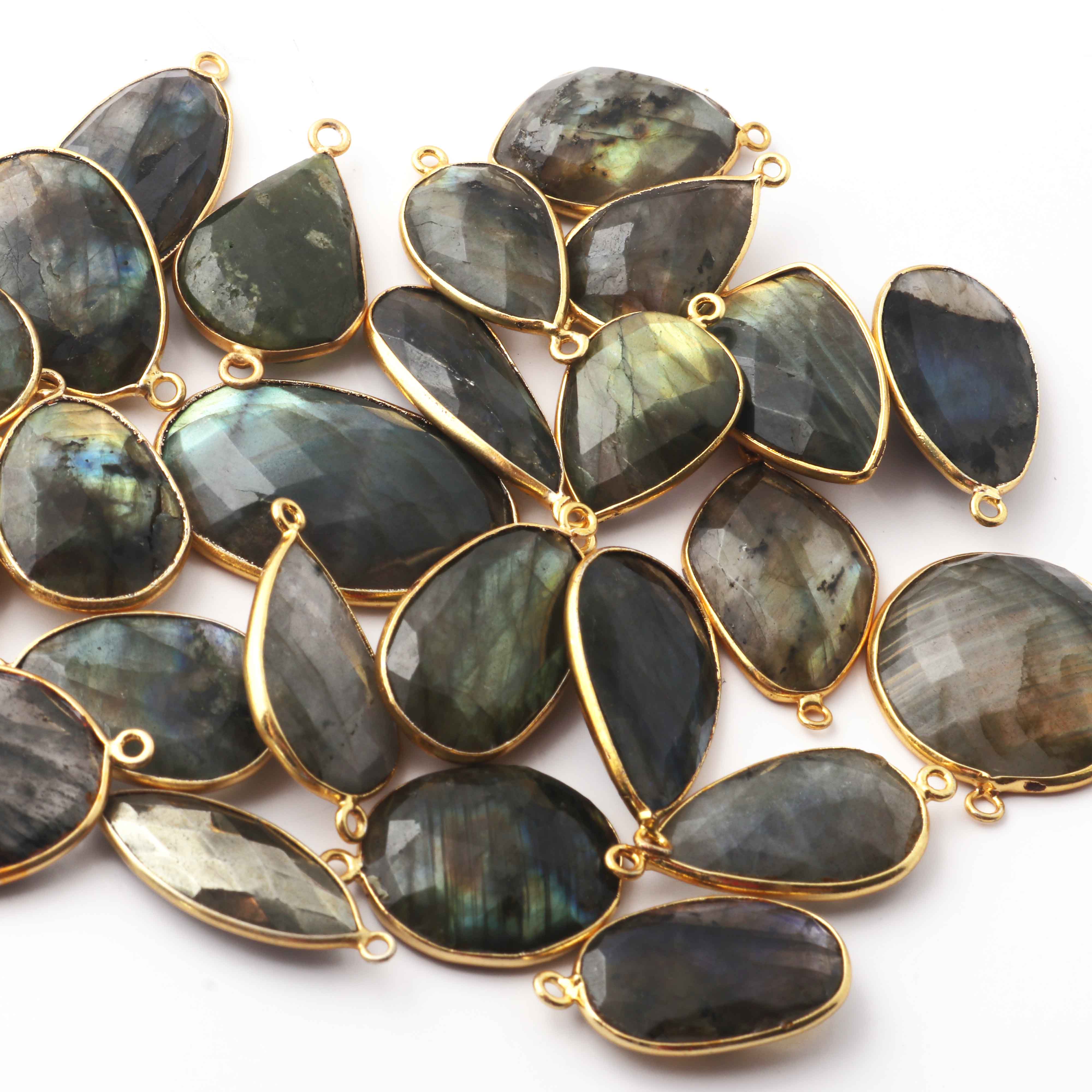 5 Pcs Labradorite Faceted Assorted Shape 24k Gold Plated Single Bail Pendant - Labradorite Assorted Pendant 35mmx21mm-24mmx17mm PC222