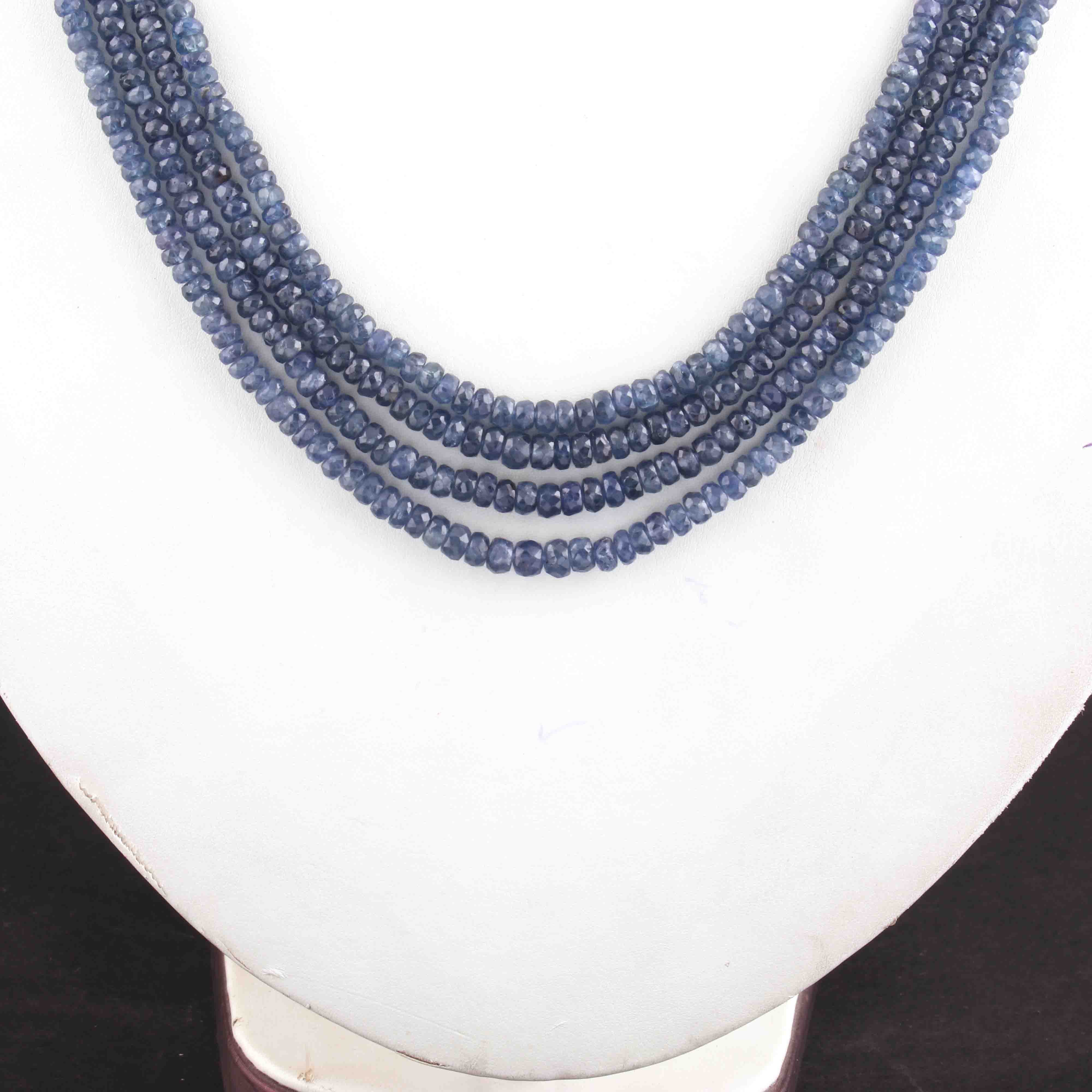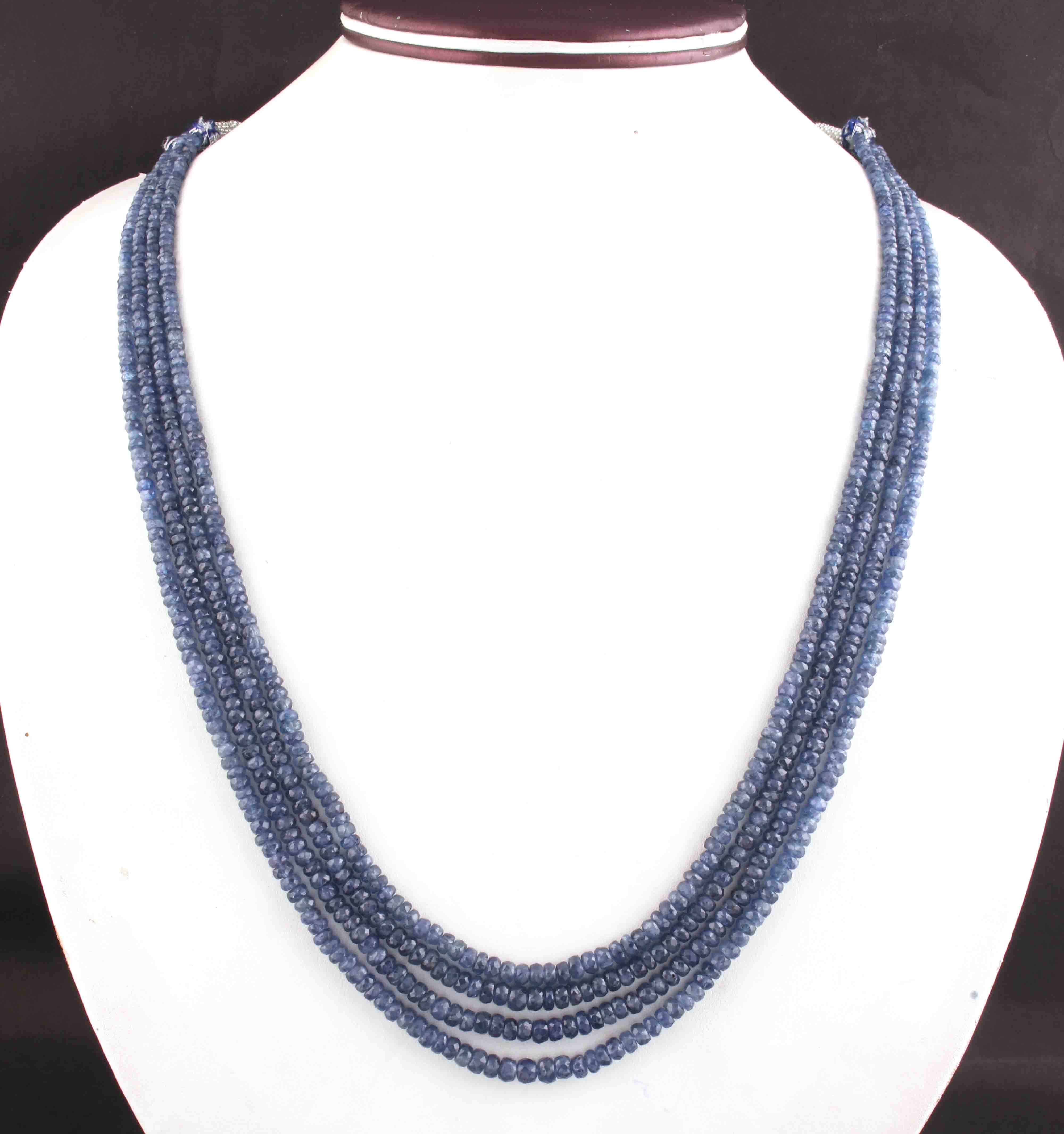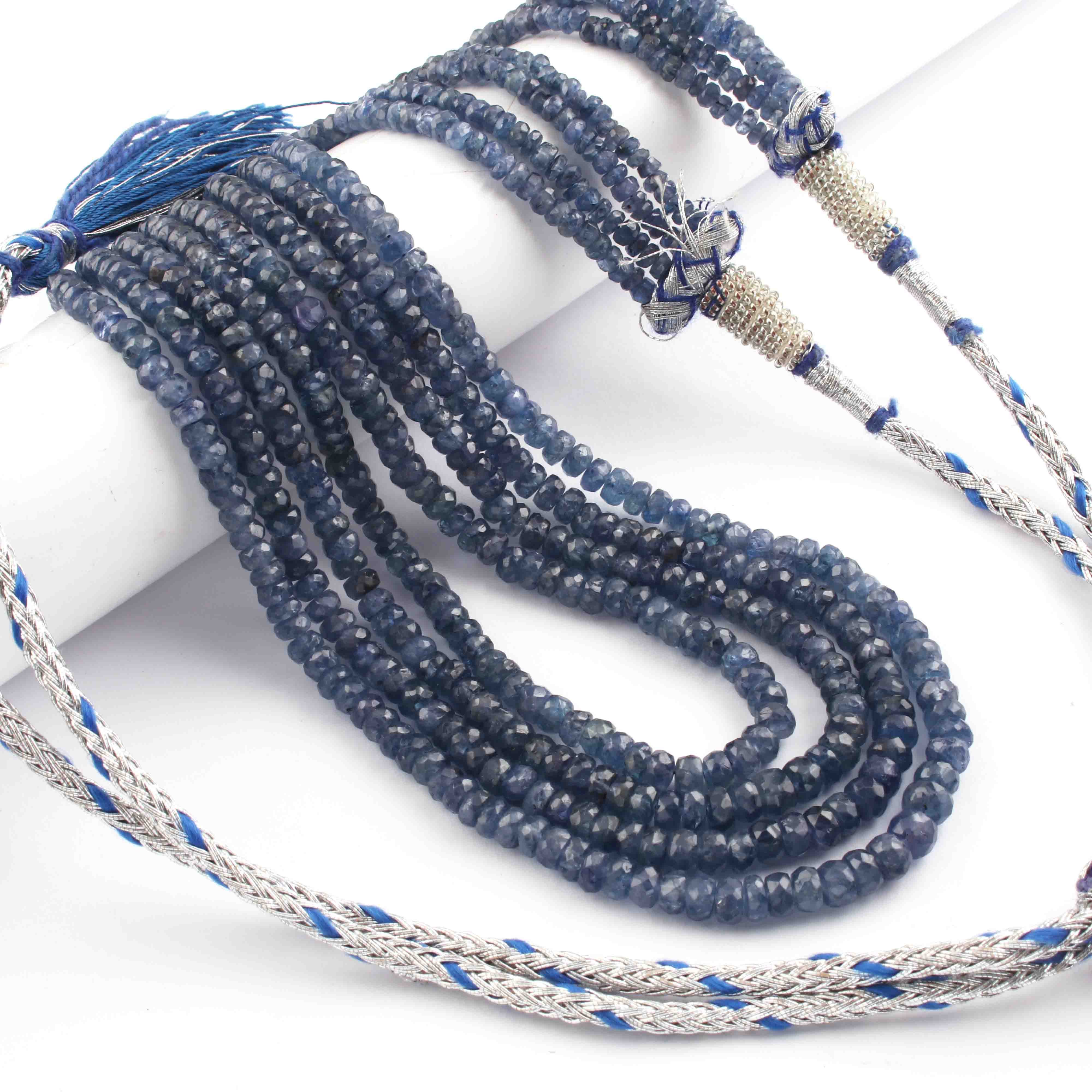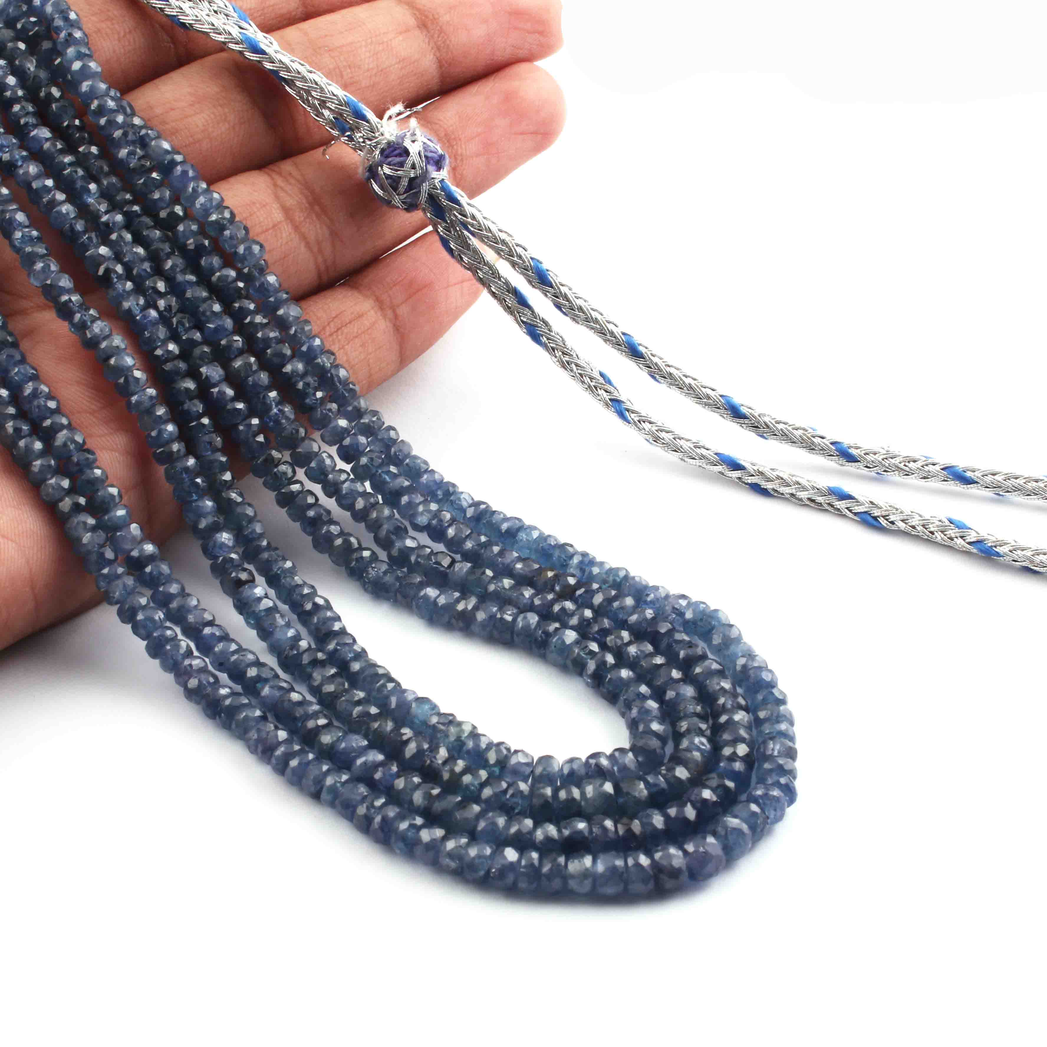 350. Ct 4 Strands Natural Burmese Blue Sapphire Necklace - Faceted Rondelle Beads - Burma Sapphire Necklace - Stunning Elegant Necklace - SPB0108