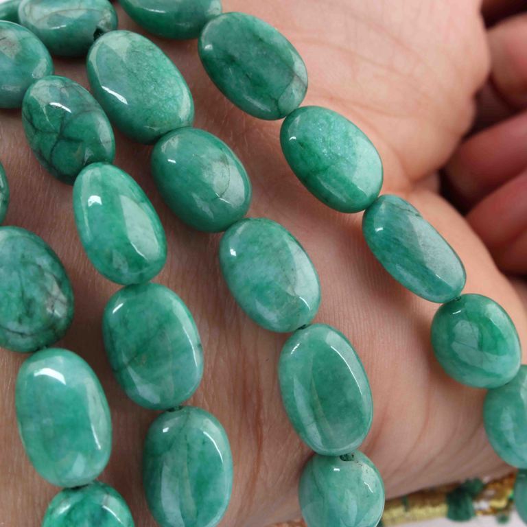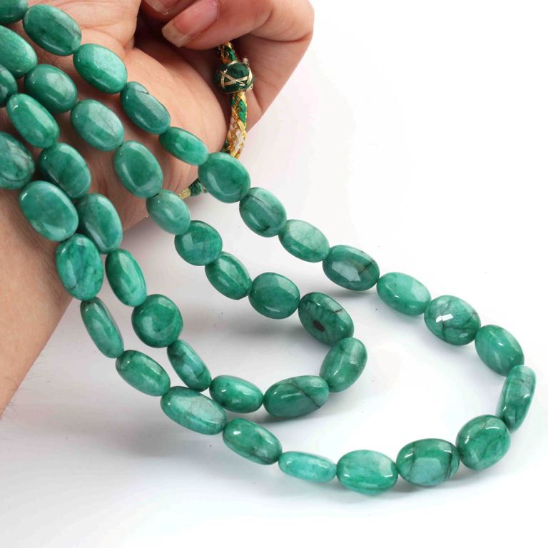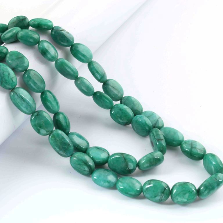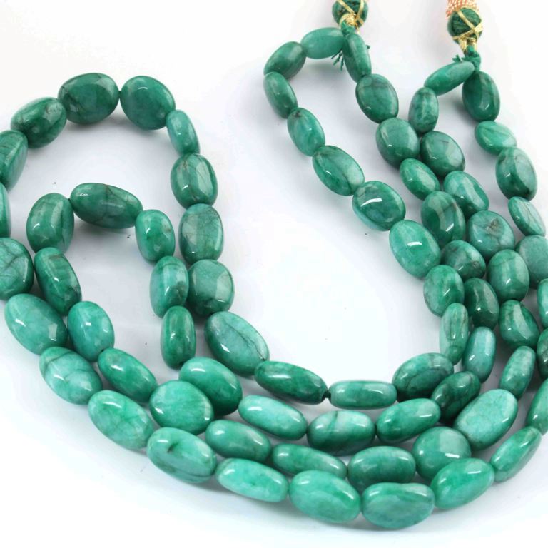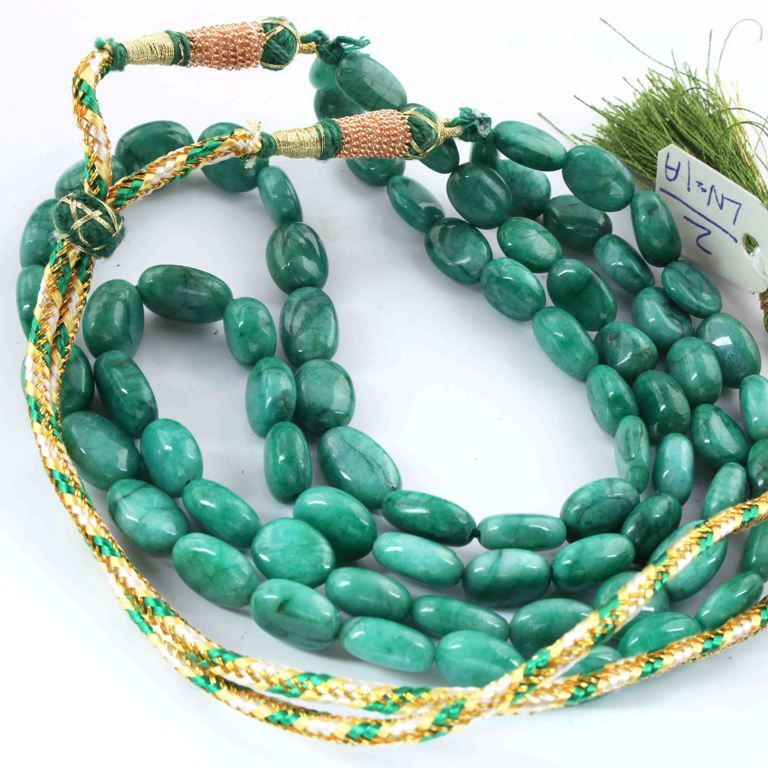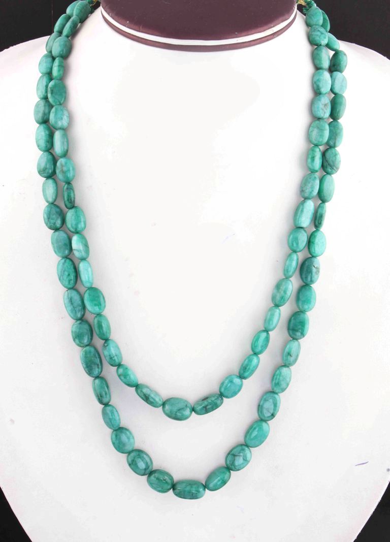 370 Carats 2 Strands Of Precious Genuine Natural Emerald Necklace - Smooth oval Beads - Rare & Natural Emerald Necklace - Stunning Elegant Necklace SPB0168