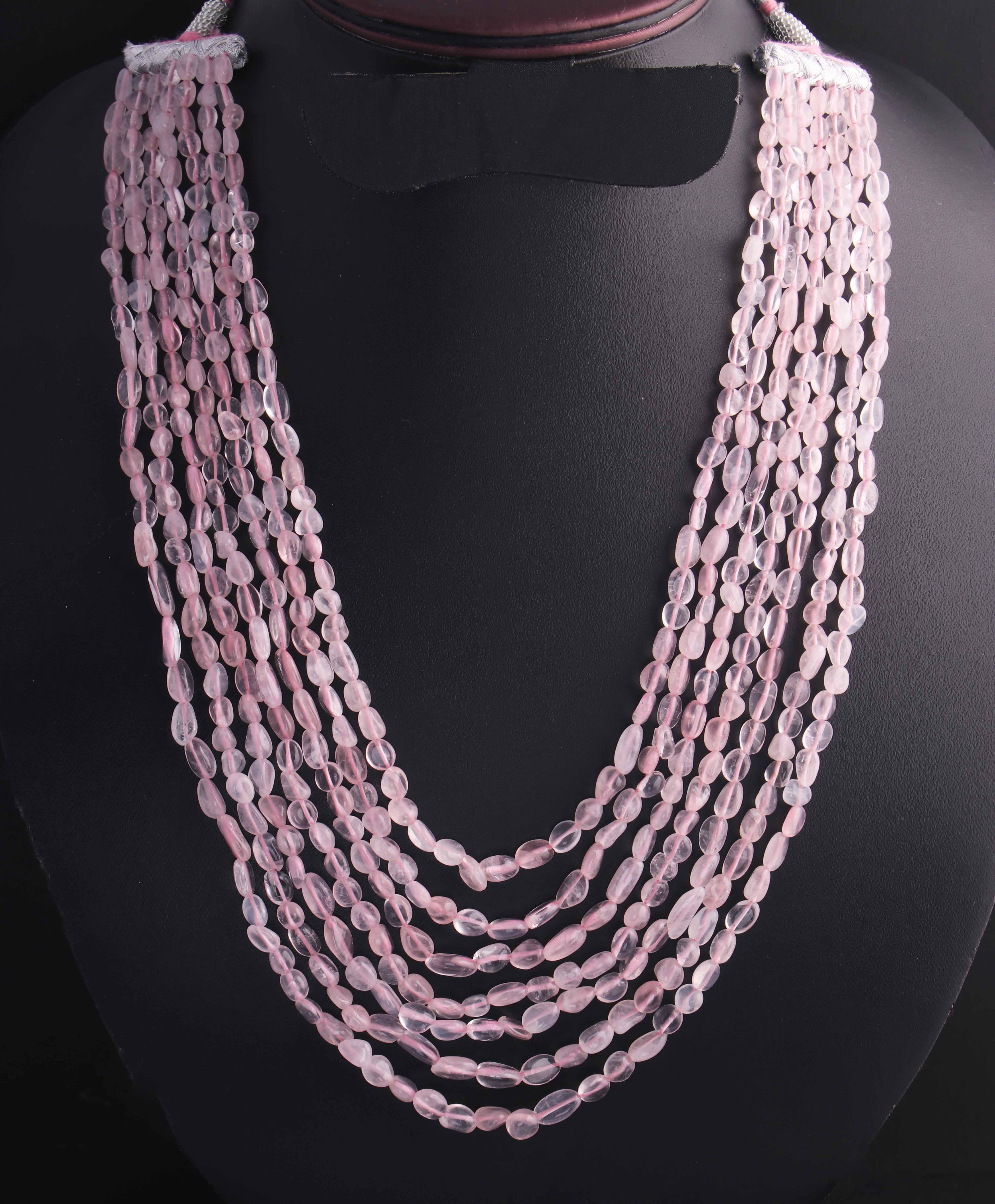 440 Carats 7 Strands Of Genuine Rose Quartz Necklace - Smooth Oval Beads - Rare & Natural Necklace - Stunning Elegant Necklace SPB0236